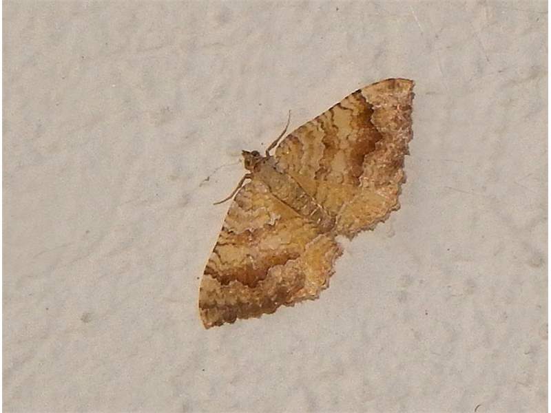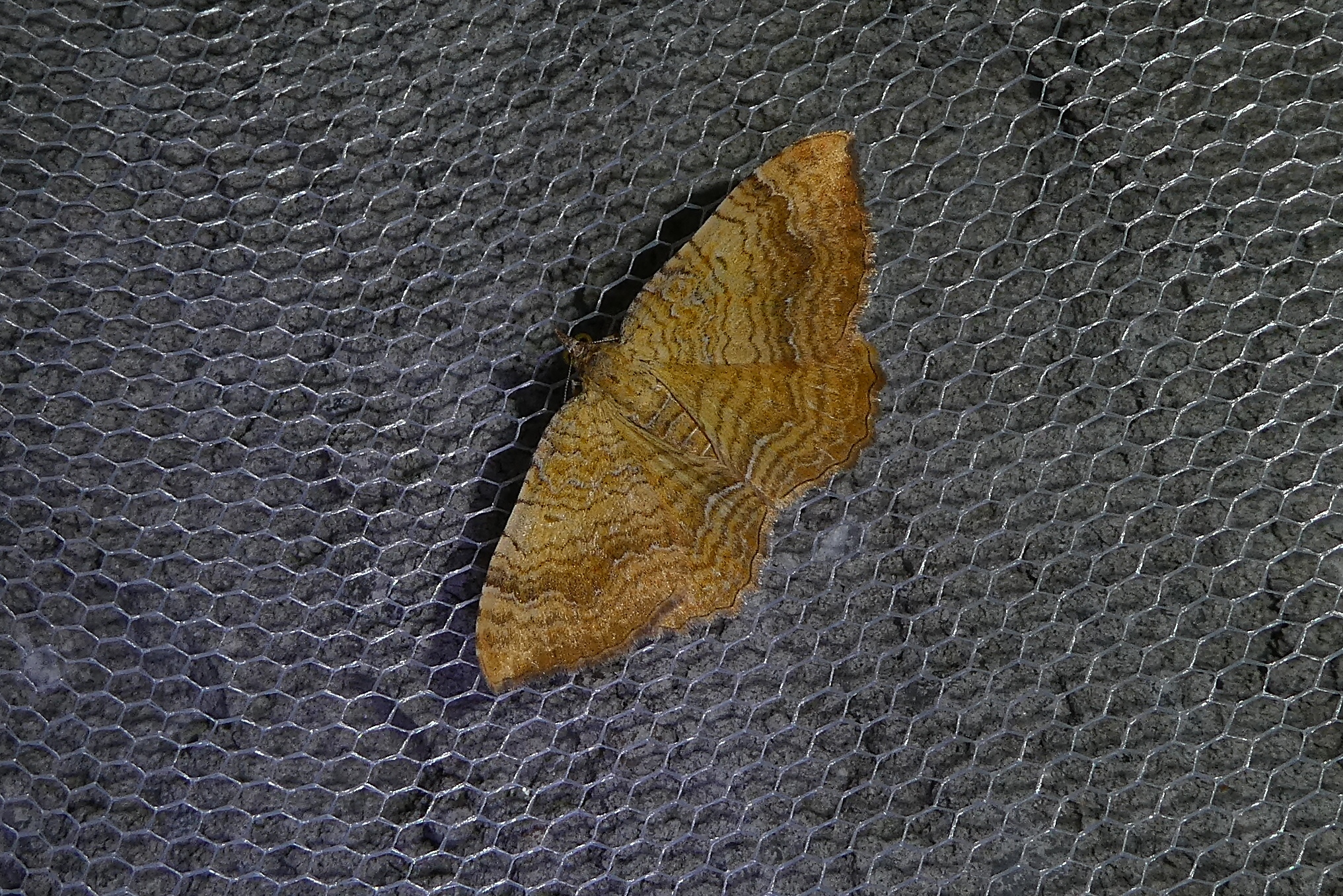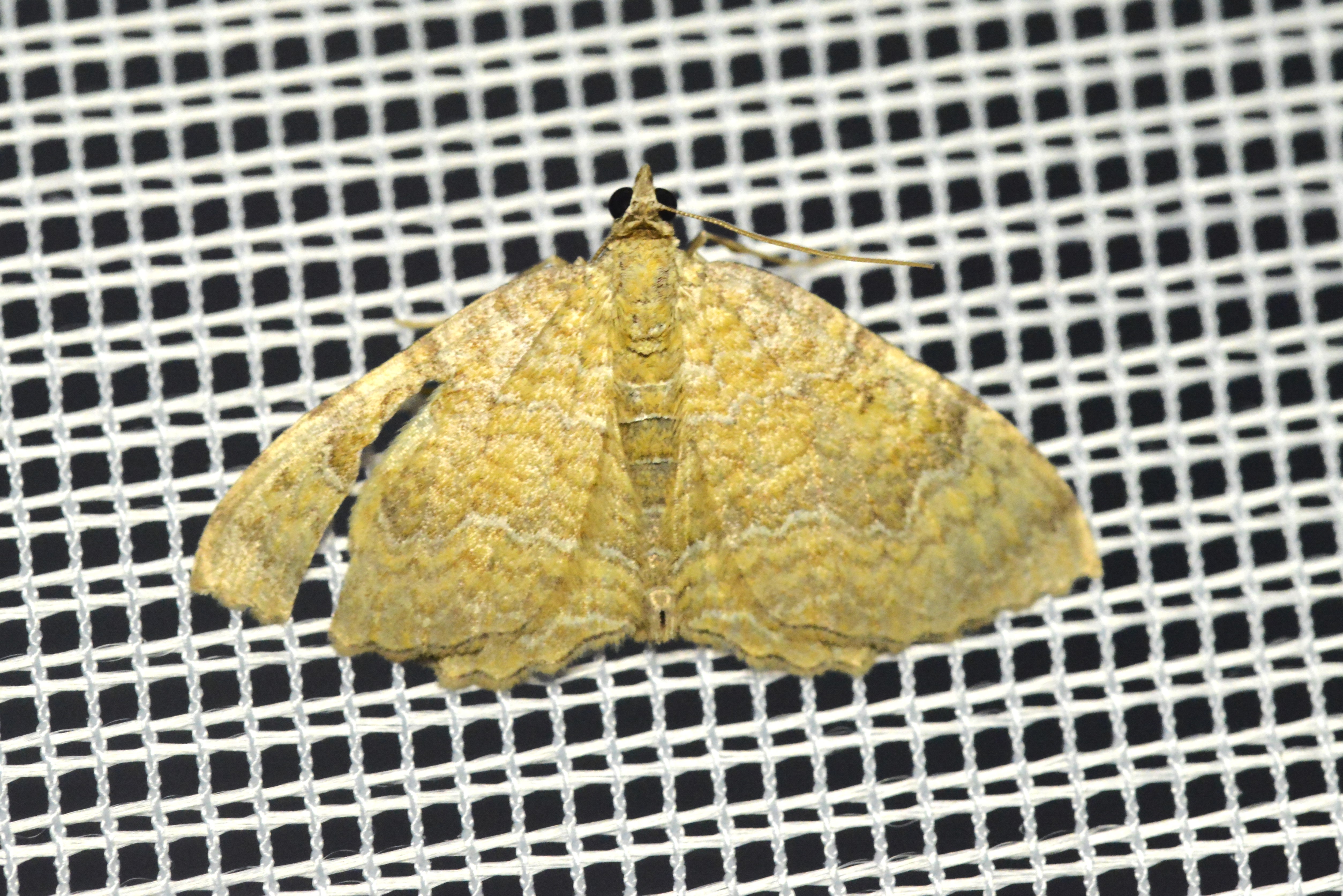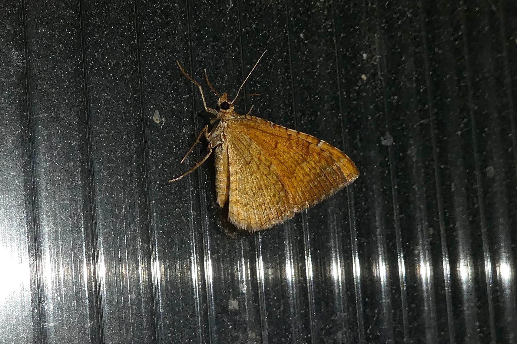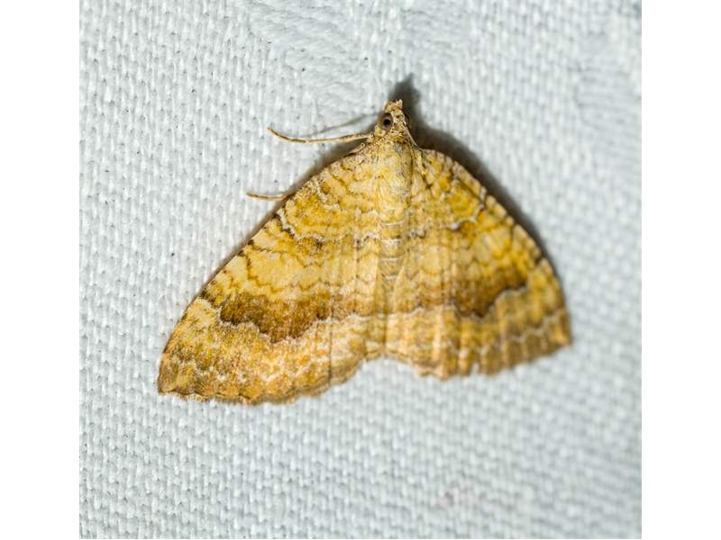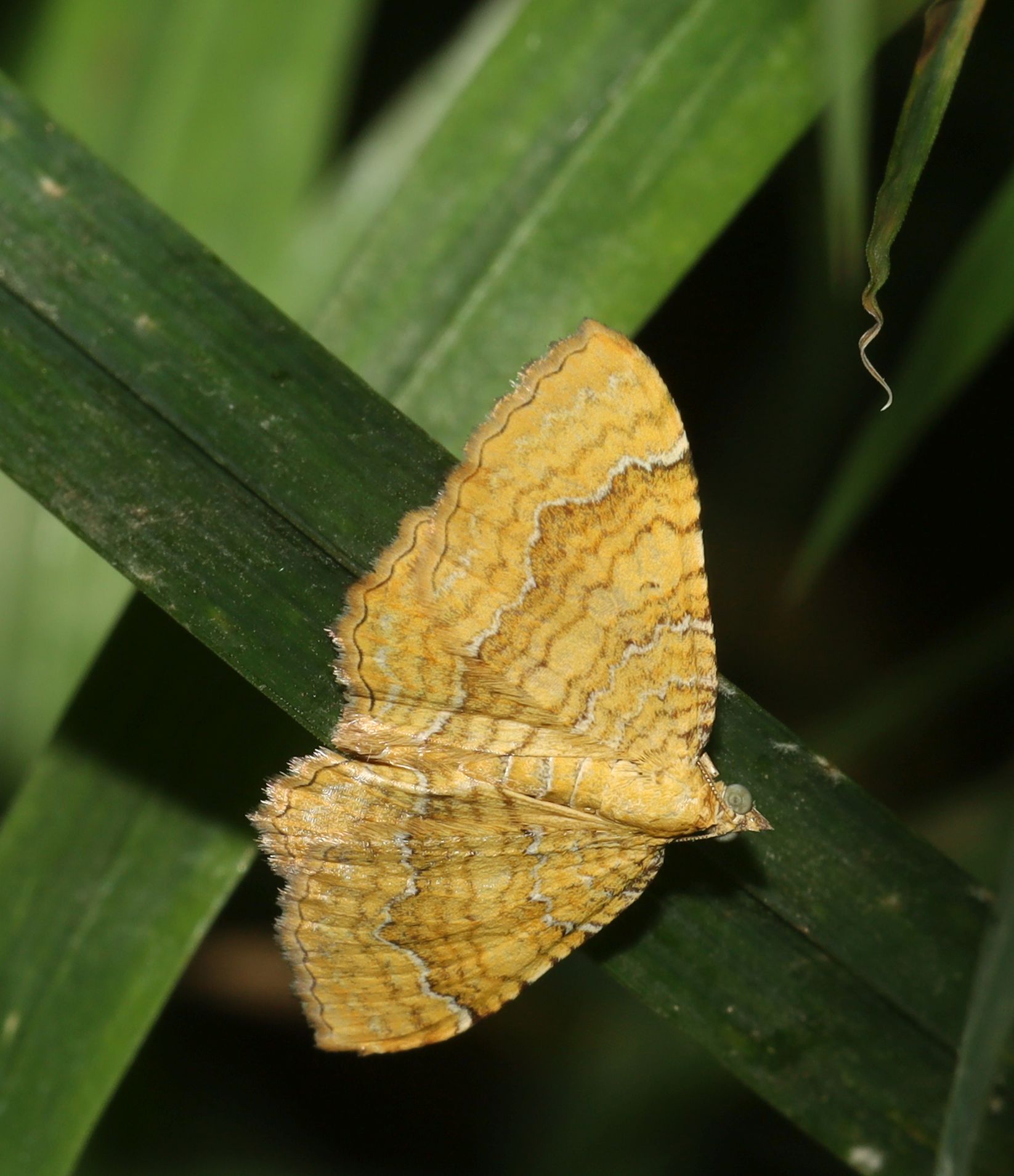 Ockergelbe Blattspanner, oder Löwenzahnspanner oder Brennnesselspanner (Camptogramma bilineata (Linnaeus, 1758)), am Licht, Radeberg, August 2013.