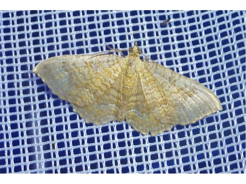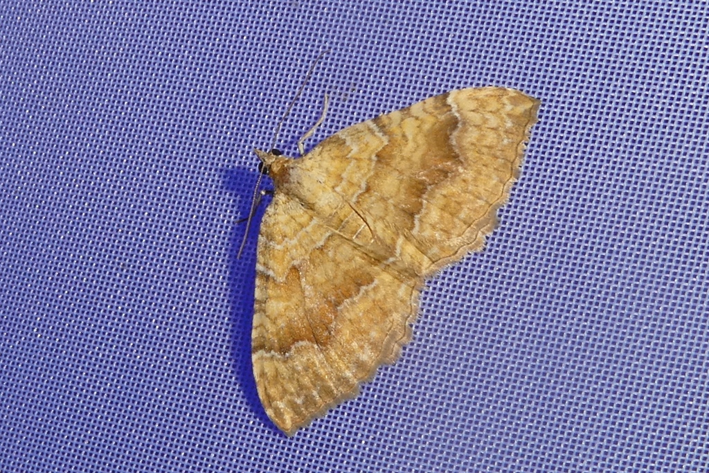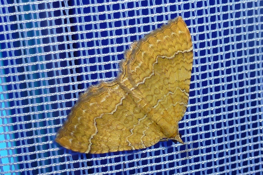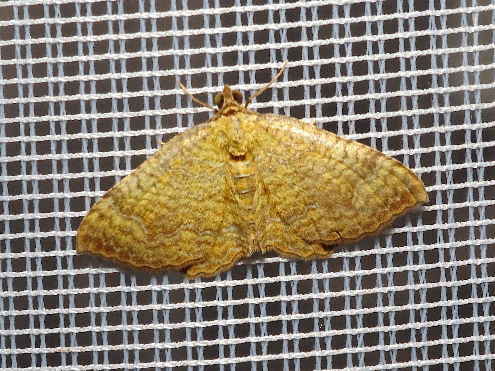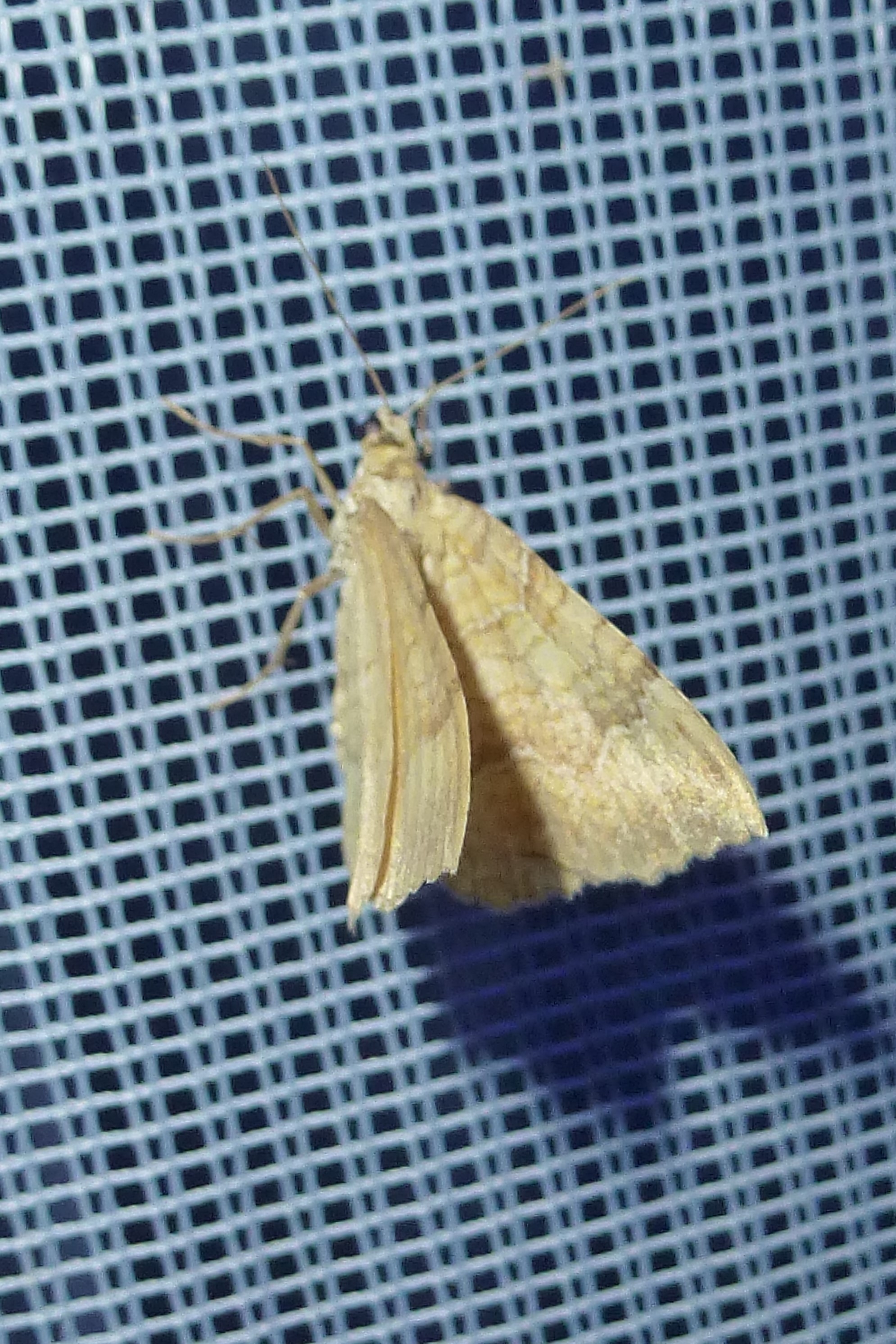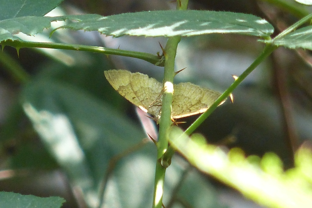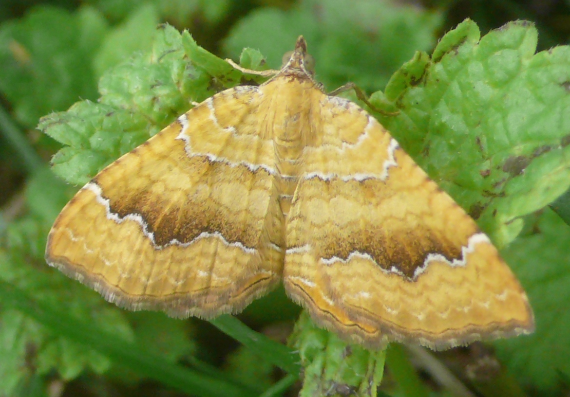Ockergelbe Blattspanner, oder Löwenzahnspanner oder Brennnesselspanner (Camptogramma bilineata (Linnaeus, 1758)), am Licht, Radeberg, August 2013.