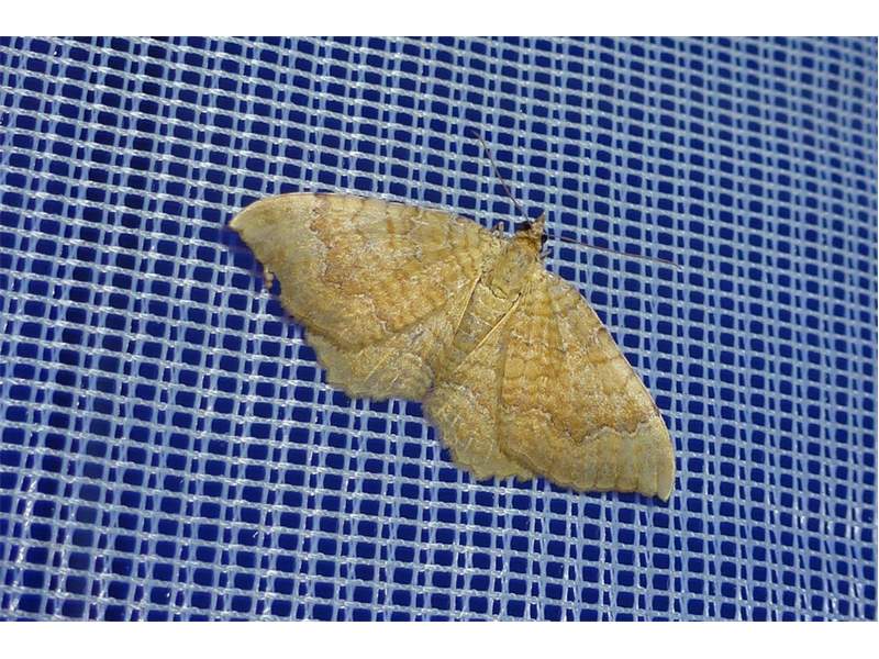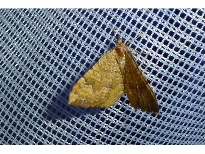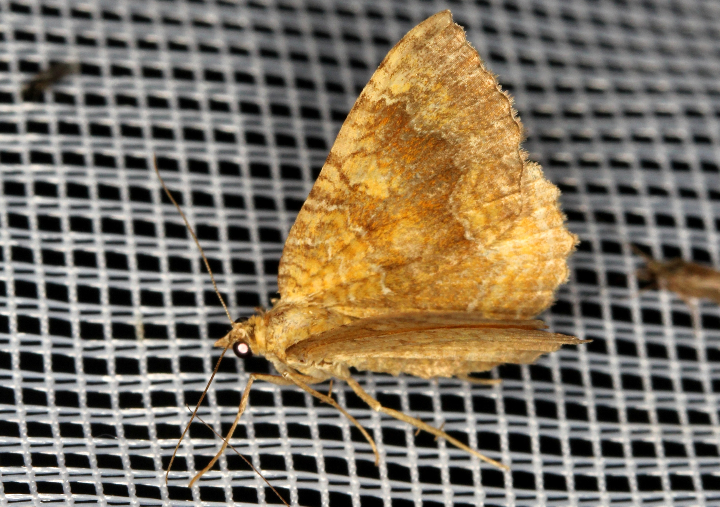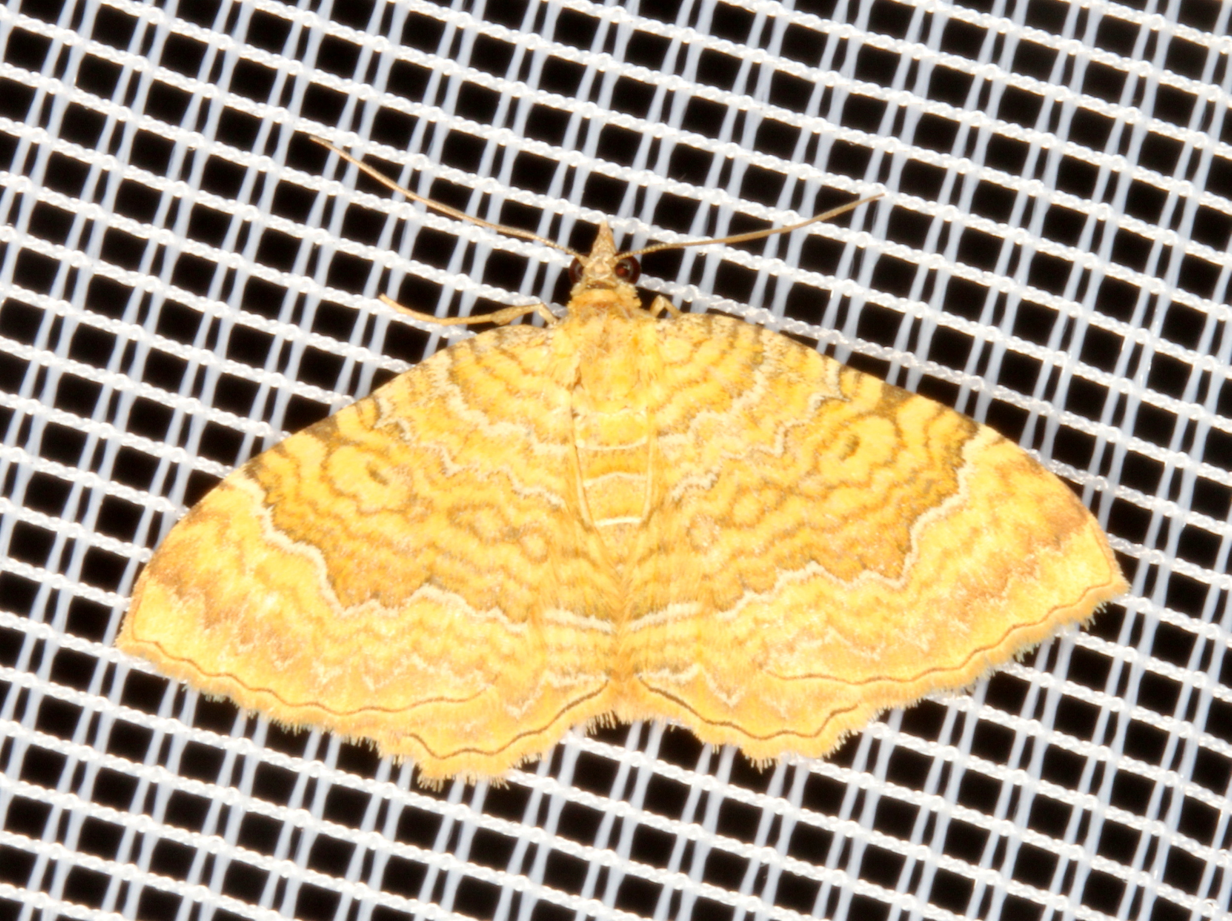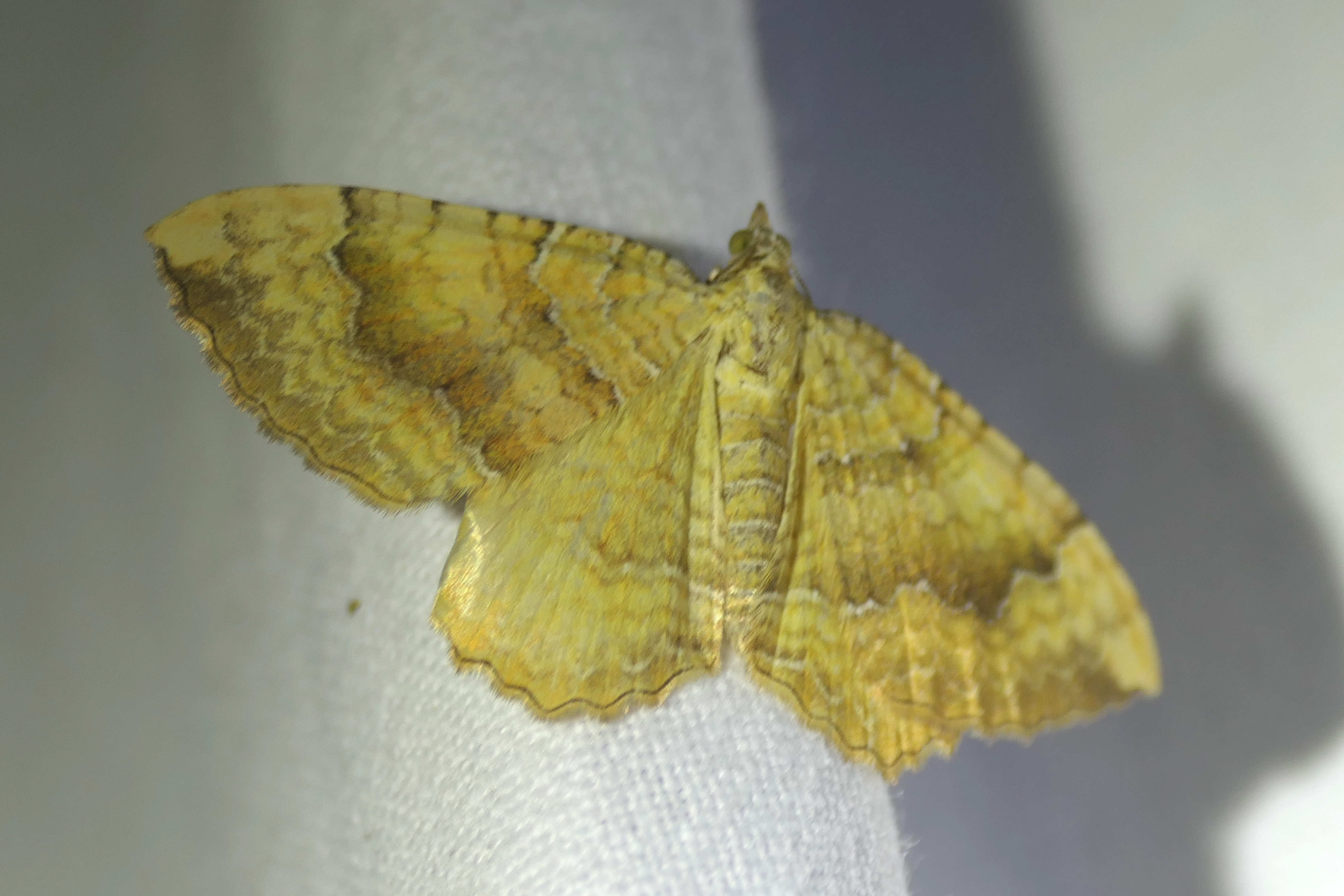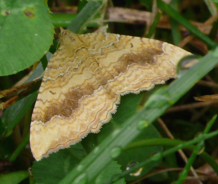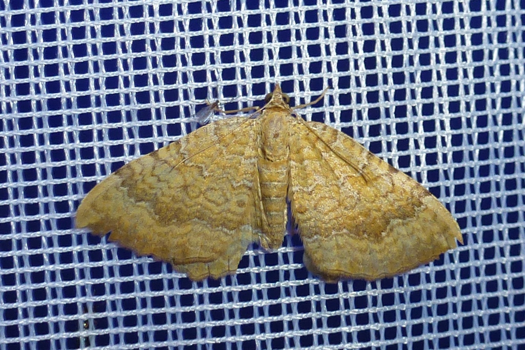 Ockergelbe Blattspanner, oder Löwenzahnspanner oder Brennnesselspanner (Camptogramma bilineata (Linnaeus, 1758)), am Licht, Radeberg, August 2013.