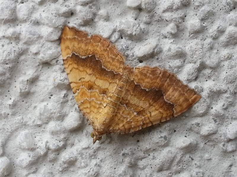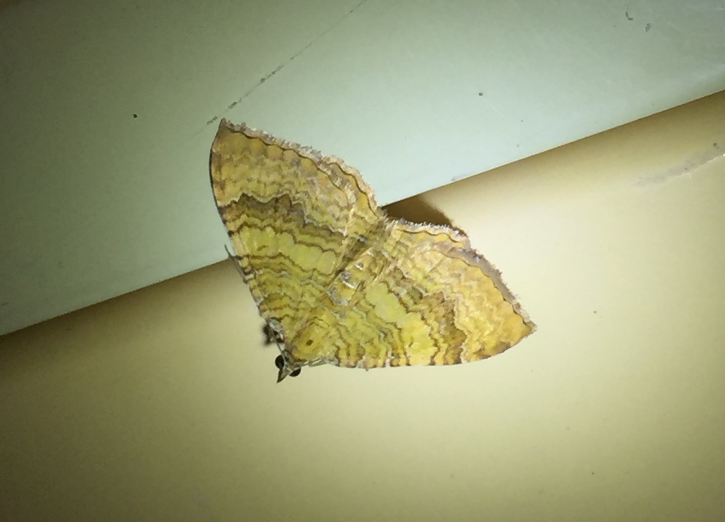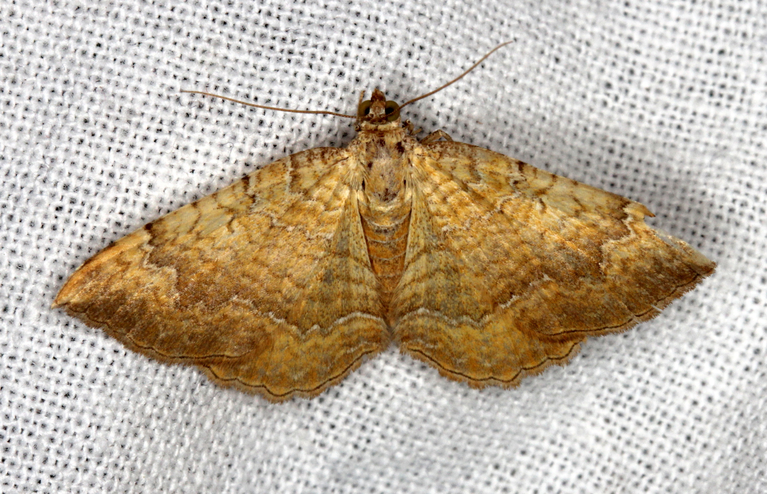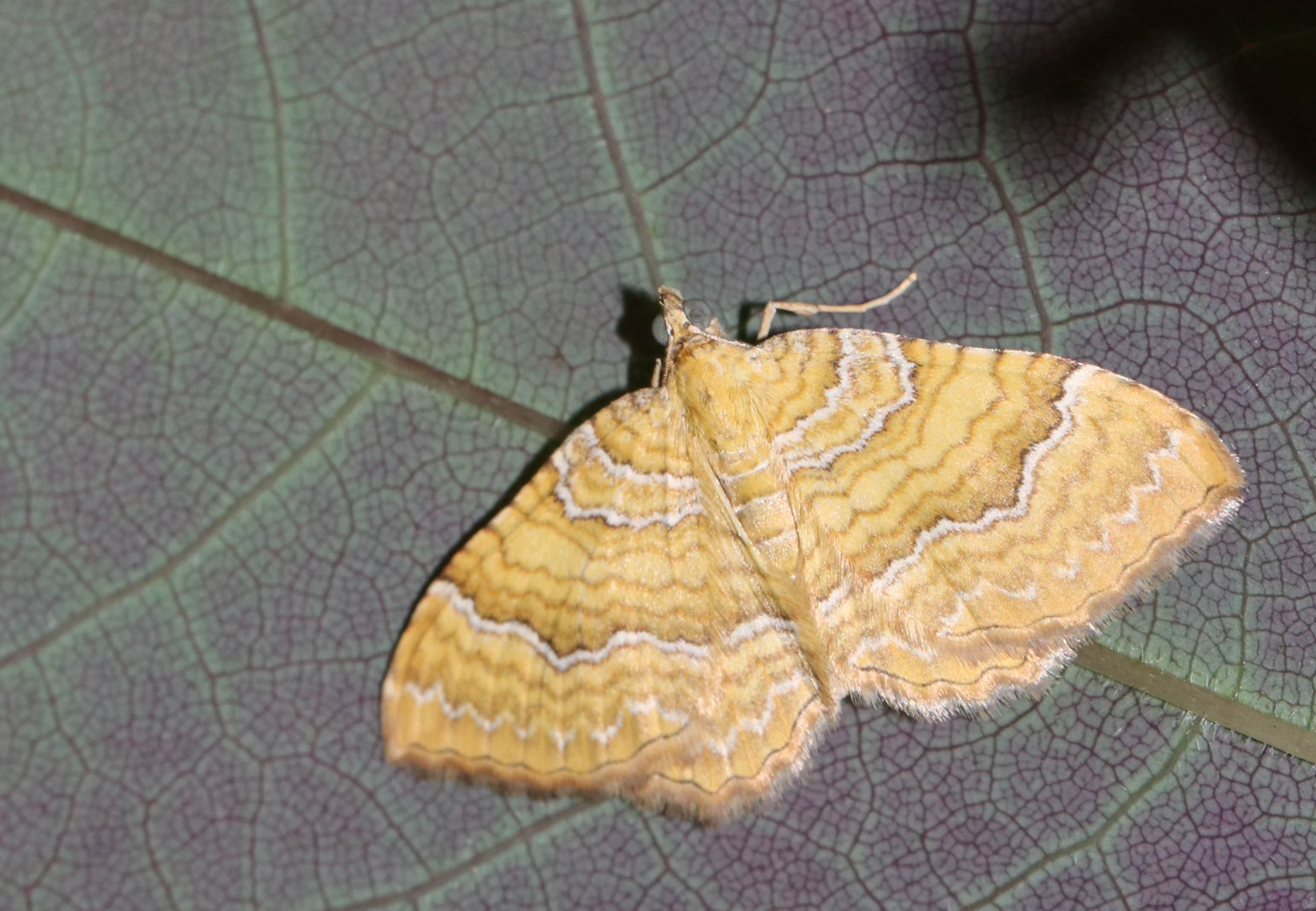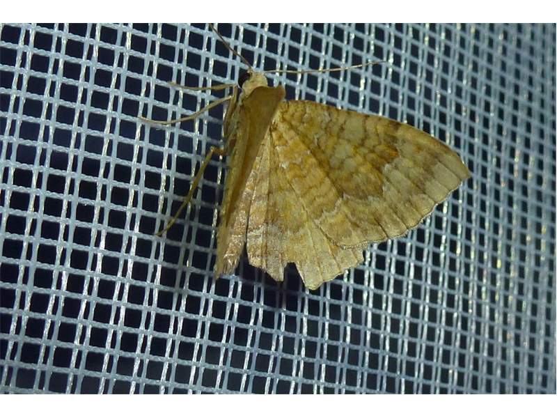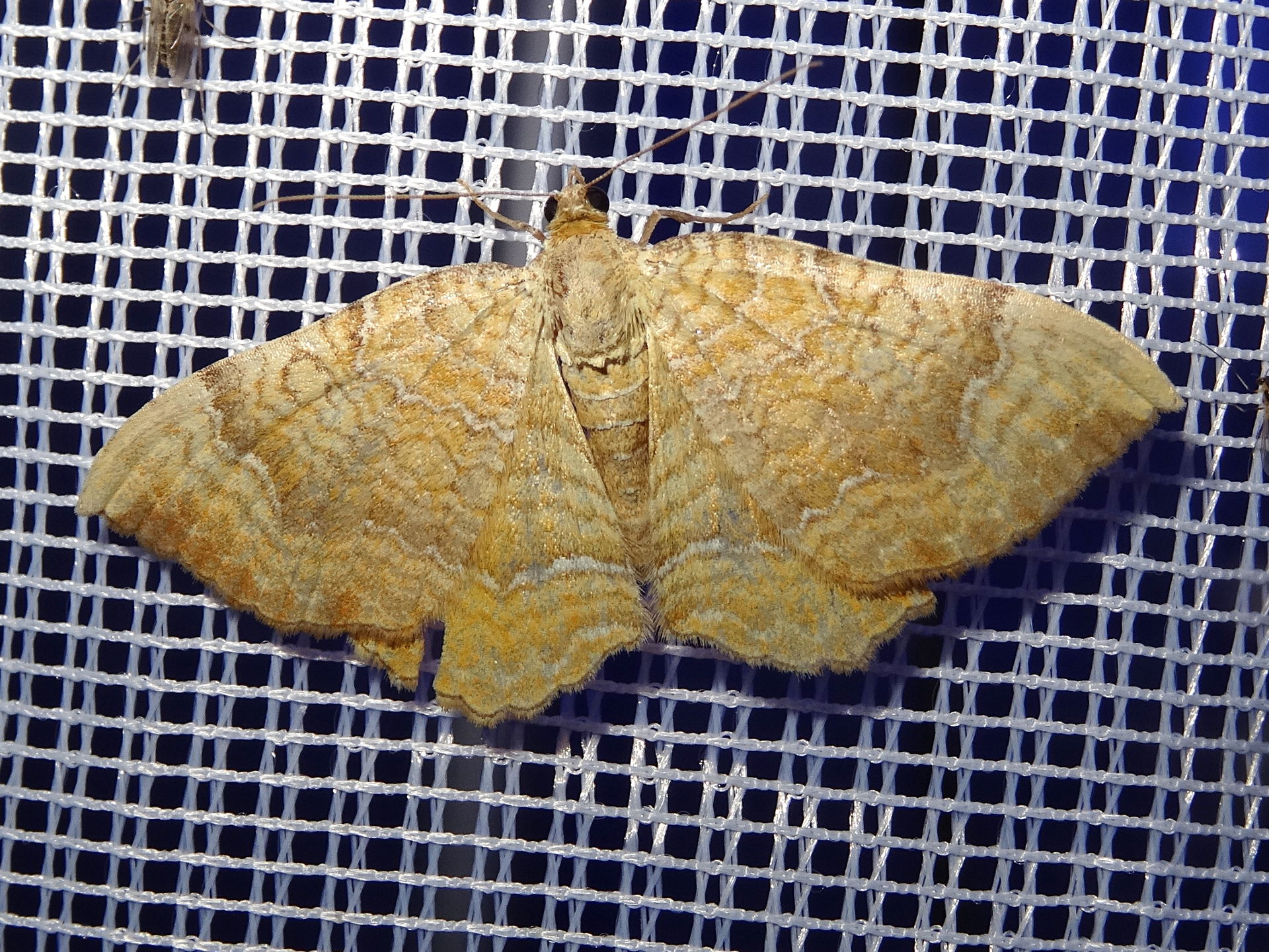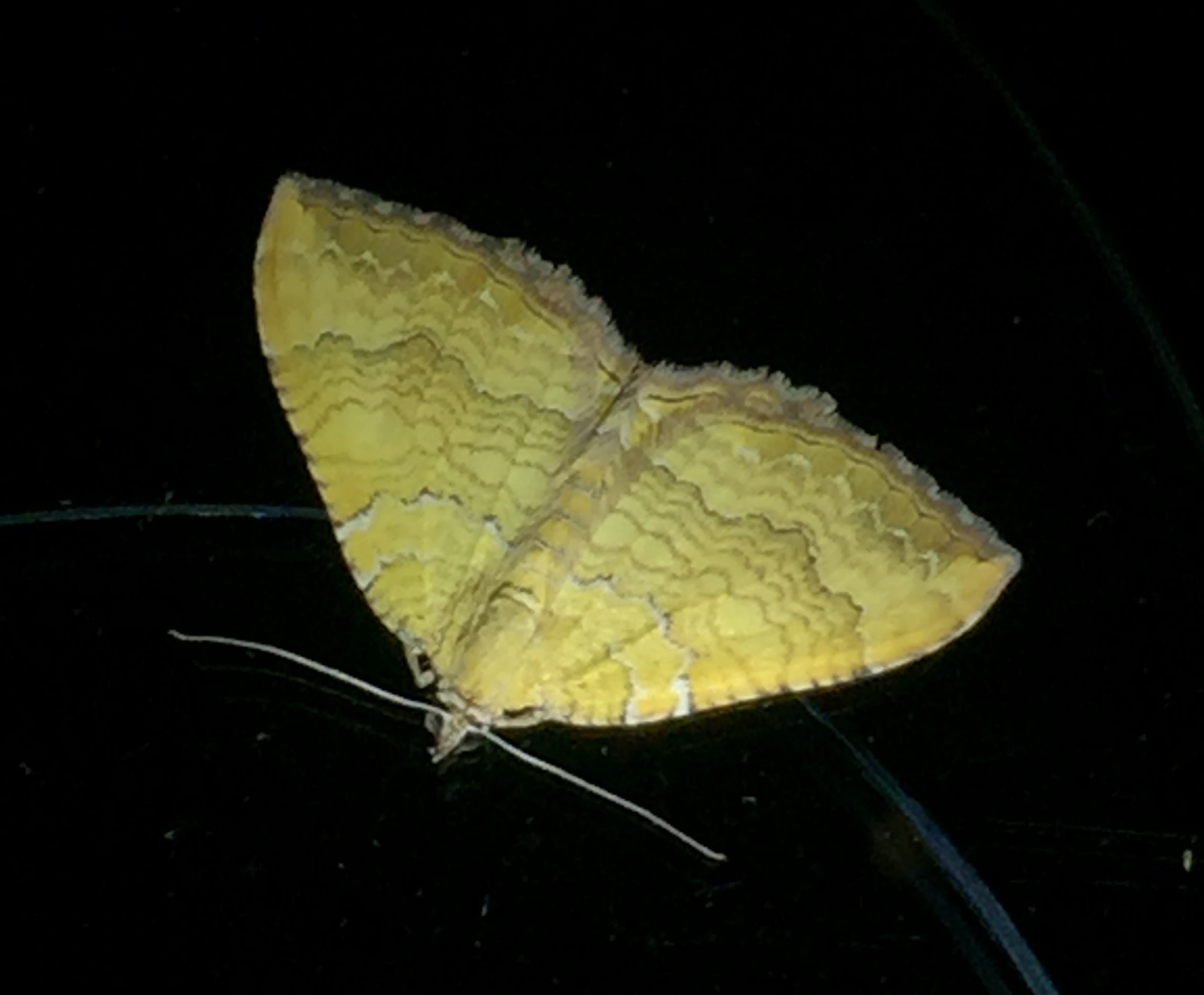 Ockergelbe Blattspanner, oder Löwenzahnspanner oder Brennnesselspanner (Camptogramma bilineata (Linnaeus, 1758)), am Licht, Radeberg, August 2013.