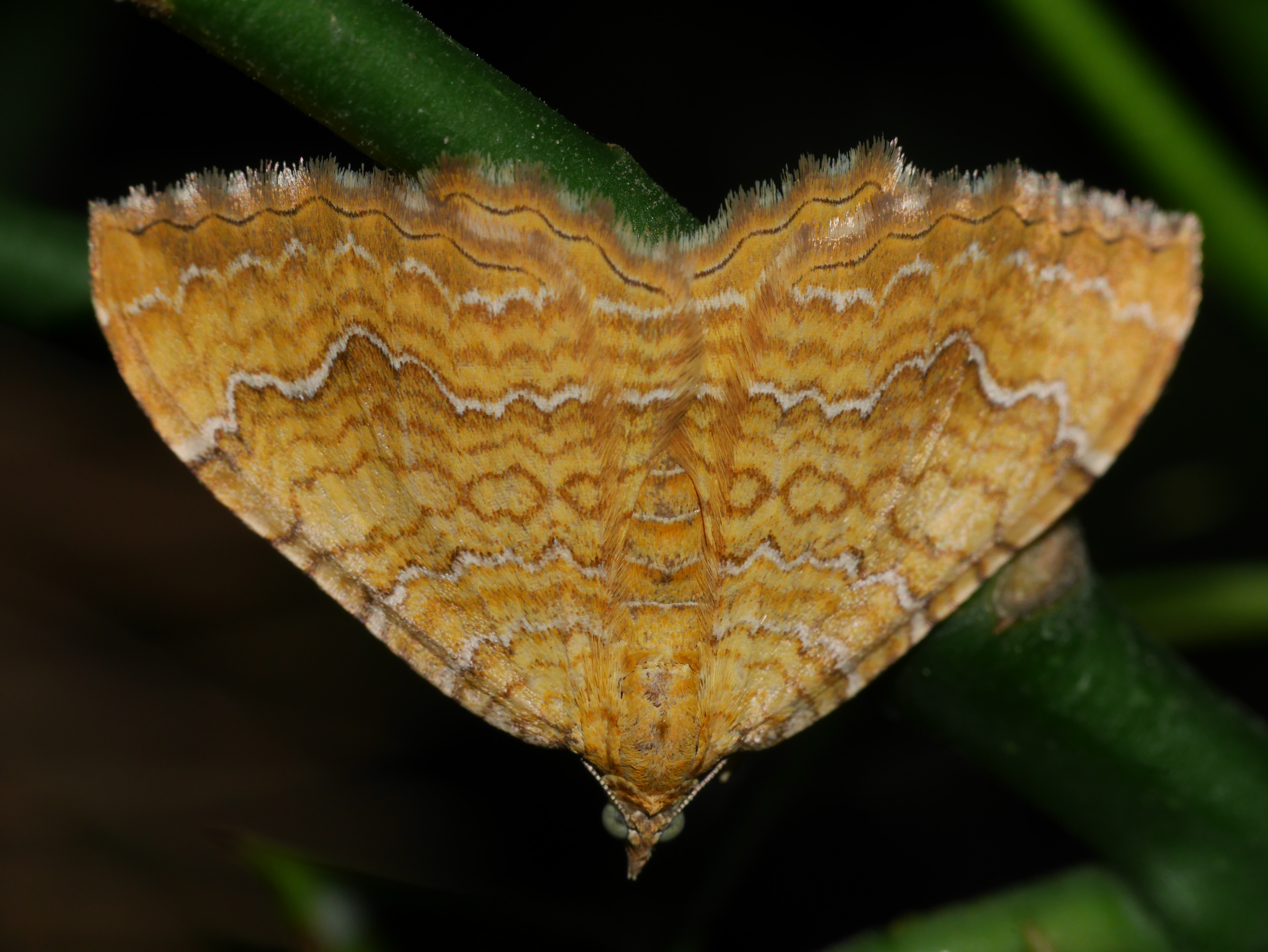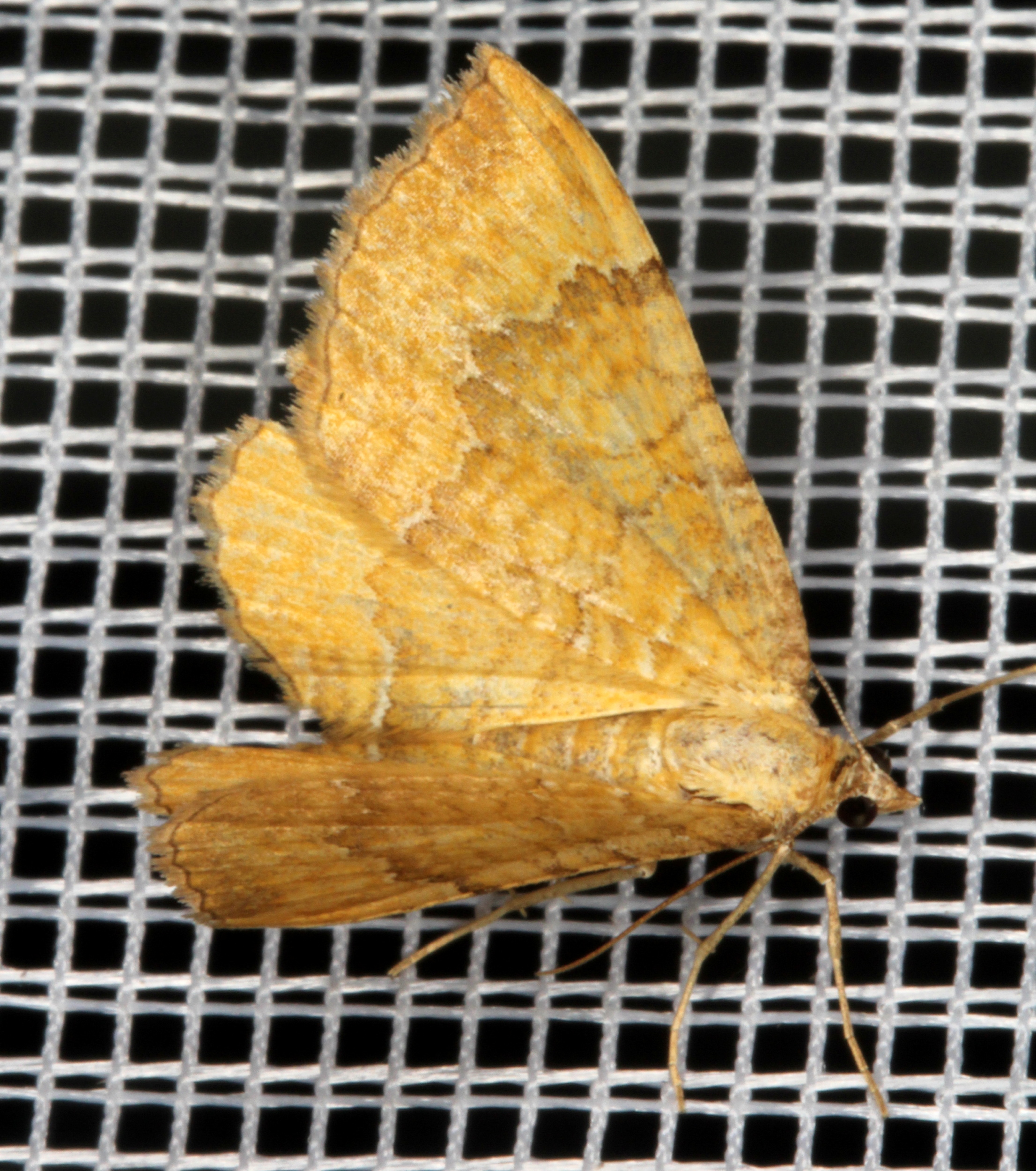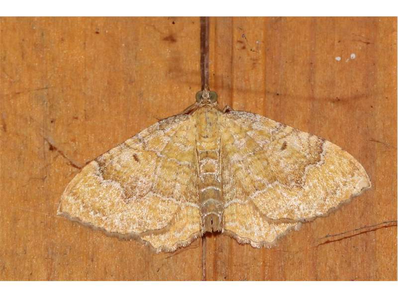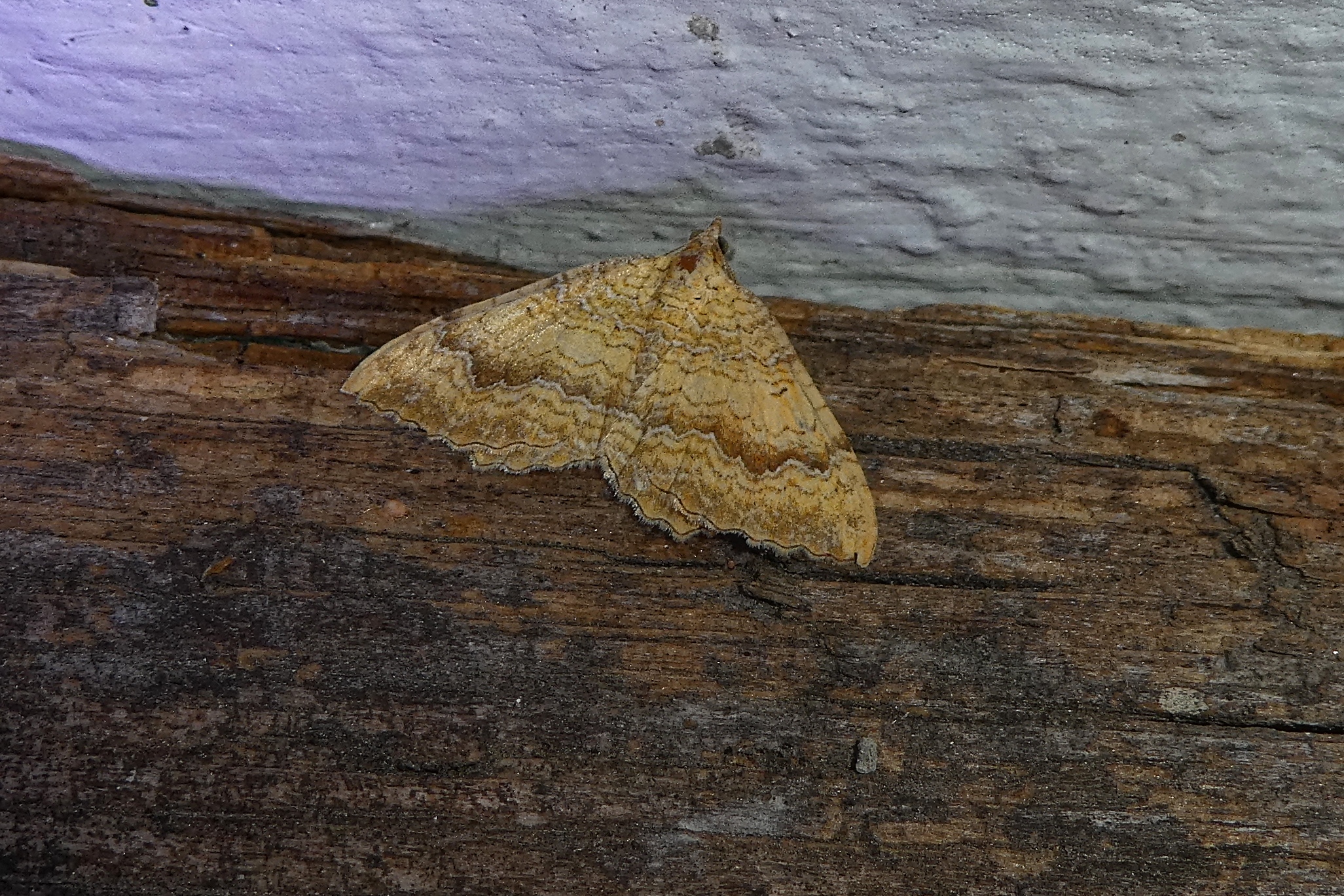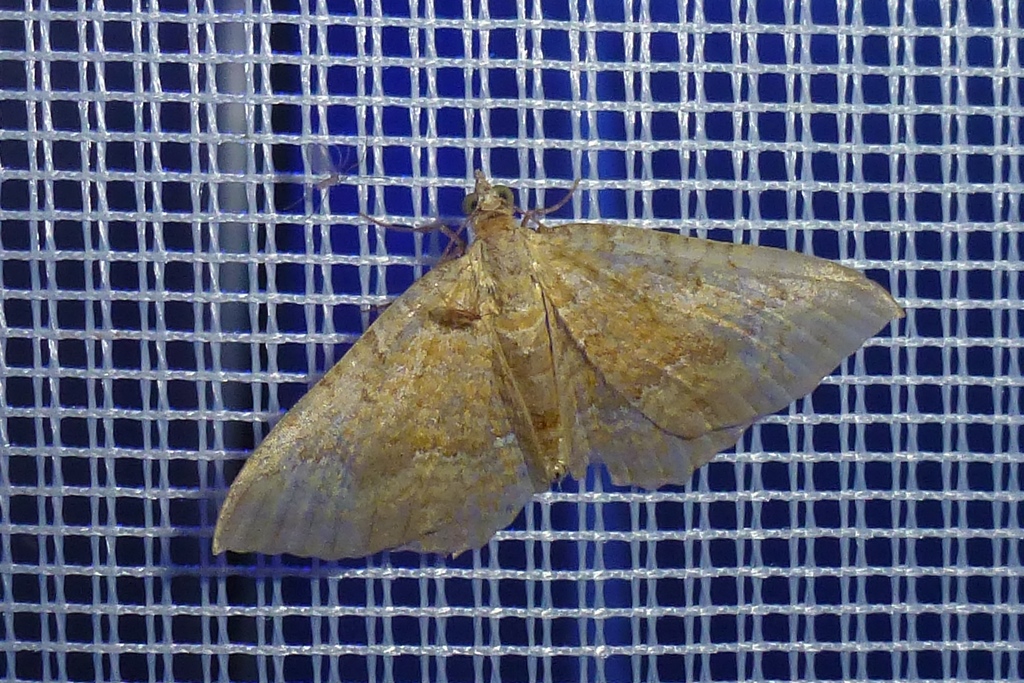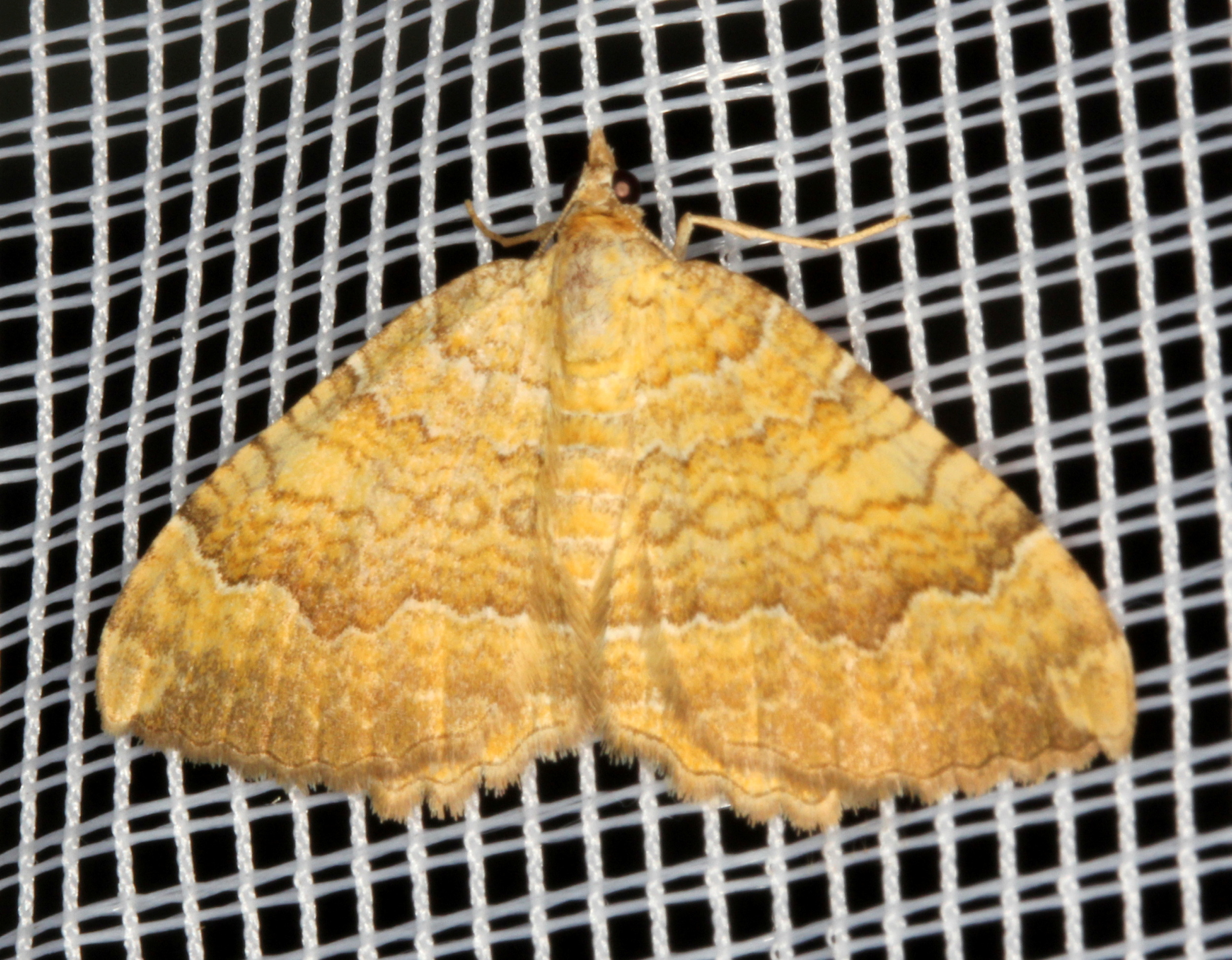 Ockergelbe Blattspanner, oder Löwenzahnspanner oder Brennnesselspanner (Camptogramma bilineata (Linnaeus, 1758)), am Licht, Radeberg, August 2013.