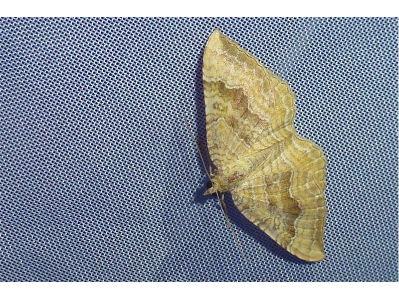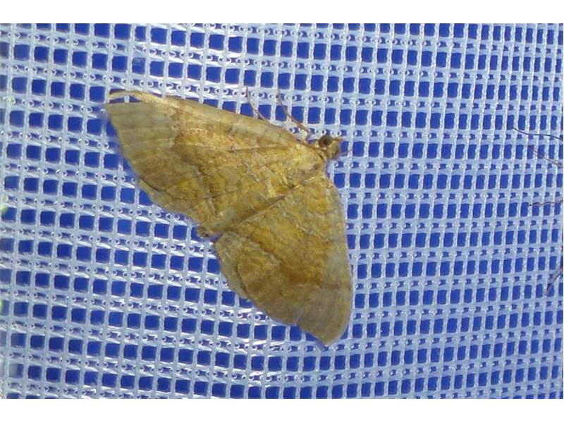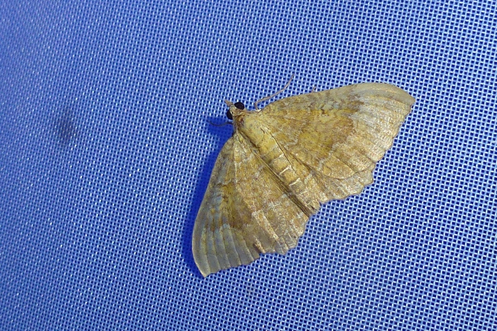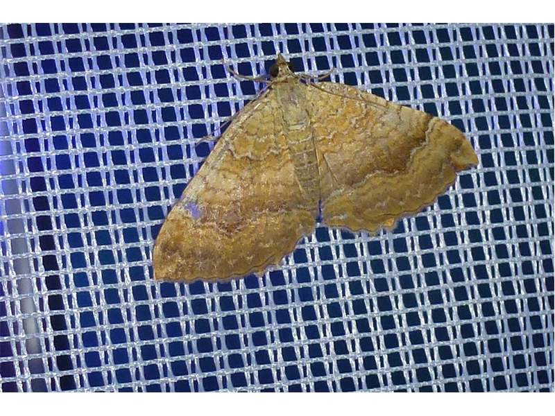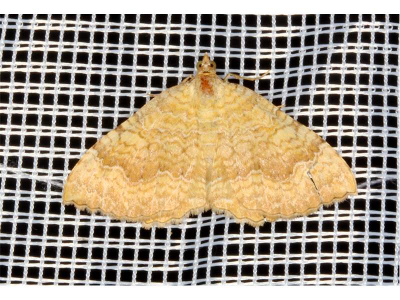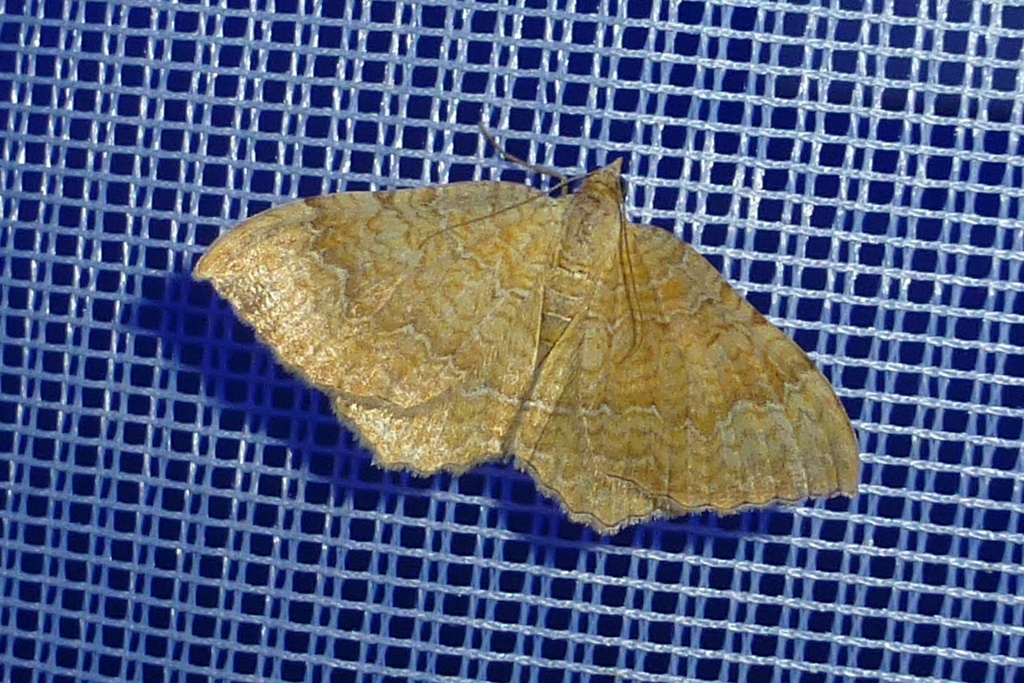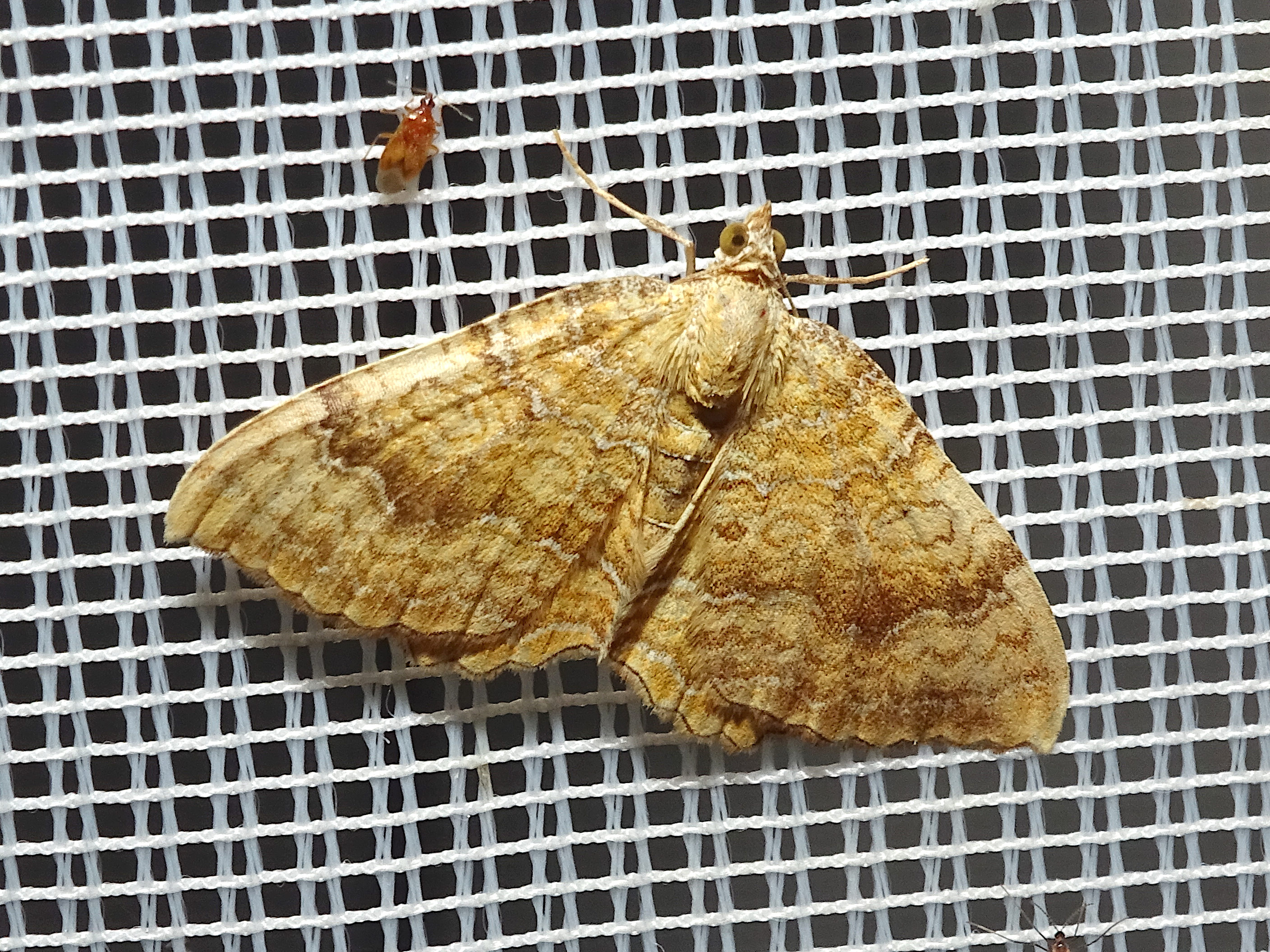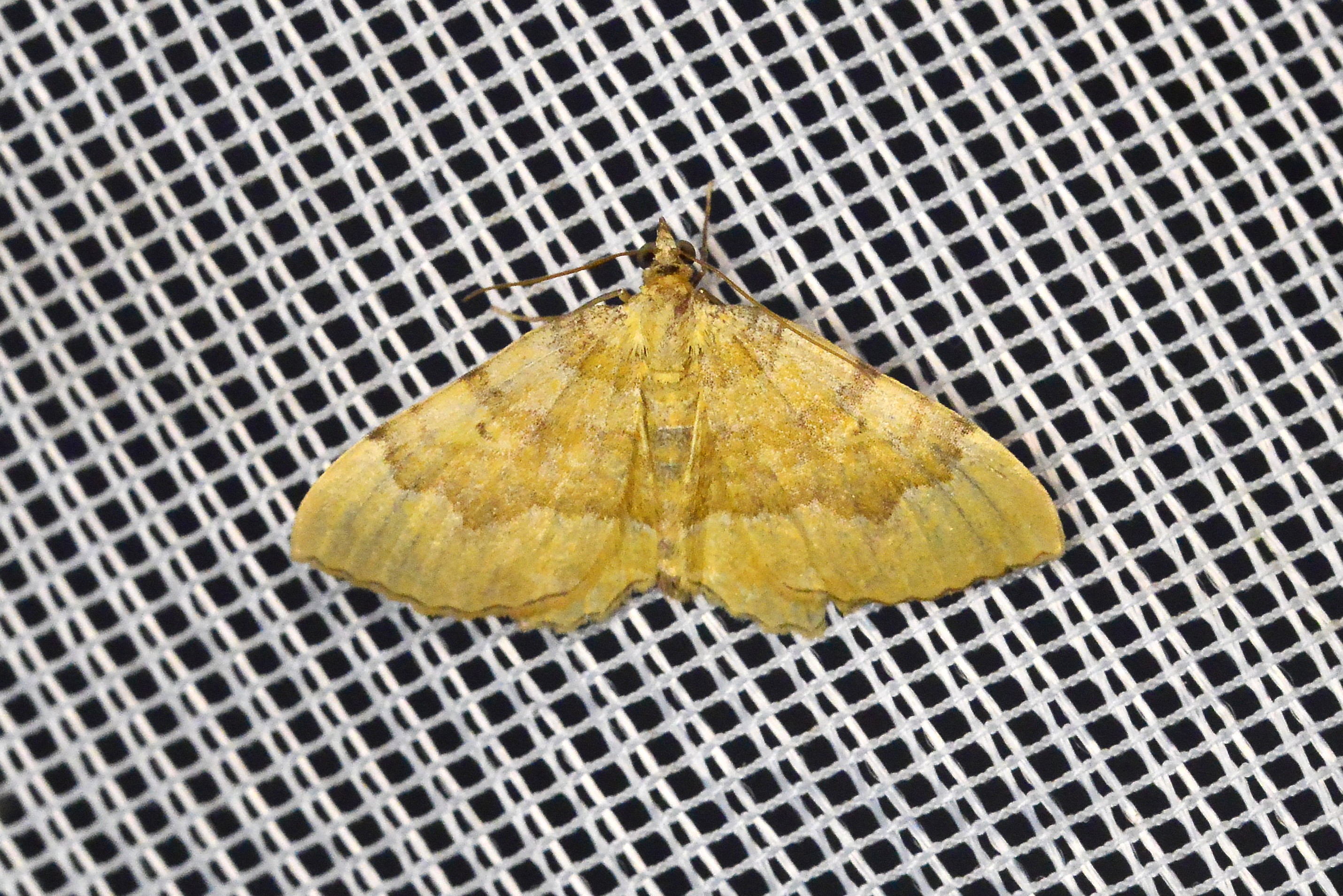 Ockergelbe Blattspanner, oder Löwenzahnspanner oder Brennnesselspanner (Camptogramma bilineata (Linnaeus, 1758)), am Licht, Radeberg, August 2013.