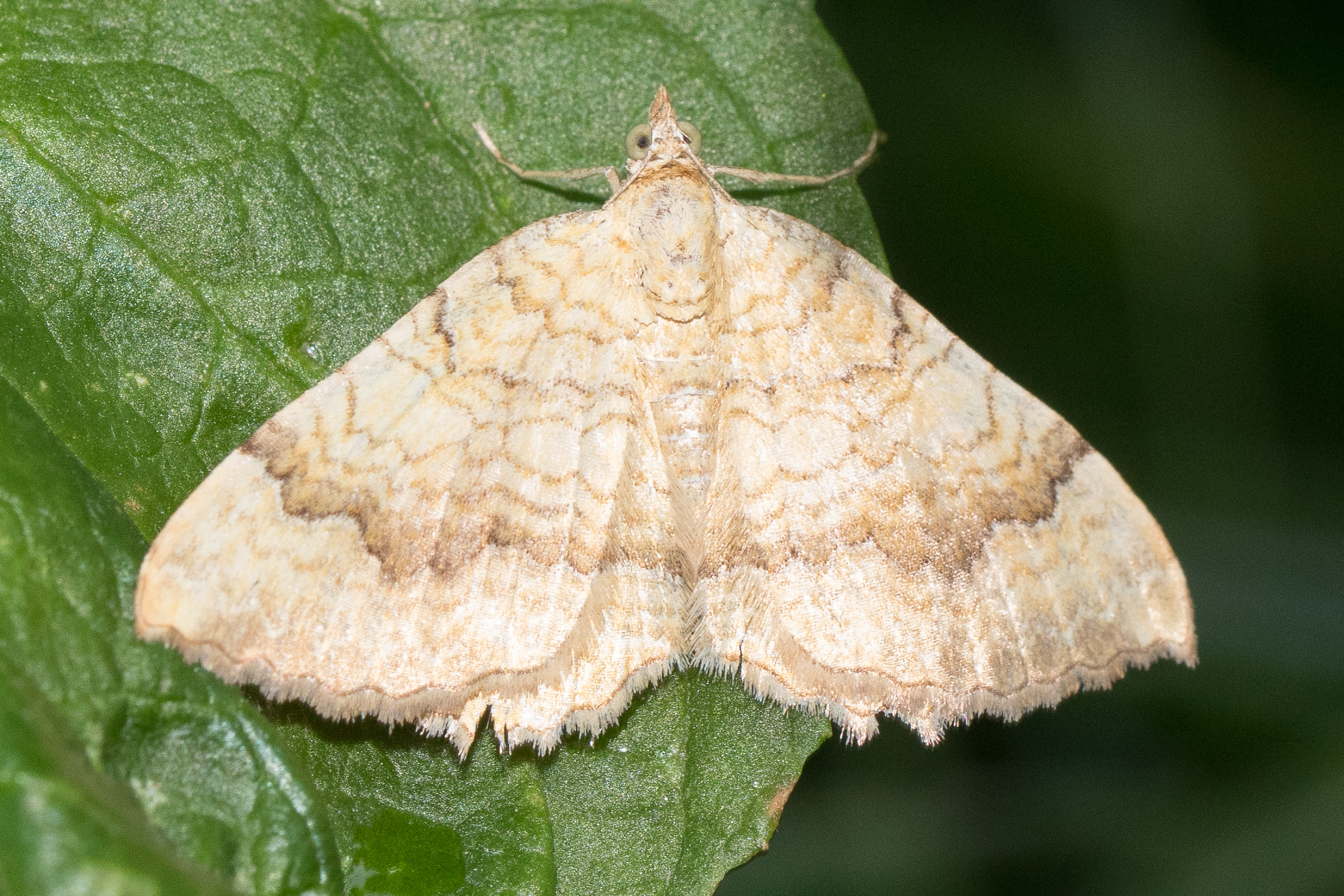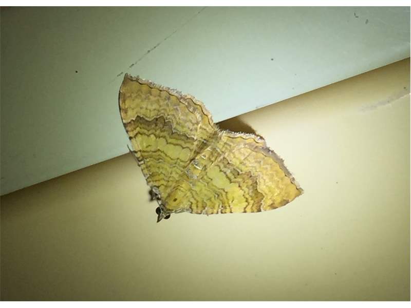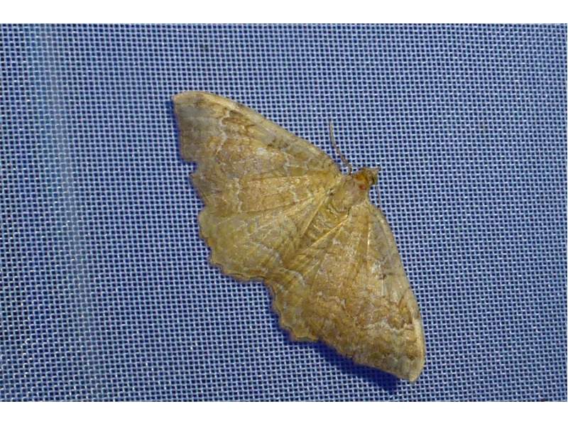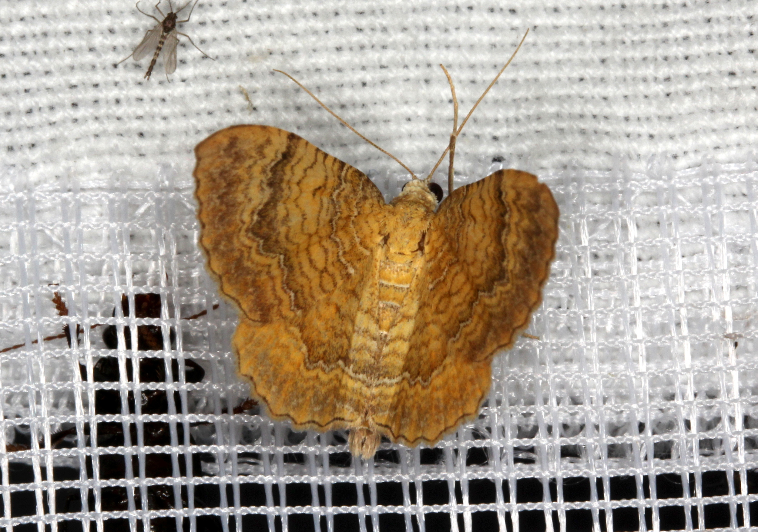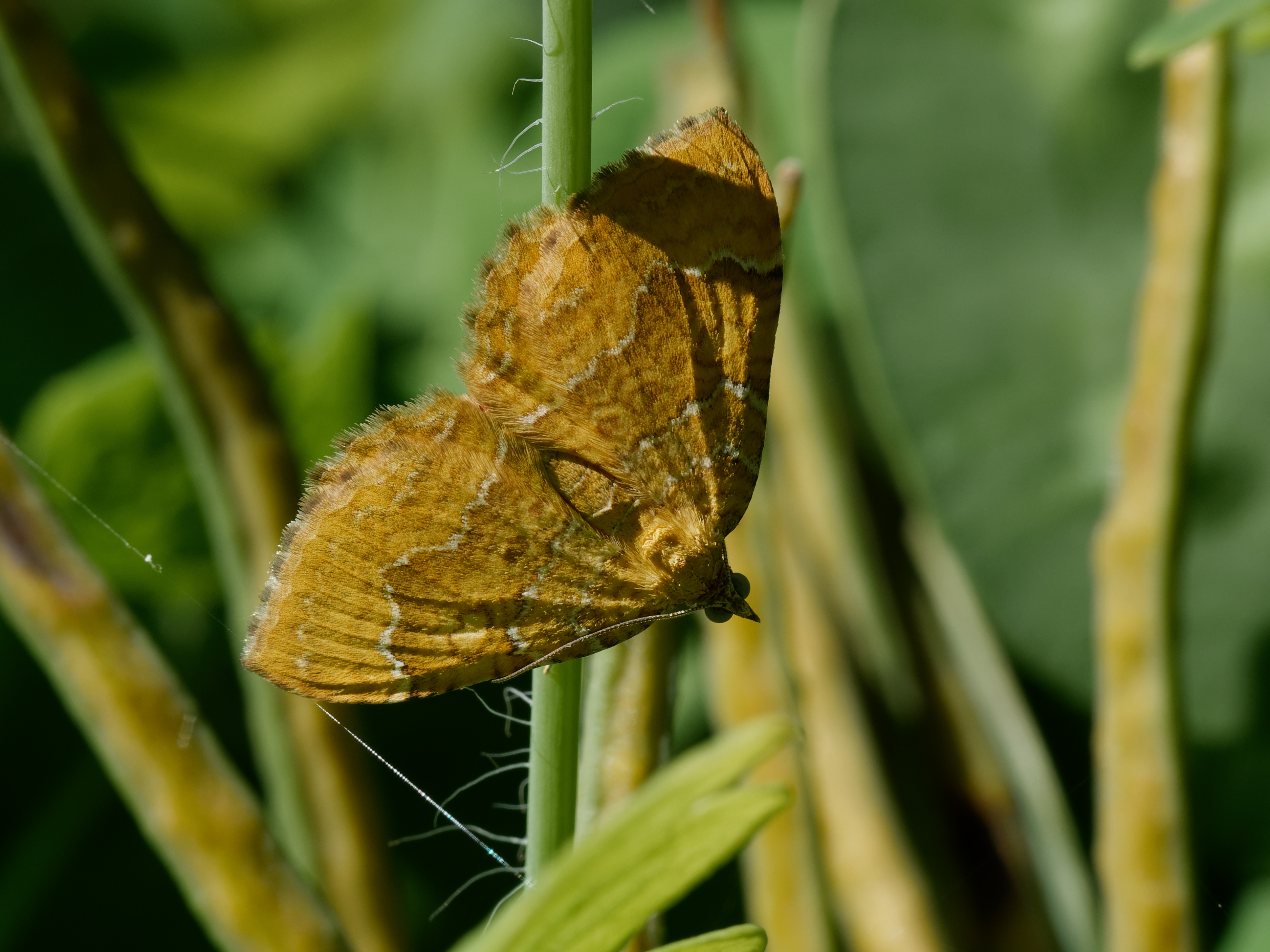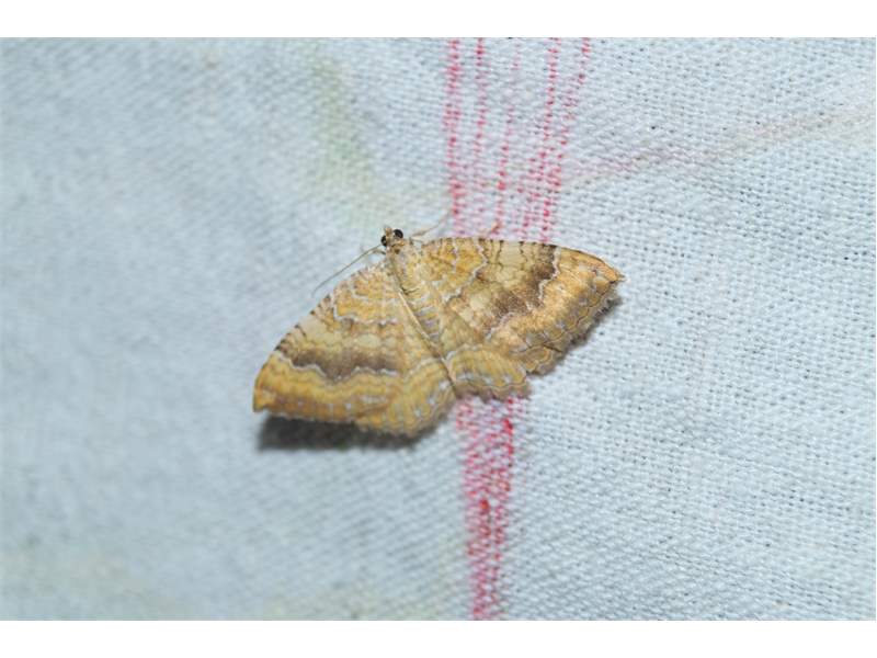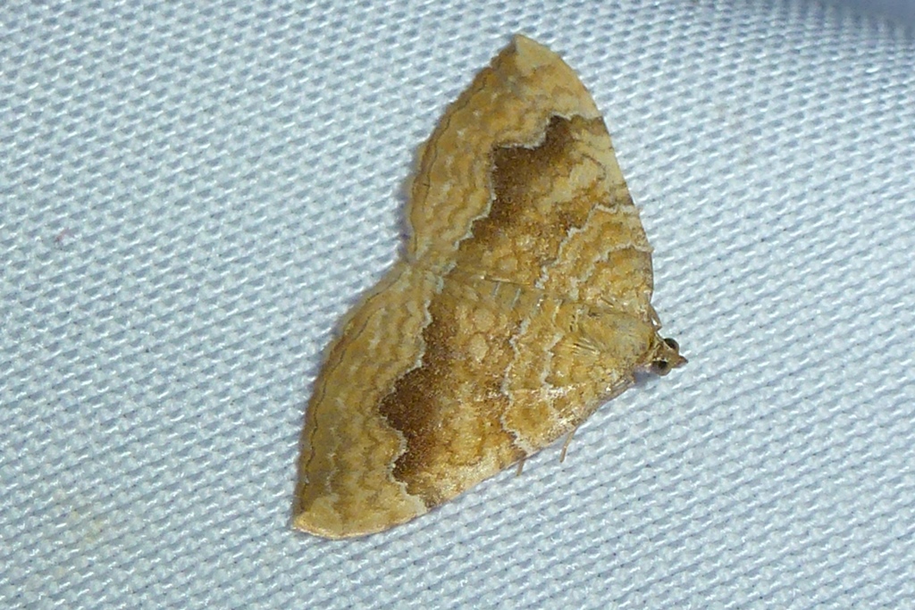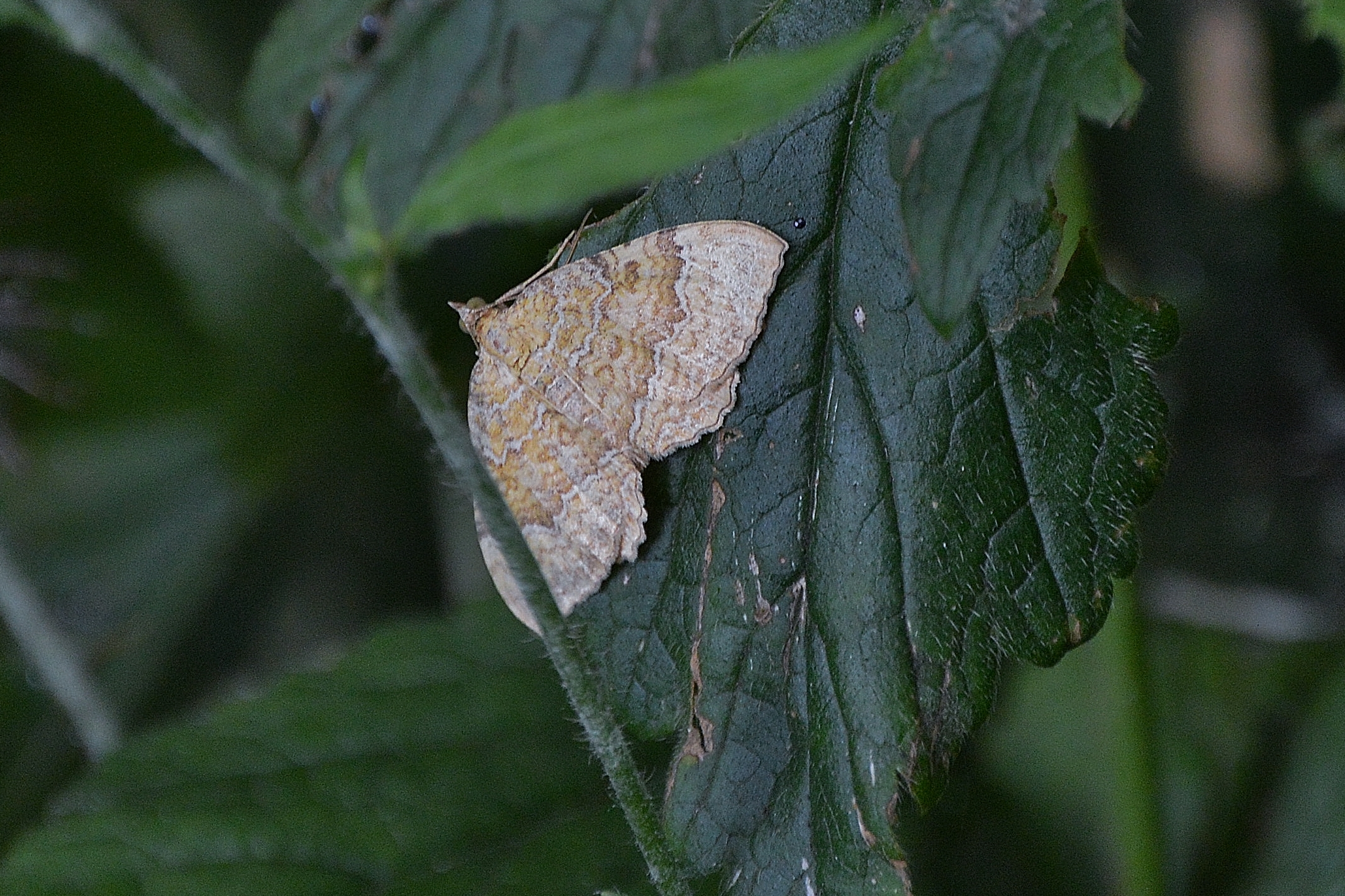 Ockergelbe Blattspanner, oder Löwenzahnspanner oder Brennnesselspanner (Camptogramma bilineata (Linnaeus, 1758)), am Licht, Radeberg, August 2013.