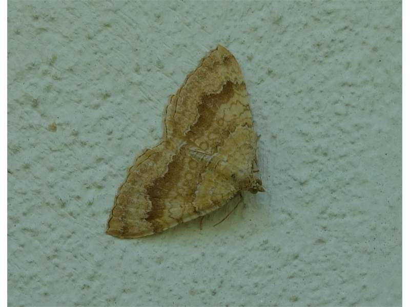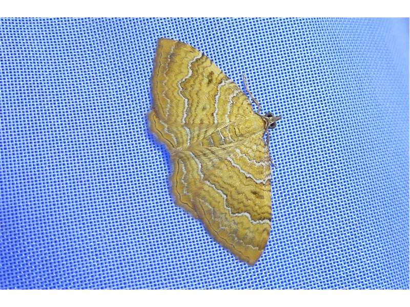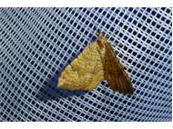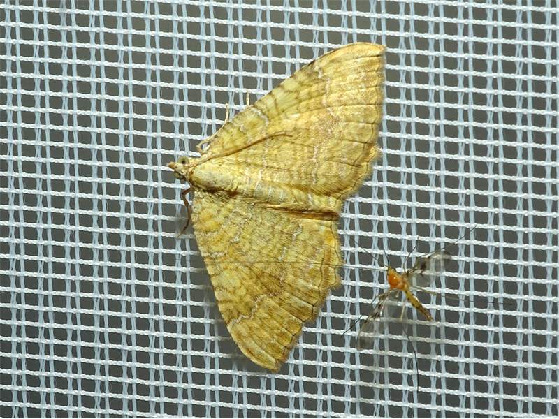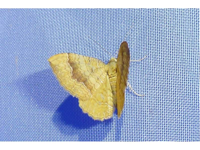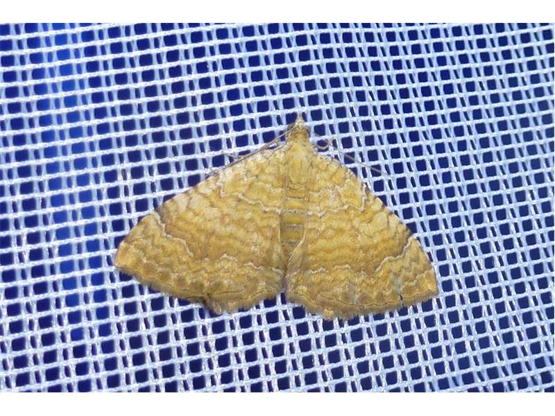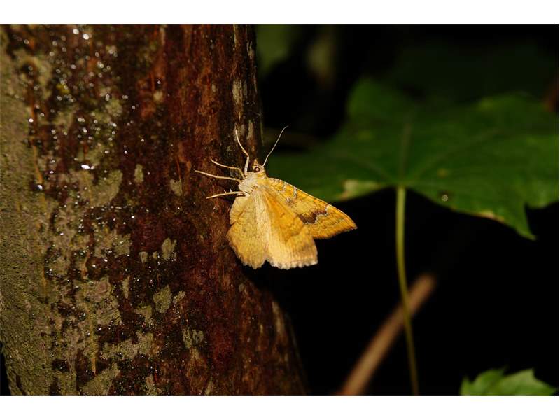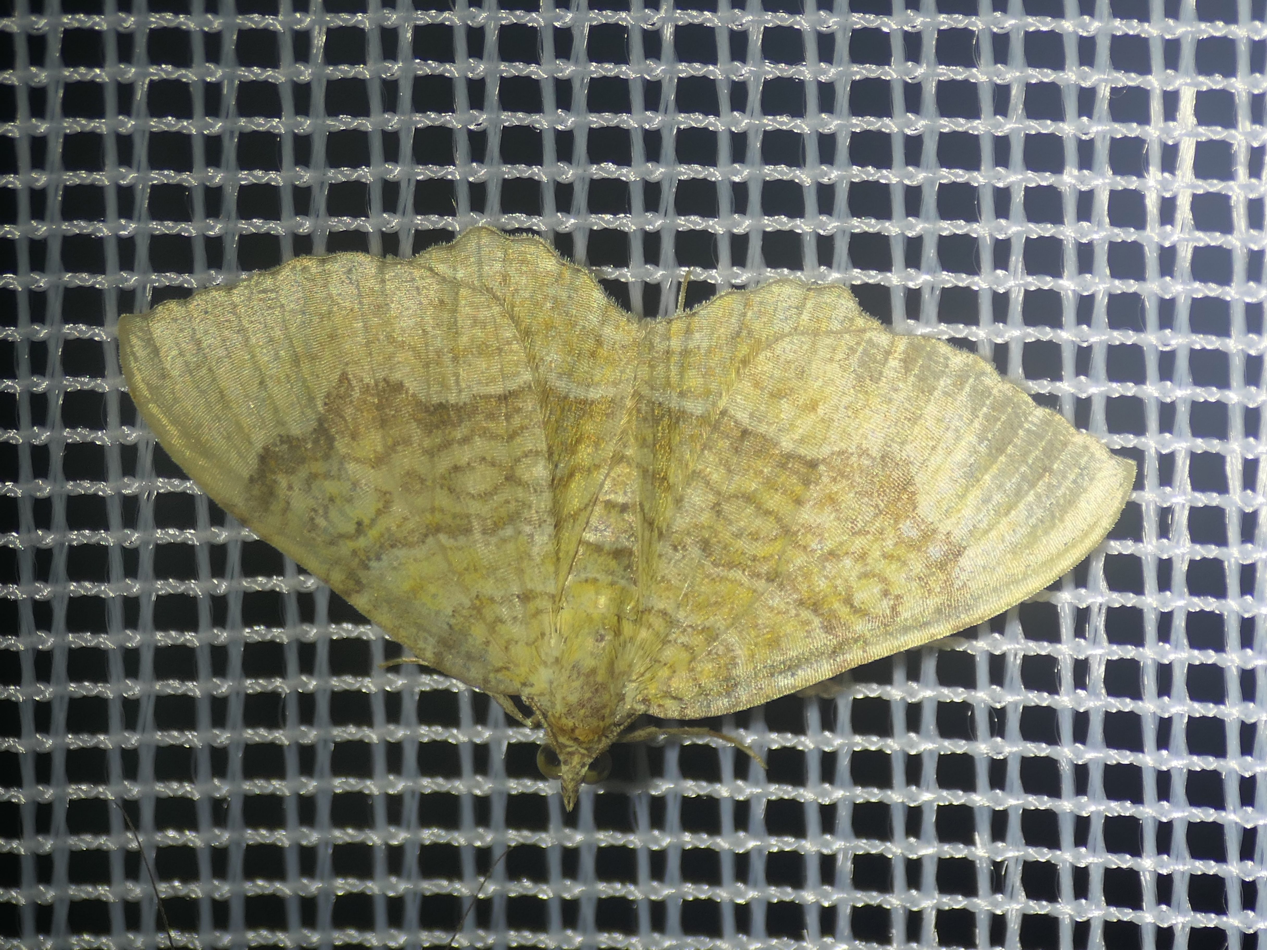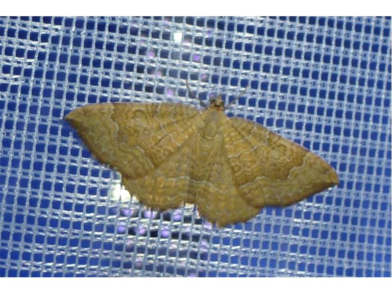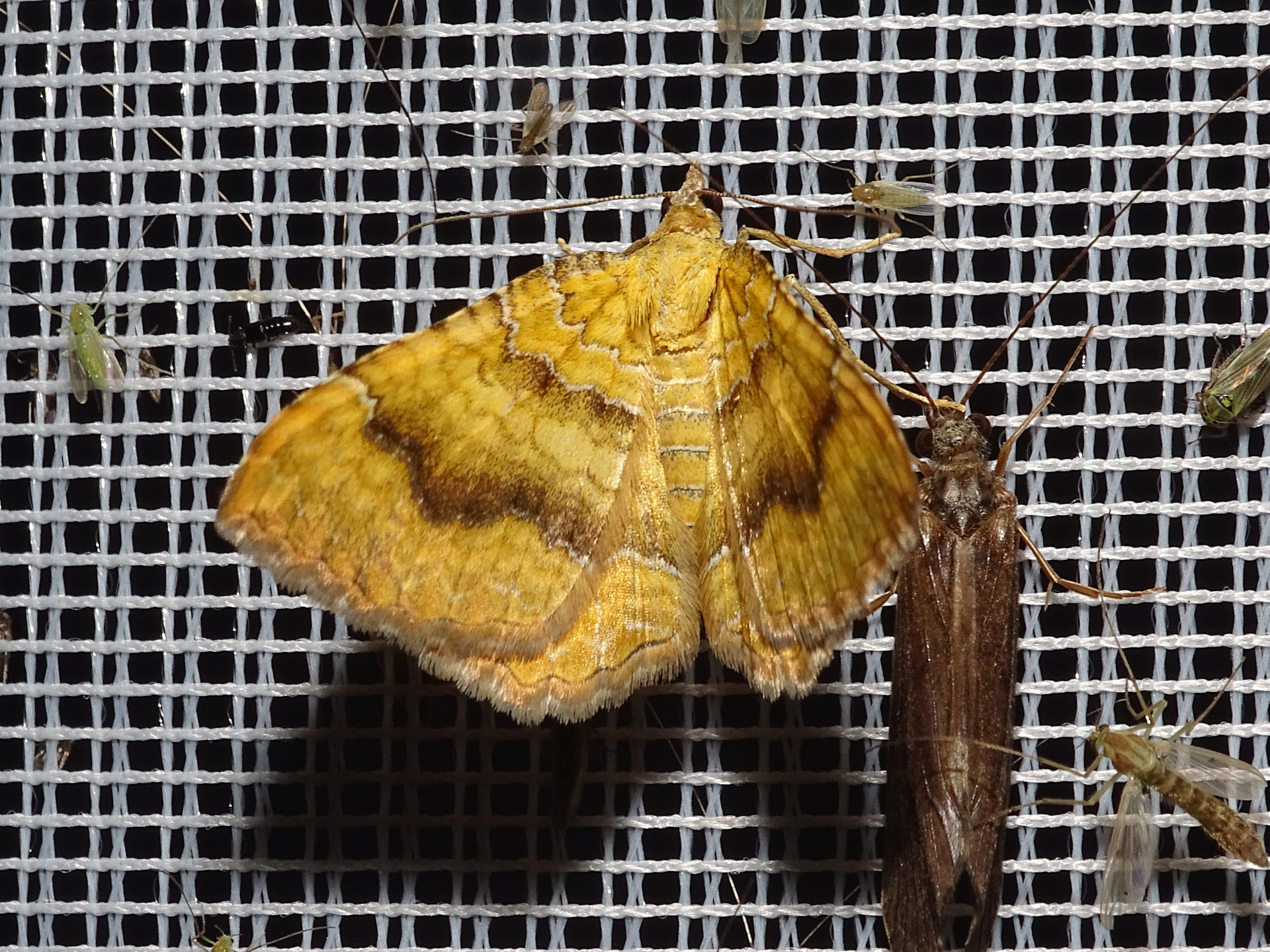 Ockergelbe Blattspanner, oder Löwenzahnspanner oder Brennnesselspanner (Camptogramma bilineata (Linnaeus, 1758)), am Licht, Radeberg, August 2013.