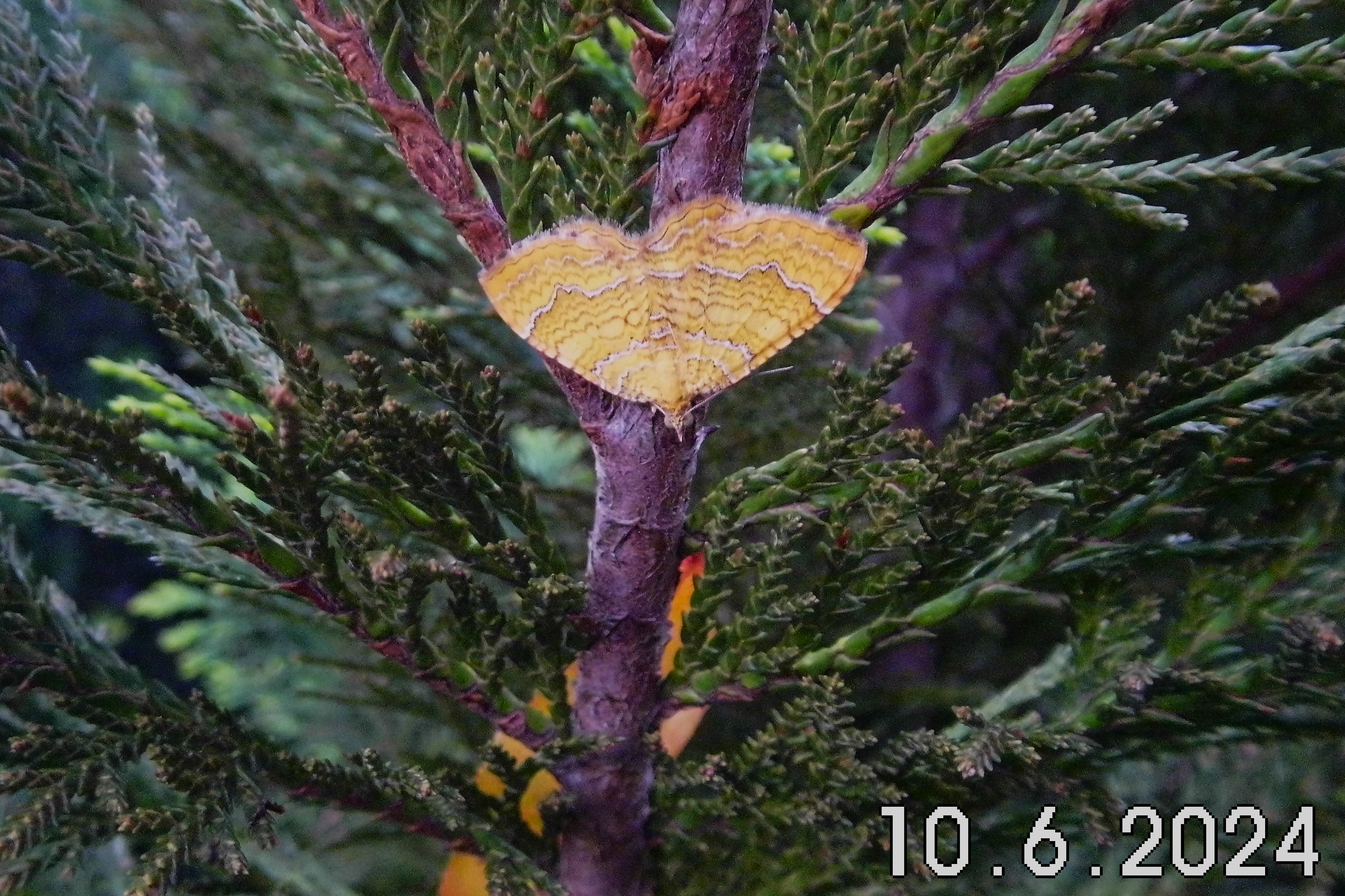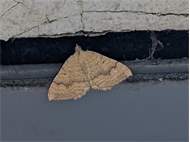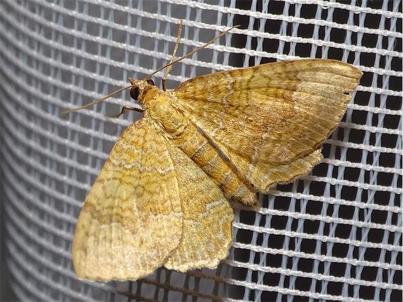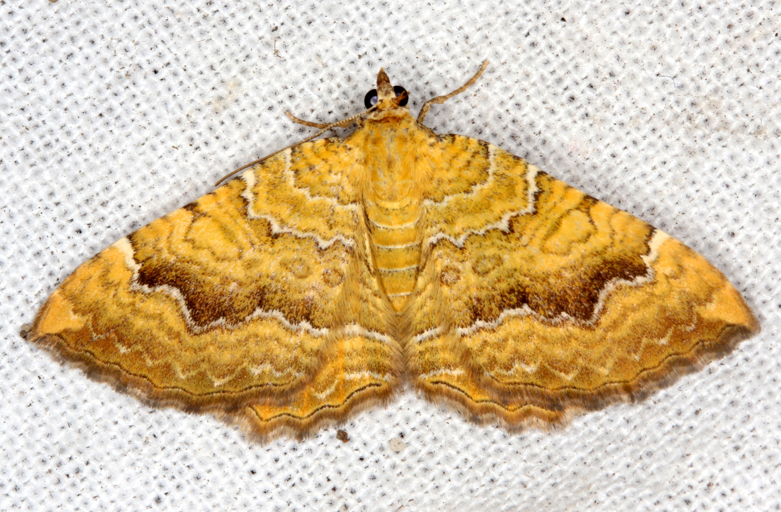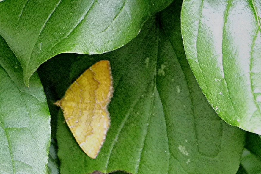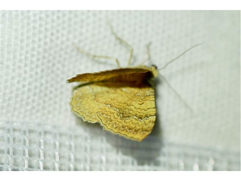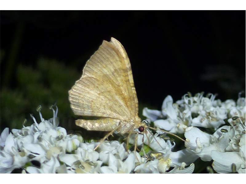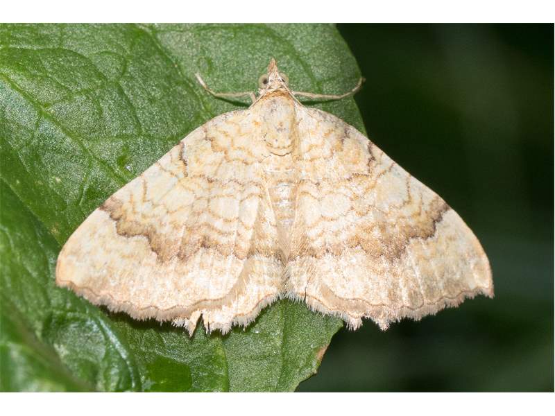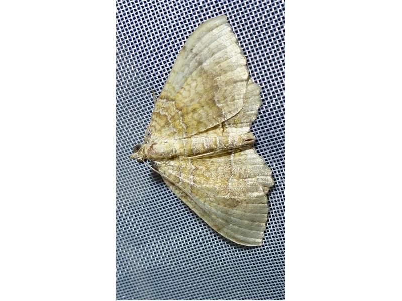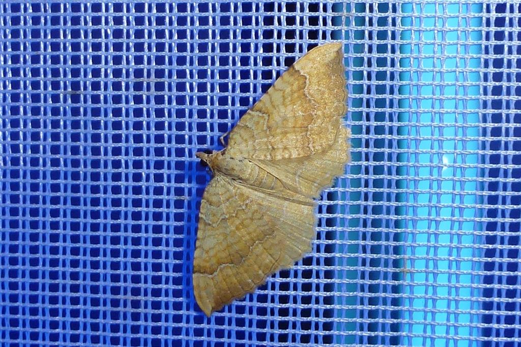 Ockergelbe Blattspanner, oder Löwenzahnspanner oder Brennnesselspanner (Camptogramma bilineata (Linnaeus, 1758)), am Licht, Radeberg, August 2013.