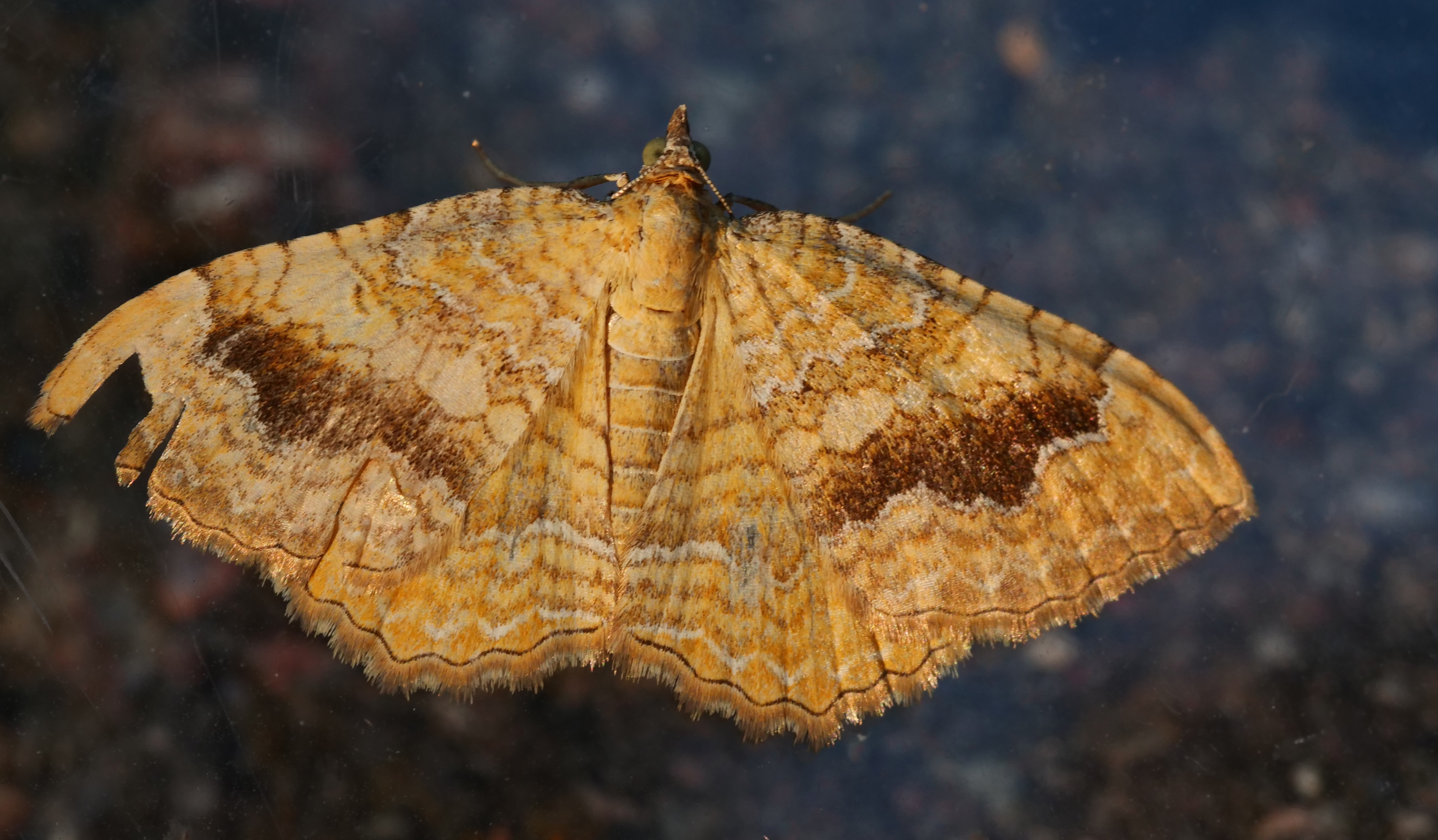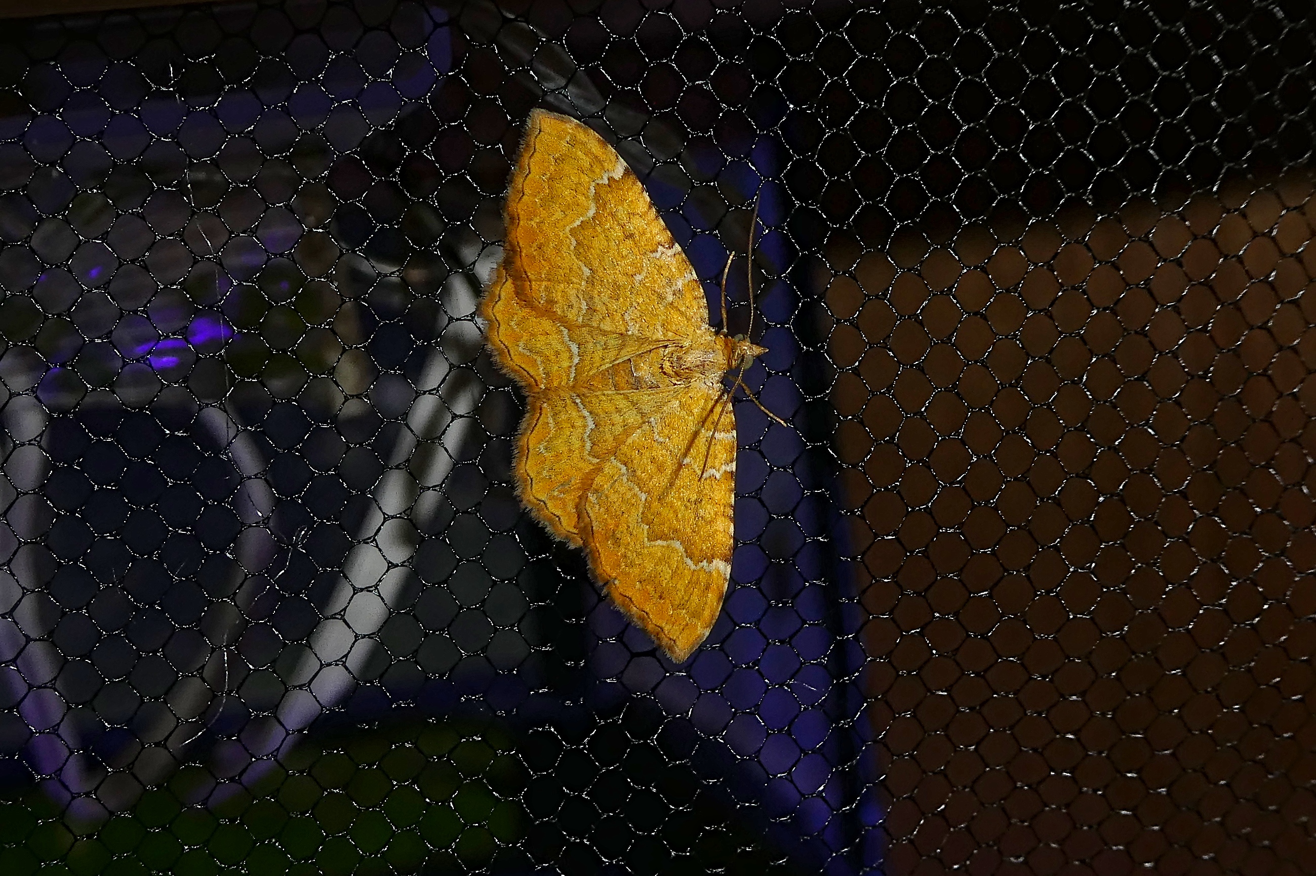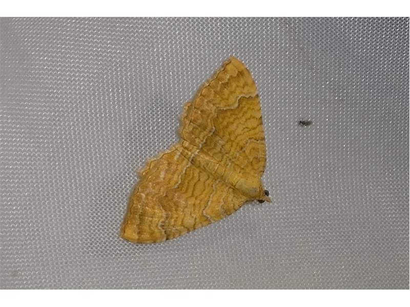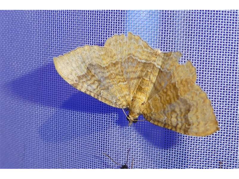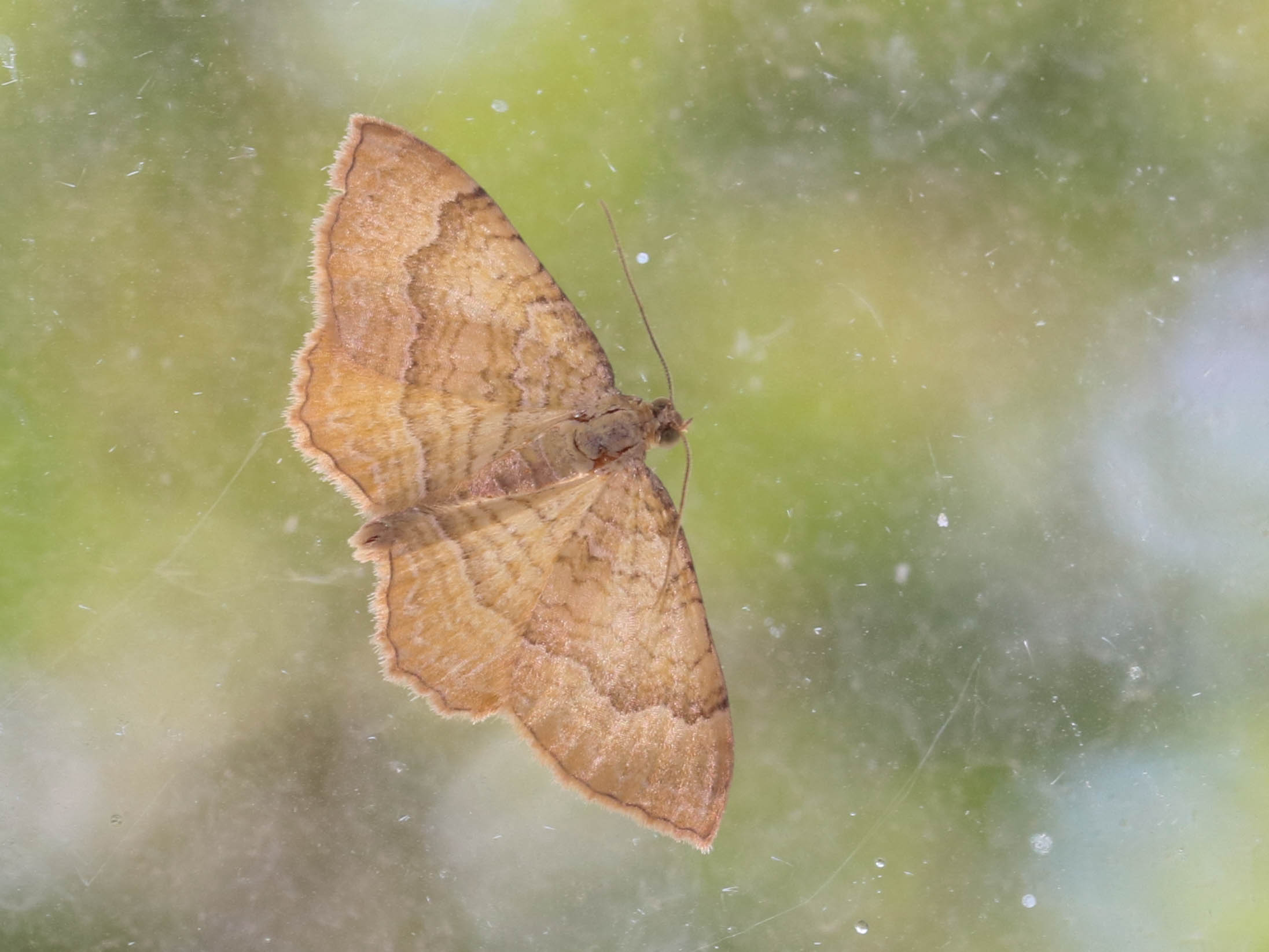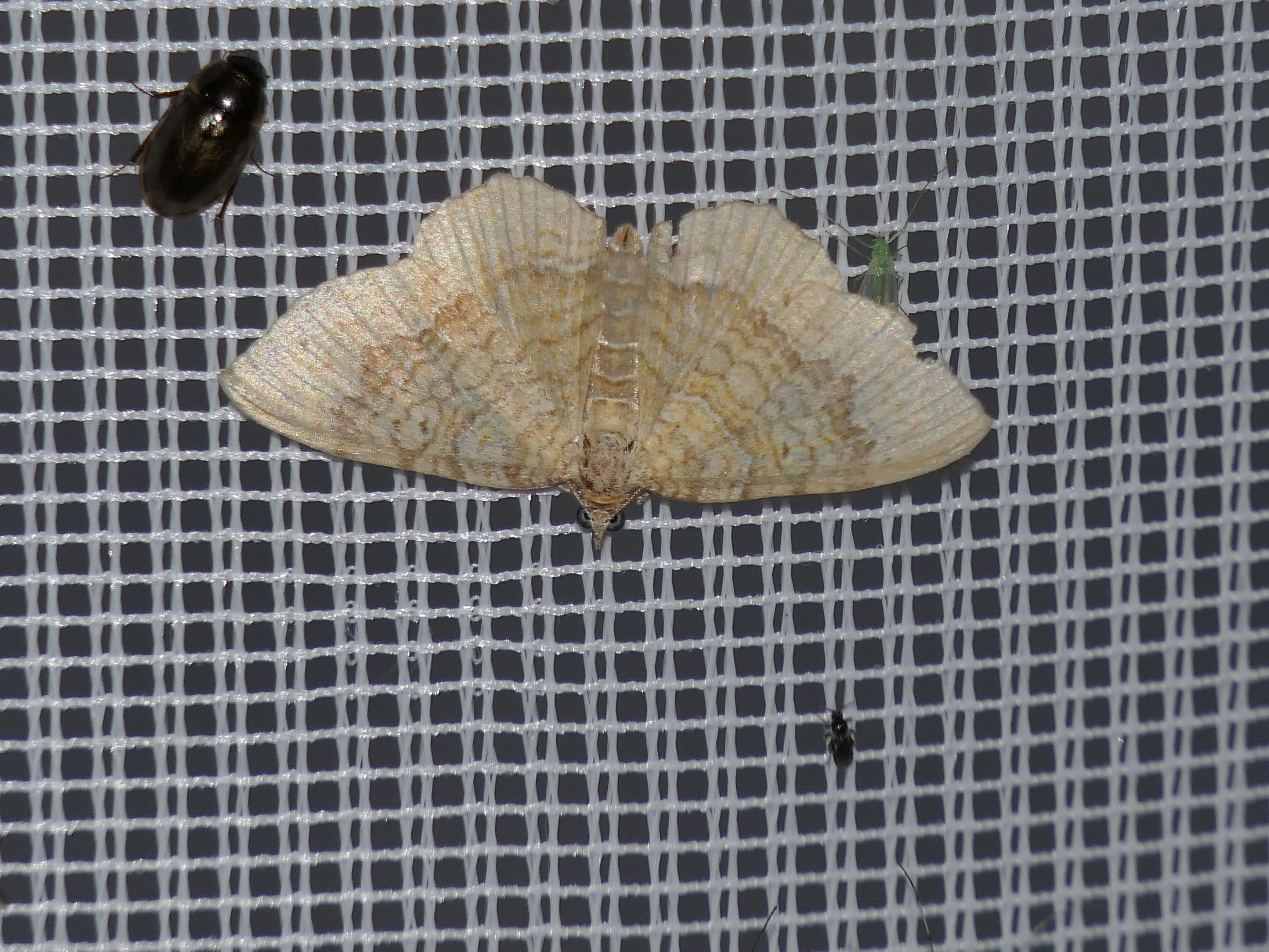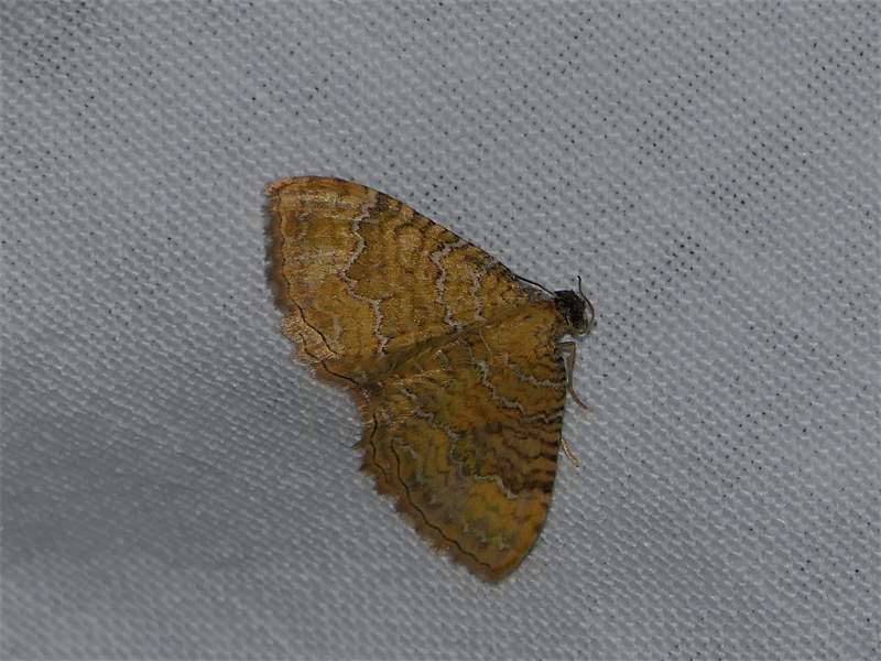 Ockergelbe Blattspanner, oder Löwenzahnspanner oder Brennnesselspanner (Camptogramma bilineata (Linnaeus, 1758)), am Licht, Radeberg, August 2013.