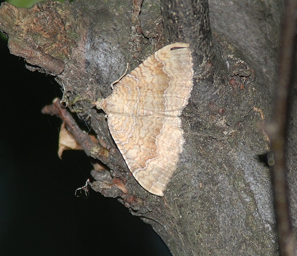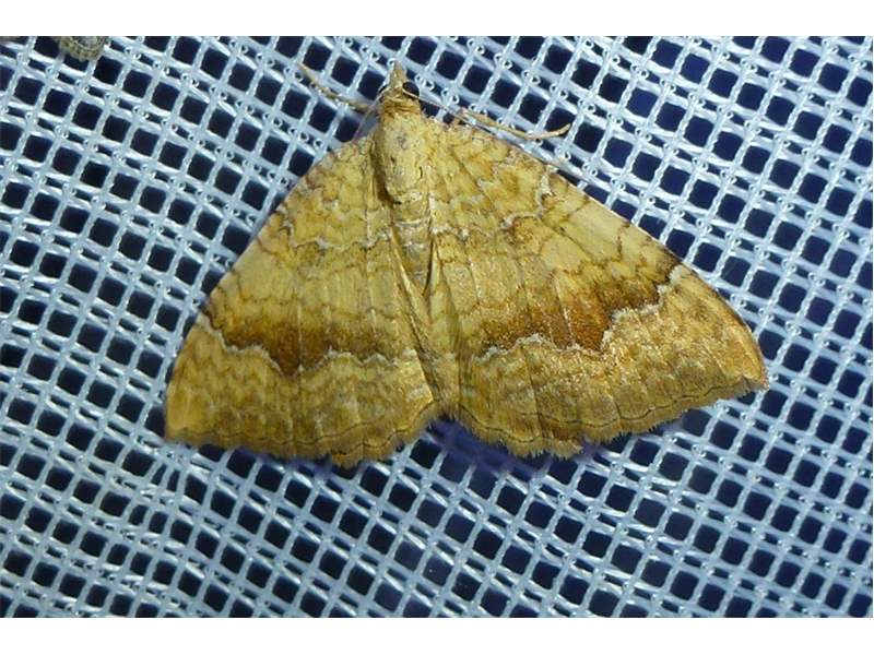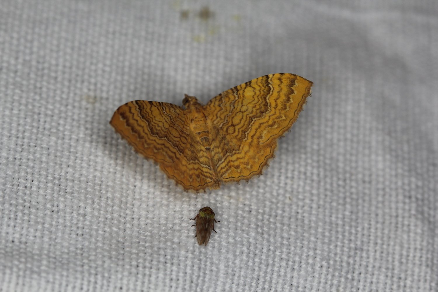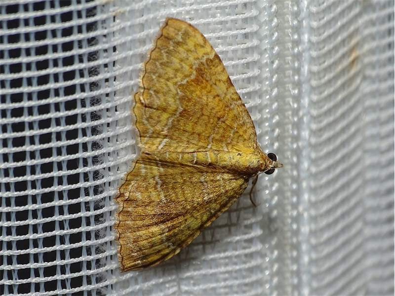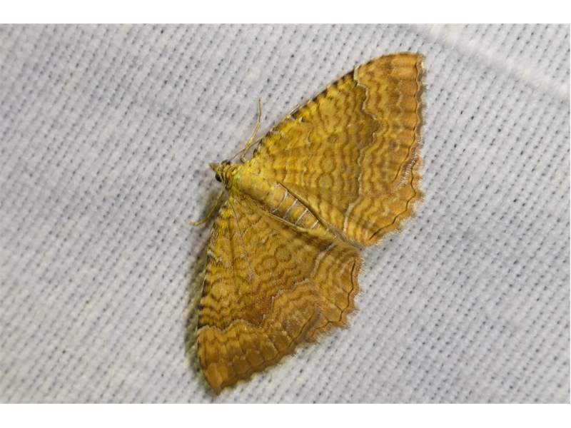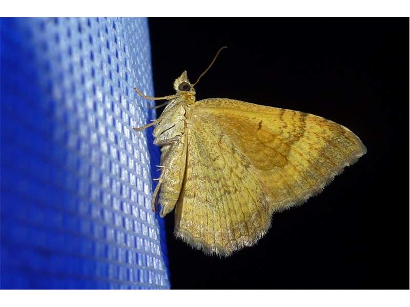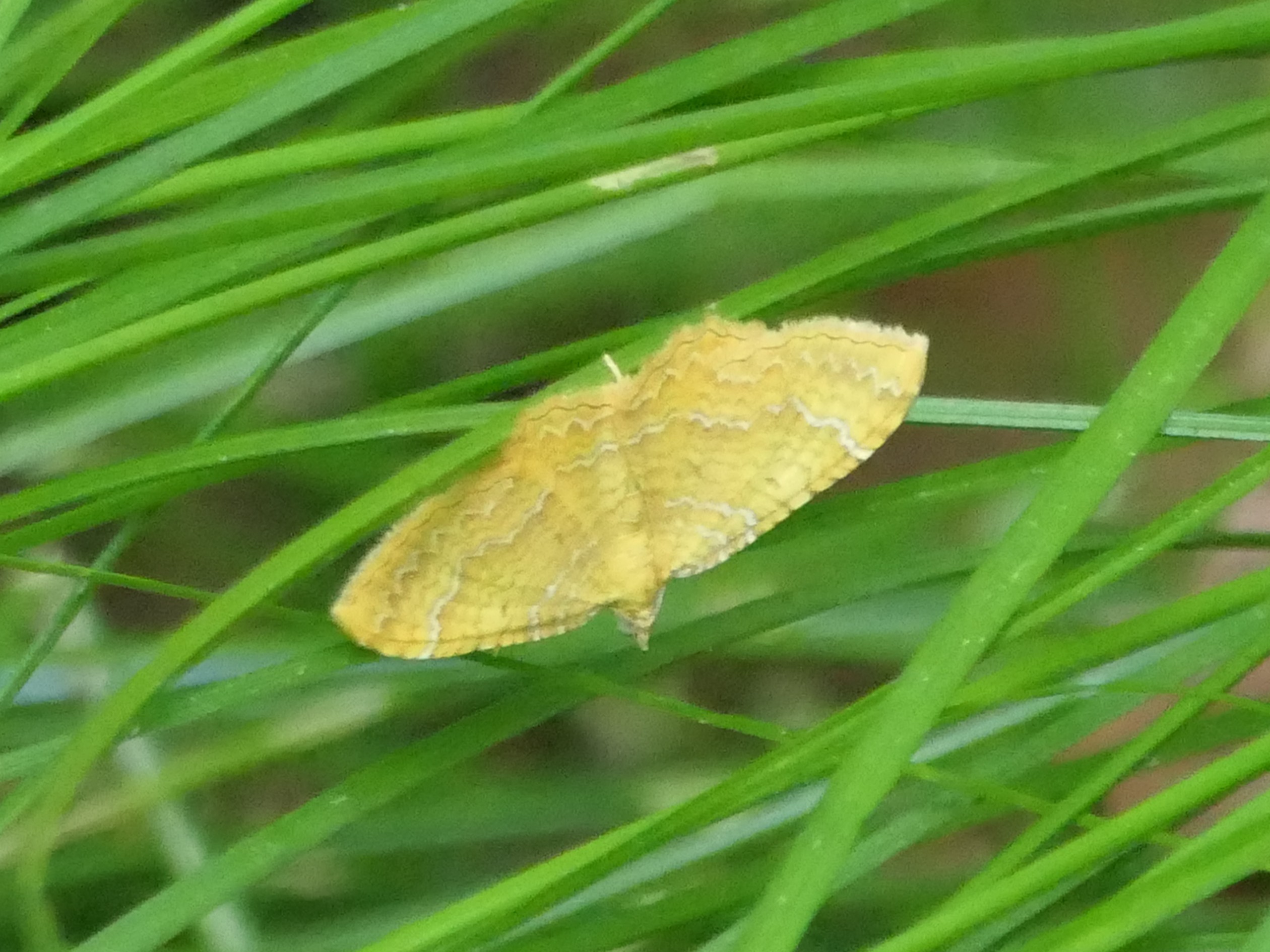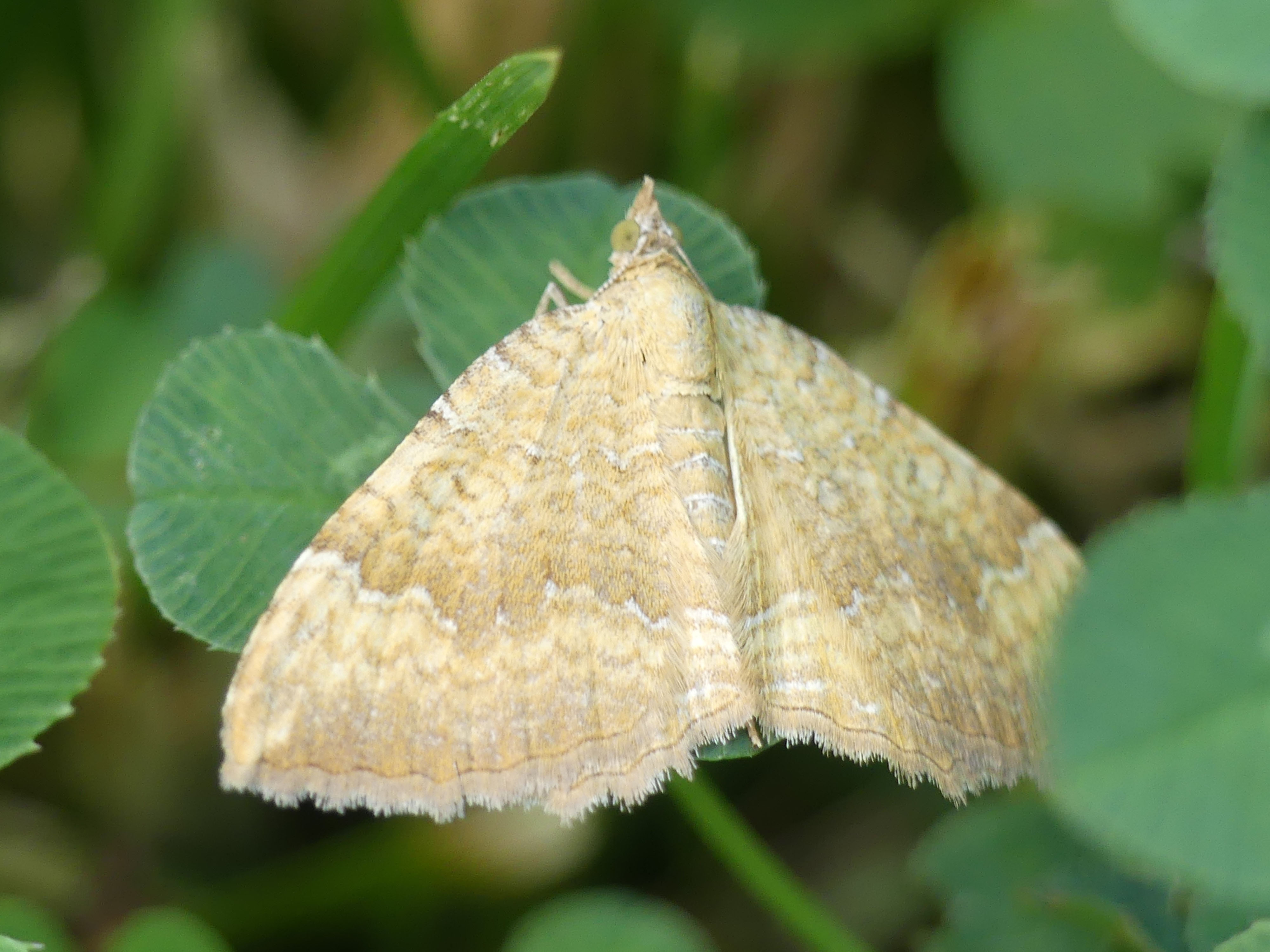 Ockergelbe Blattspanner, oder Löwenzahnspanner oder Brennnesselspanner (Camptogramma bilineata (Linnaeus, 1758)), am Licht, Radeberg, August 2013.