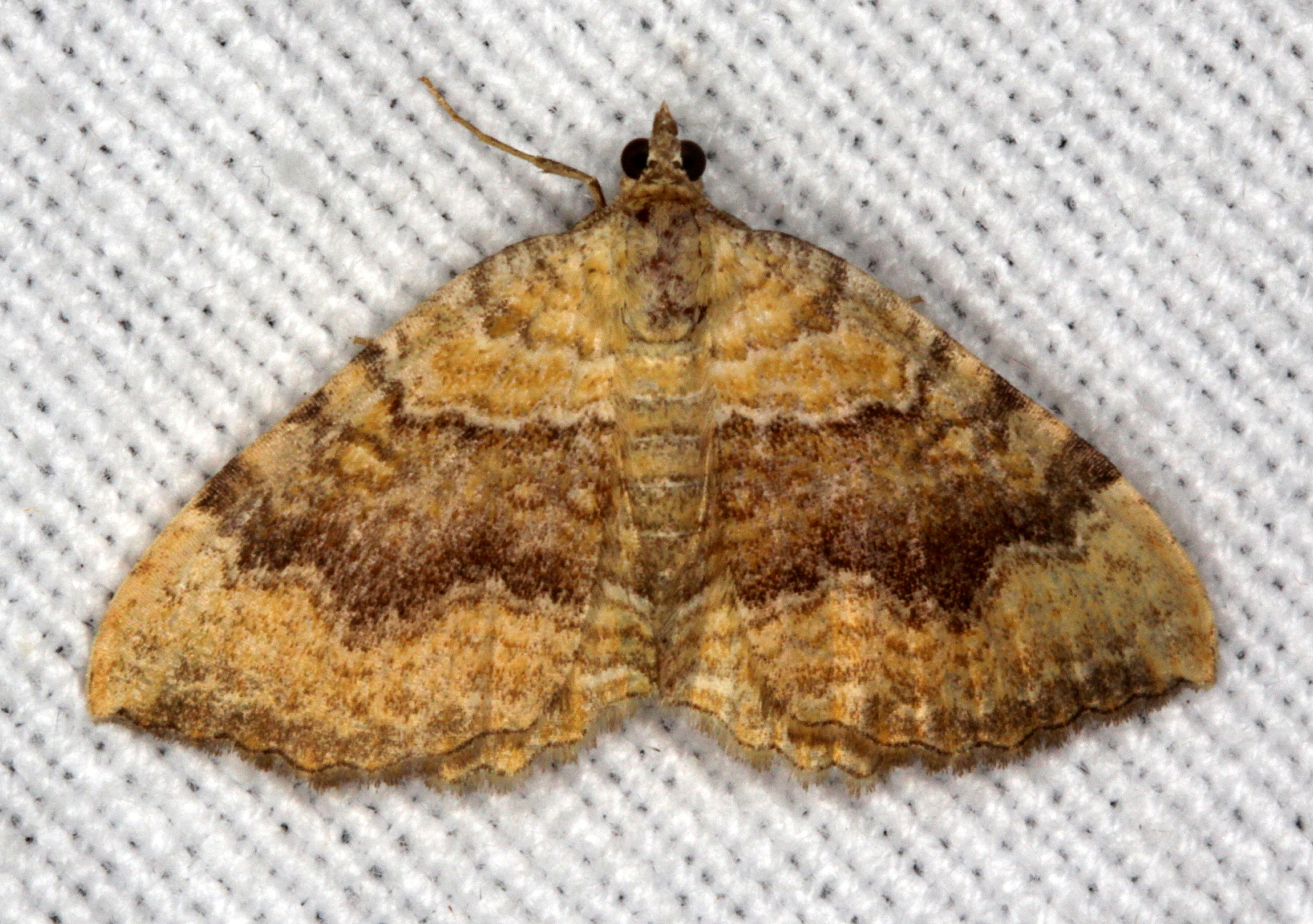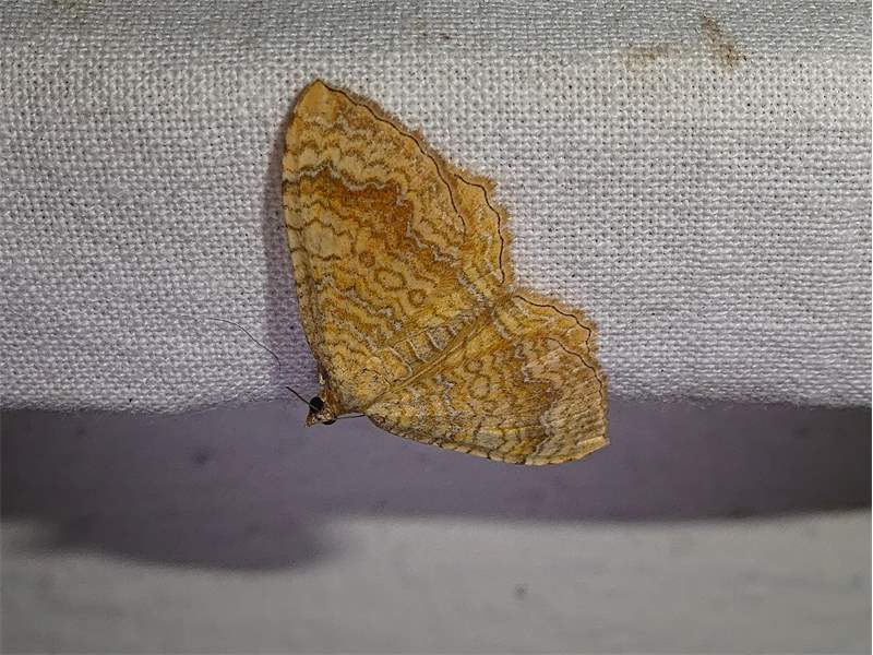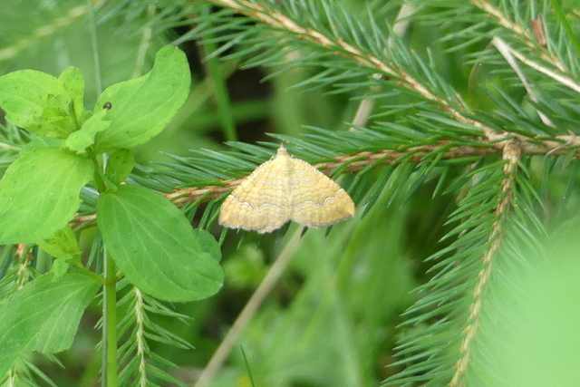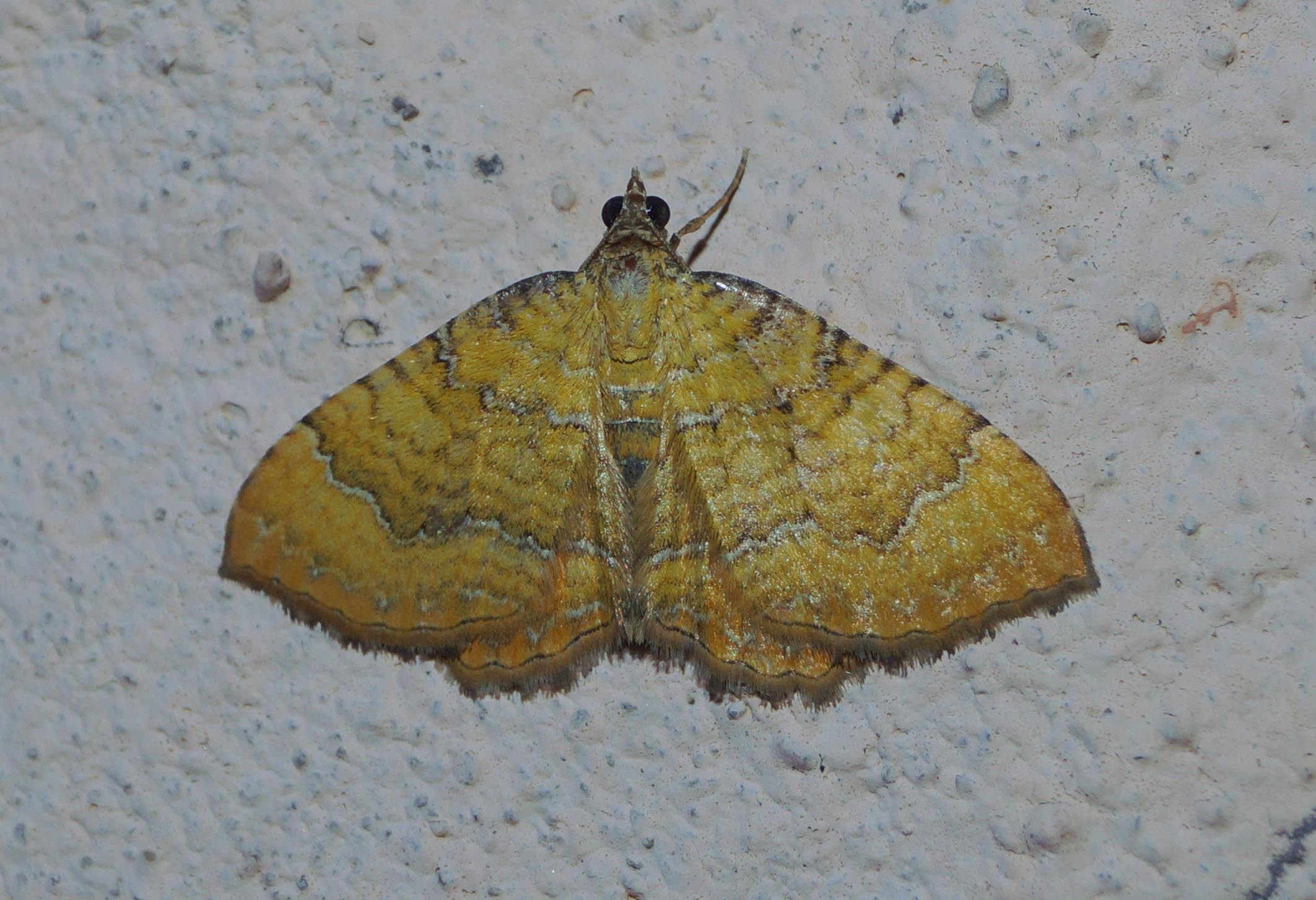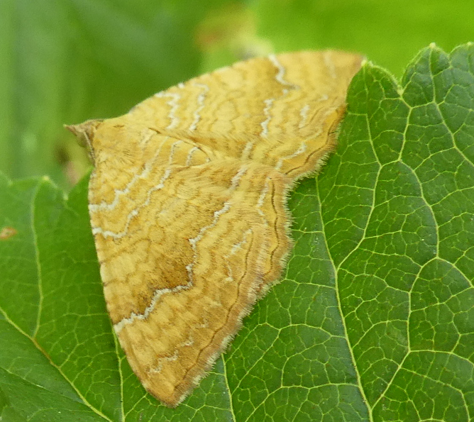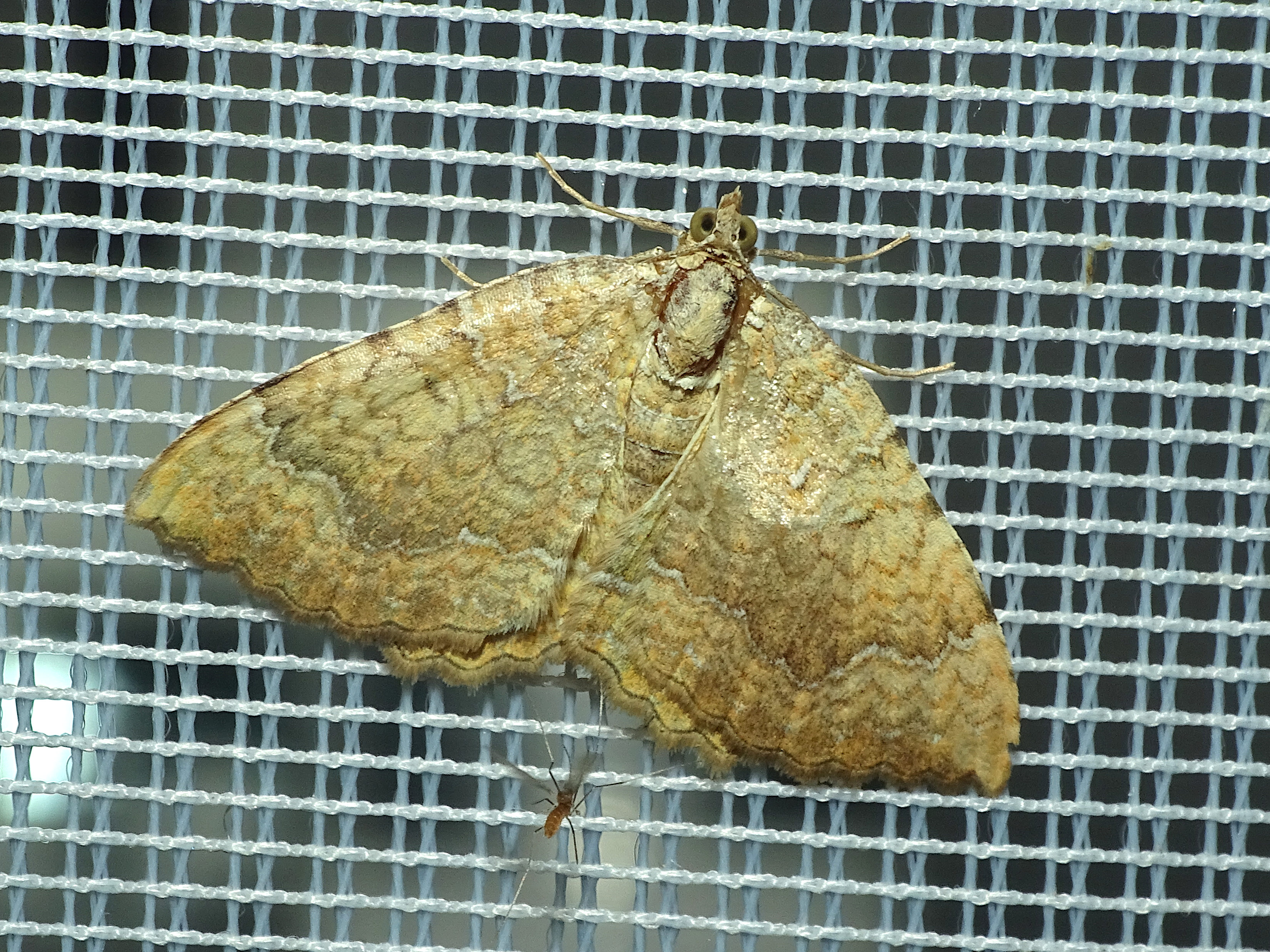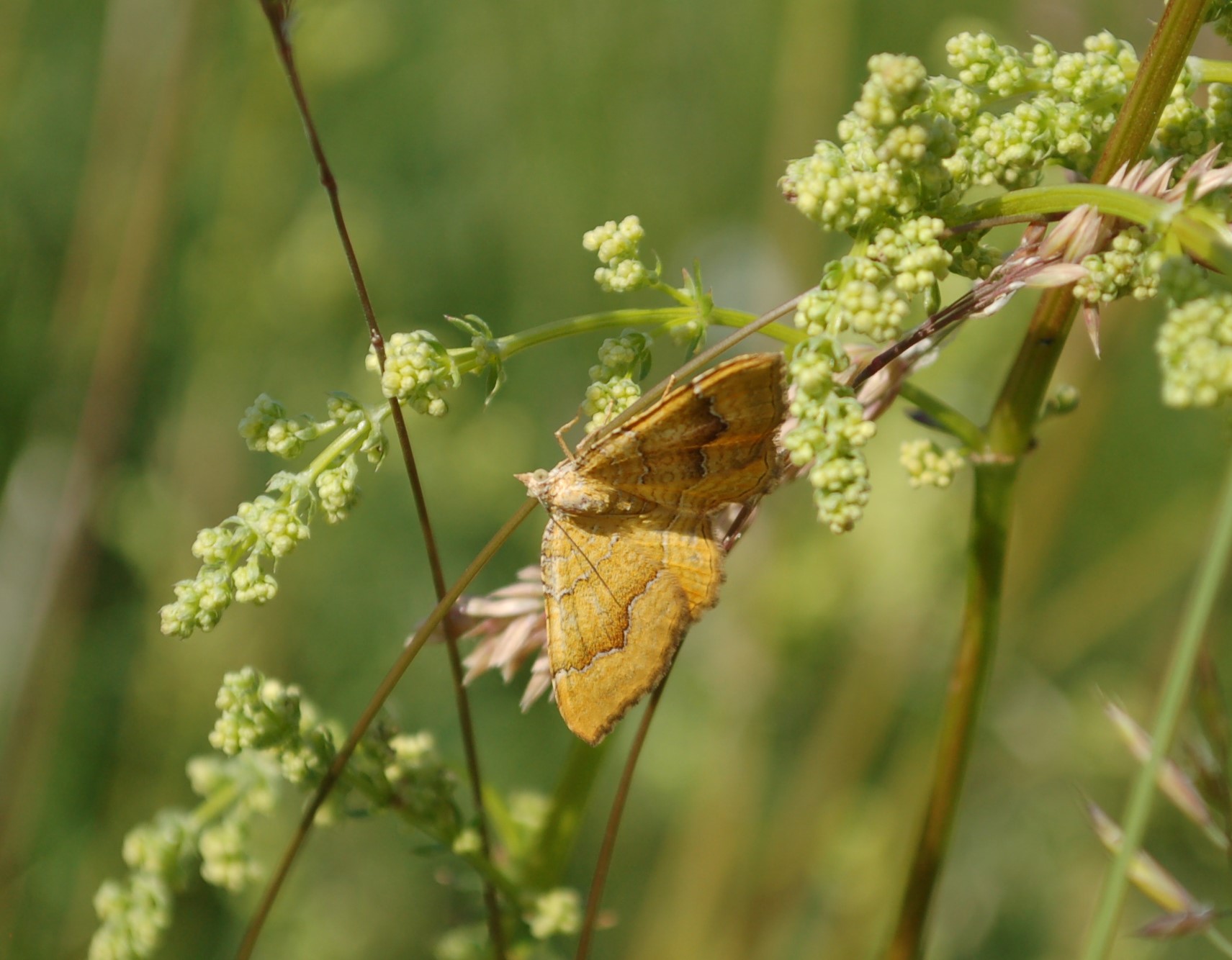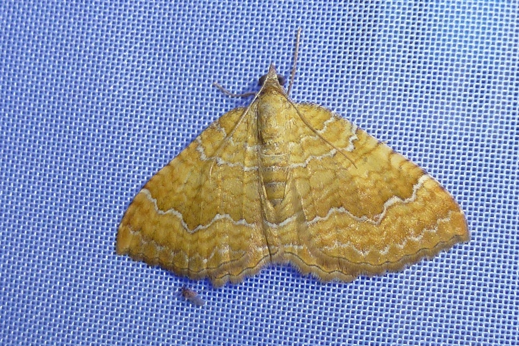 Ockergelbe Blattspanner, oder Löwenzahnspanner oder Brennnesselspanner (Camptogramma bilineata (Linnaeus, 1758)), am Licht, Radeberg, August 2013.