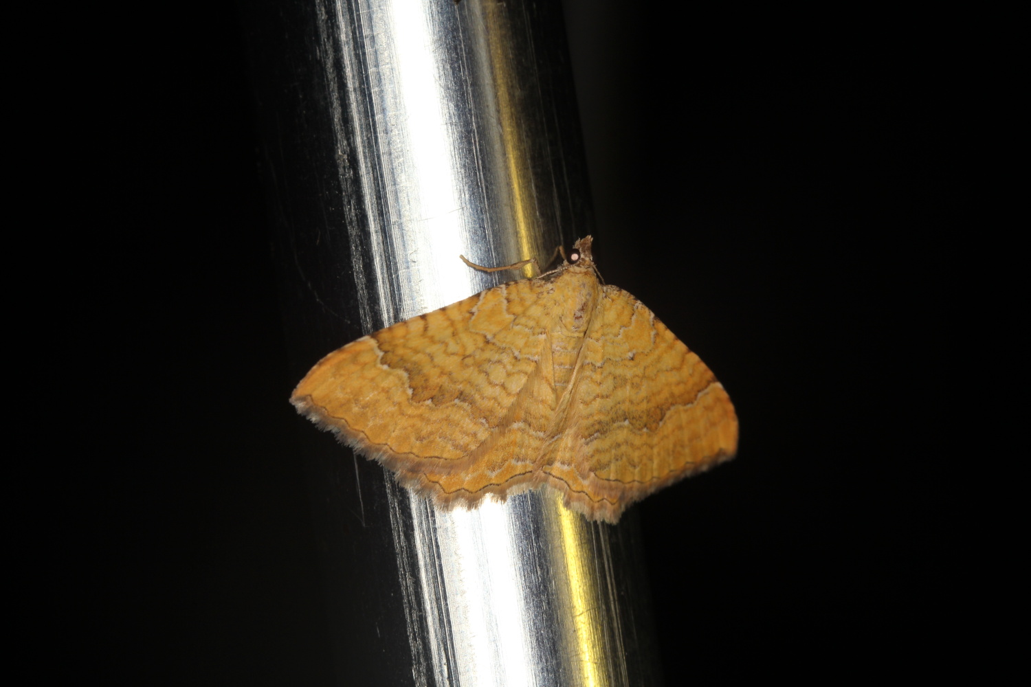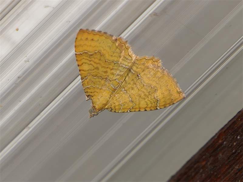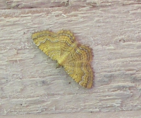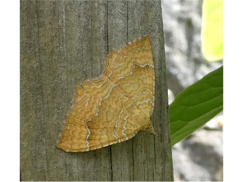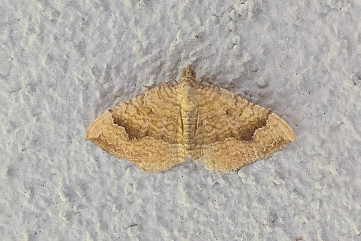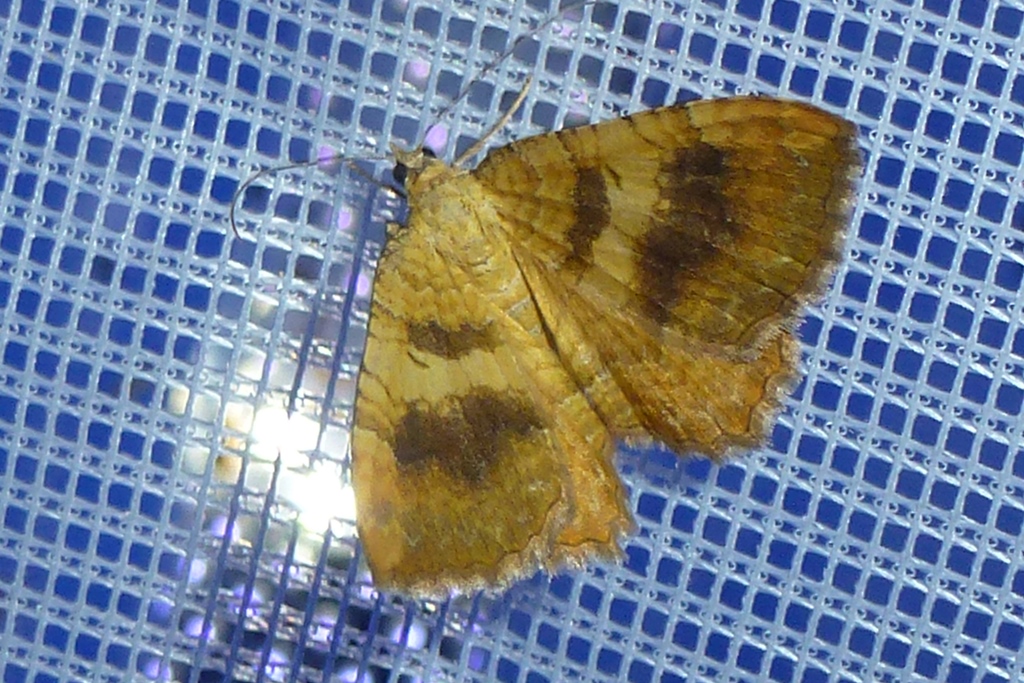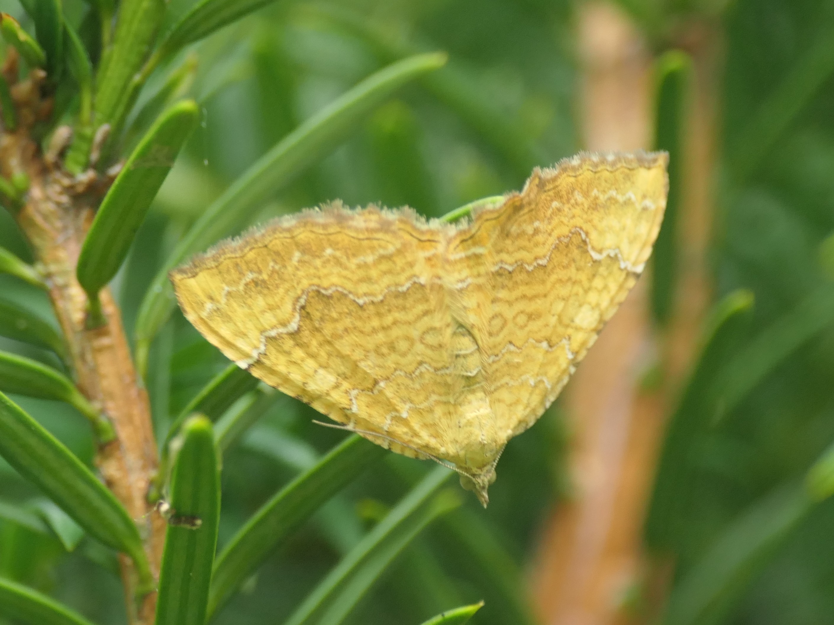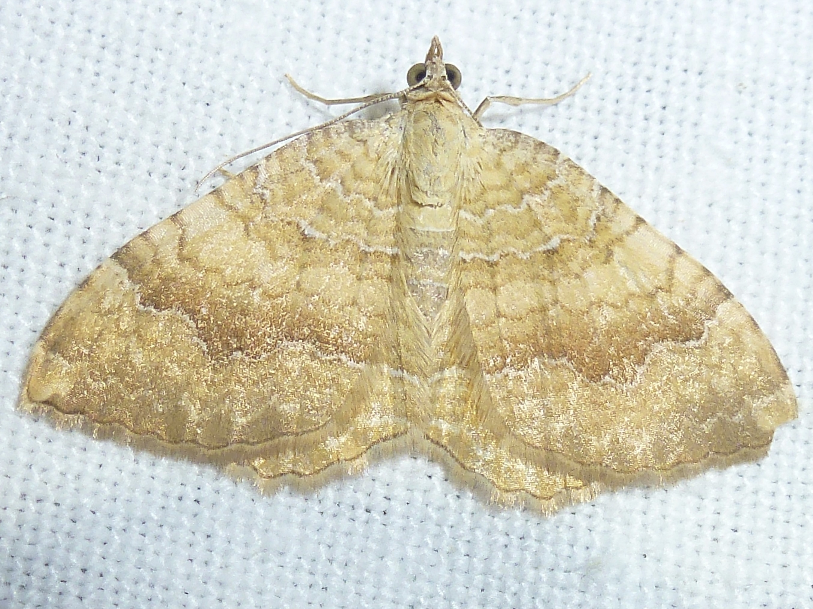 Ockergelbe Blattspanner, oder Löwenzahnspanner oder Brennnesselspanner (Camptogramma bilineata (Linnaeus, 1758)), am Licht, Radeberg, August 2013.