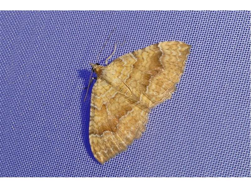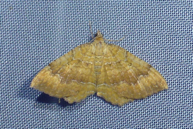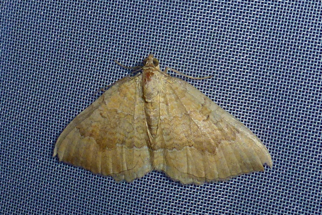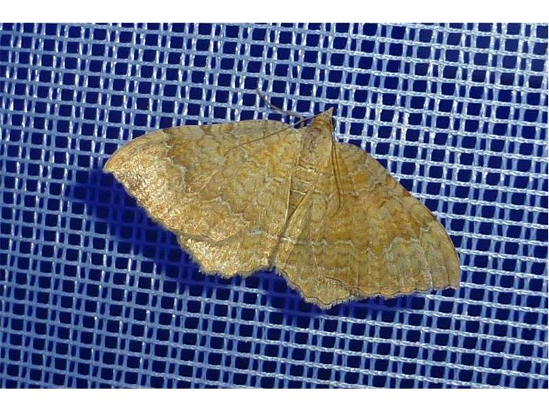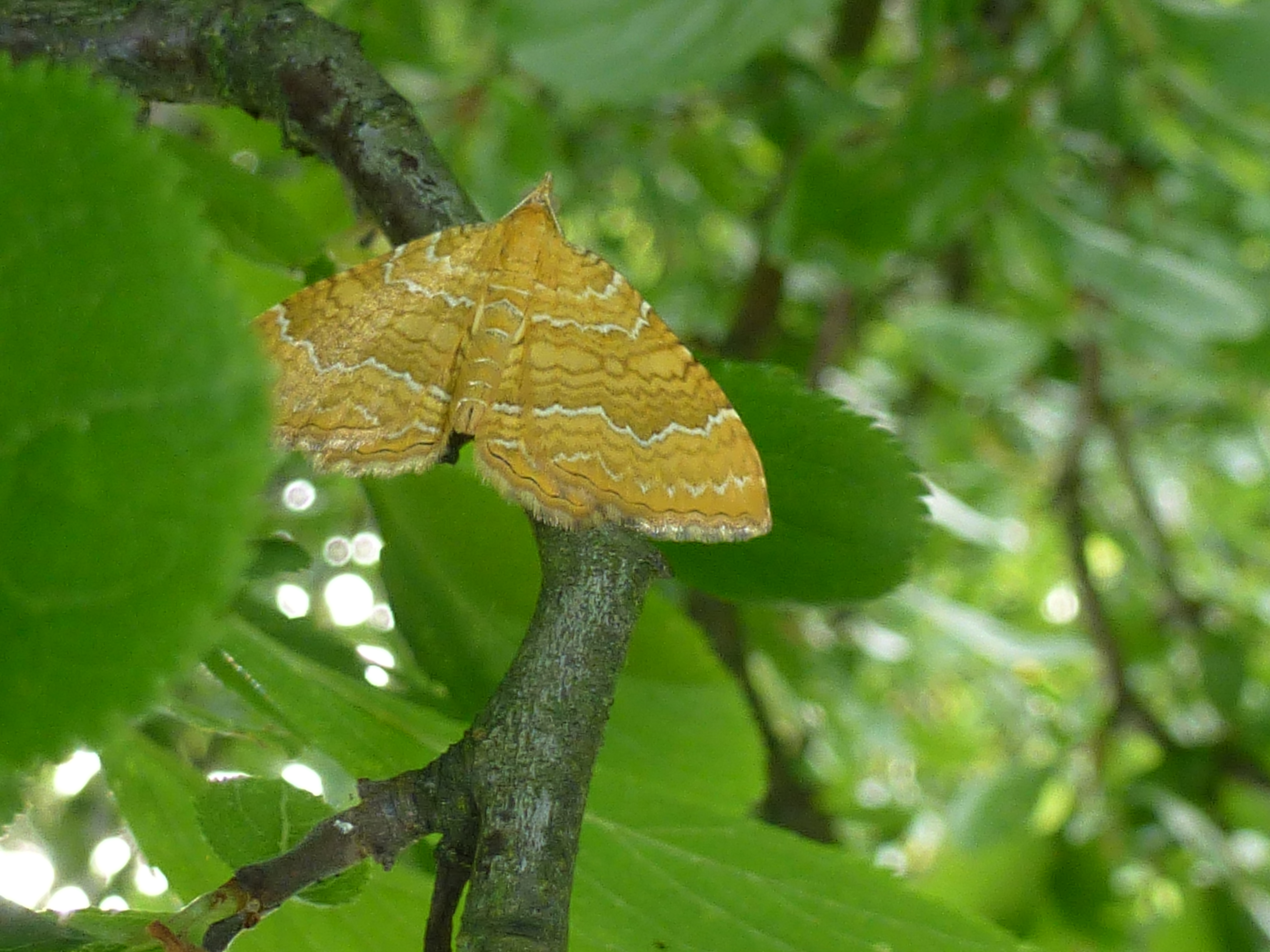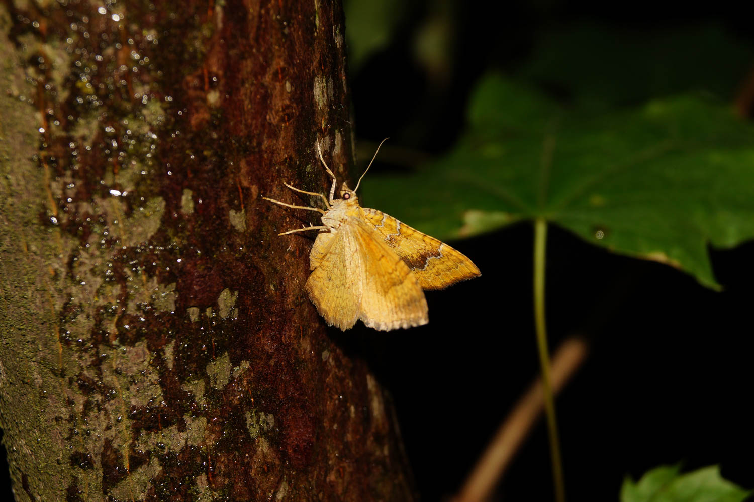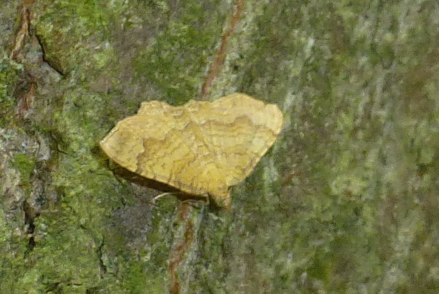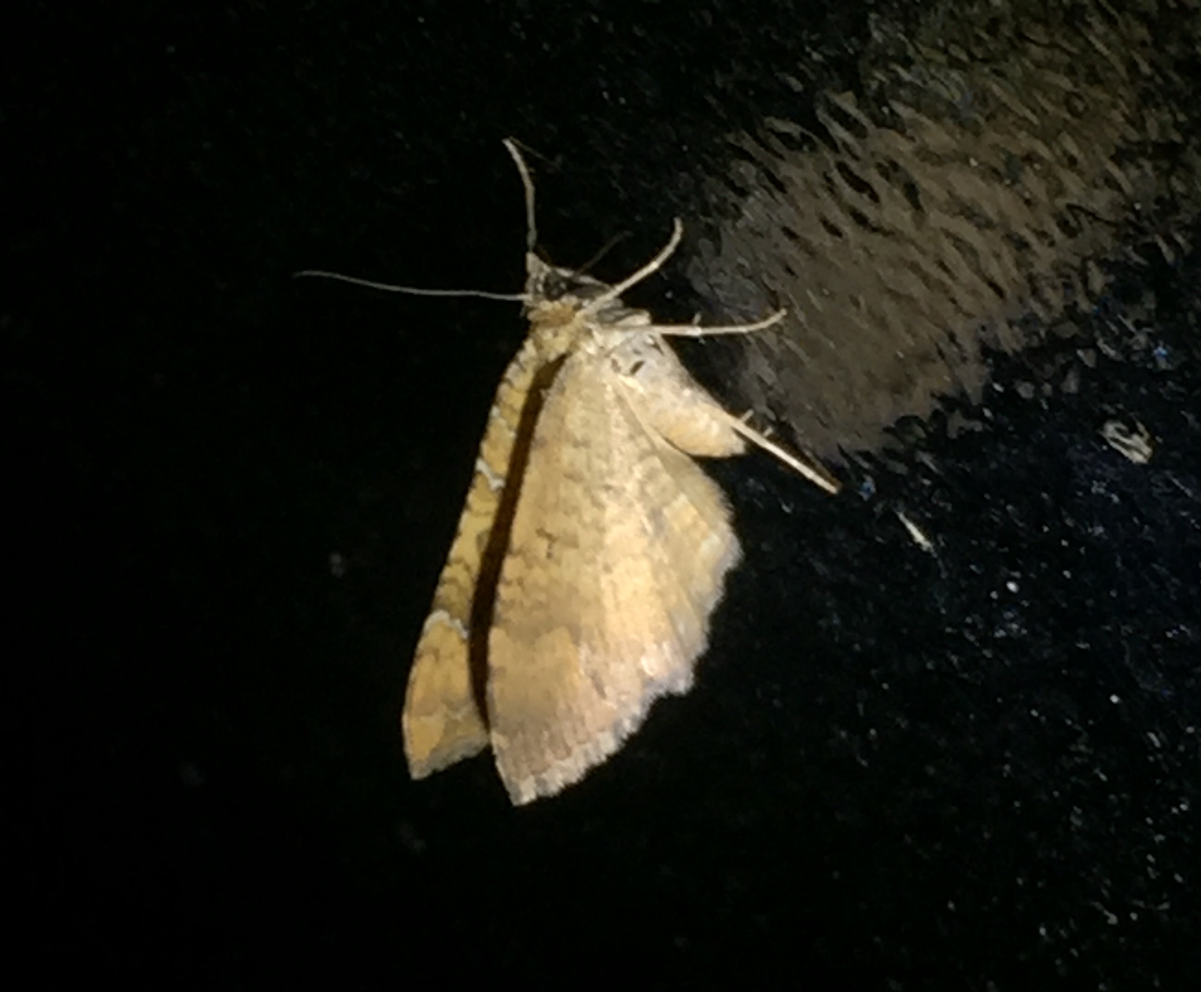 Ockergelbe Blattspanner, oder Löwenzahnspanner oder Brennnesselspanner (Camptogramma bilineata (Linnaeus, 1758)), am Licht, Radeberg, August 2013.