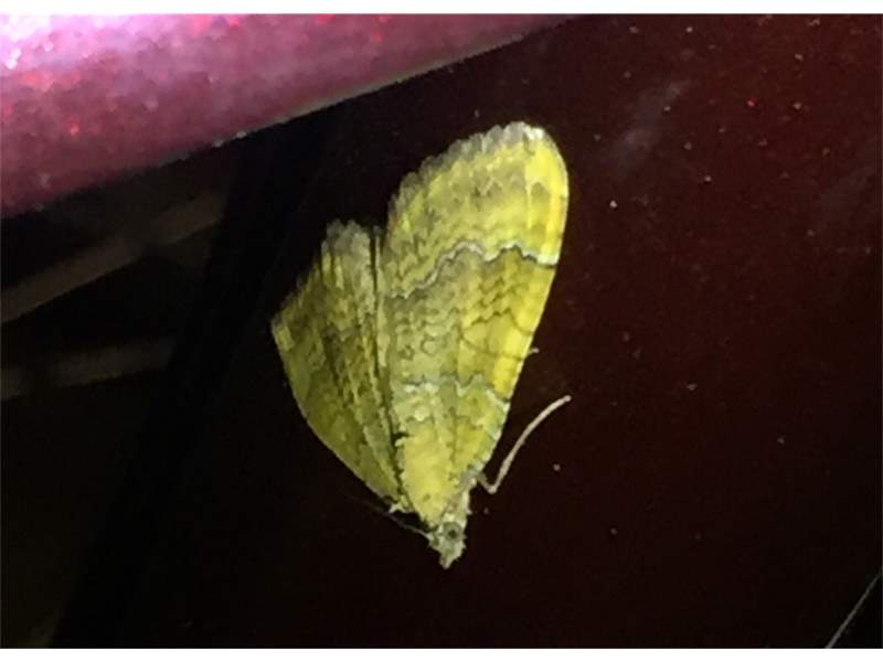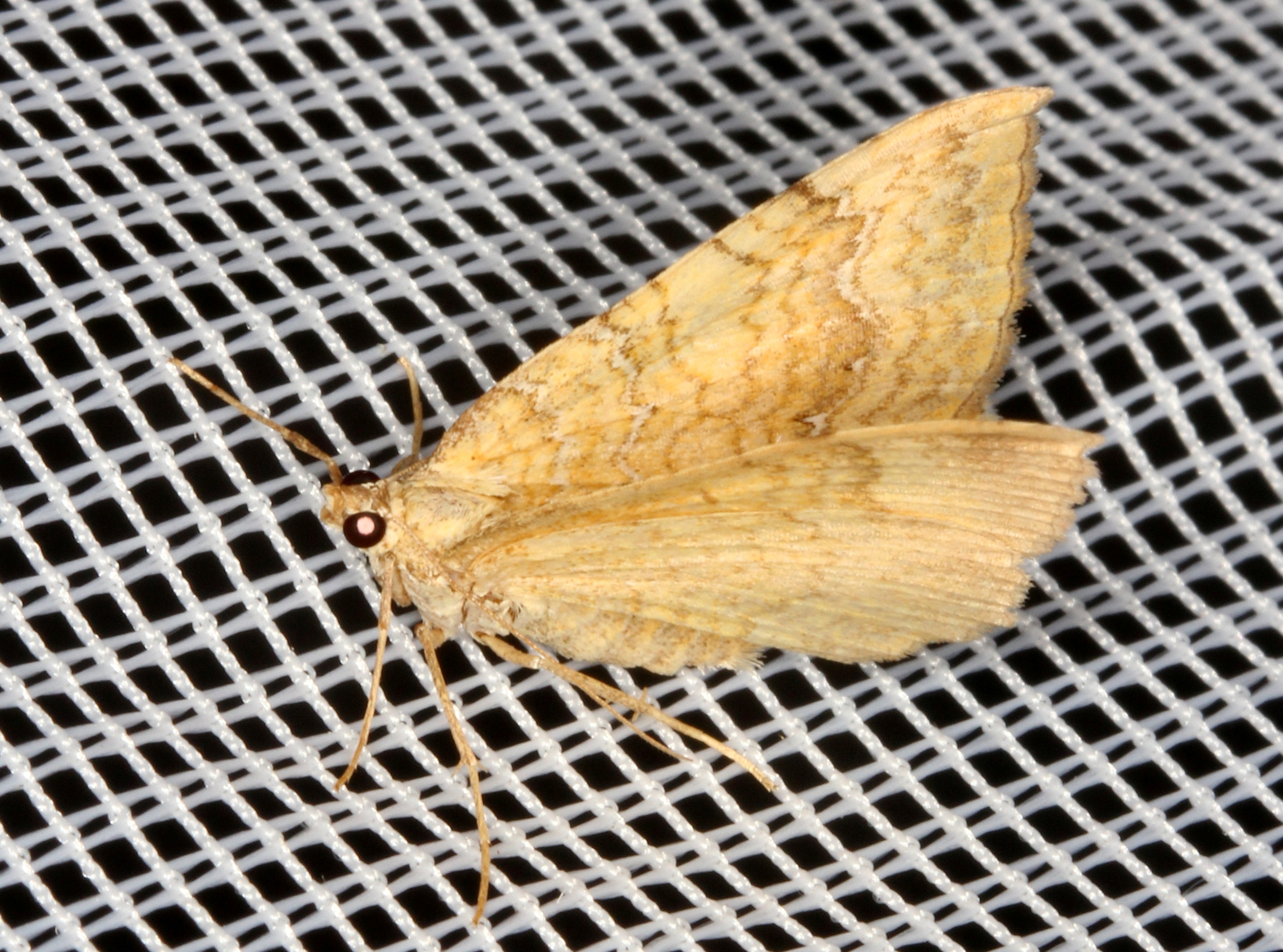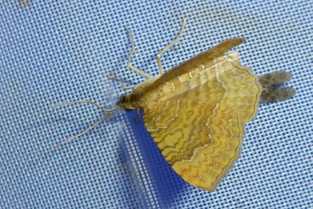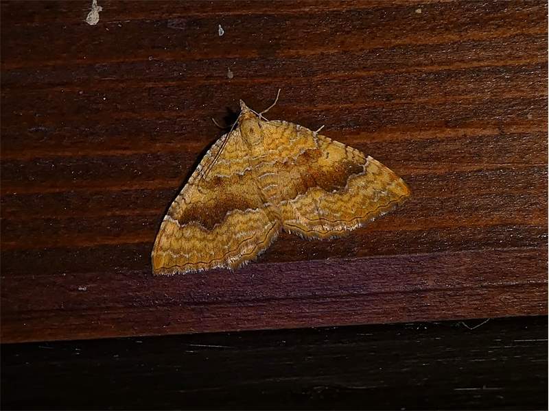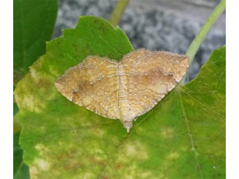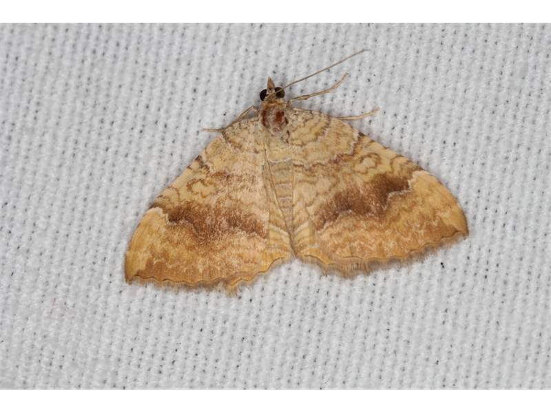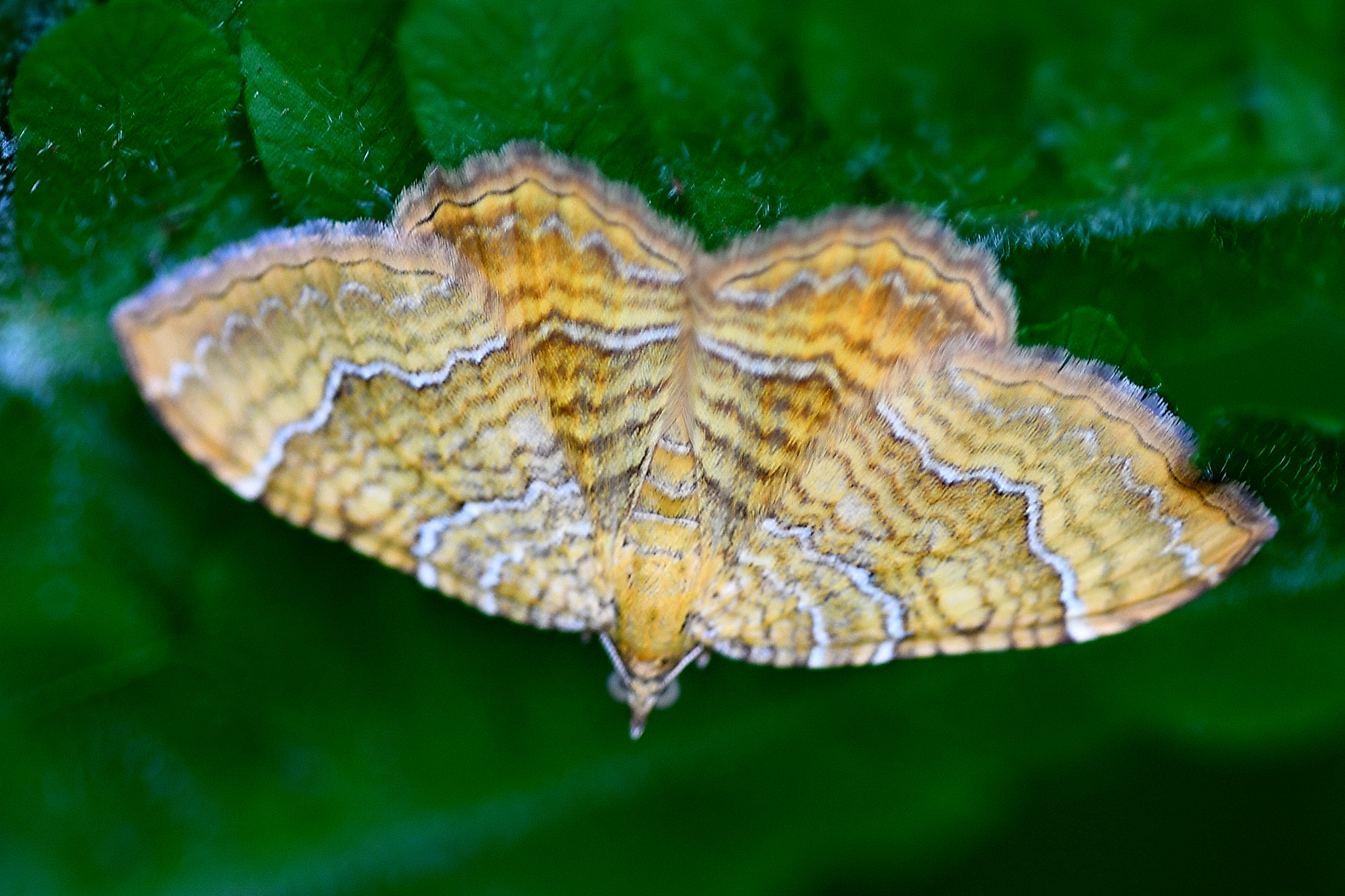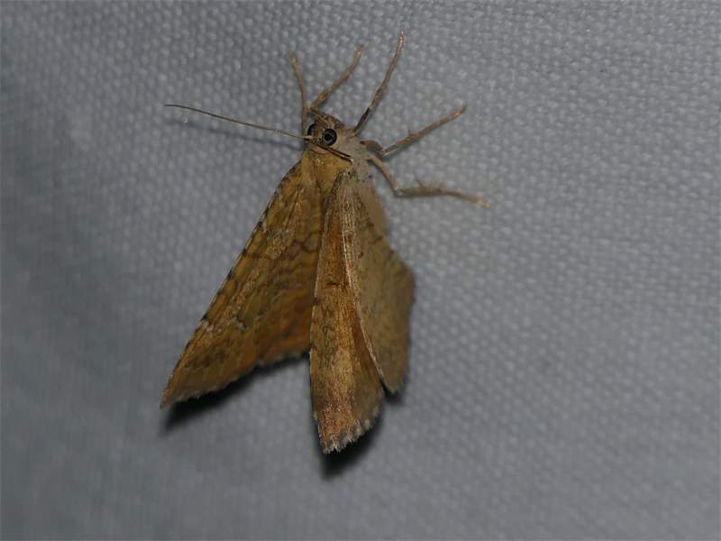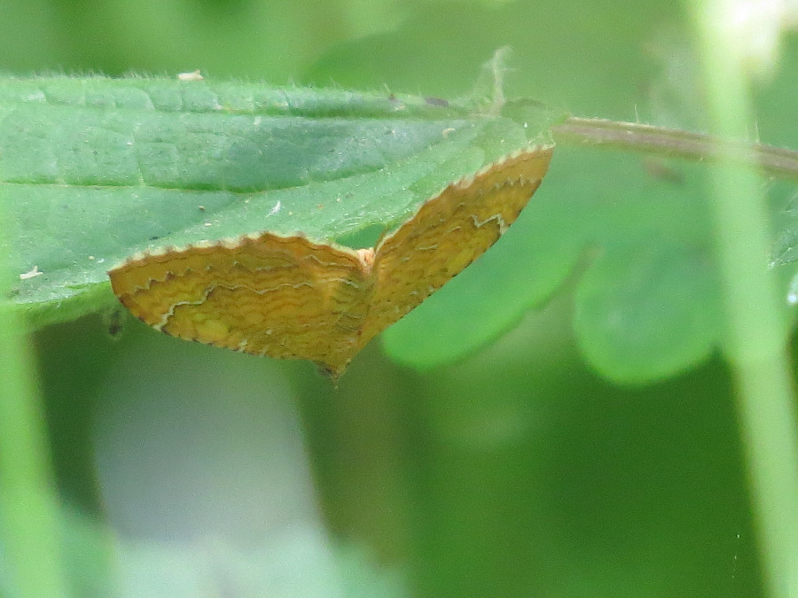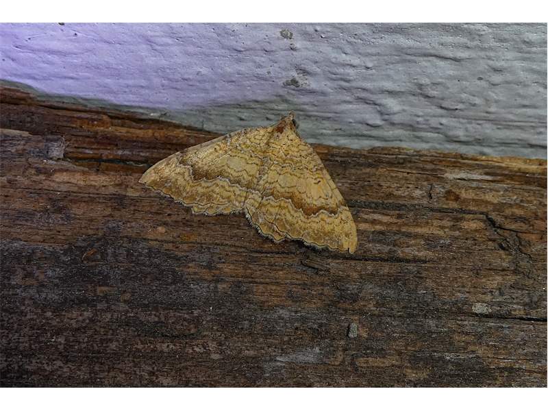 Ockergelbe Blattspanner, oder Löwenzahnspanner oder Brennnesselspanner (Camptogramma bilineata (Linnaeus, 1758)), am Licht, Radeberg, August 2013.