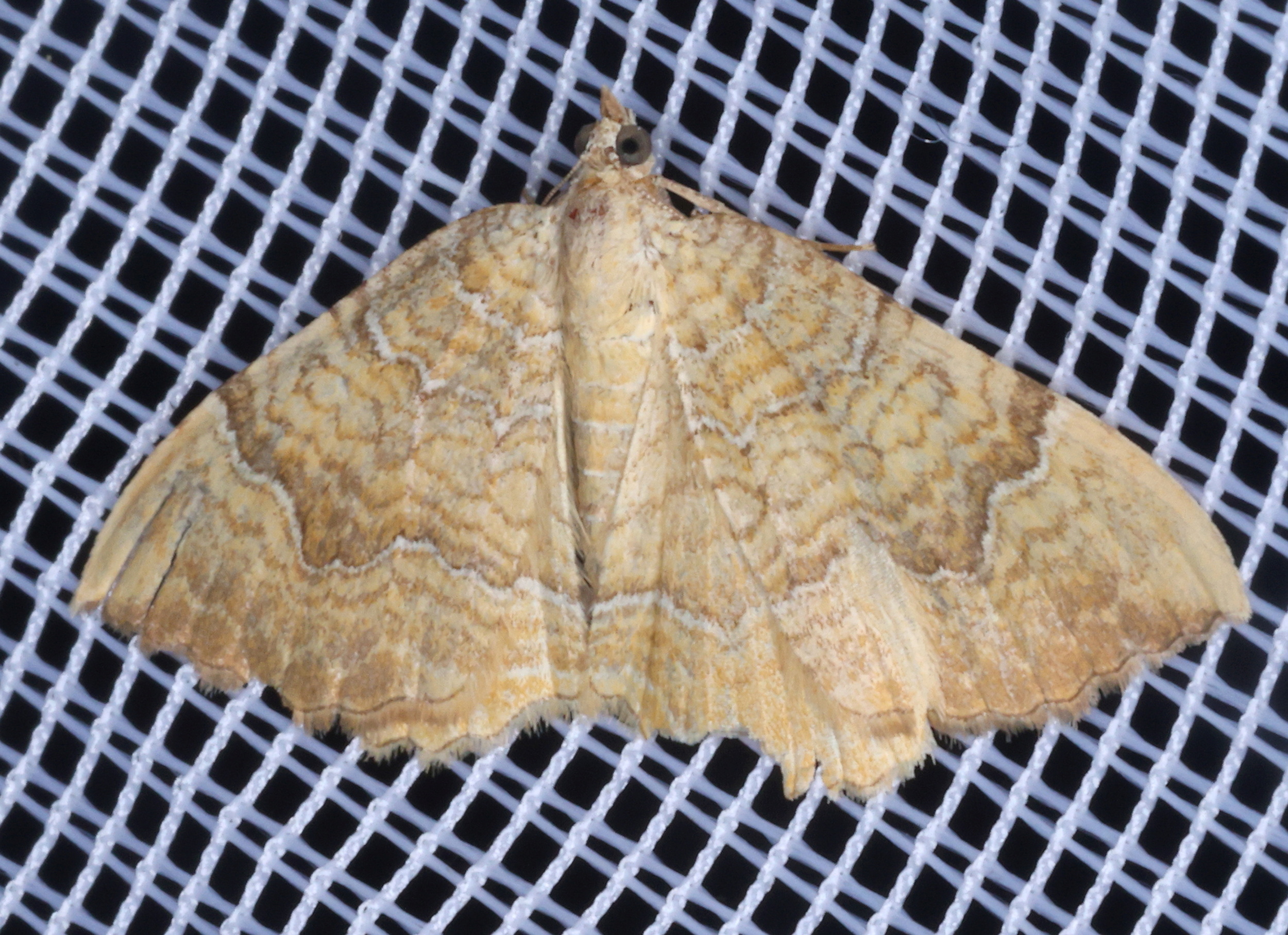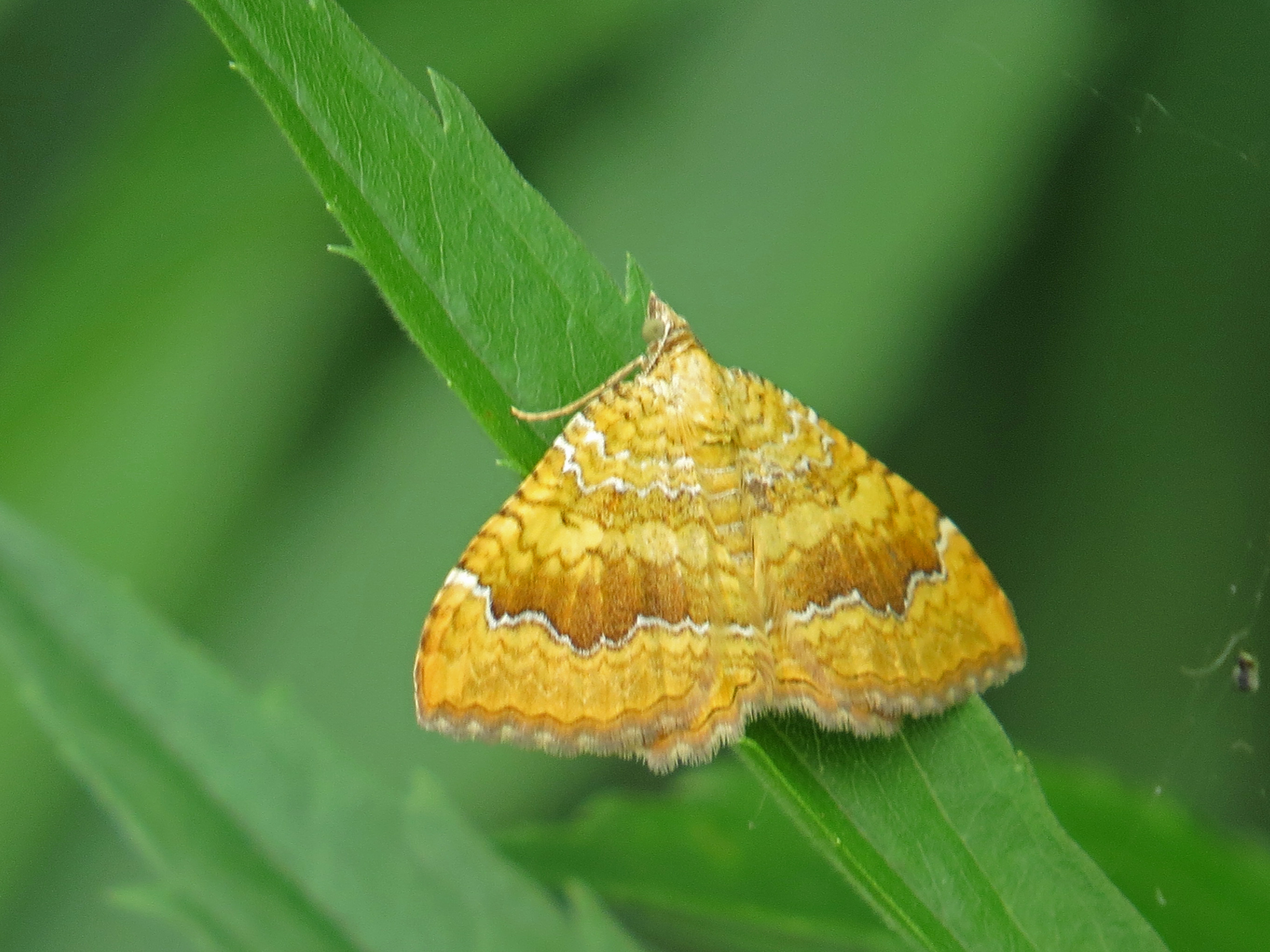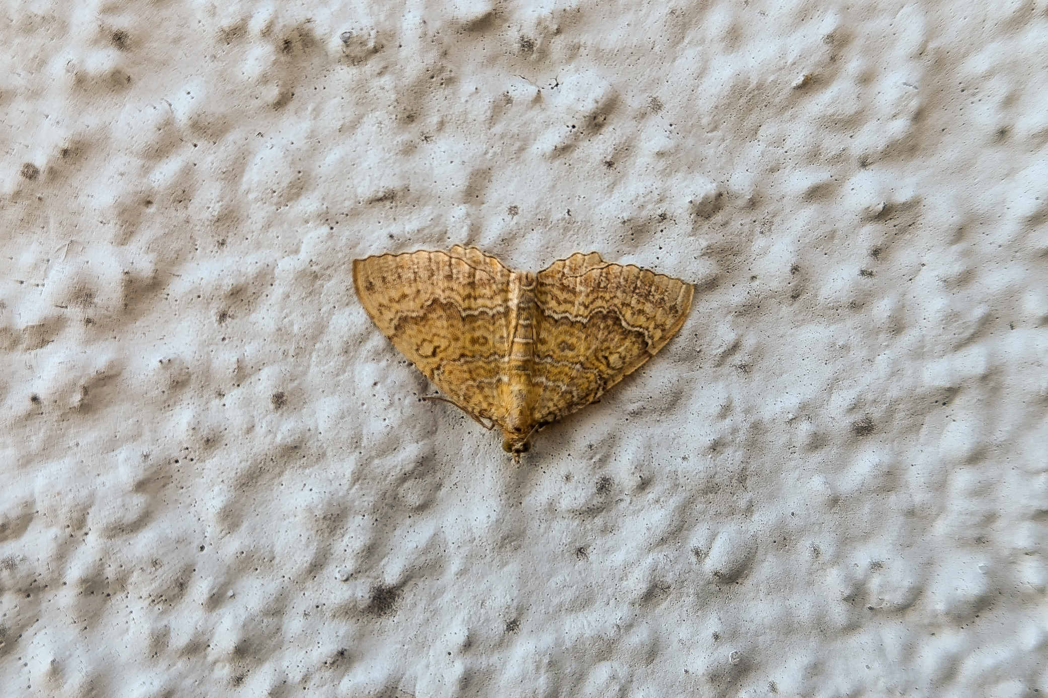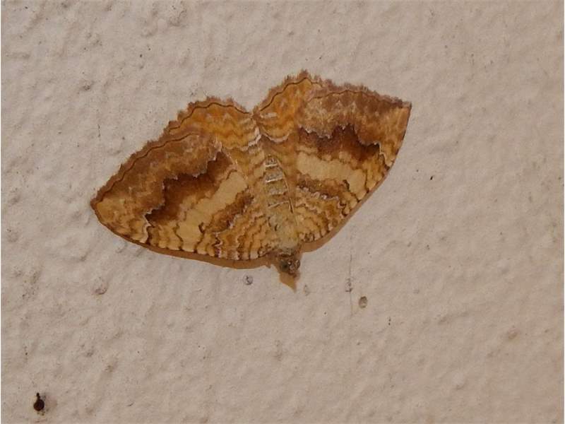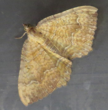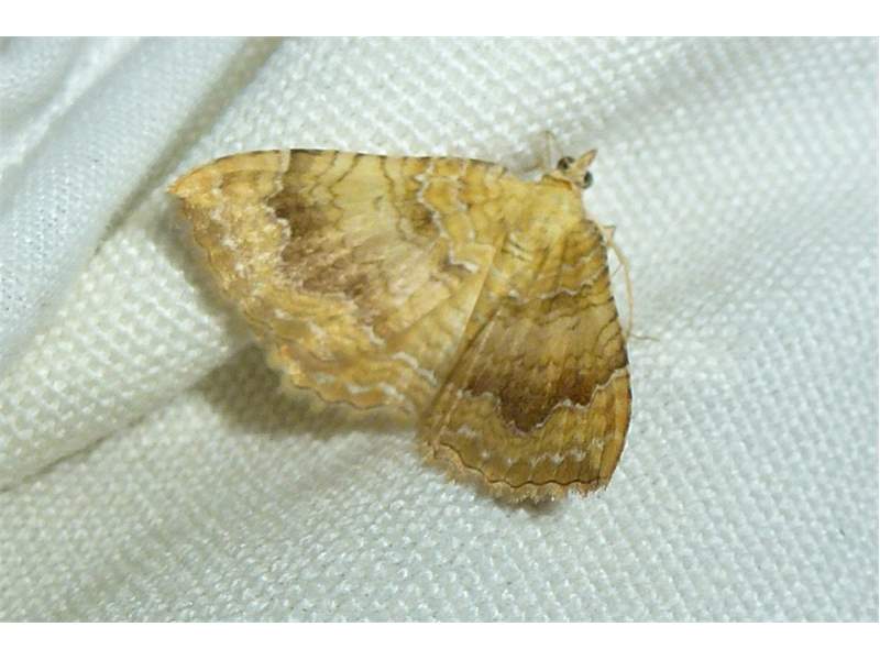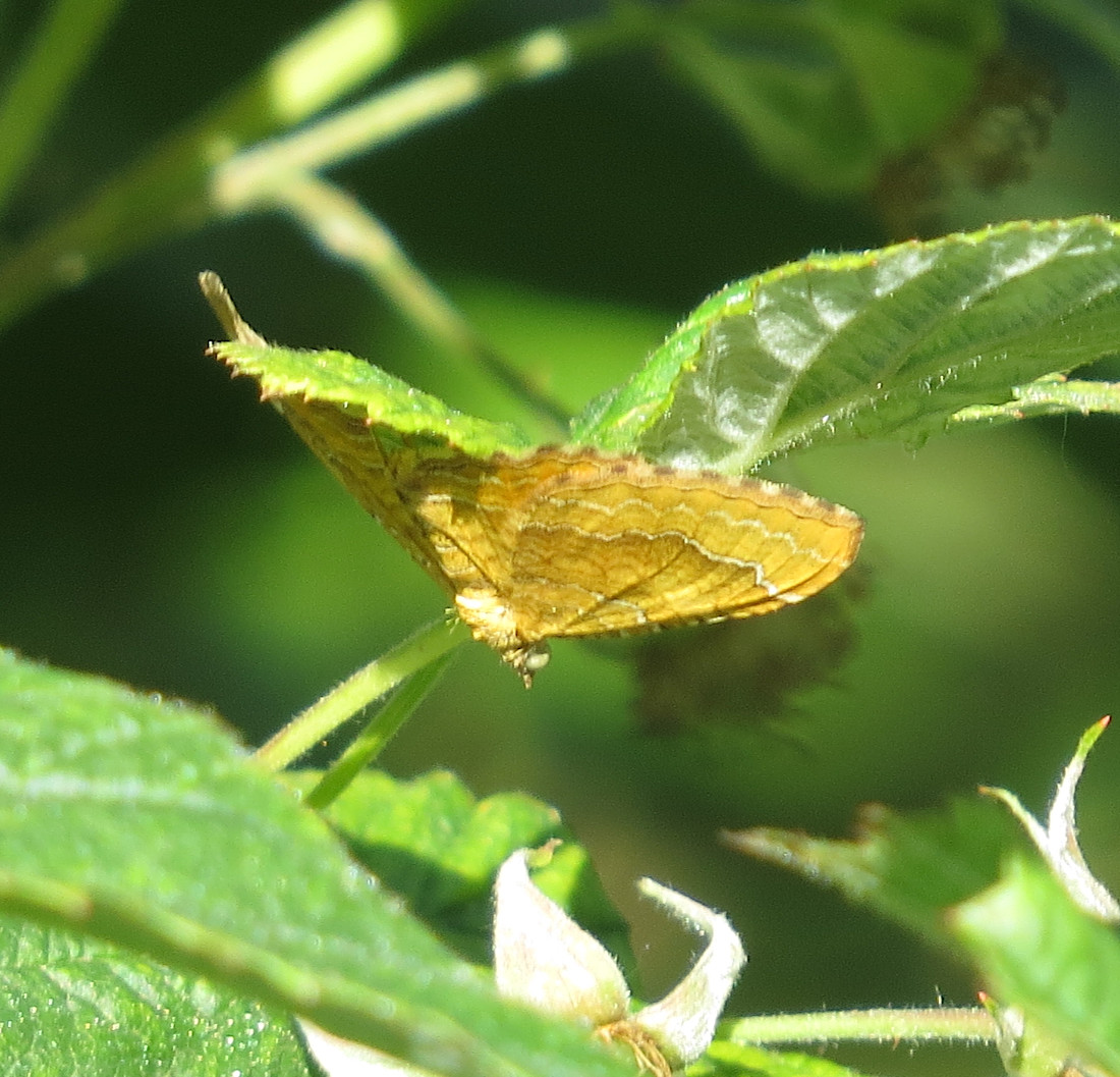 Ockergelbe Blattspanner, oder Löwenzahnspanner oder Brennnesselspanner (Camptogramma bilineata (Linnaeus, 1758)), am Licht, Radeberg, August 2013.