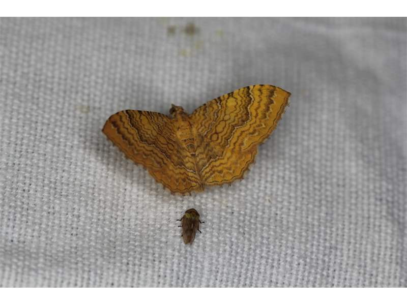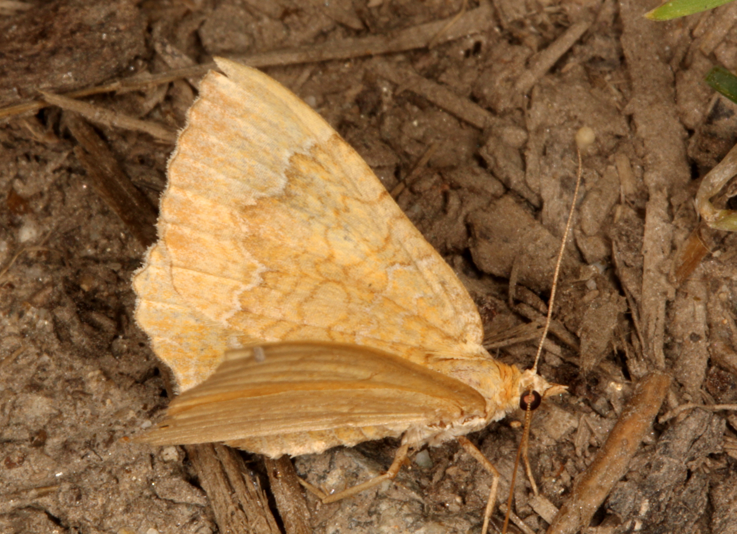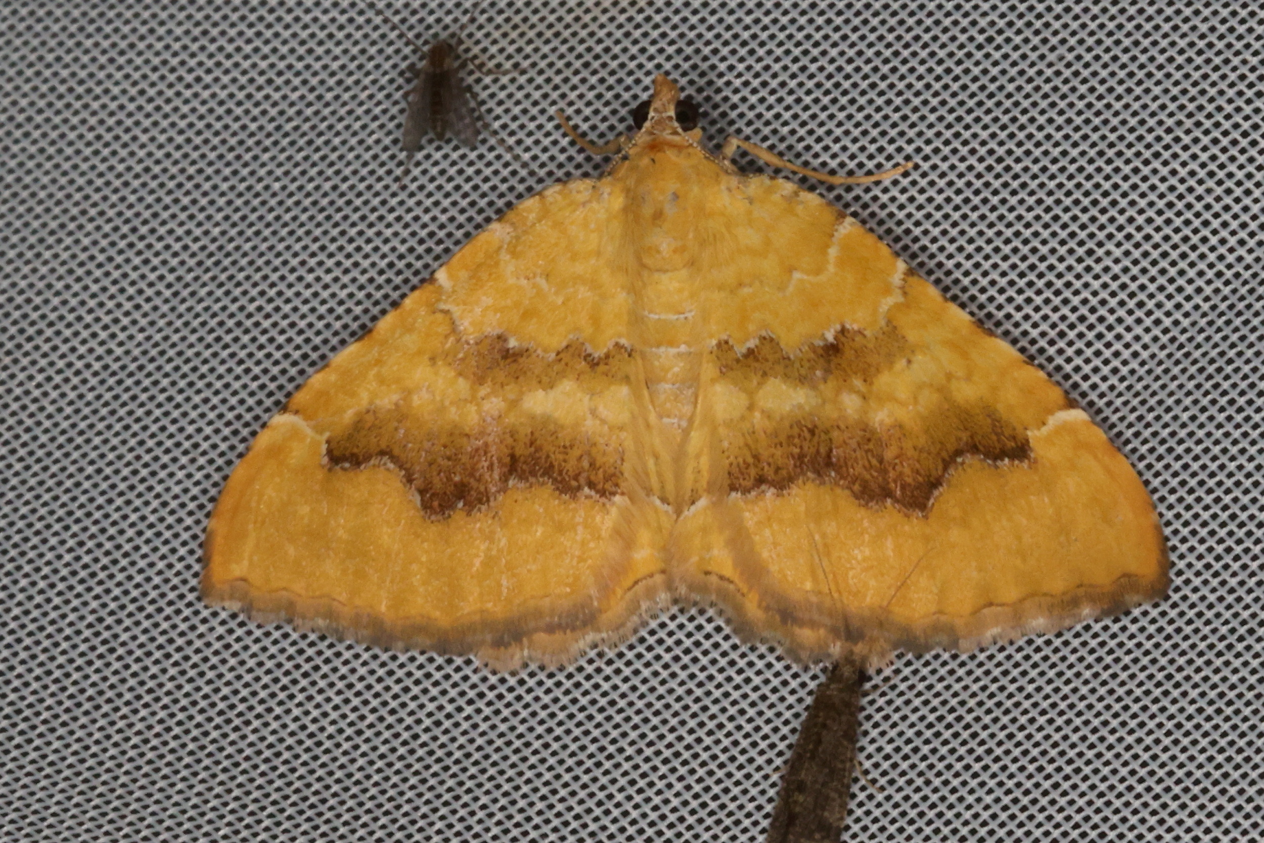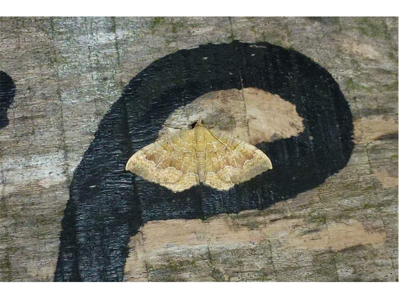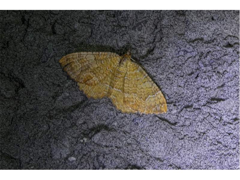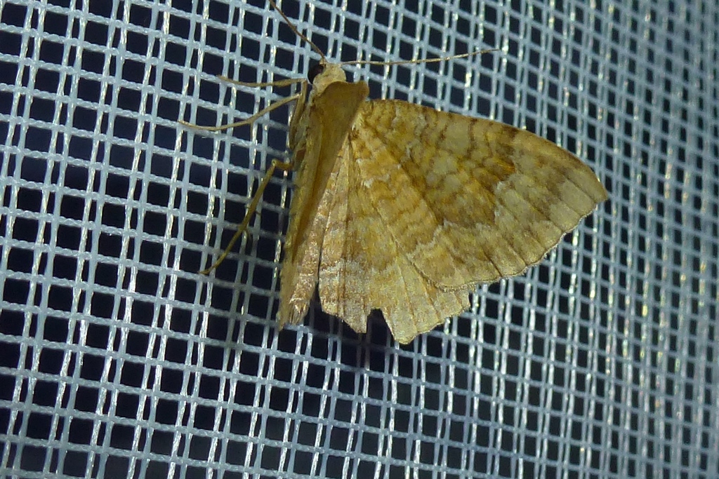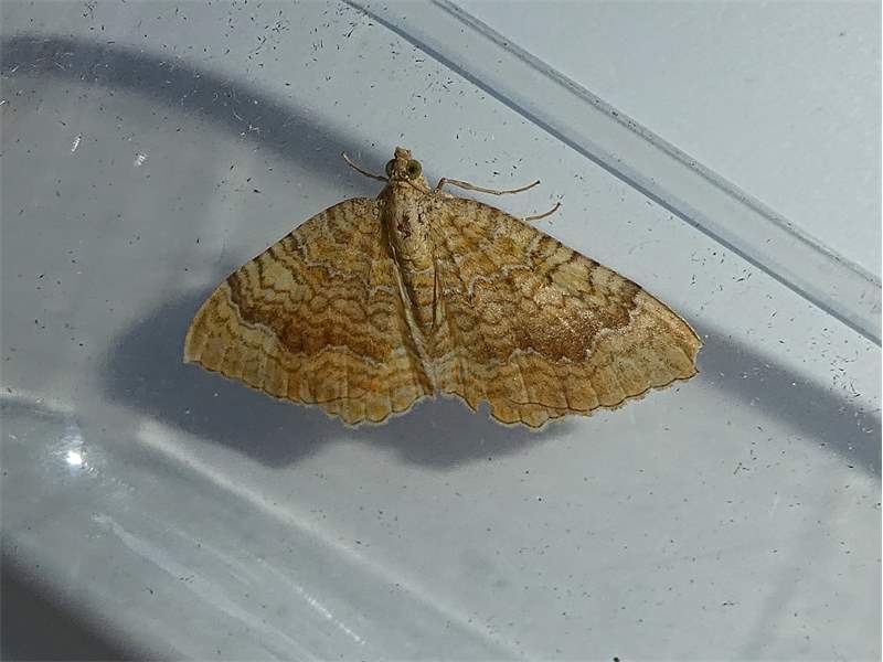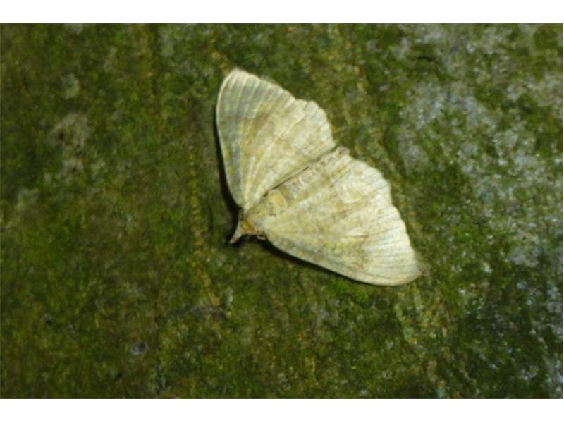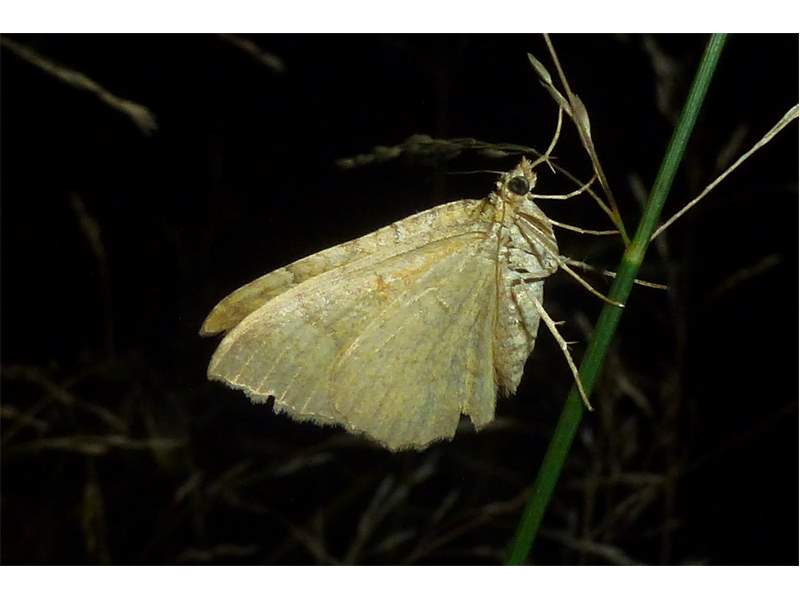 Ockergelbe Blattspanner, oder Löwenzahnspanner oder Brennnesselspanner (Camptogramma bilineata (Linnaeus, 1758)), am Licht, Radeberg, August 2013.