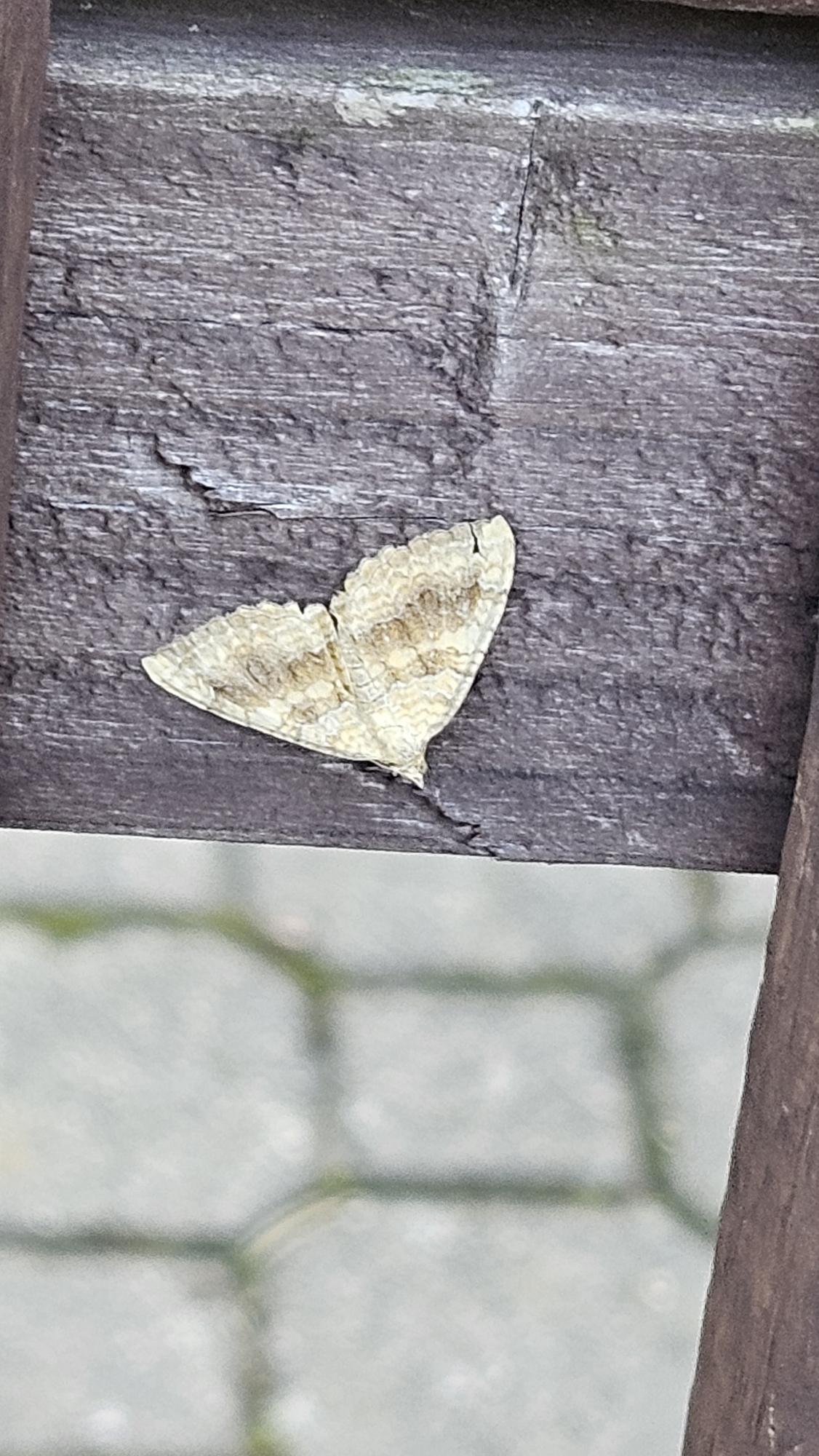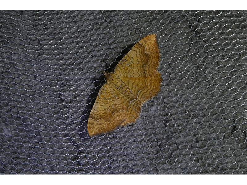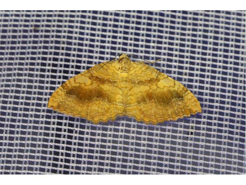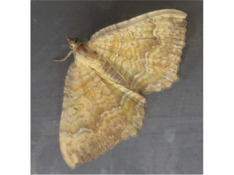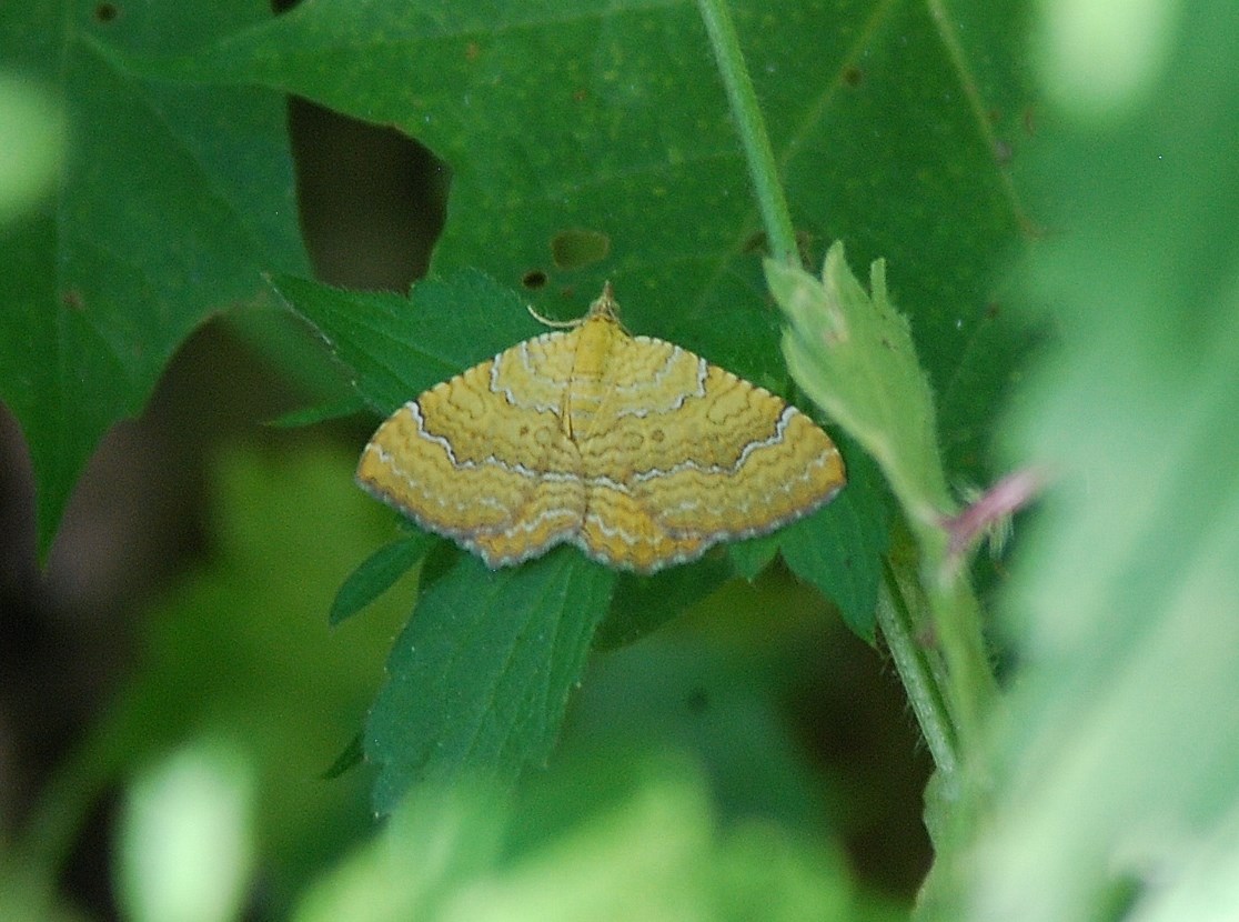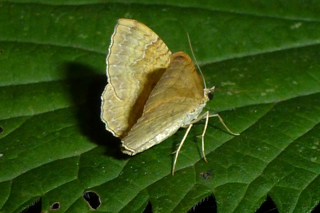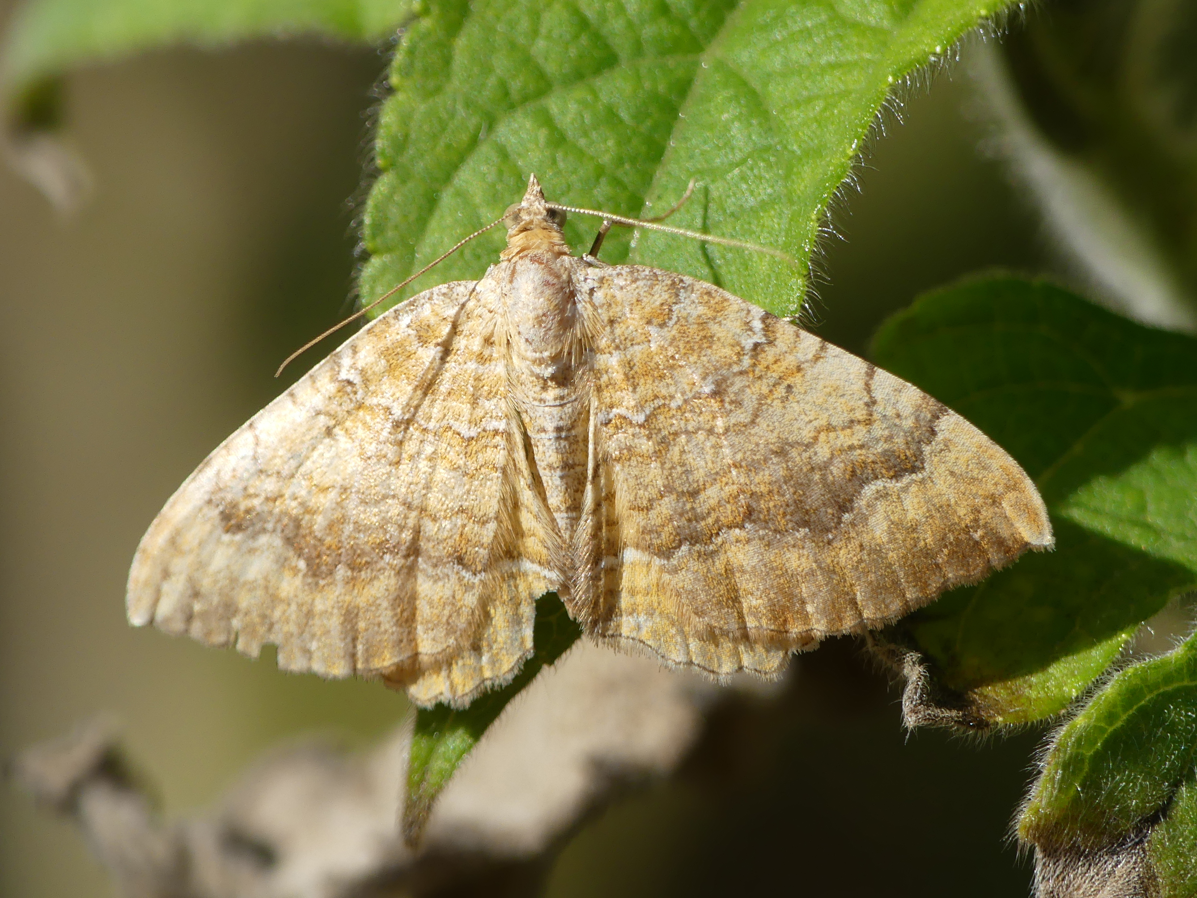 Ockergelbe Blattspanner, oder Löwenzahnspanner oder Brennnesselspanner (Camptogramma bilineata (Linnaeus, 1758)), am Licht, Radeberg, August 2013.