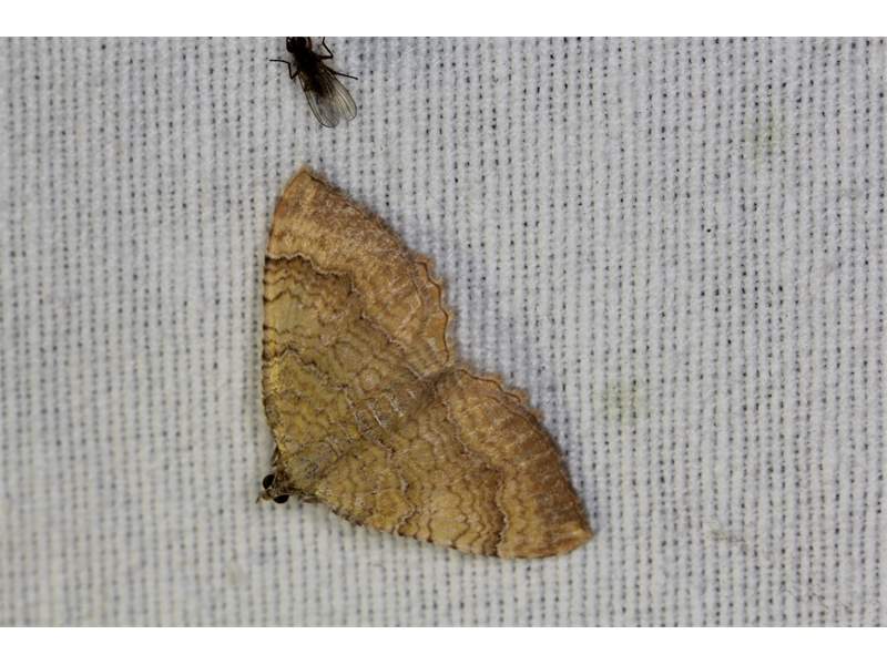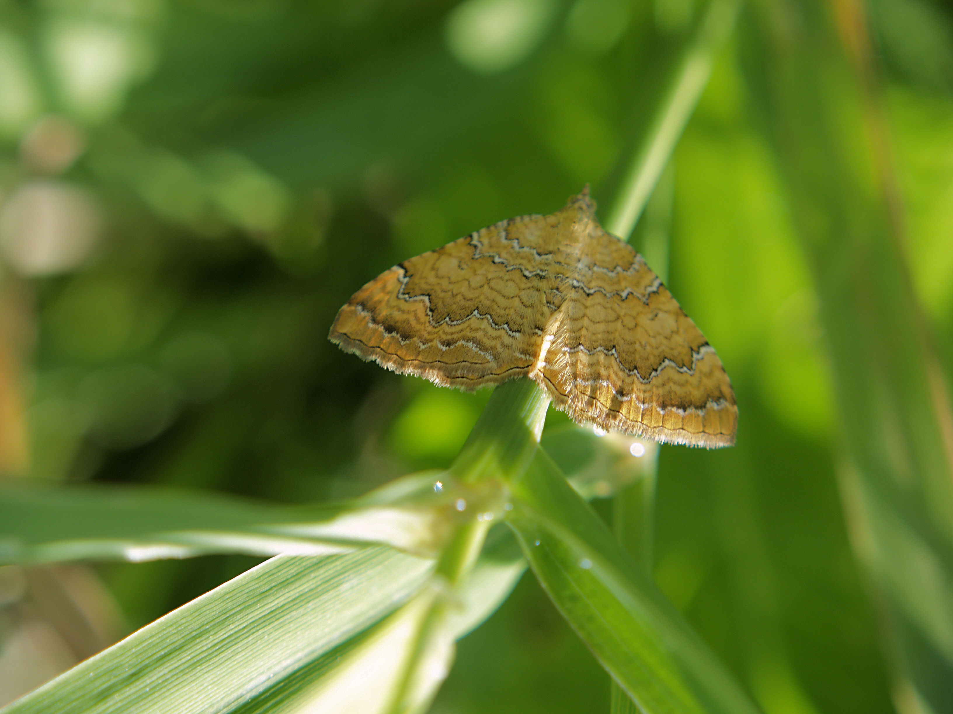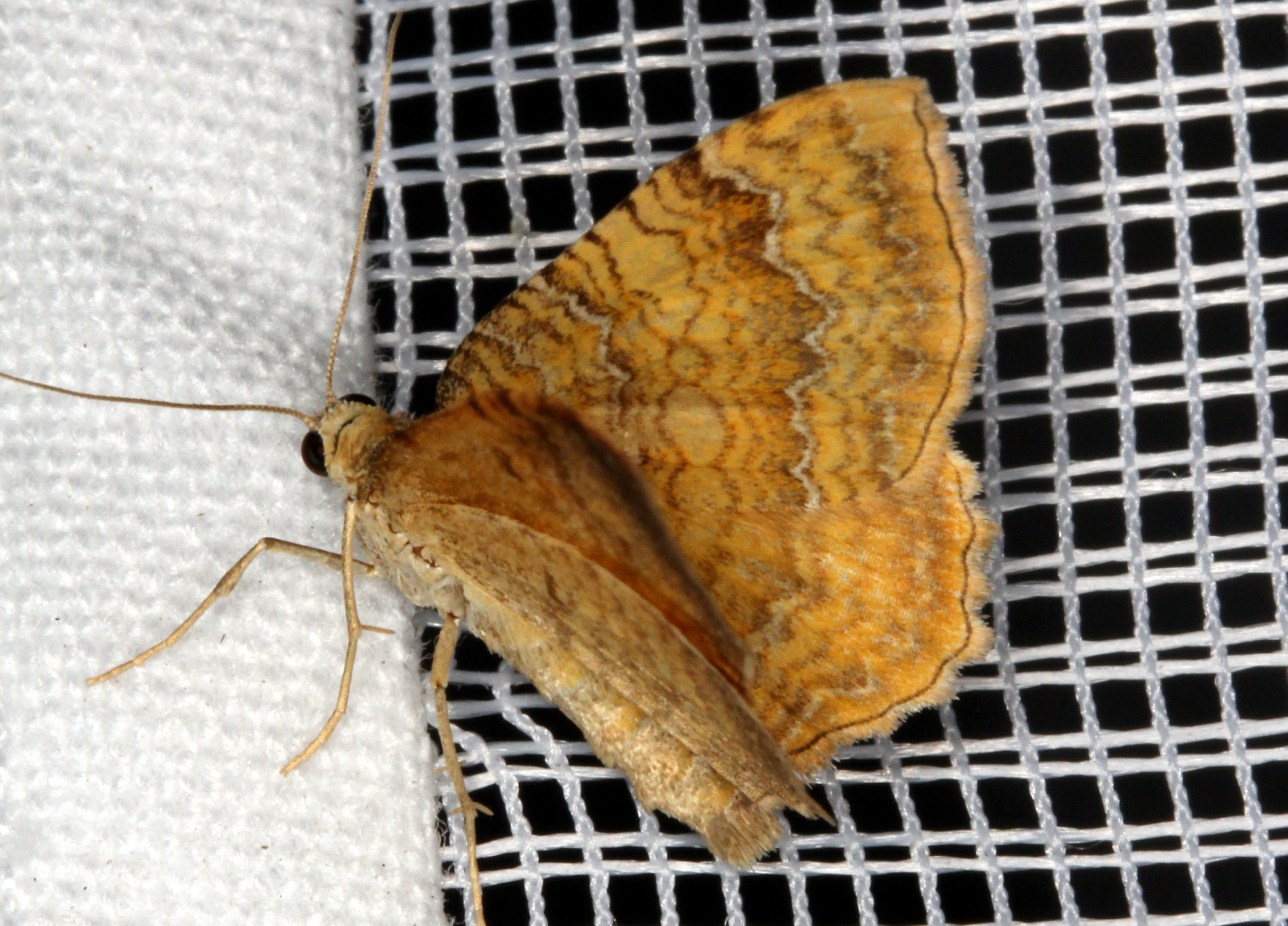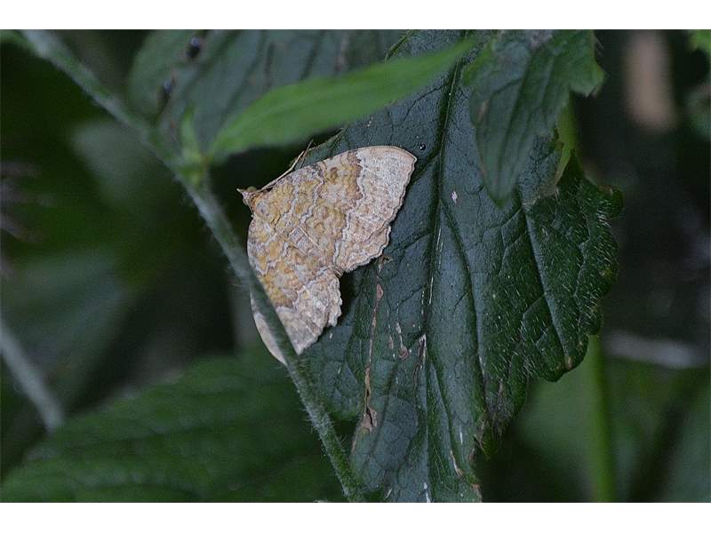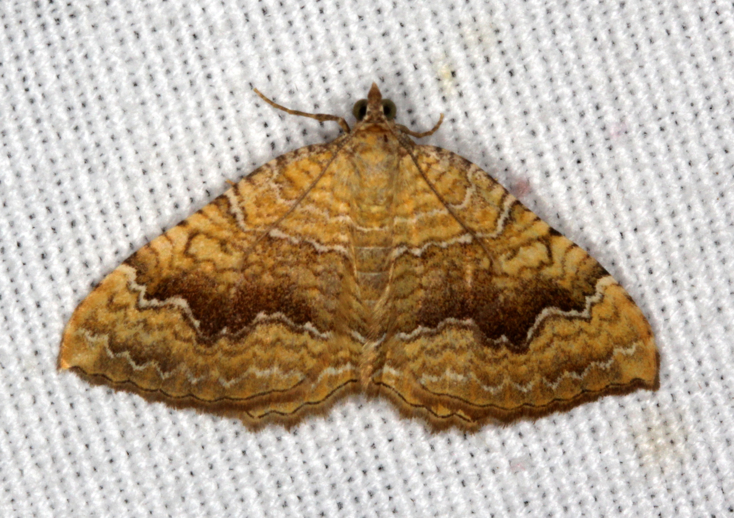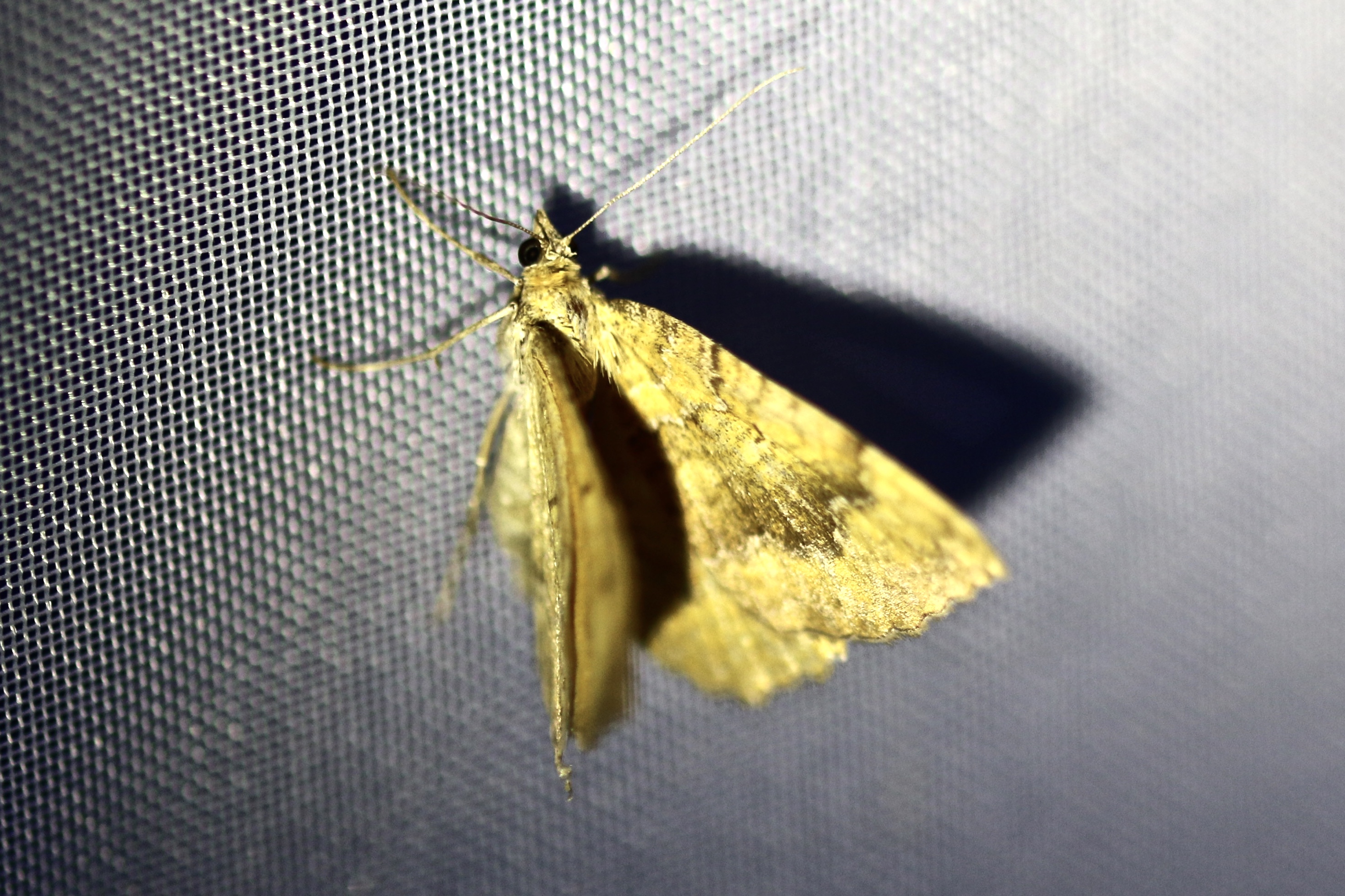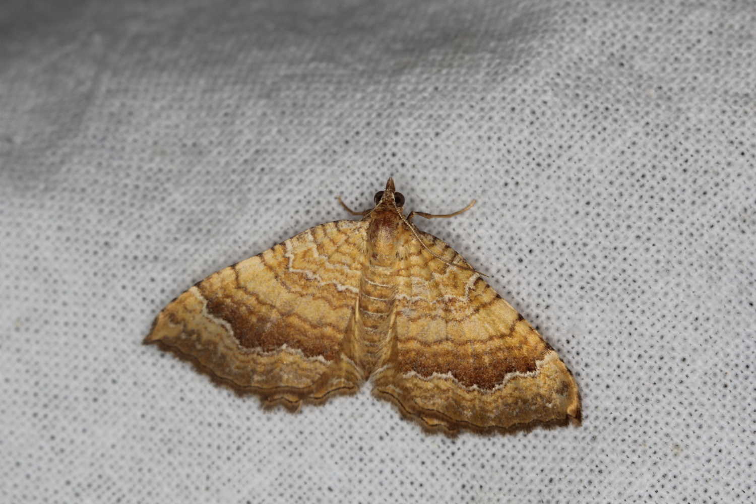 Ockergelbe Blattspanner, oder Löwenzahnspanner oder Brennnesselspanner (Camptogramma bilineata (Linnaeus, 1758)), am Licht, Radeberg, August 2013.