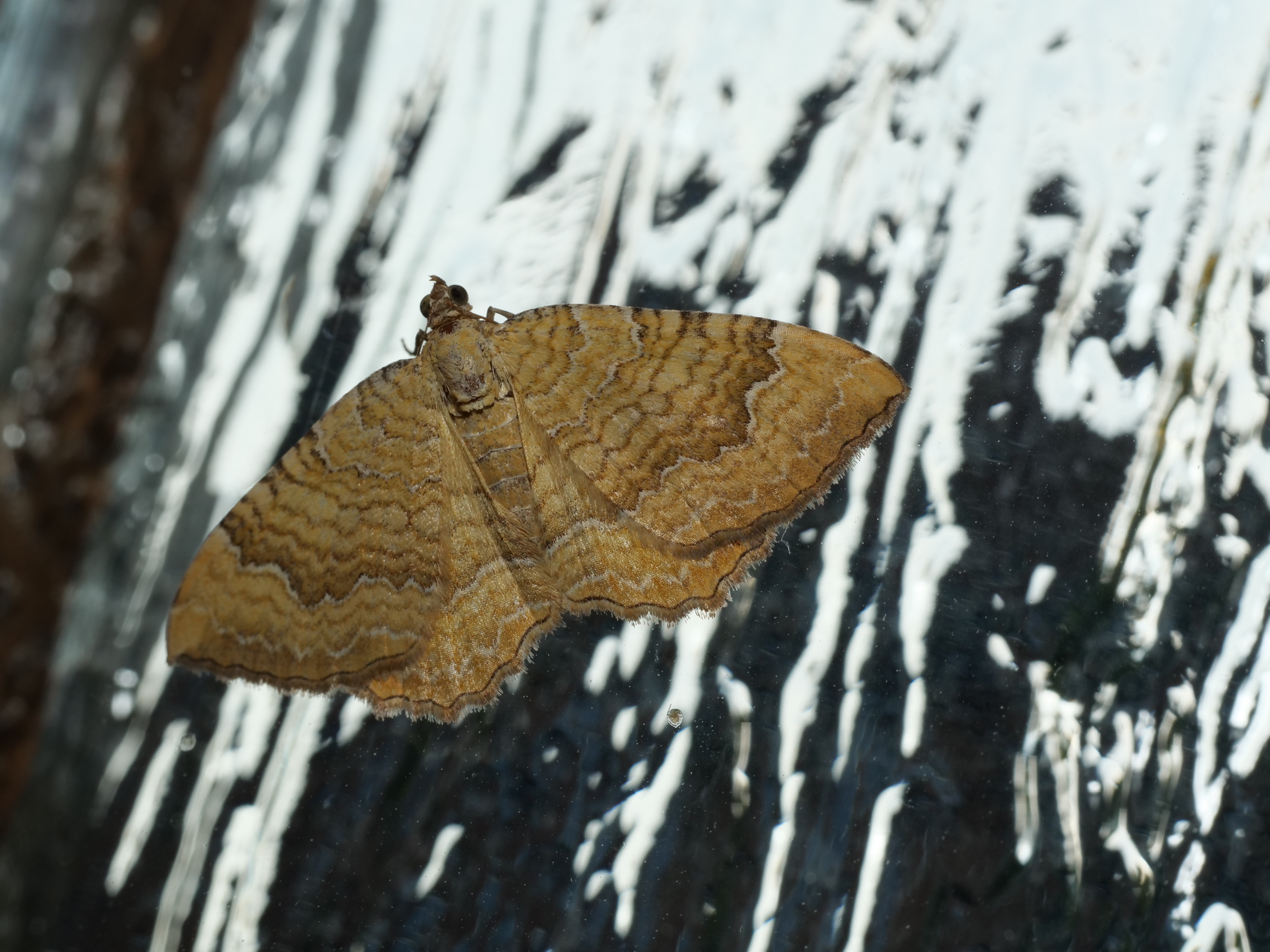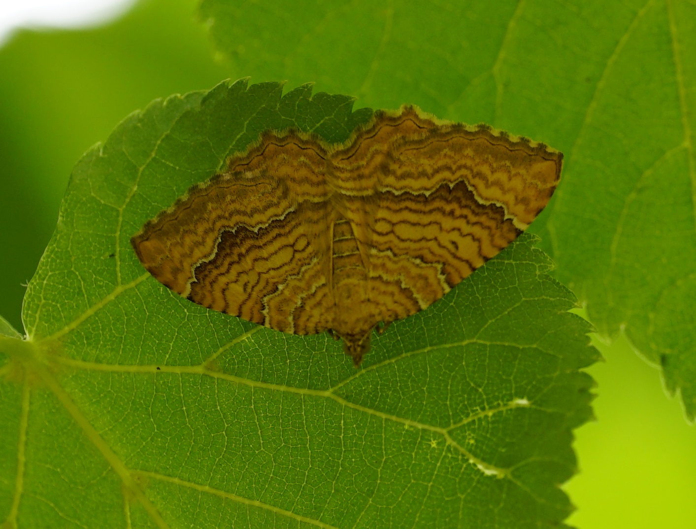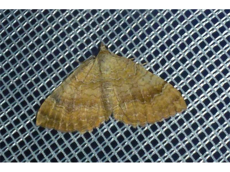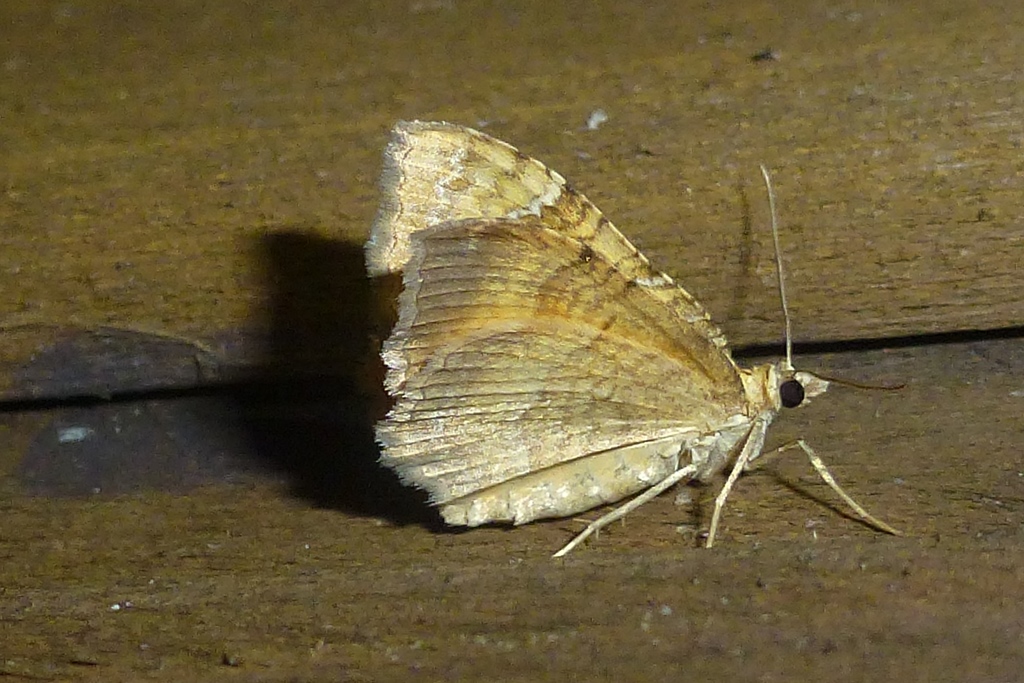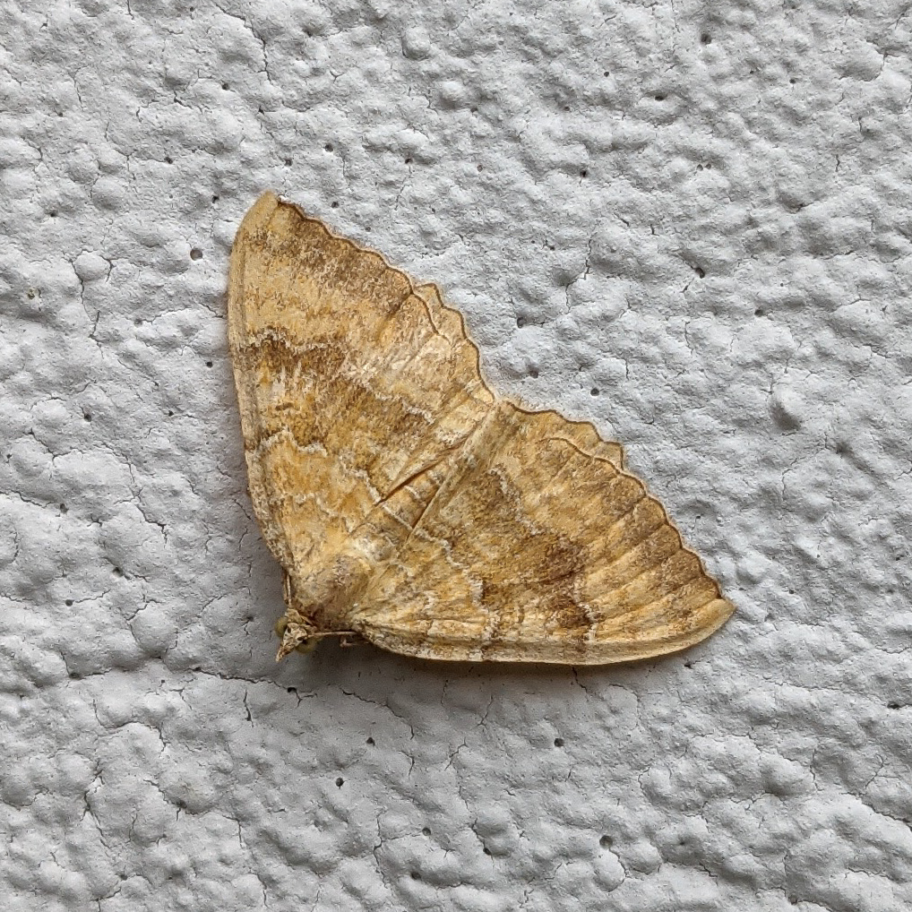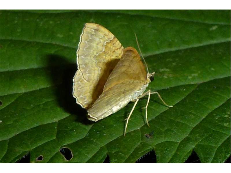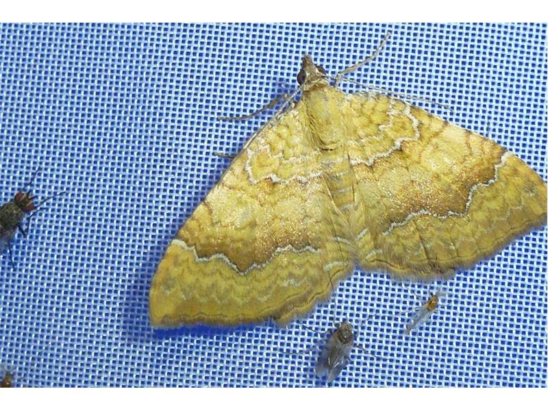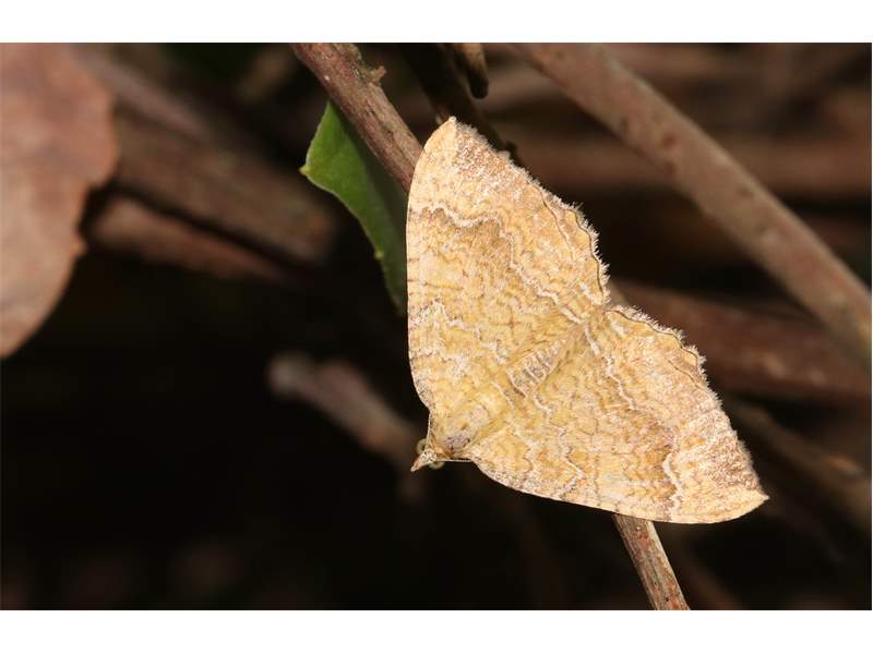 Ockergelbe Blattspanner, oder Löwenzahnspanner oder Brennnesselspanner (Camptogramma bilineata (Linnaeus, 1758)), am Licht, Radeberg, August 2013.