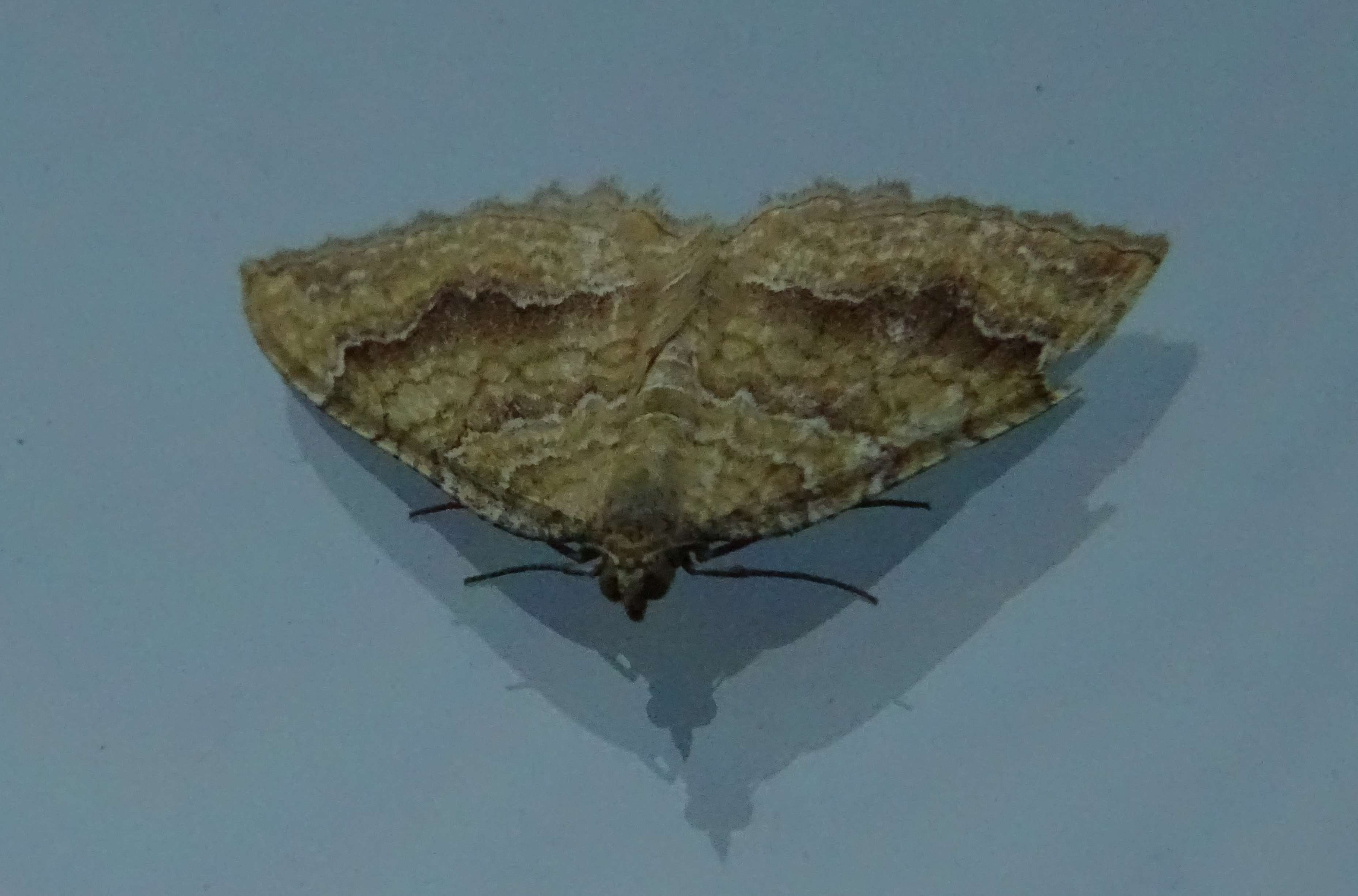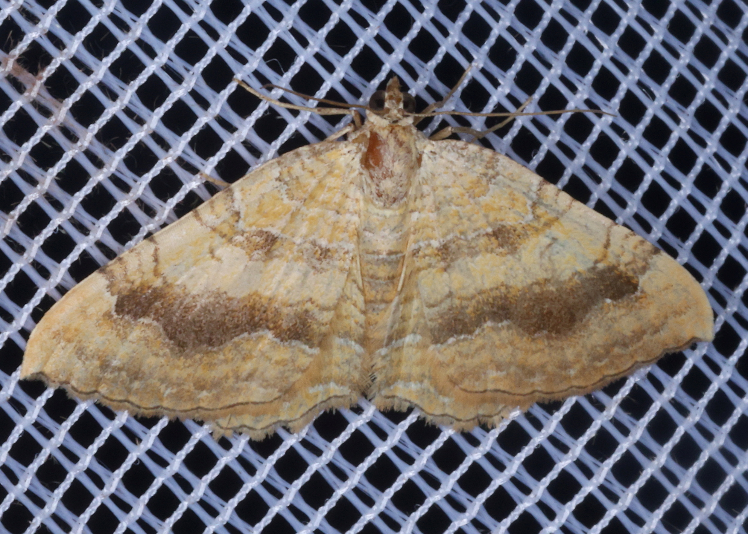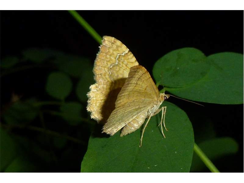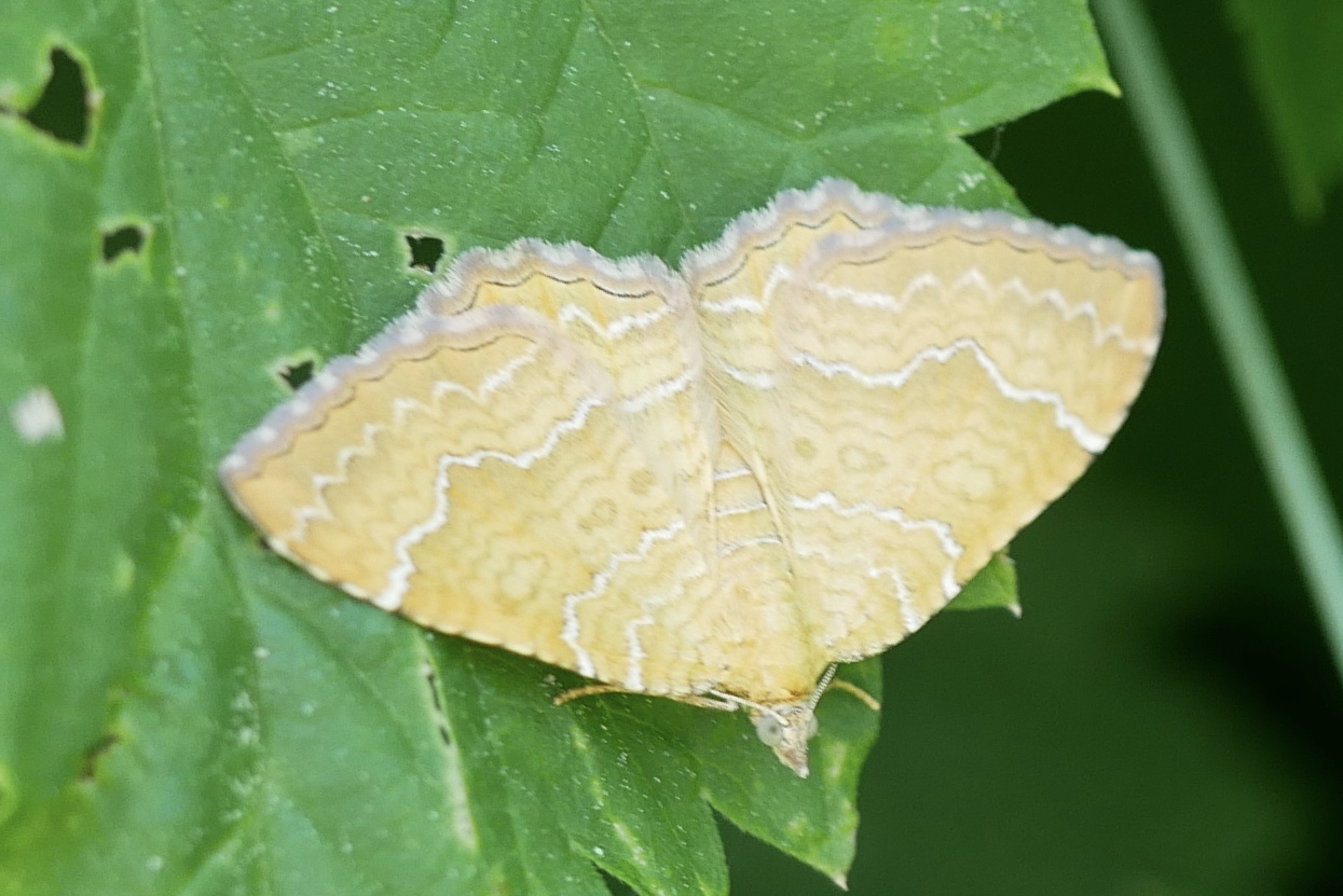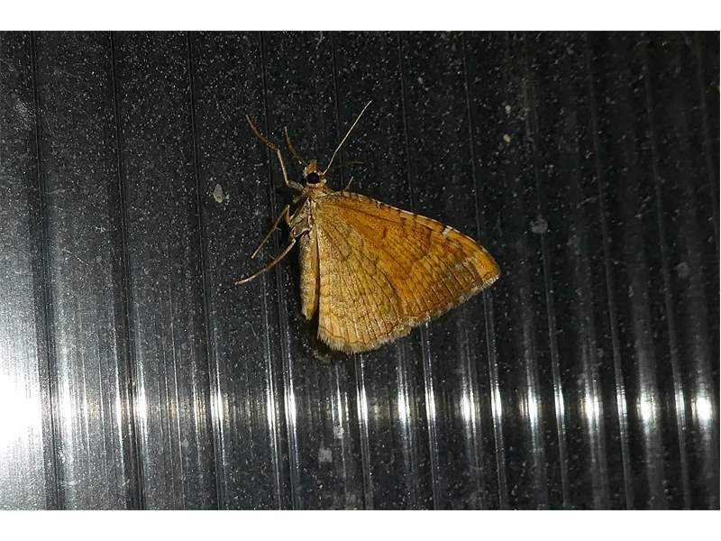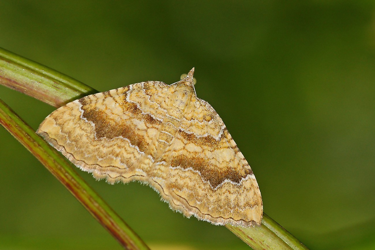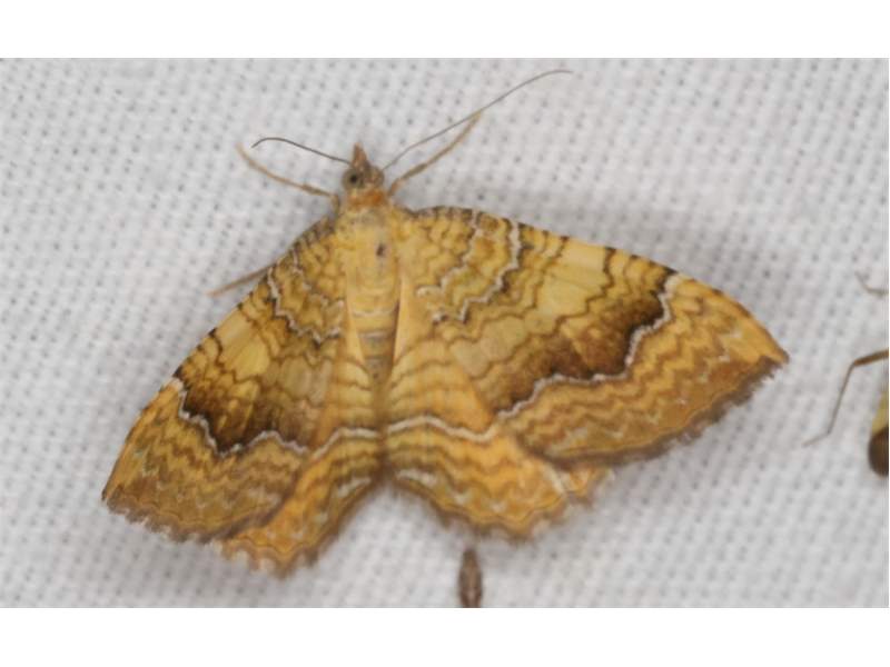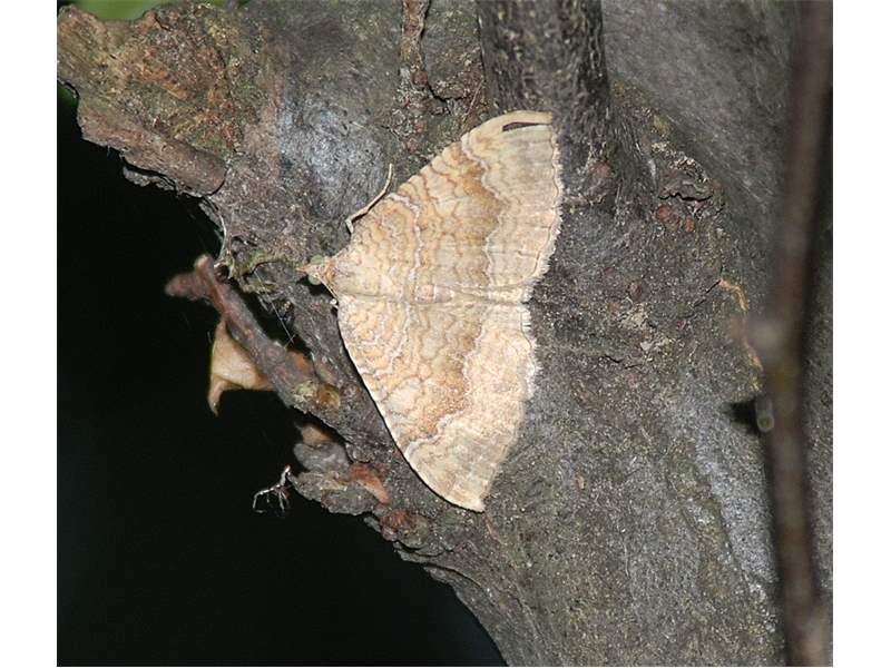 Ockergelbe Blattspanner, oder Löwenzahnspanner oder Brennnesselspanner (Camptogramma bilineata (Linnaeus, 1758)), am Licht, Radeberg, August 2013.