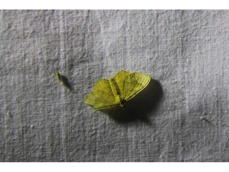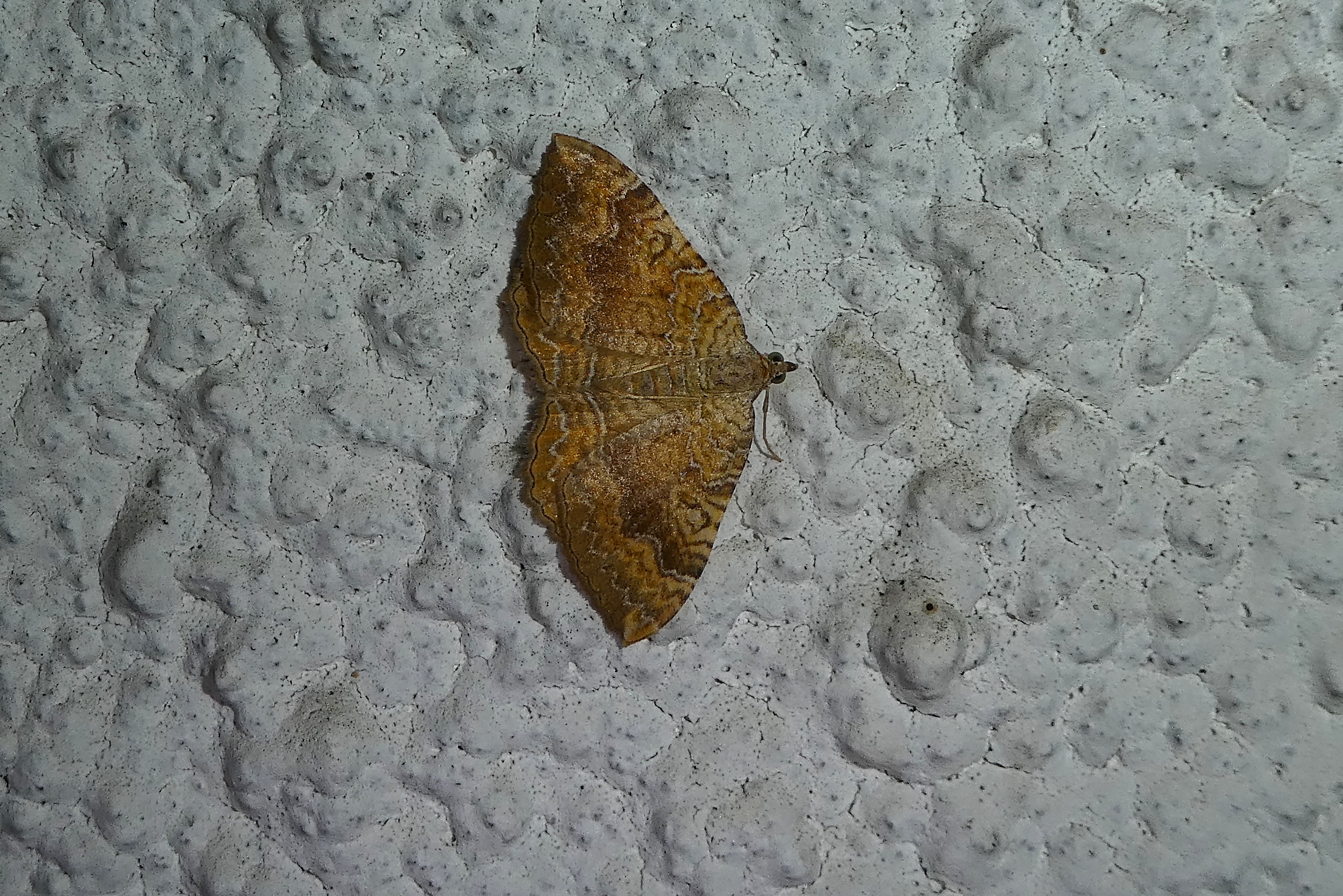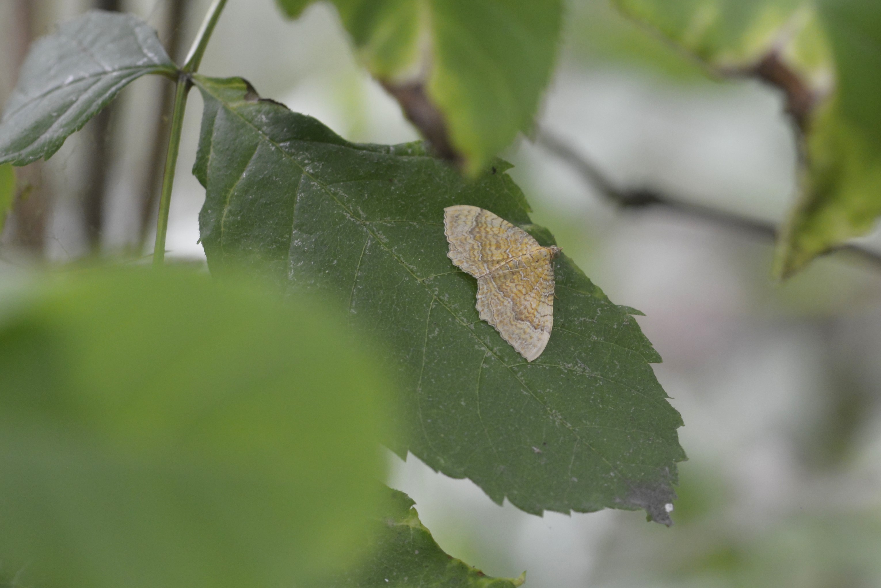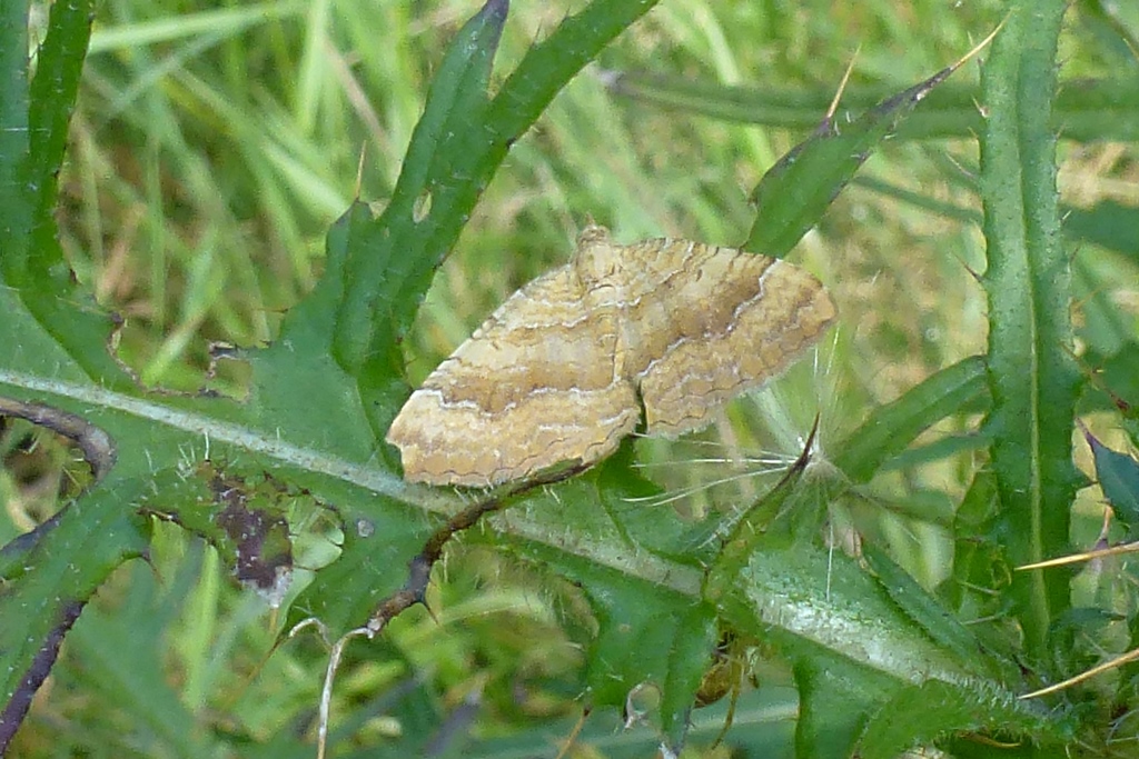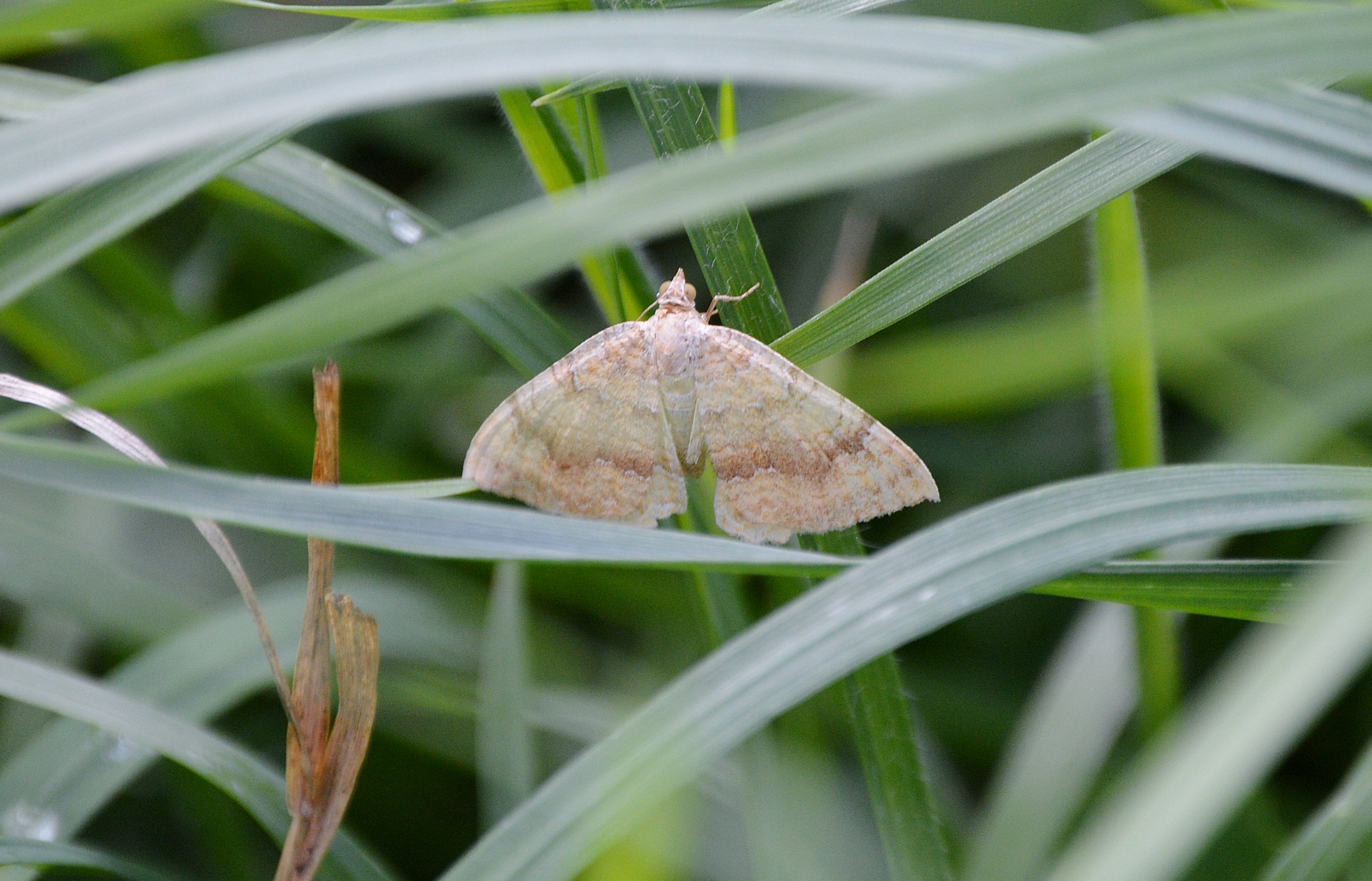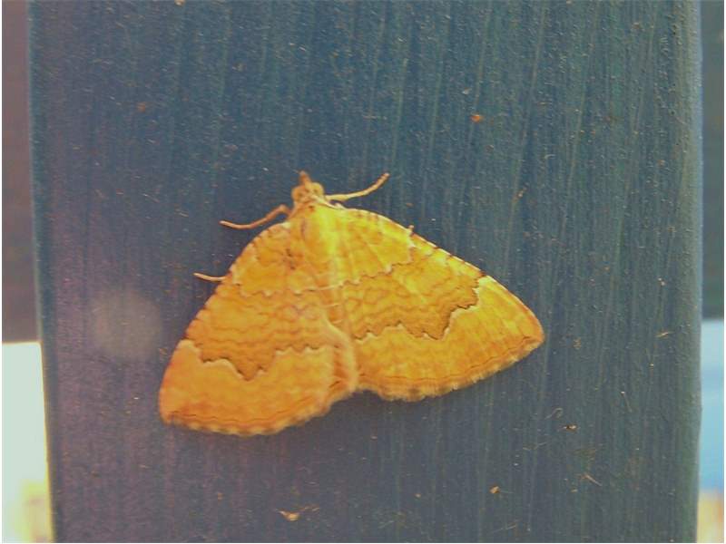 Ockergelbe Blattspanner, oder Löwenzahnspanner oder Brennnesselspanner (Camptogramma bilineata (Linnaeus, 1758)), am Licht, Radeberg, August 2013.