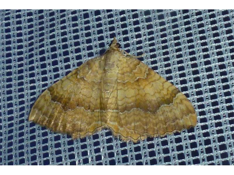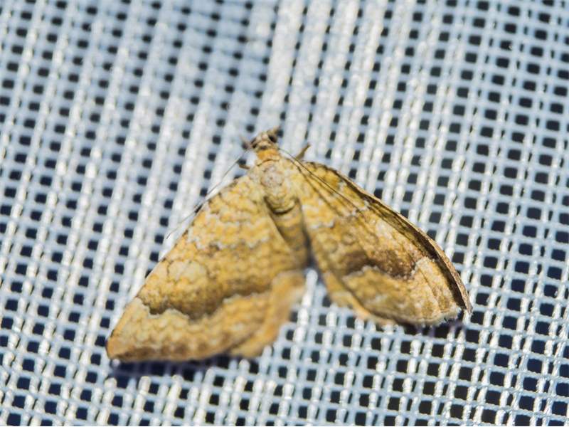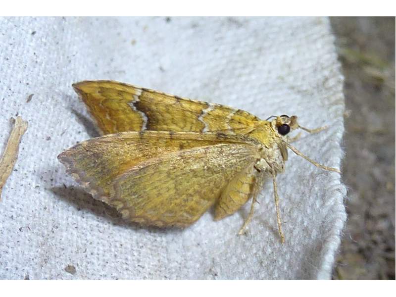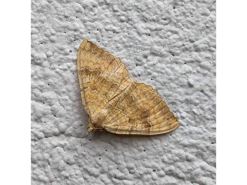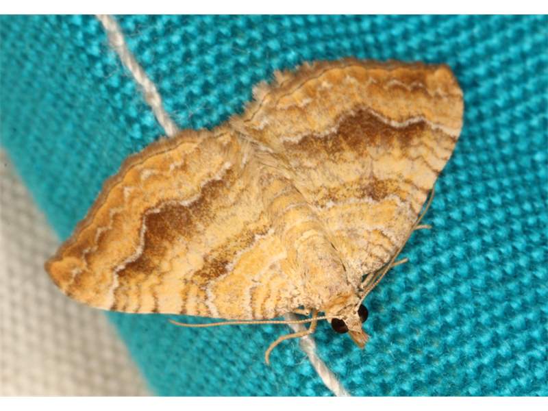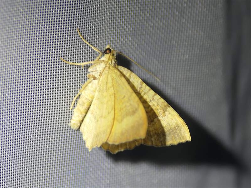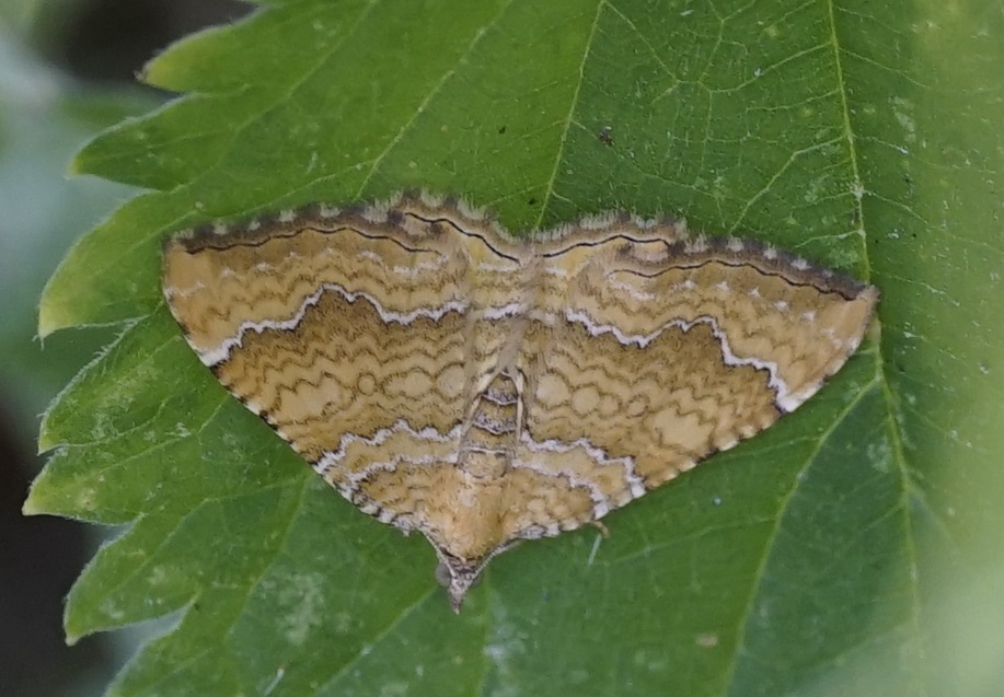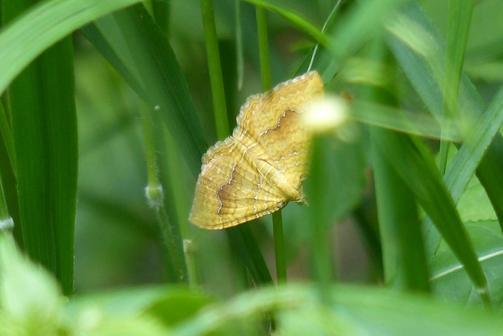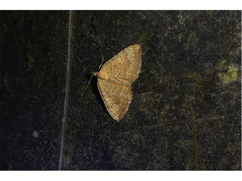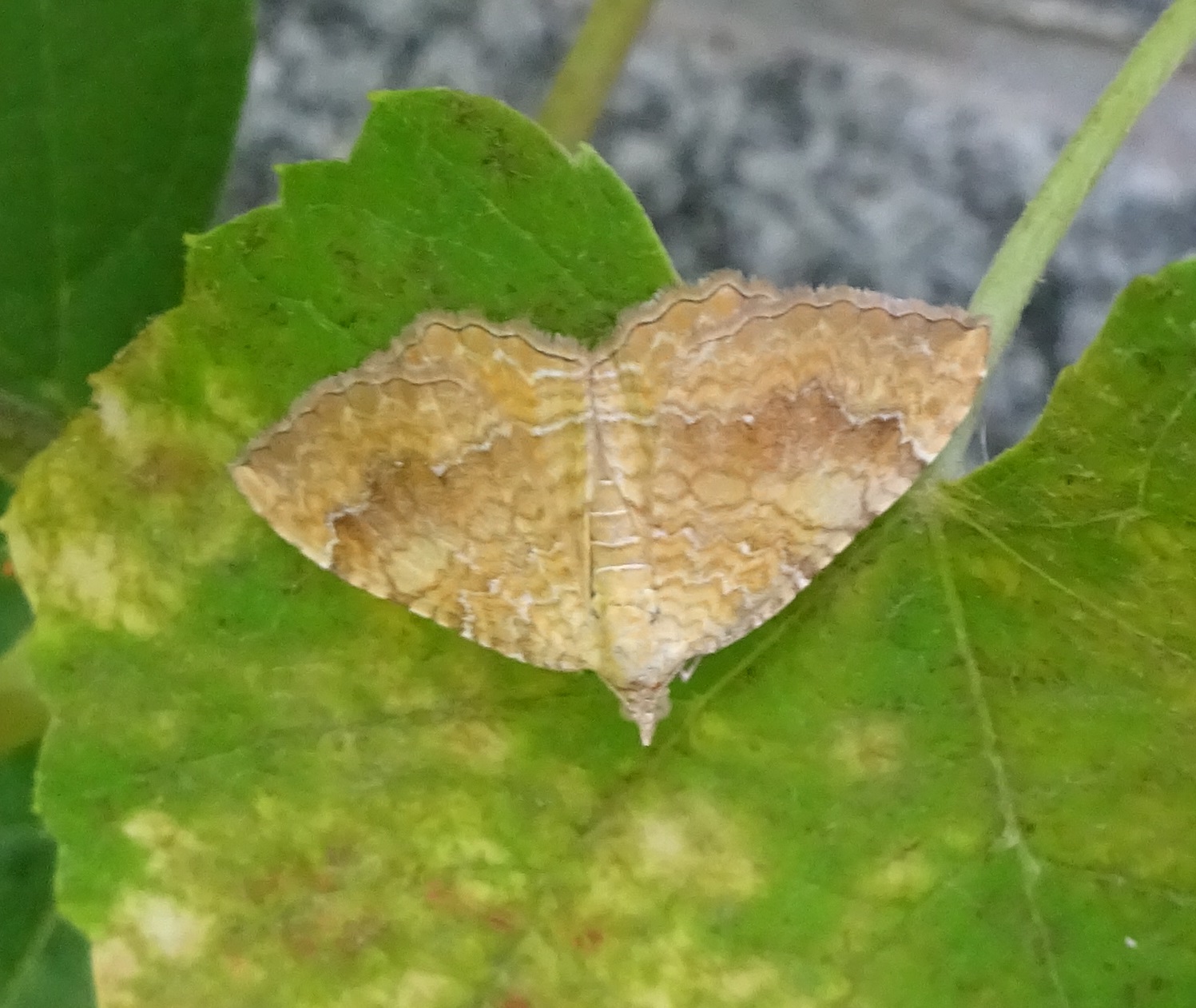 Ockergelbe Blattspanner, oder Löwenzahnspanner oder Brennnesselspanner (Camptogramma bilineata (Linnaeus, 1758)), am Licht, Radeberg, August 2013.