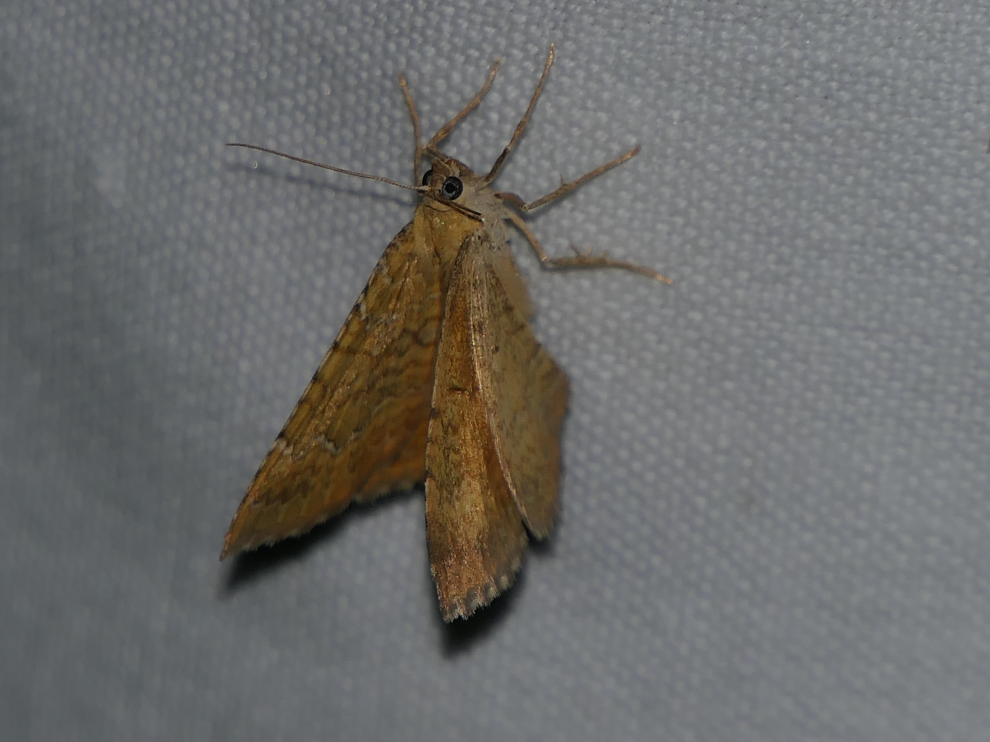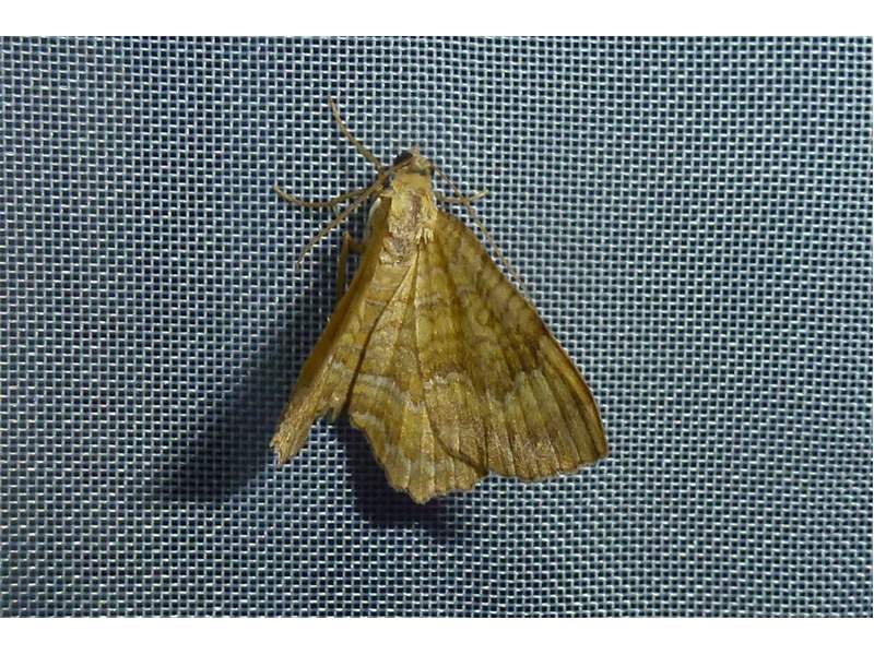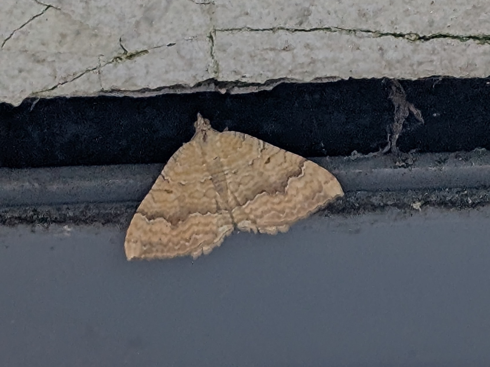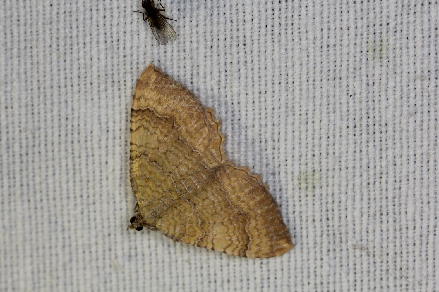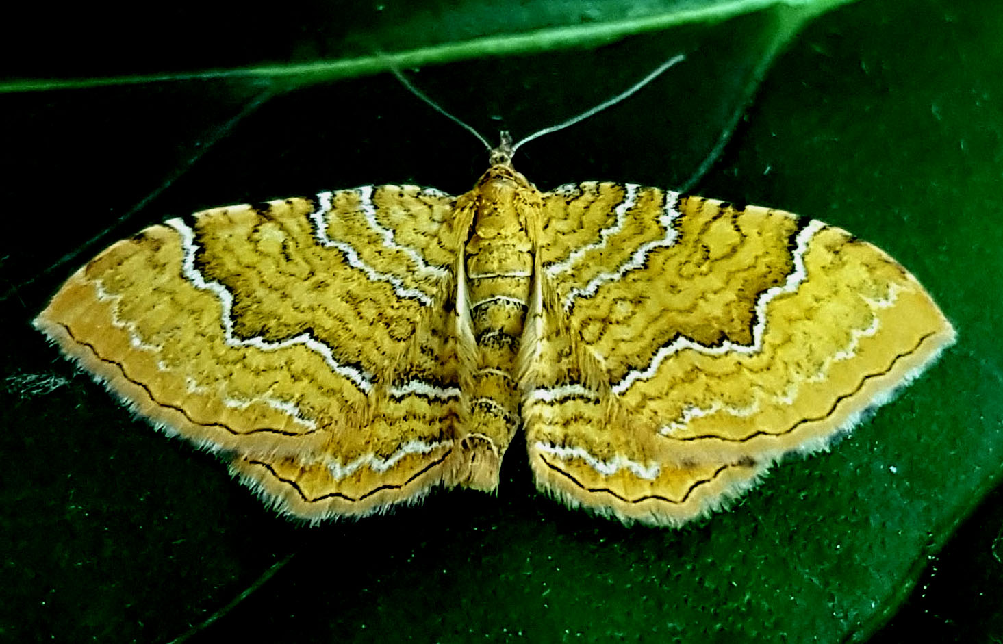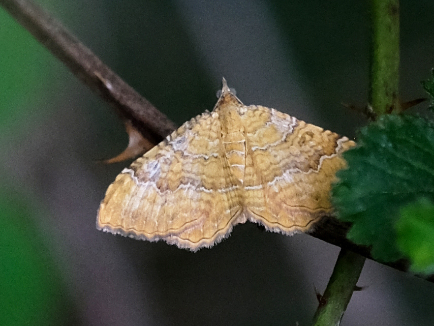 Ockergelbe Blattspanner, oder Löwenzahnspanner oder Brennnesselspanner (Camptogramma bilineata (Linnaeus, 1758)), am Licht, Radeberg, August 2013.