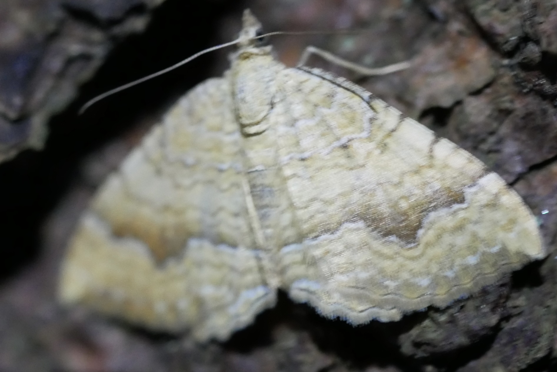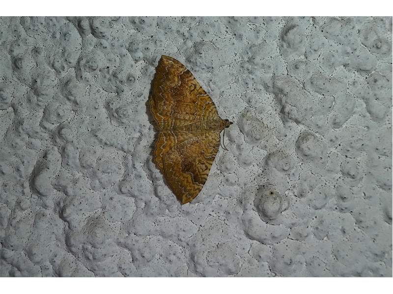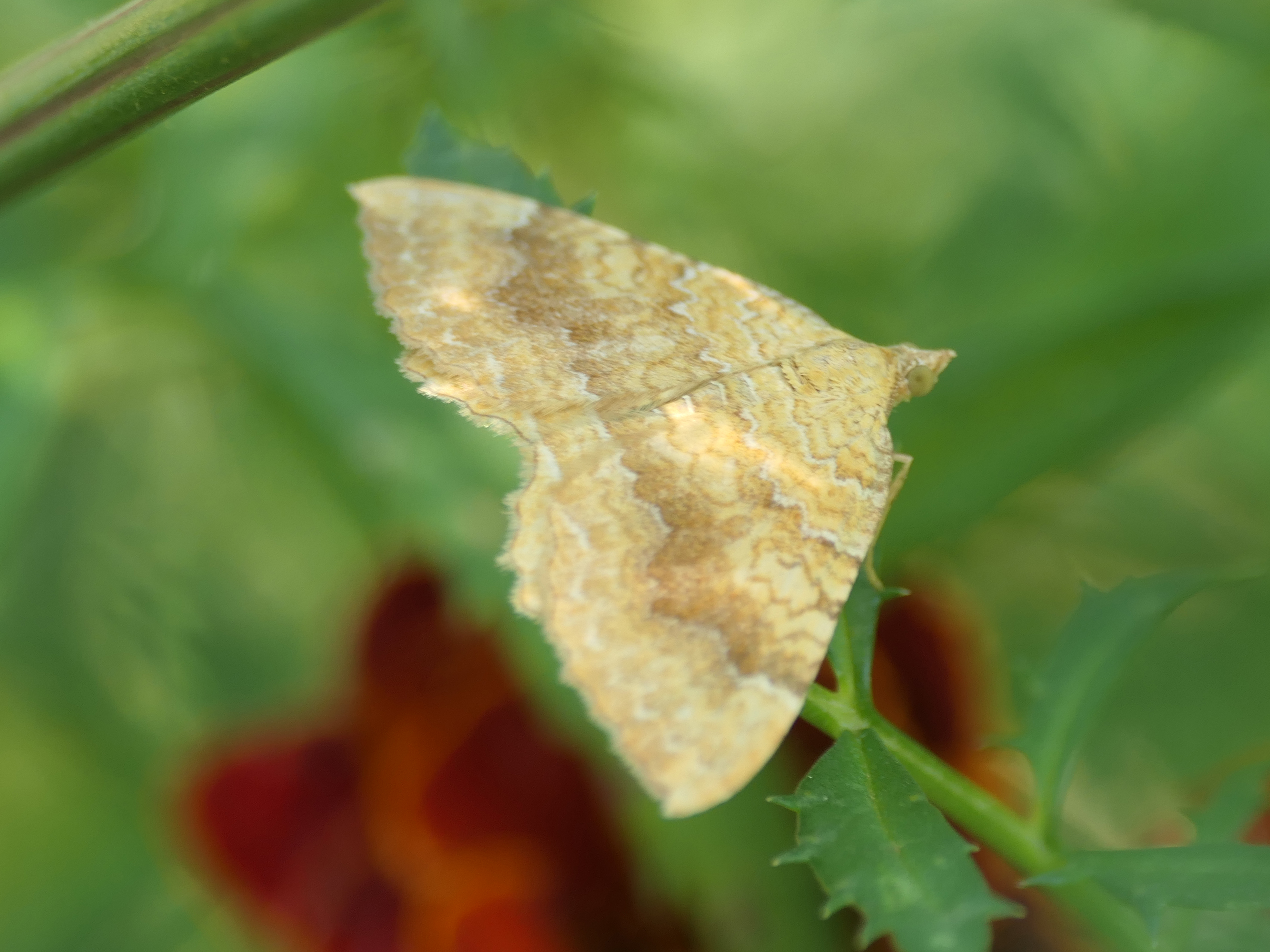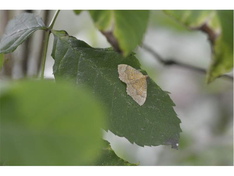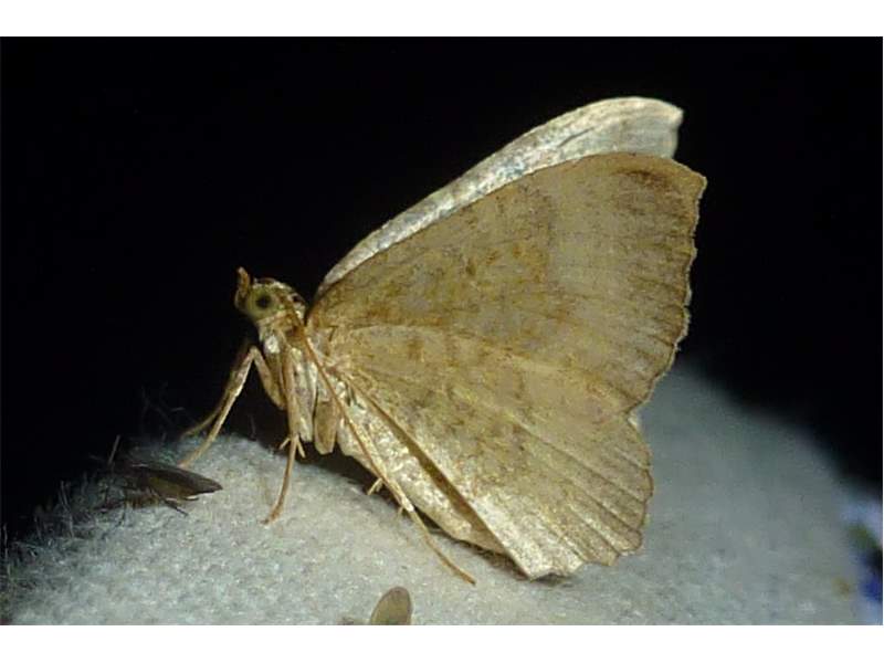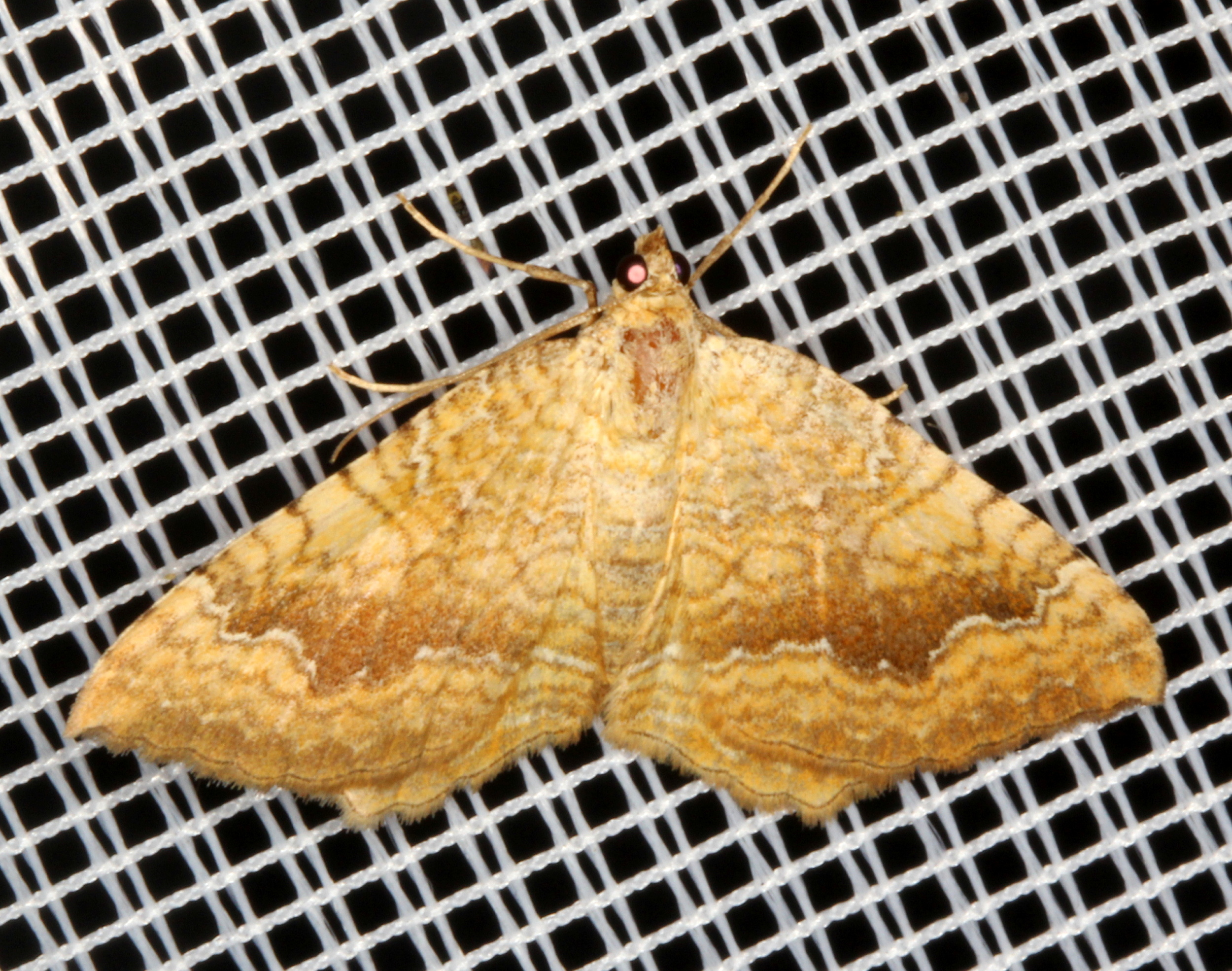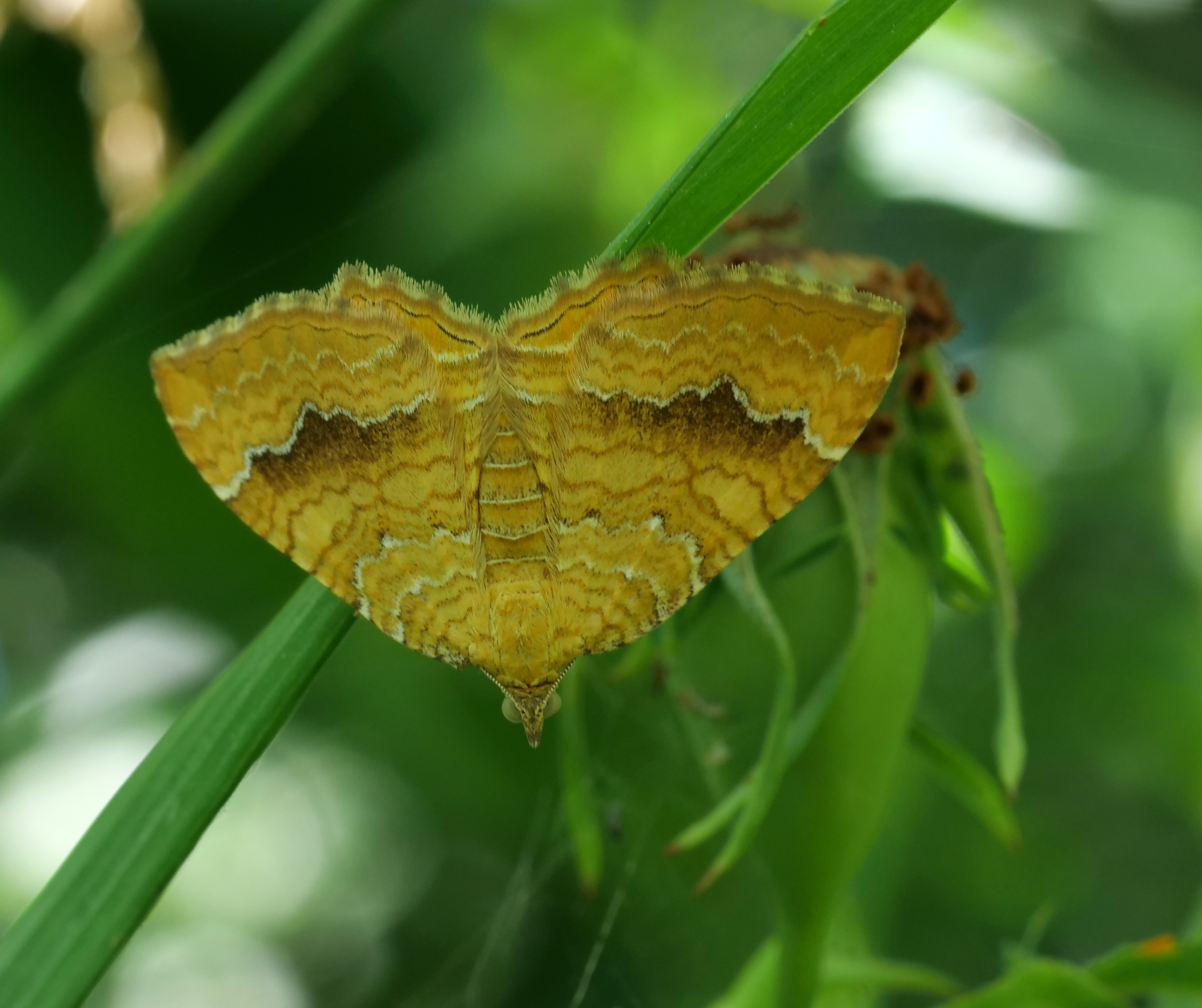 Ockergelbe Blattspanner, oder Löwenzahnspanner oder Brennnesselspanner (Camptogramma bilineata (Linnaeus, 1758)), am Licht, Radeberg, August 2013.