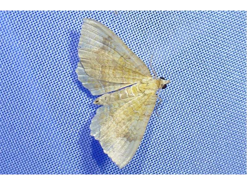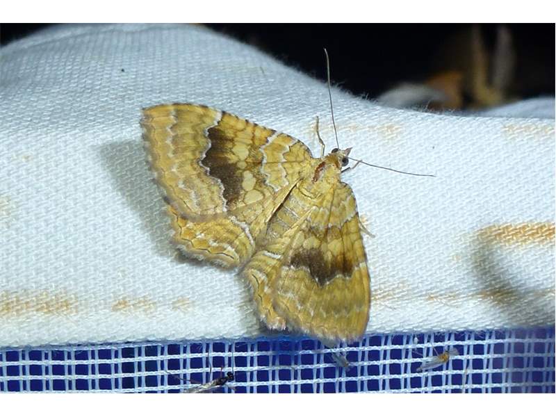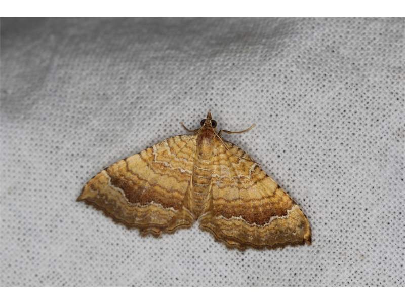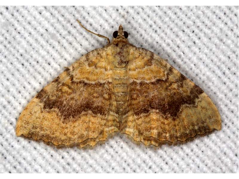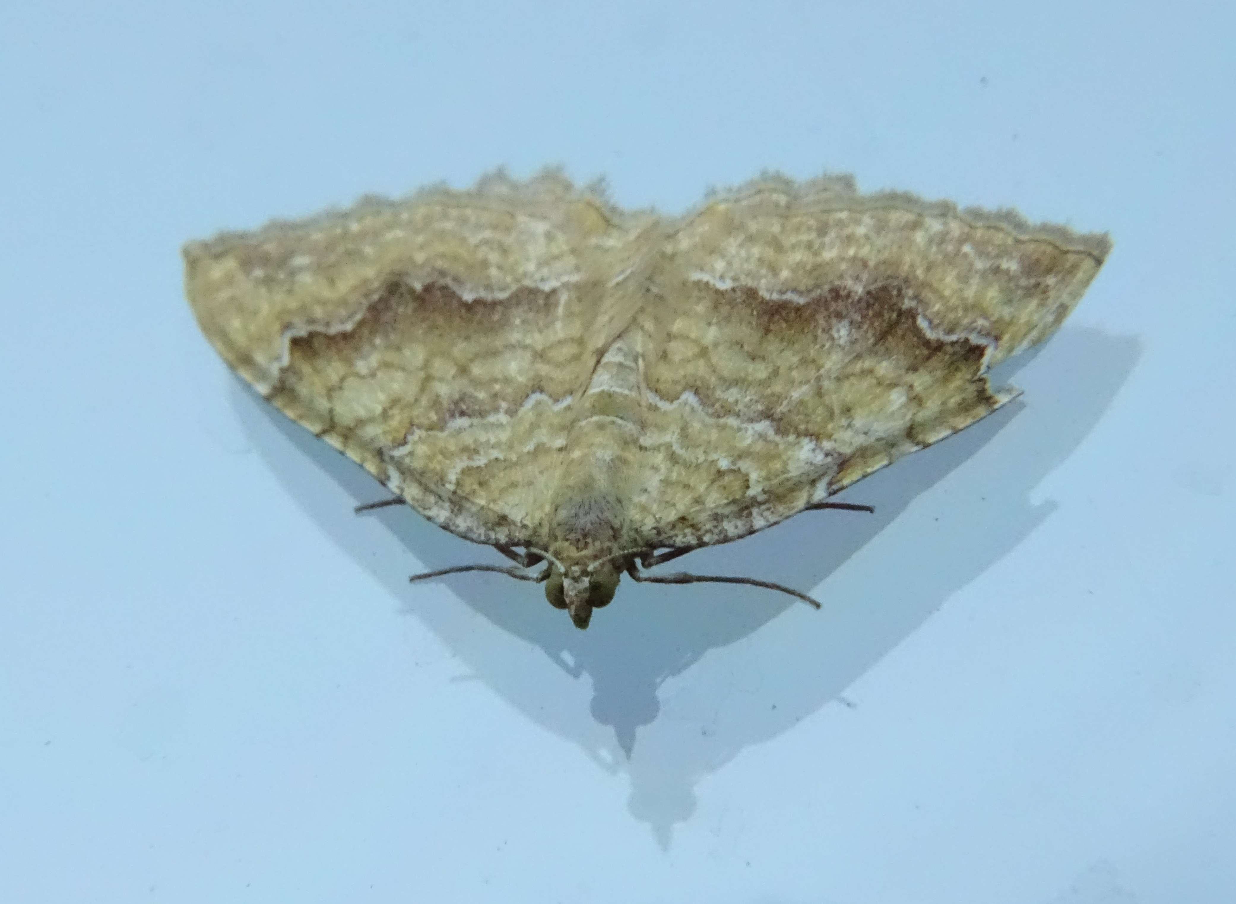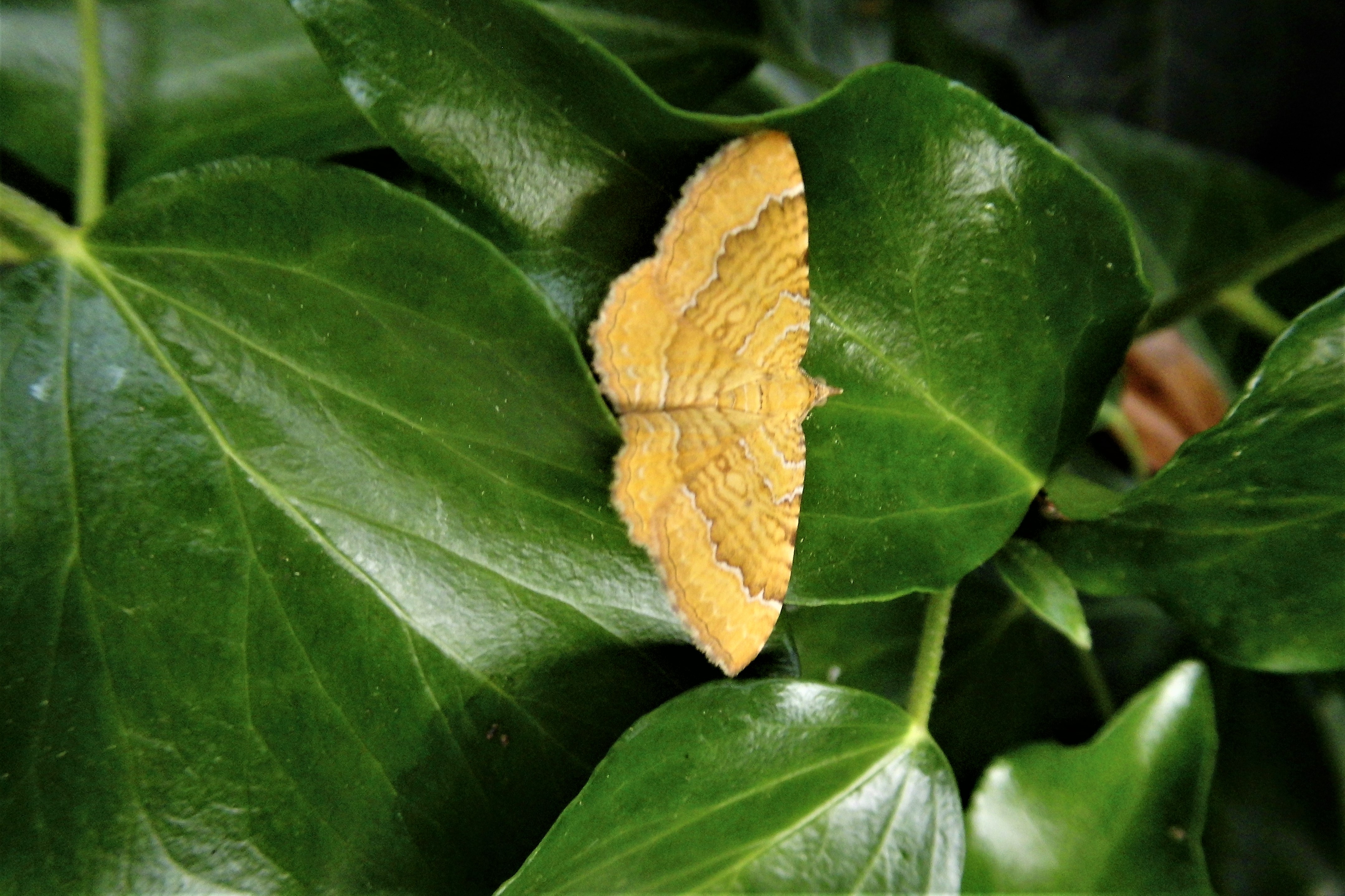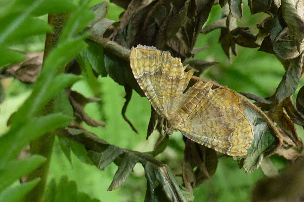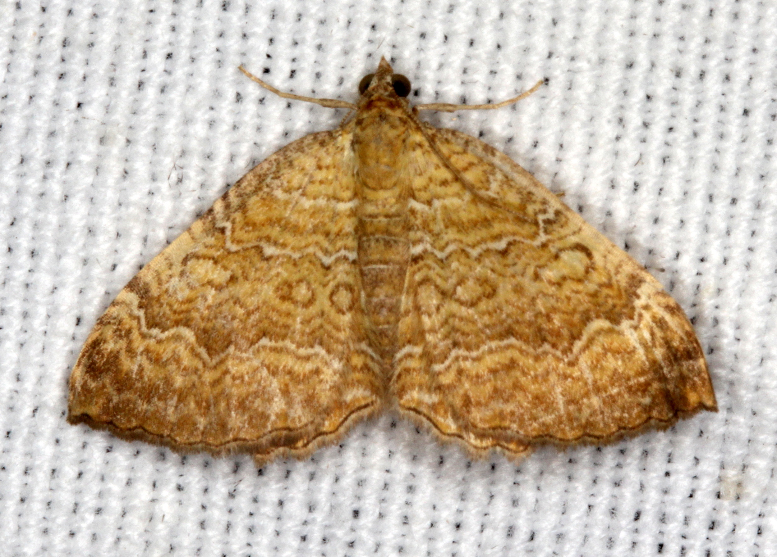 Ockergelbe Blattspanner, oder Löwenzahnspanner oder Brennnesselspanner (Camptogramma bilineata (Linnaeus, 1758)), am Licht, Radeberg, August 2013.