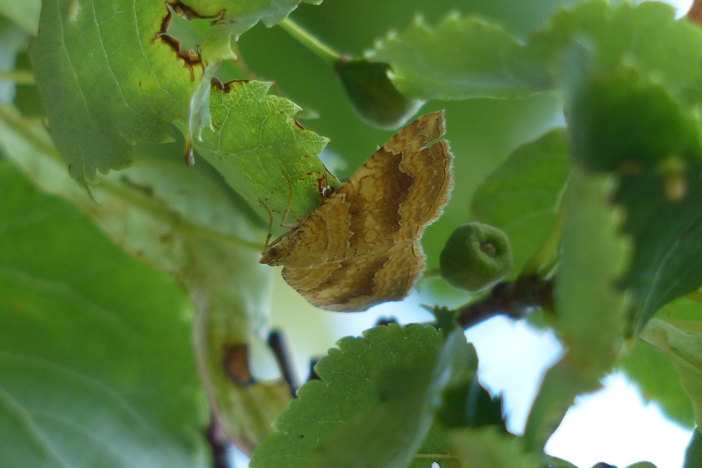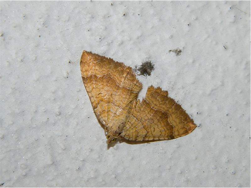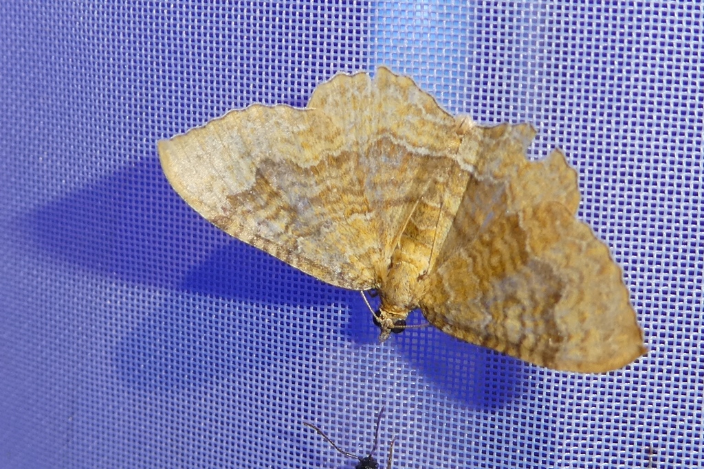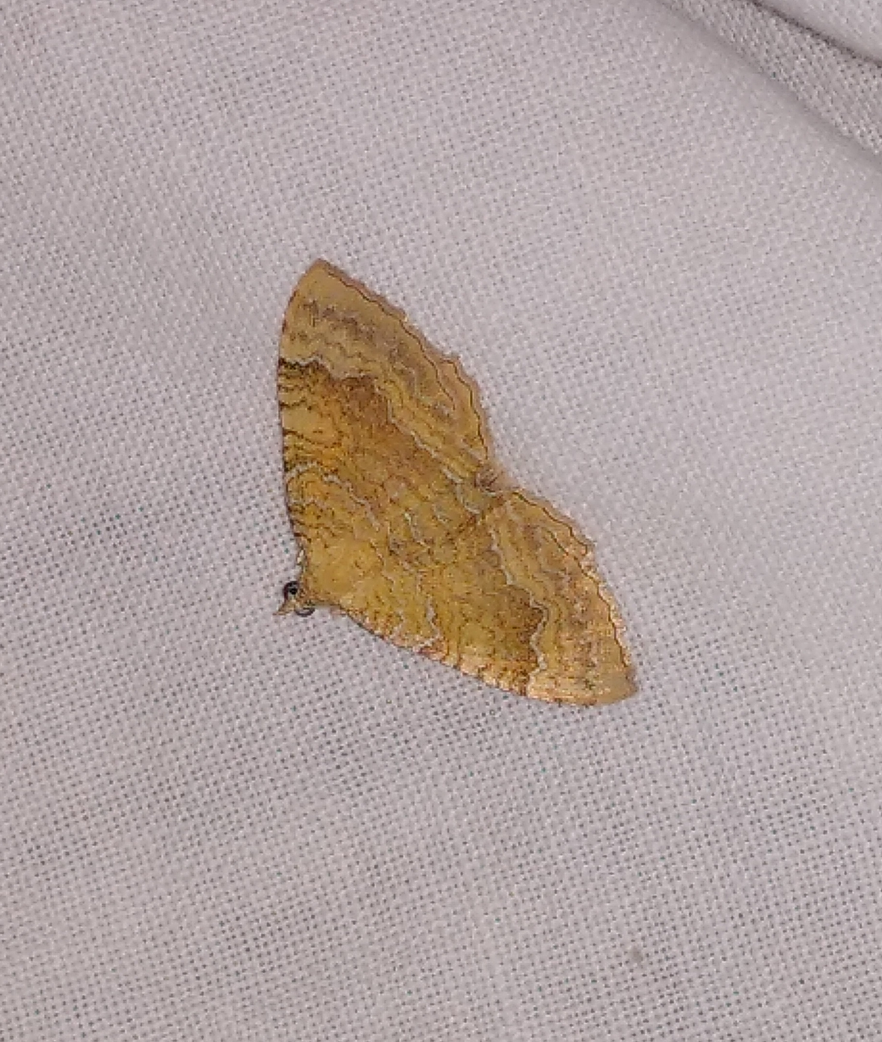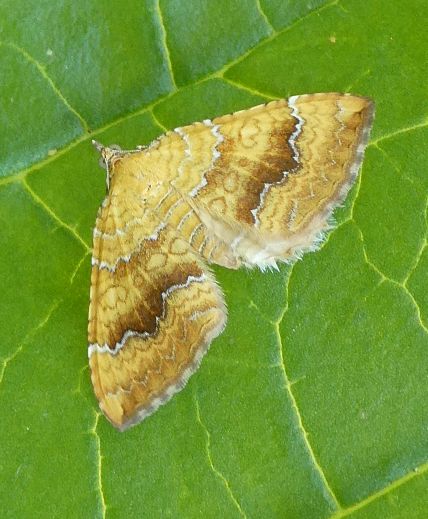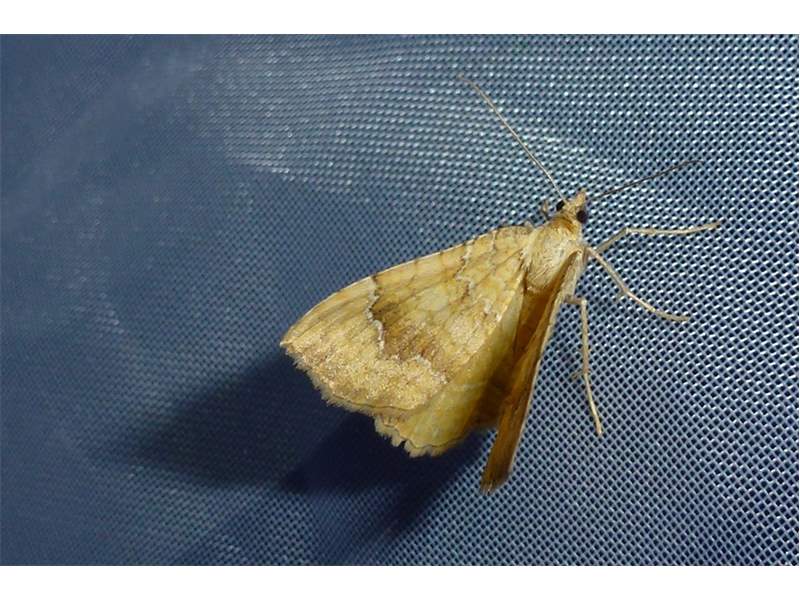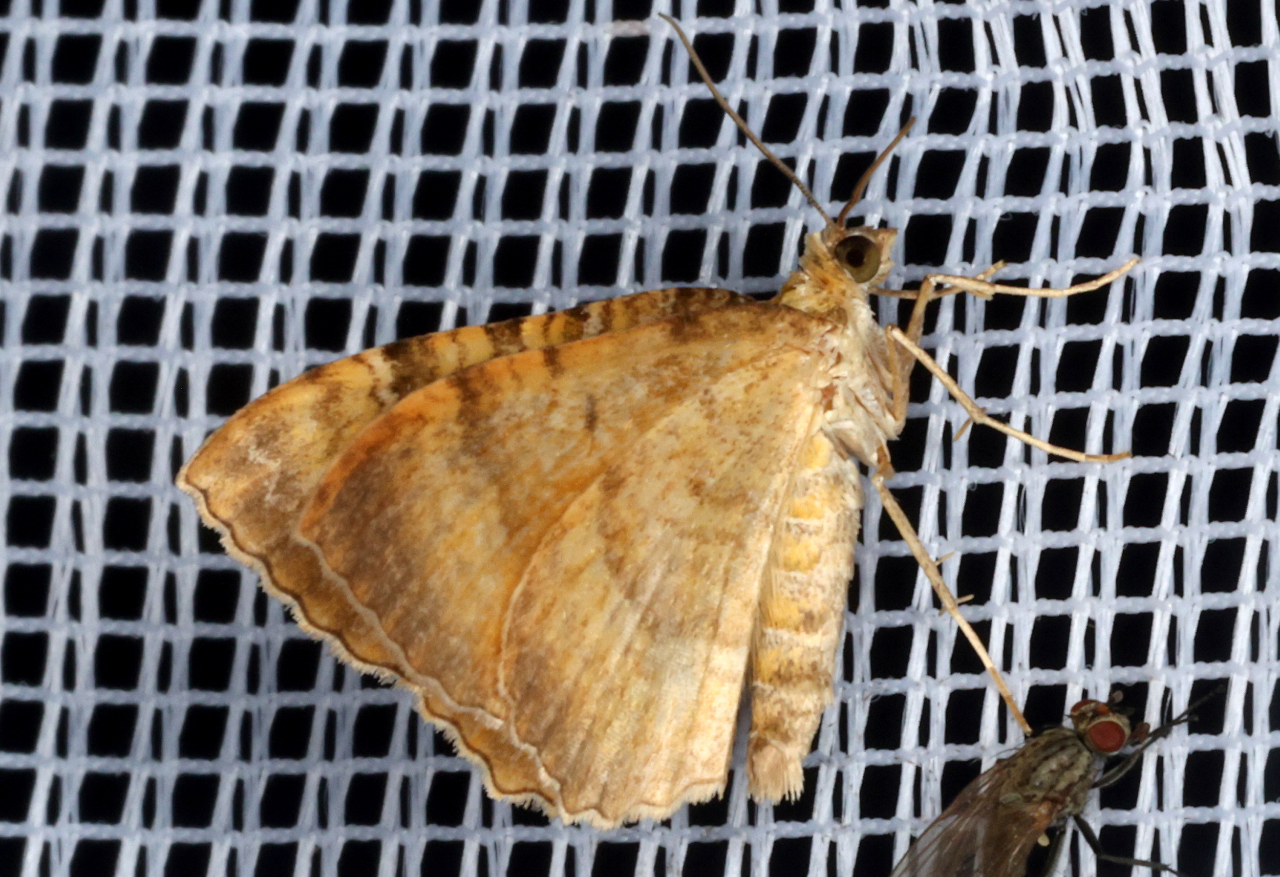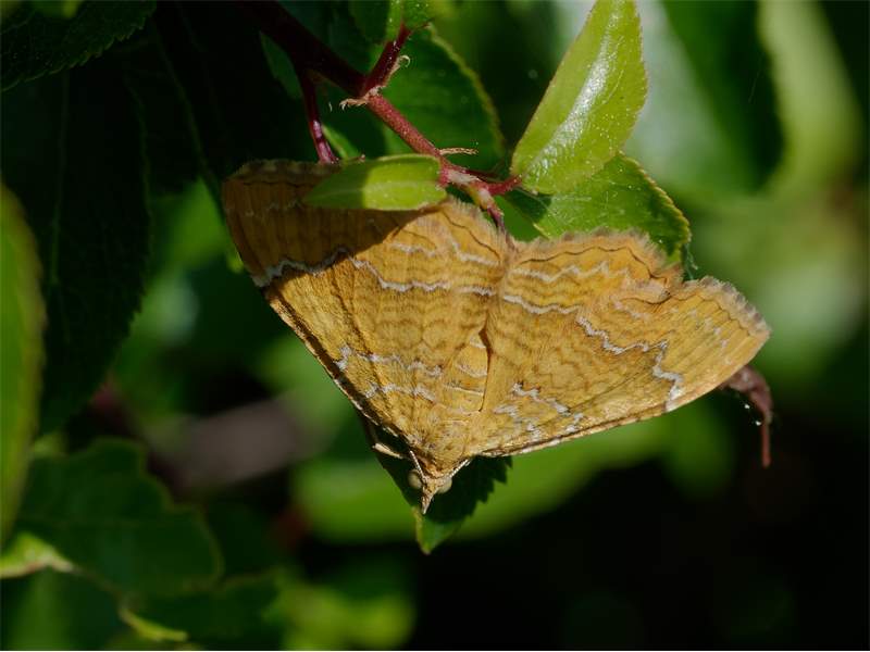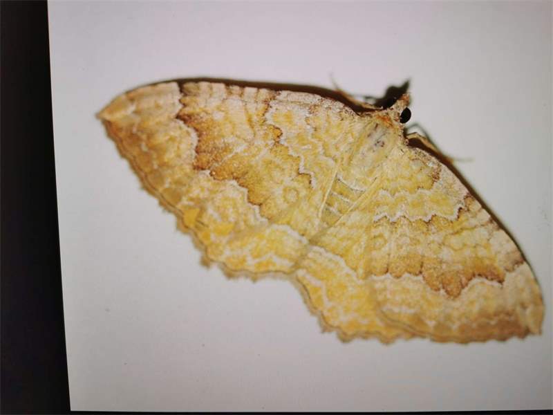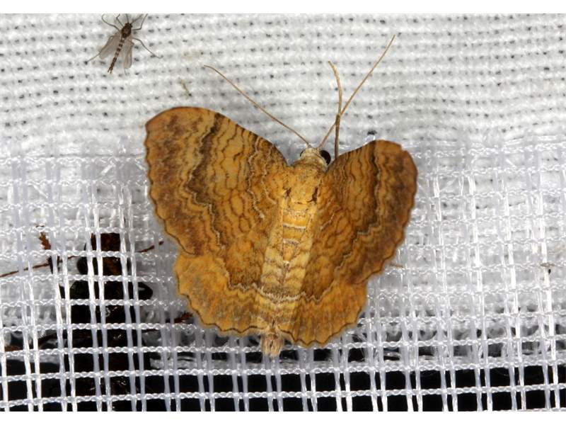 Ockergelbe Blattspanner, oder Löwenzahnspanner oder Brennnesselspanner (Camptogramma bilineata (Linnaeus, 1758)), am Licht, Radeberg, August 2013.