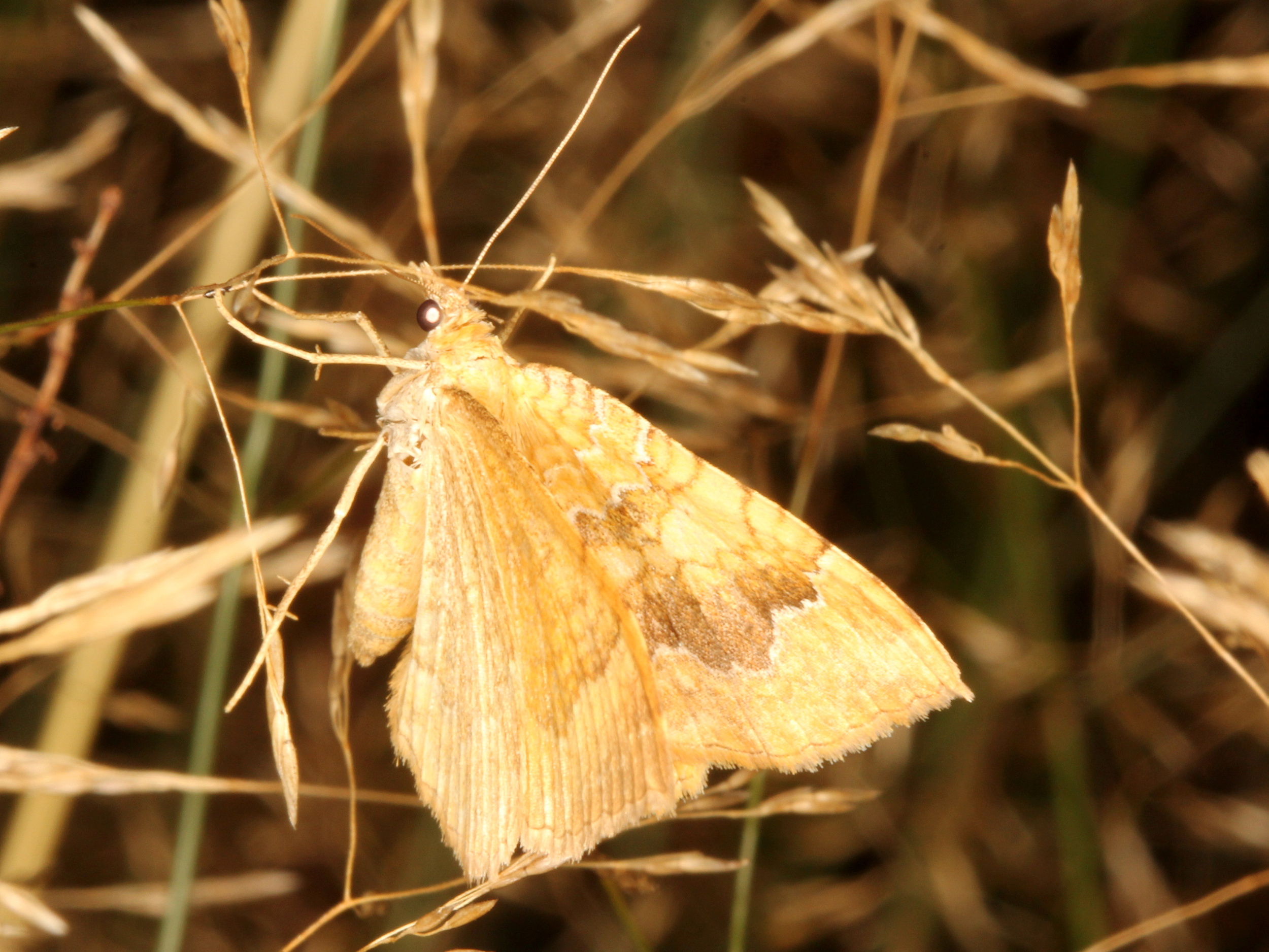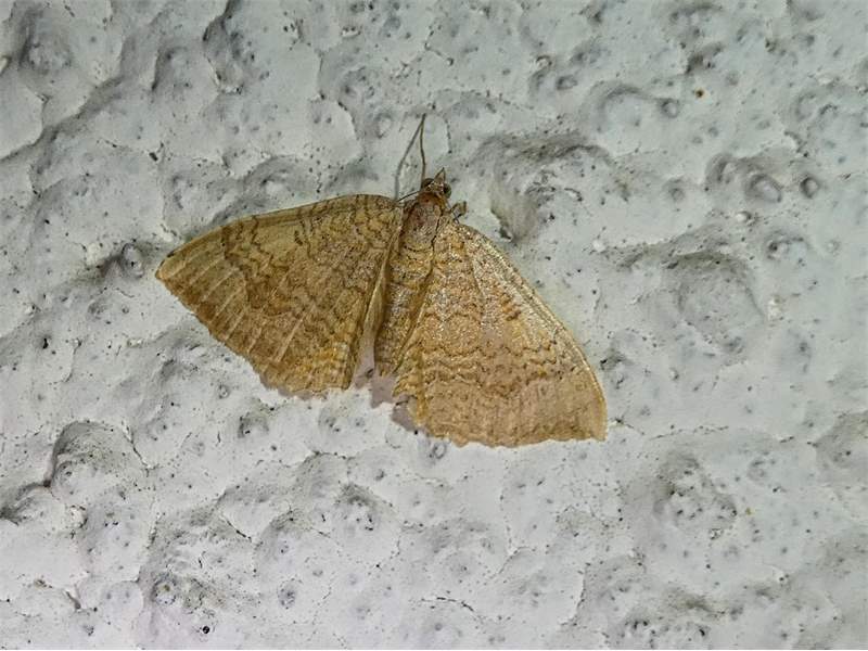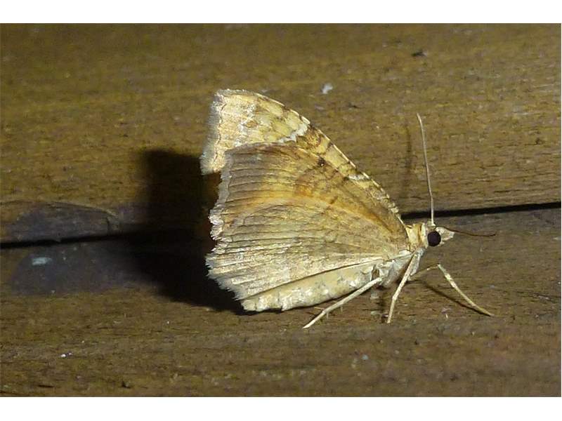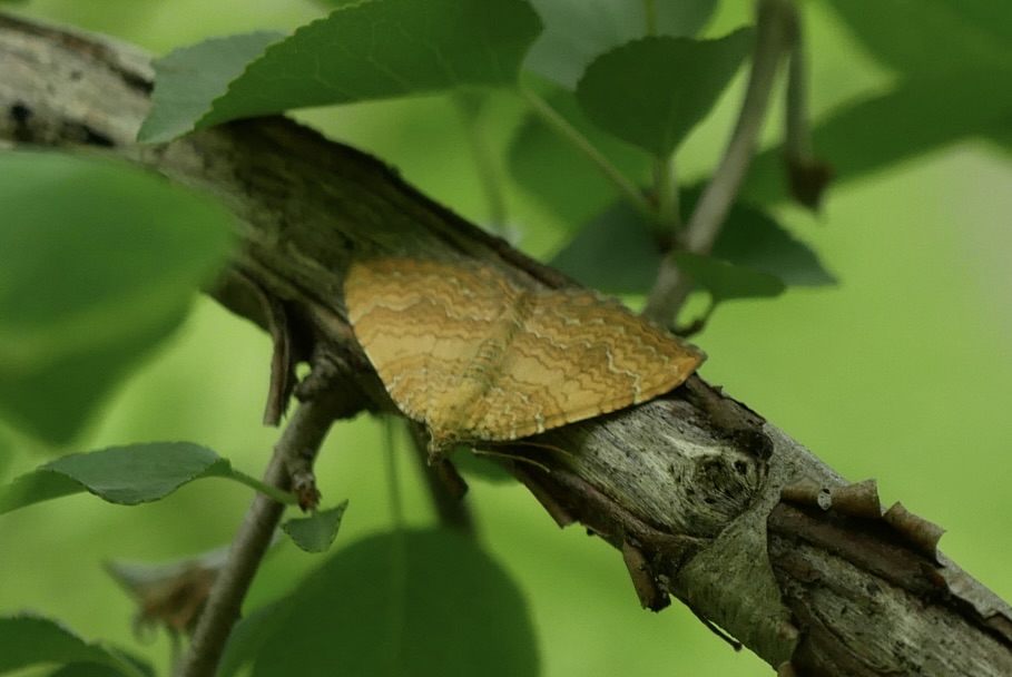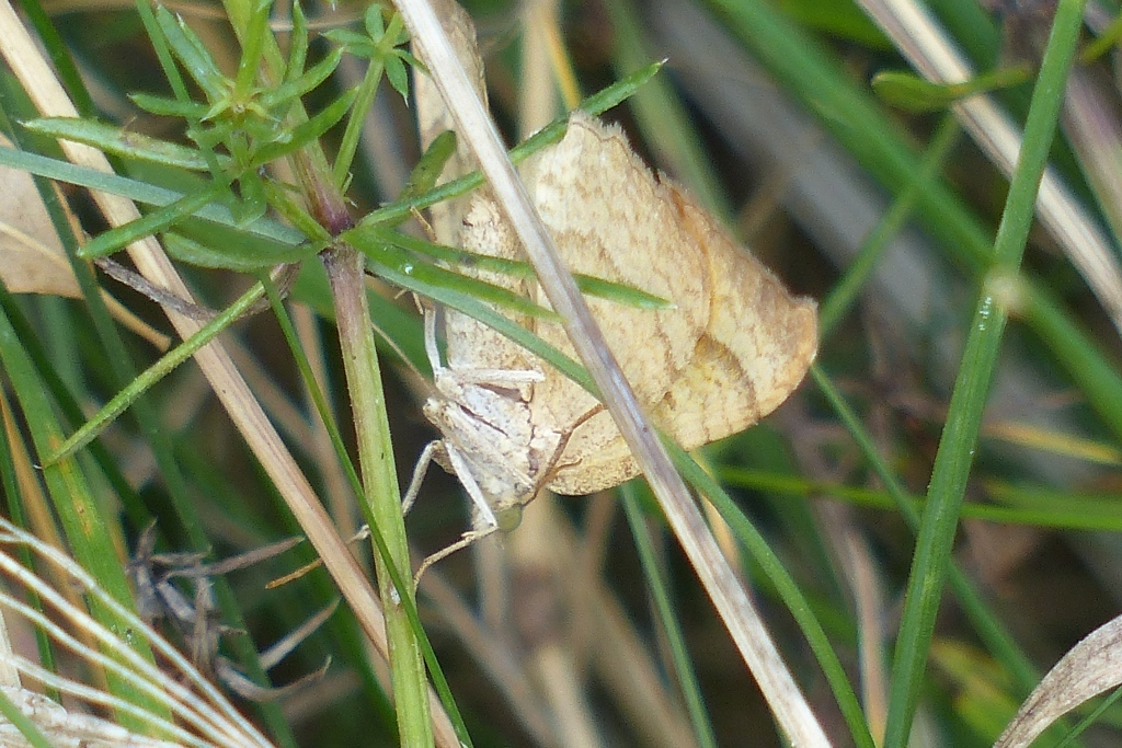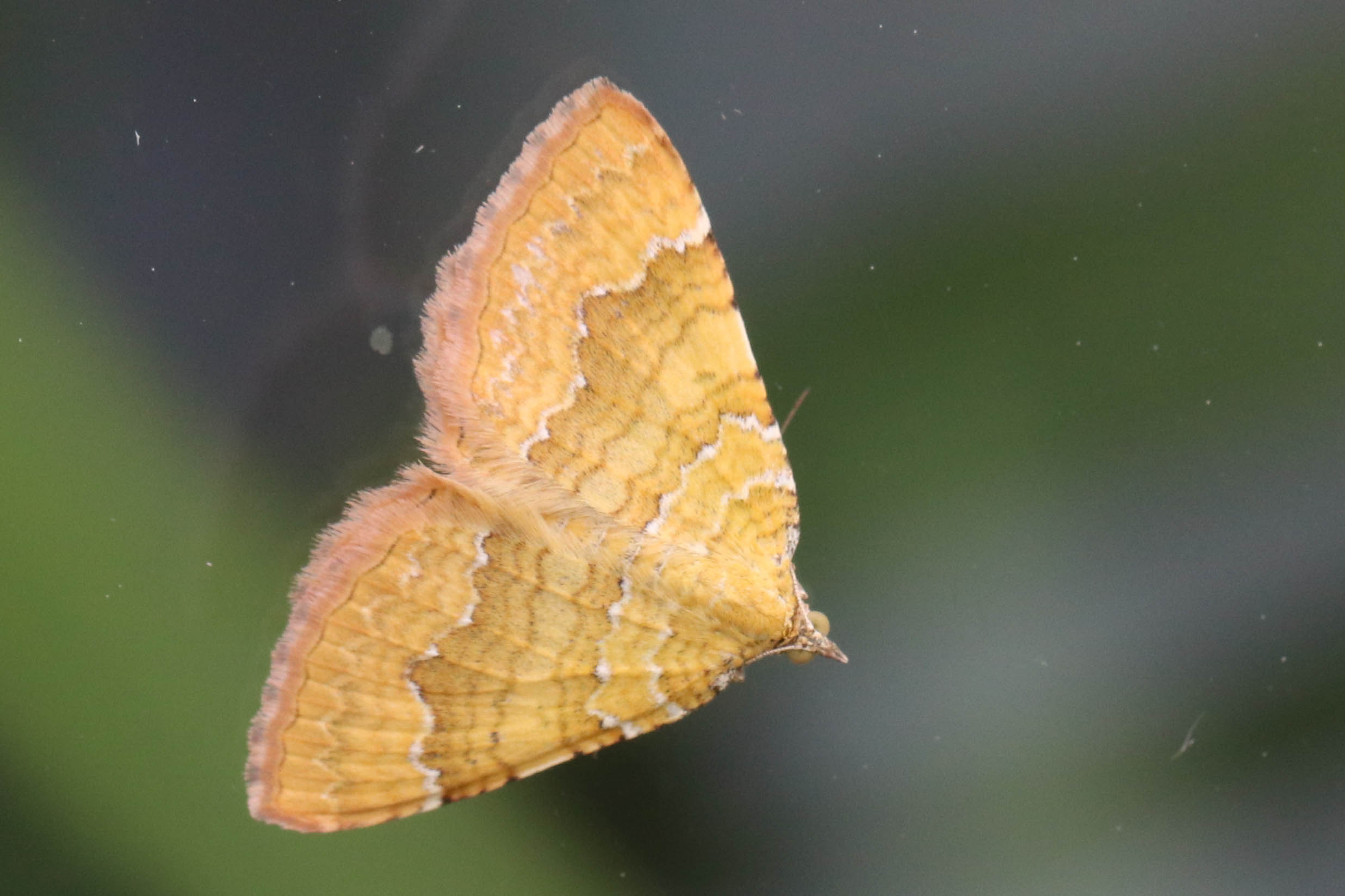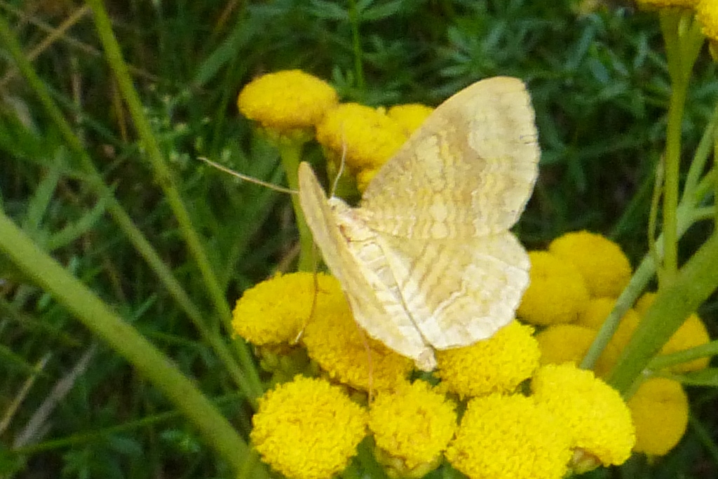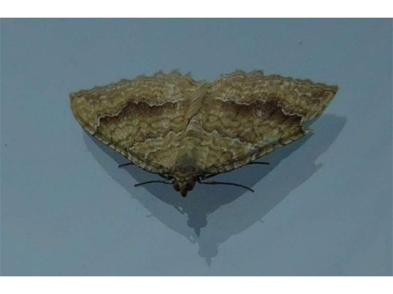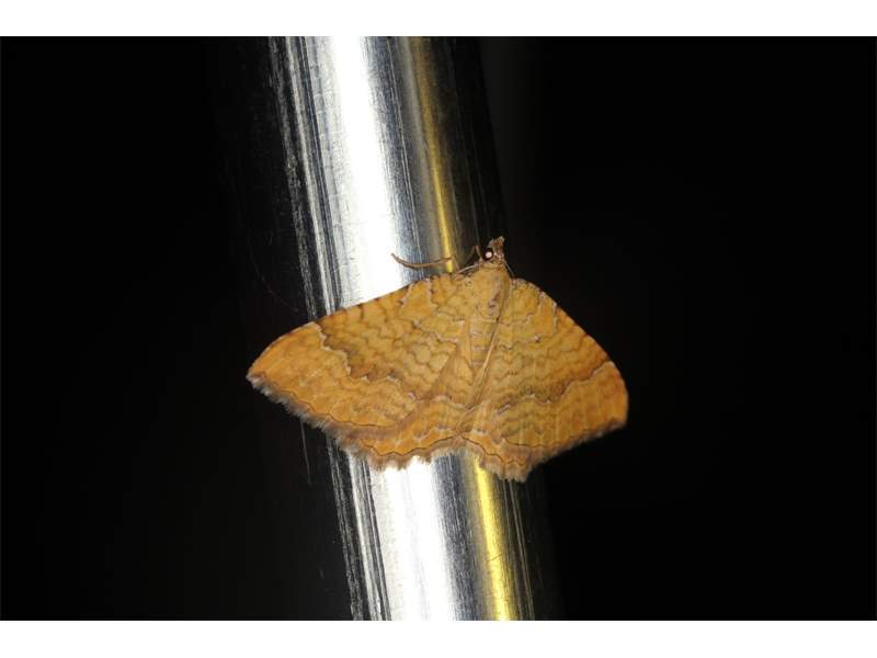 Ockergelbe Blattspanner, oder Löwenzahnspanner oder Brennnesselspanner (Camptogramma bilineata (Linnaeus, 1758)), am Licht, Radeberg, August 2013.