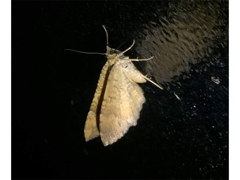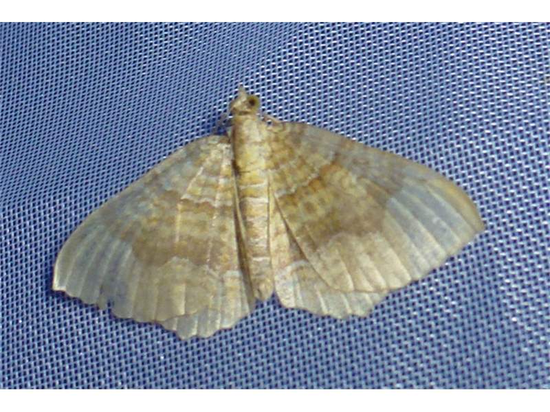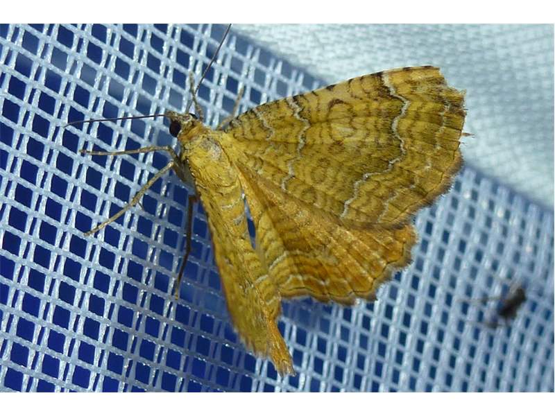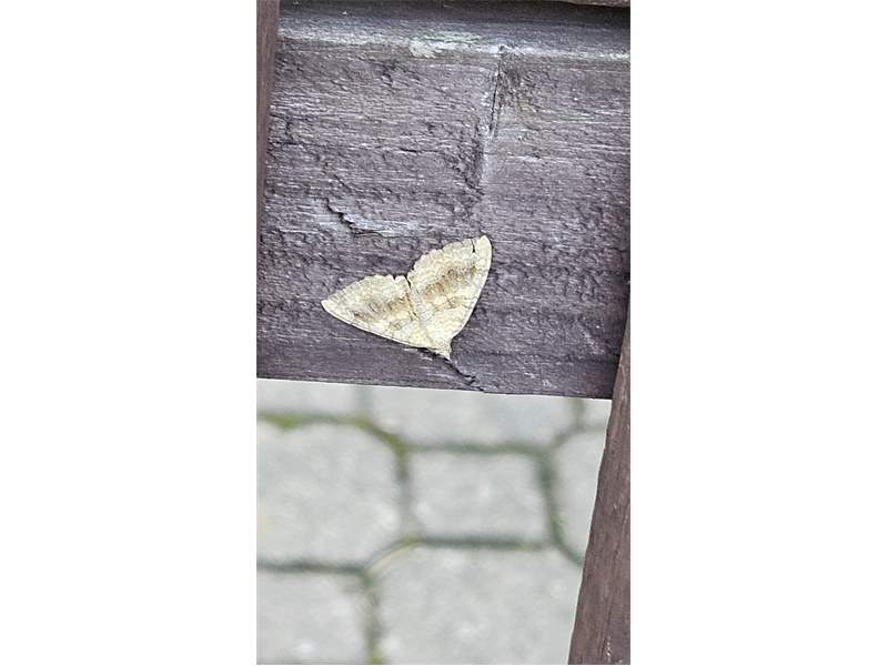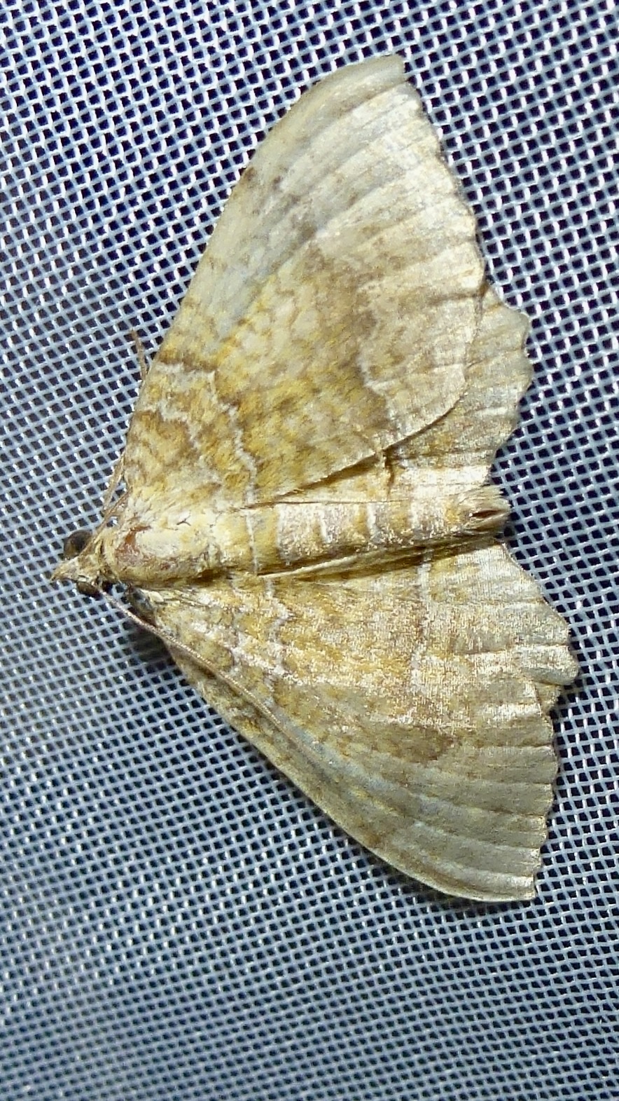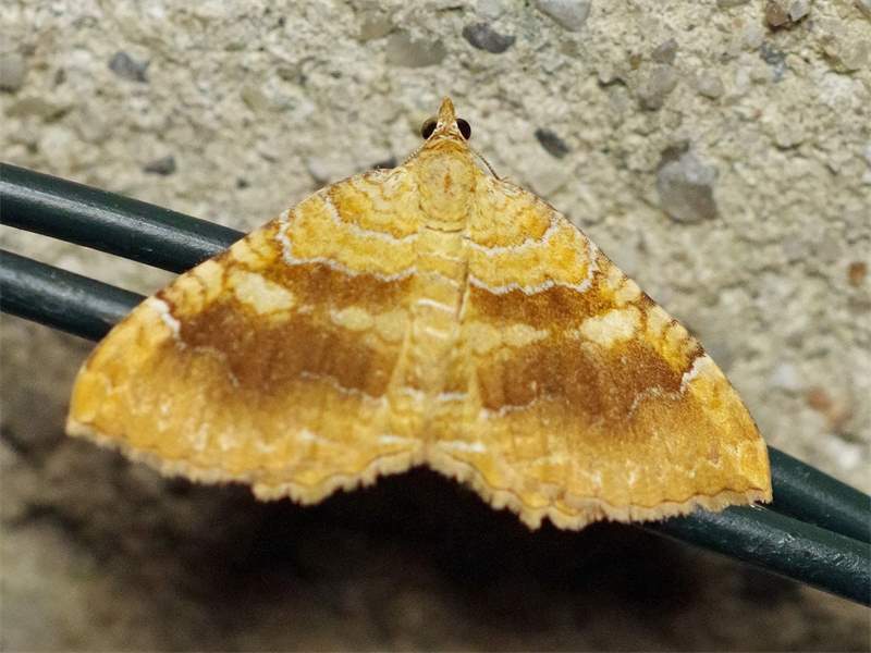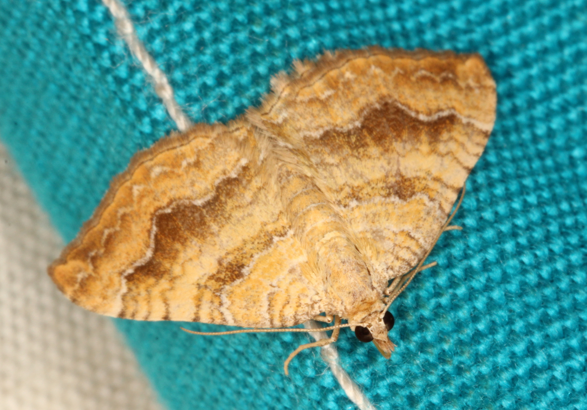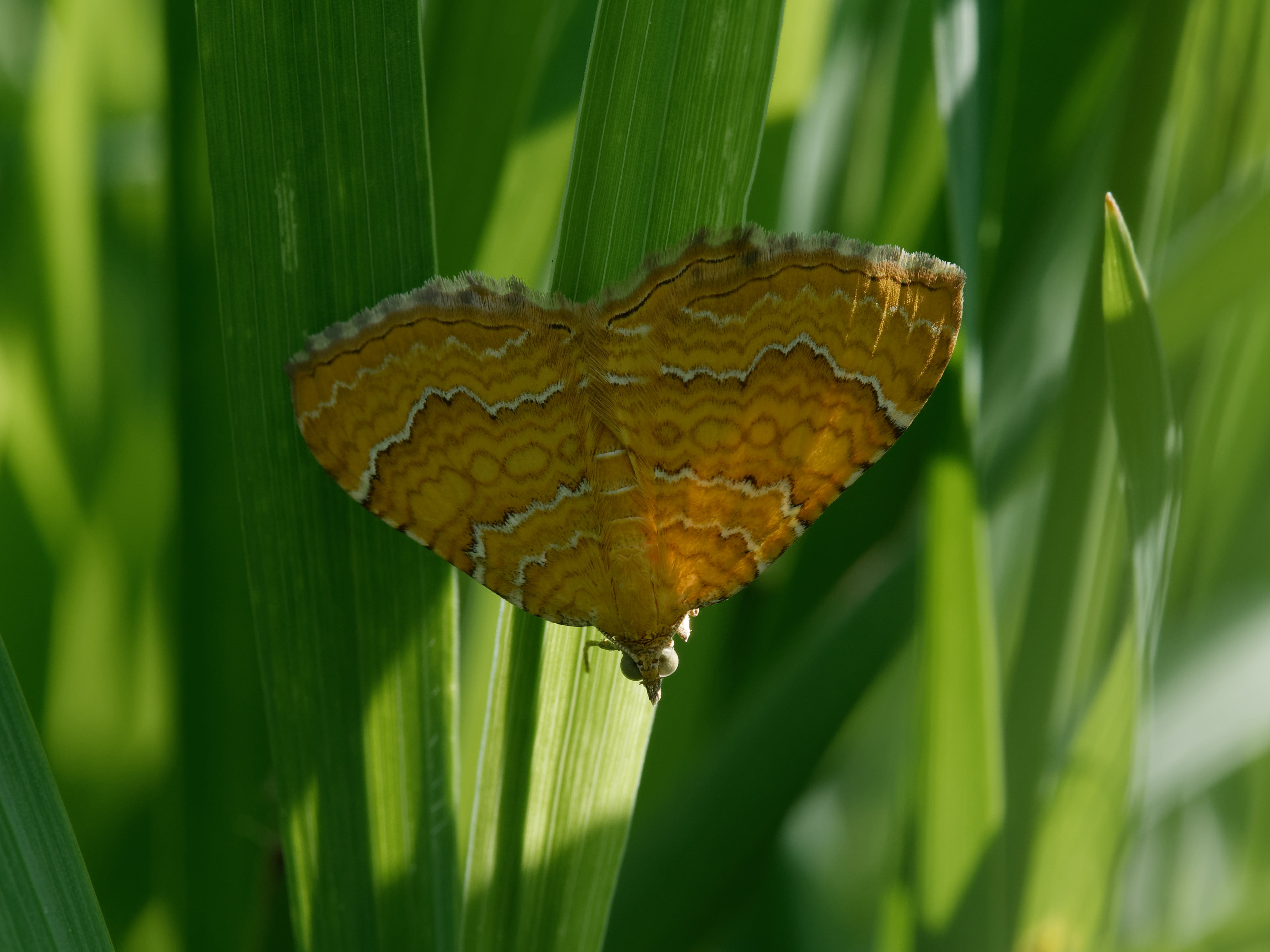 Ockergelbe Blattspanner, oder Löwenzahnspanner oder Brennnesselspanner (Camptogramma bilineata (Linnaeus, 1758)), am Licht, Radeberg, August 2013.