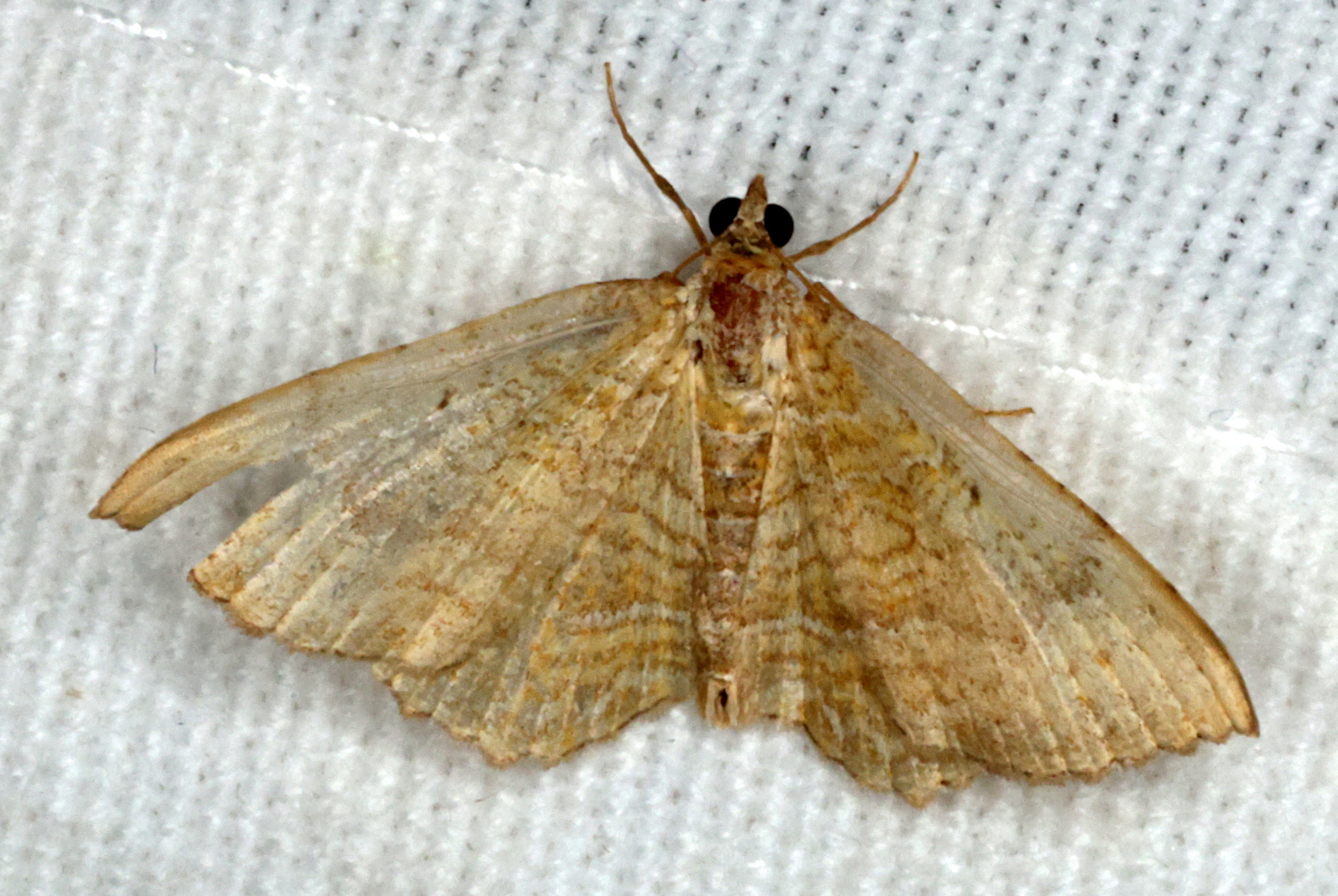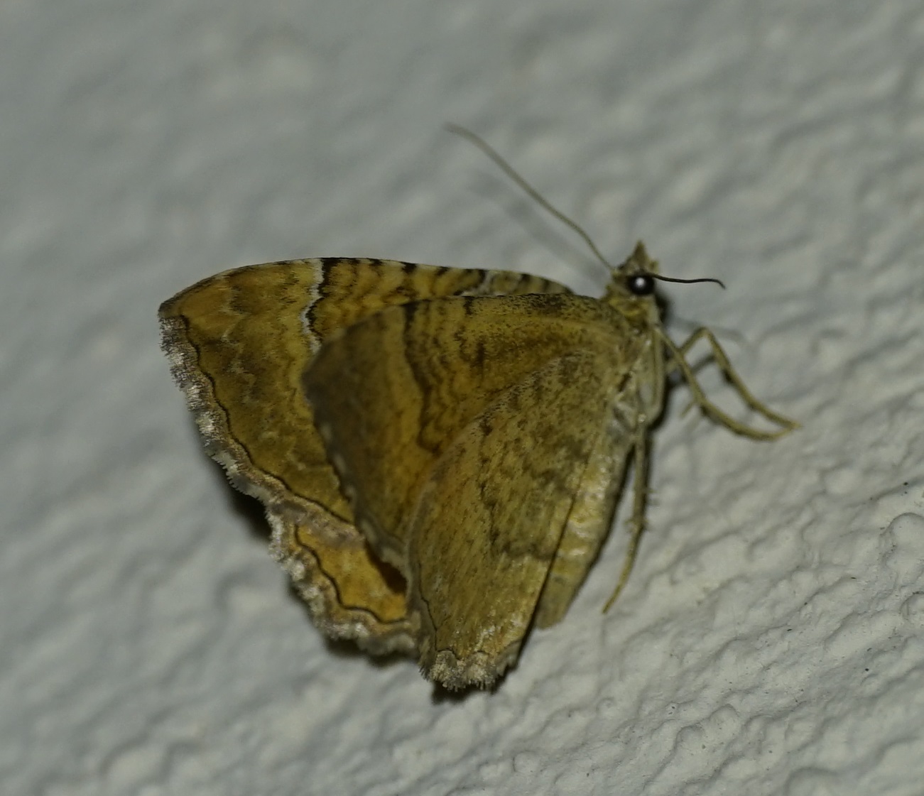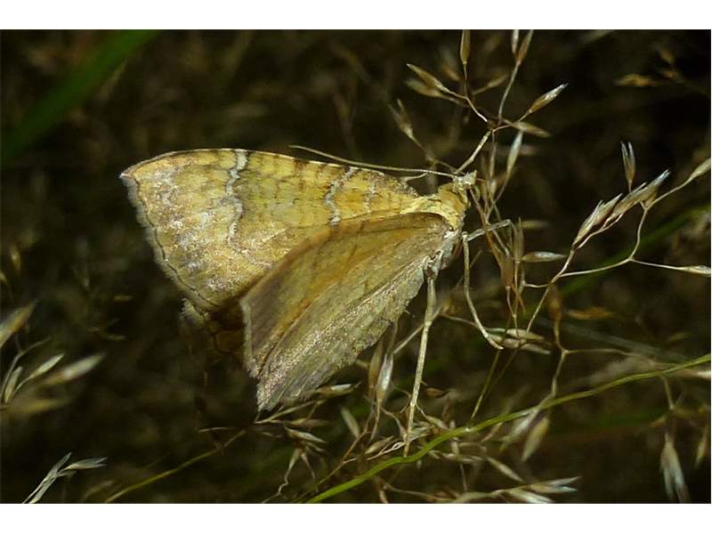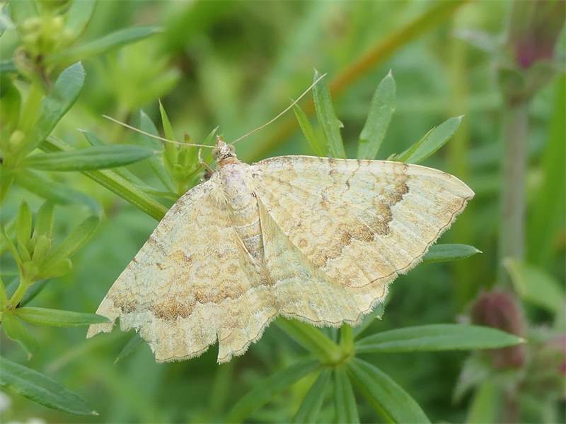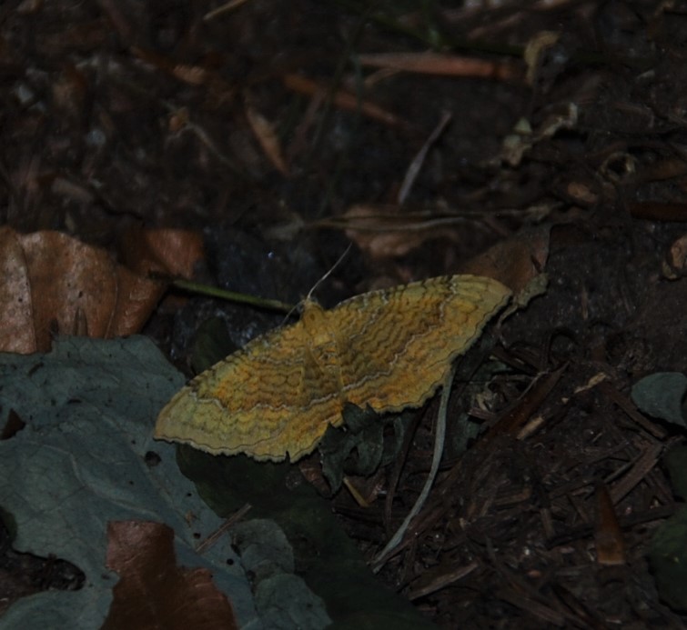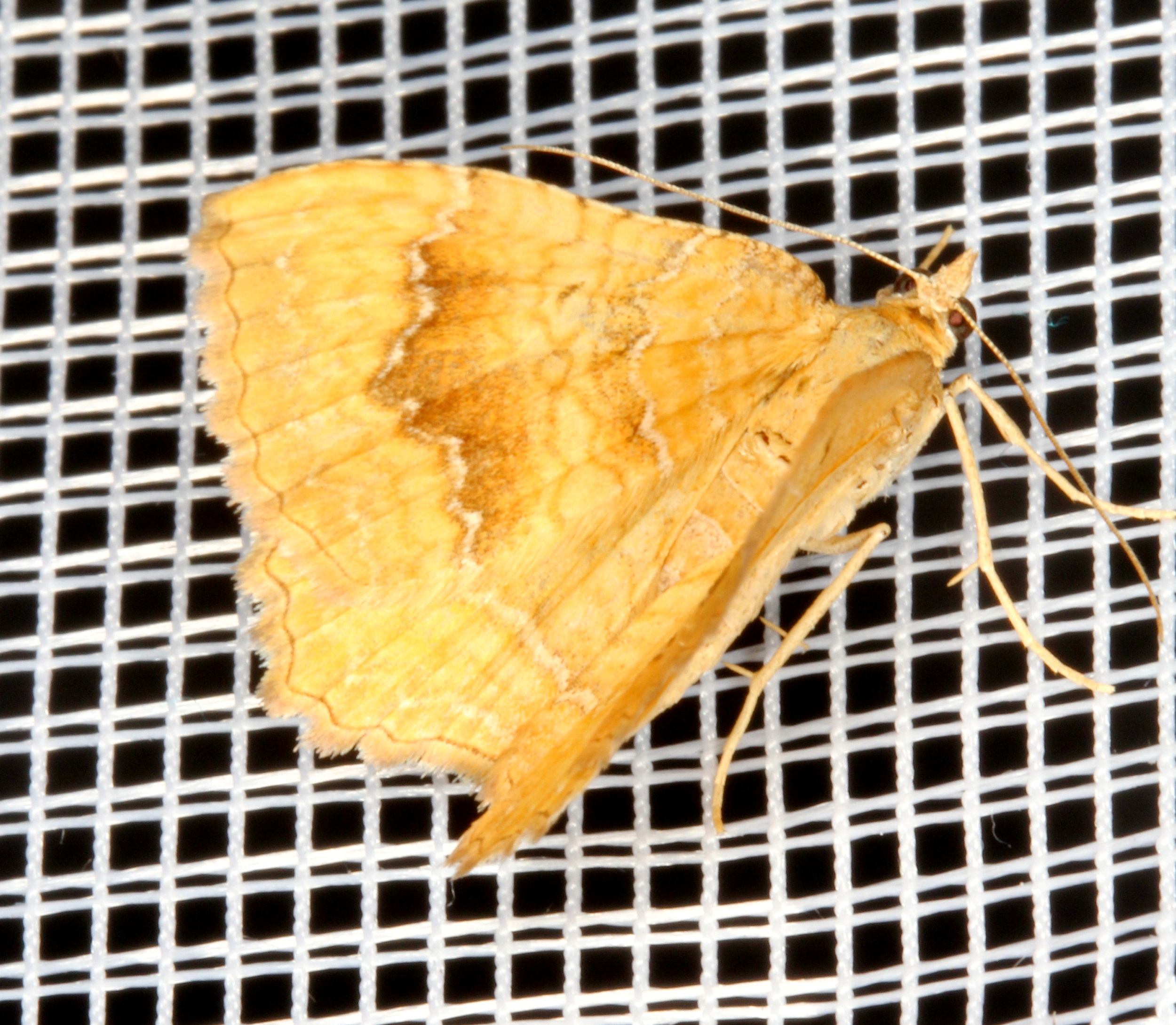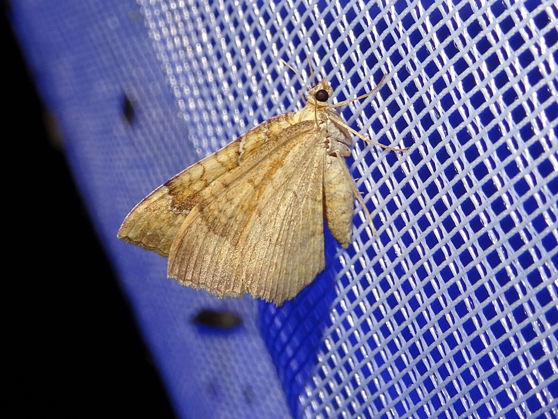 Ockergelbe Blattspanner, oder Löwenzahnspanner oder Brennnesselspanner (Camptogramma bilineata (Linnaeus, 1758)), am Licht, Radeberg, August 2013.