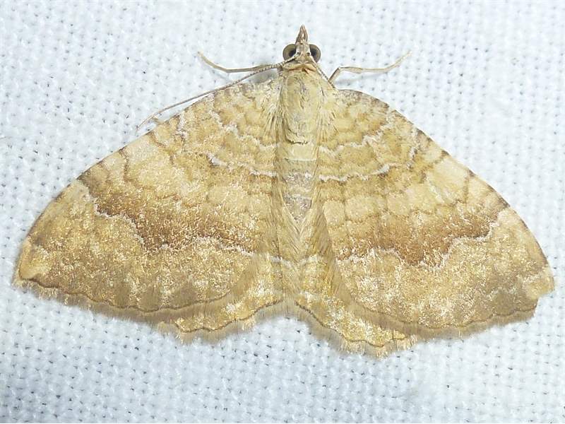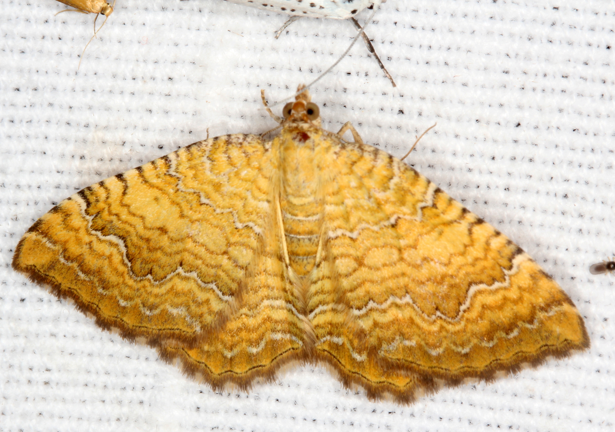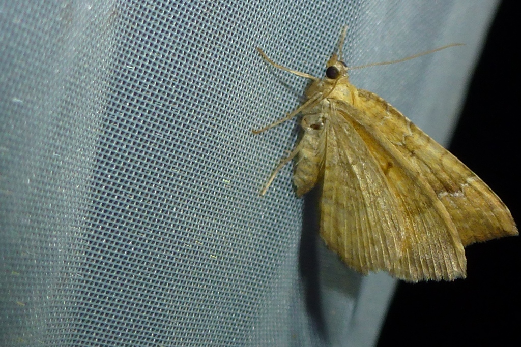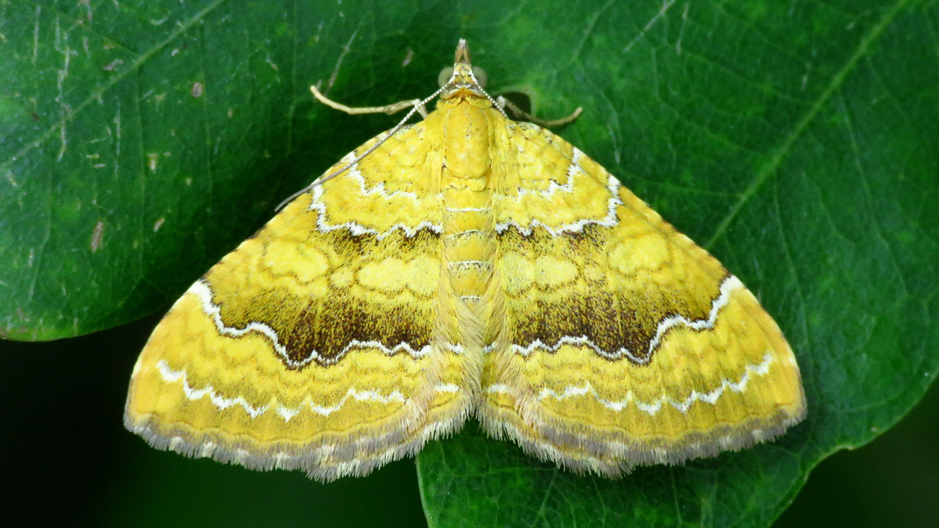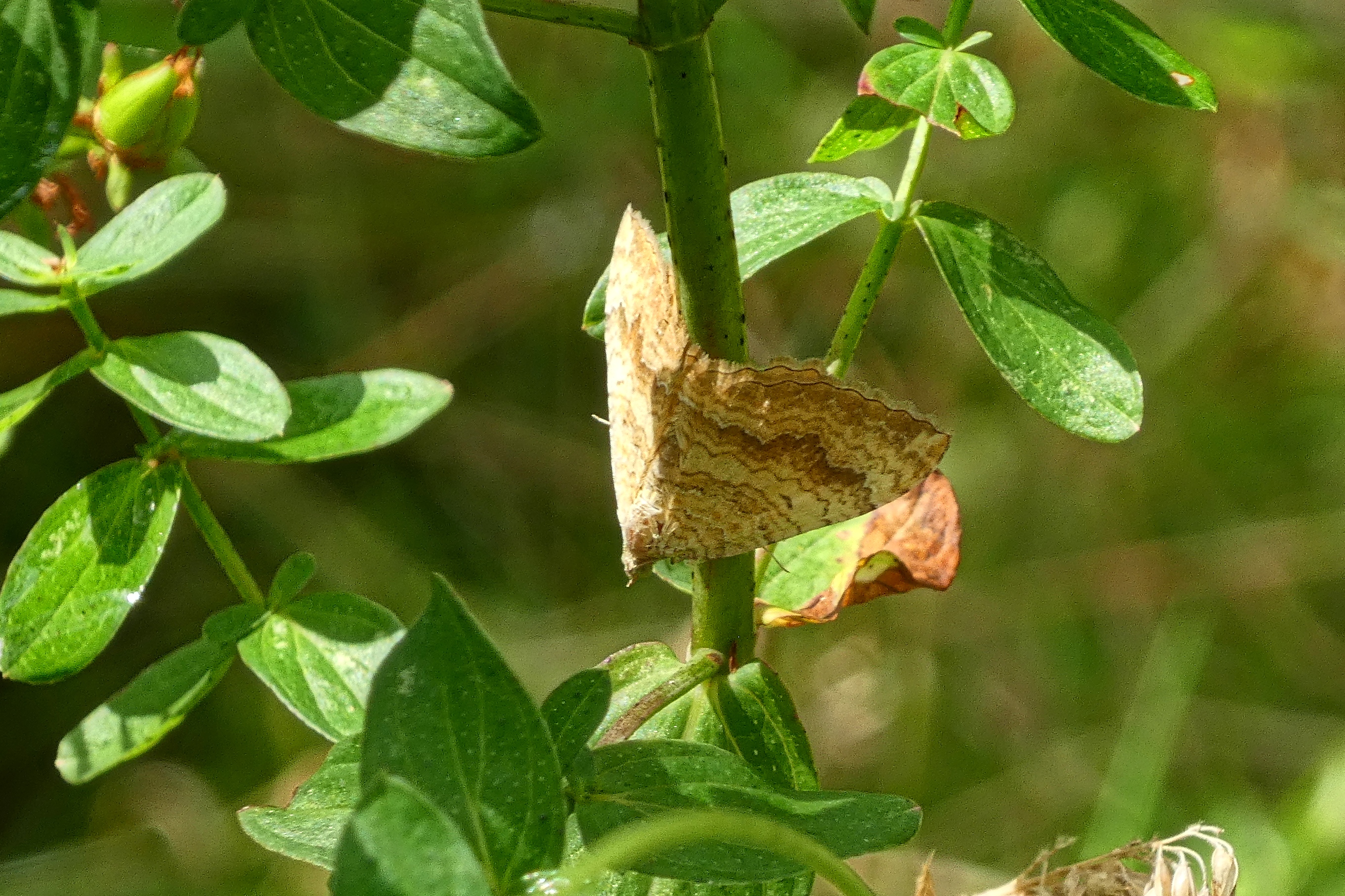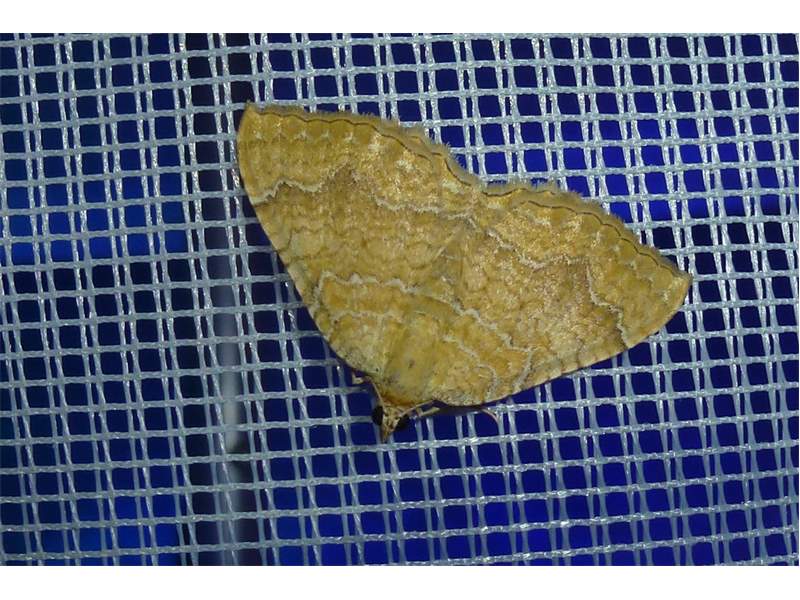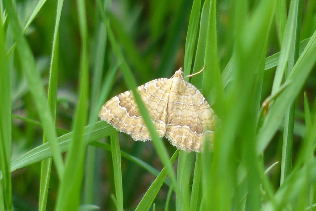 Ockergelbe Blattspanner, oder Löwenzahnspanner oder Brennnesselspanner (Camptogramma bilineata (Linnaeus, 1758)), am Licht, Radeberg, August 2013.