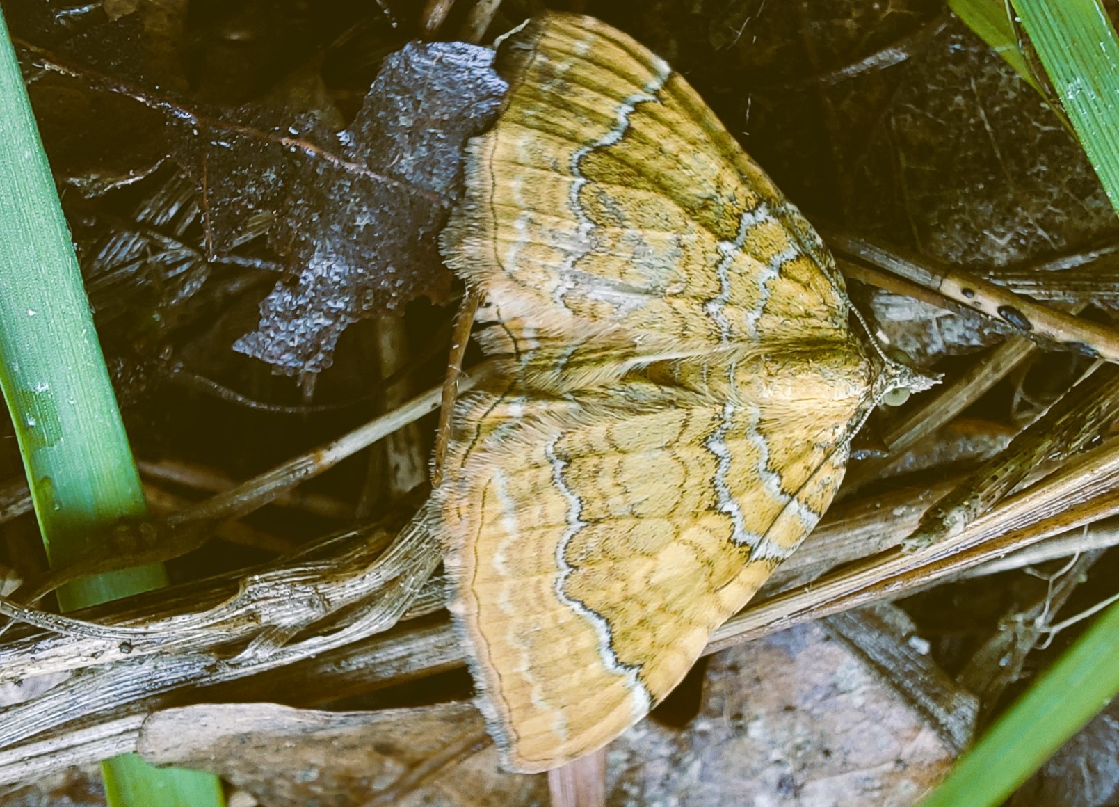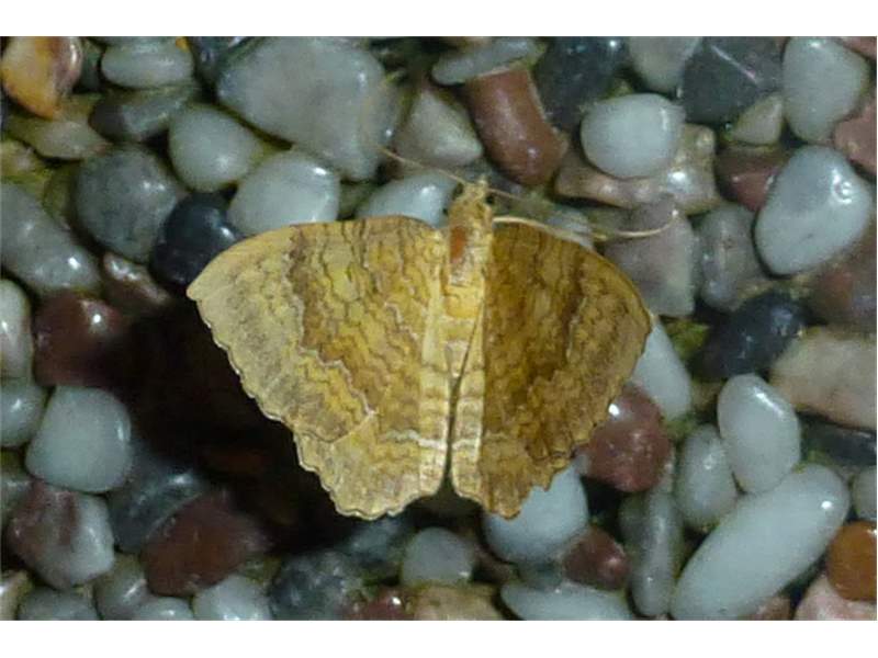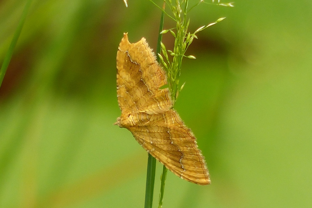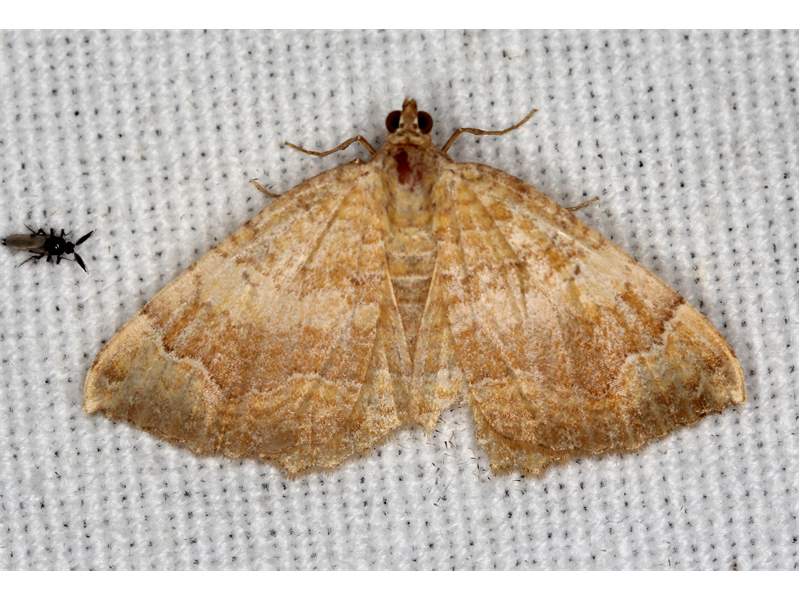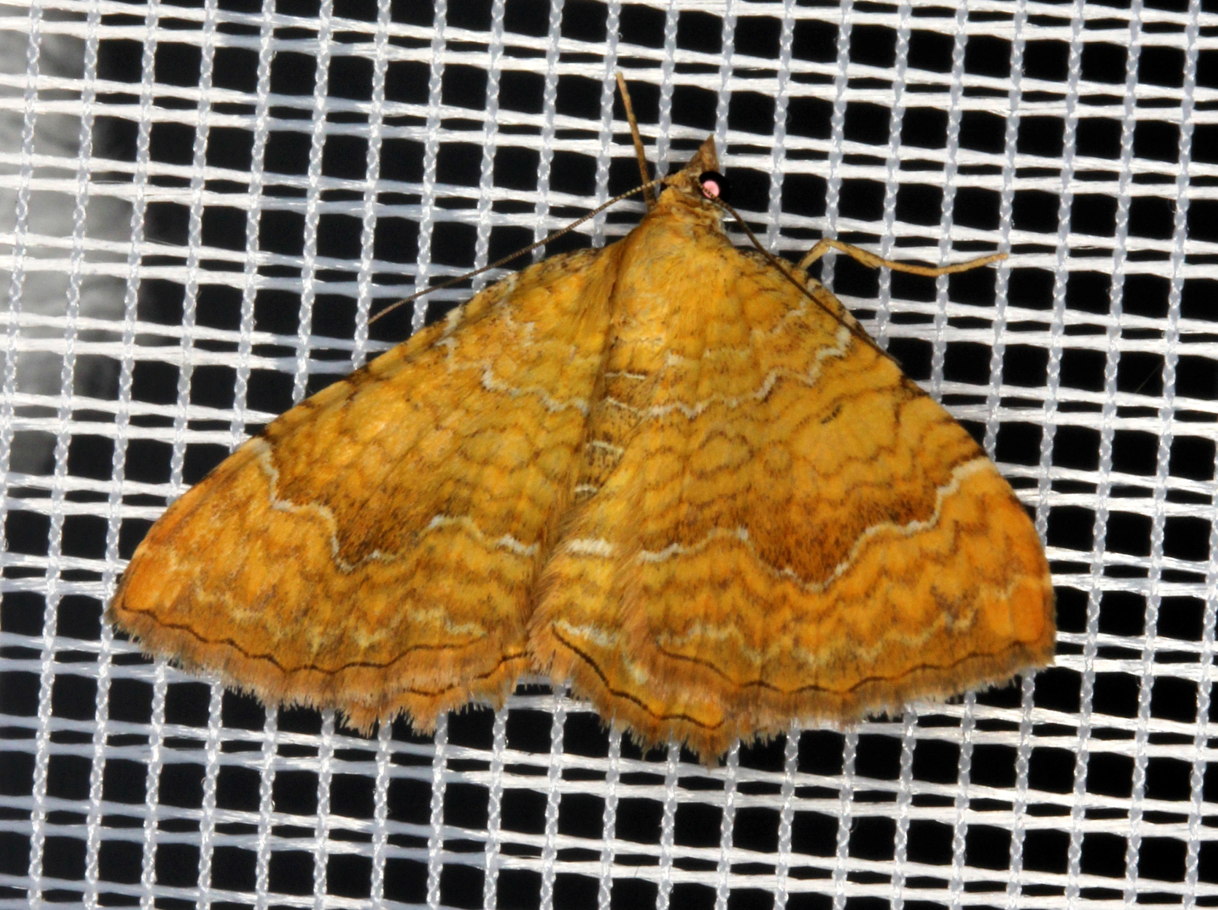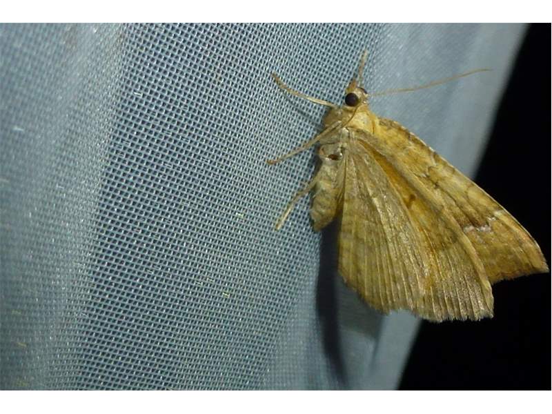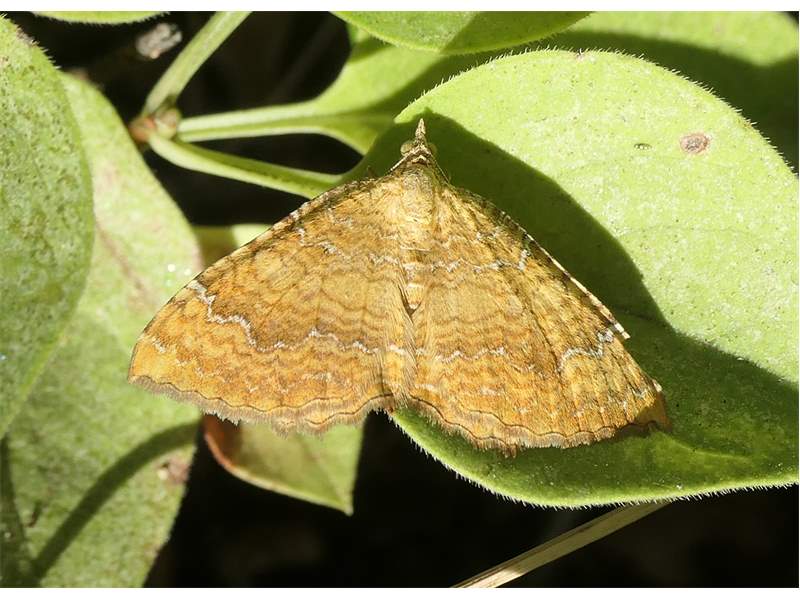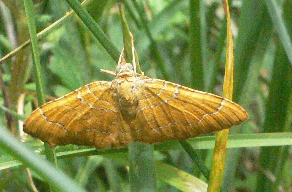 Ockergelbe Blattspanner, oder Löwenzahnspanner oder Brennnesselspanner (Camptogramma bilineata (Linnaeus, 1758)), am Licht, Radeberg, August 2013.