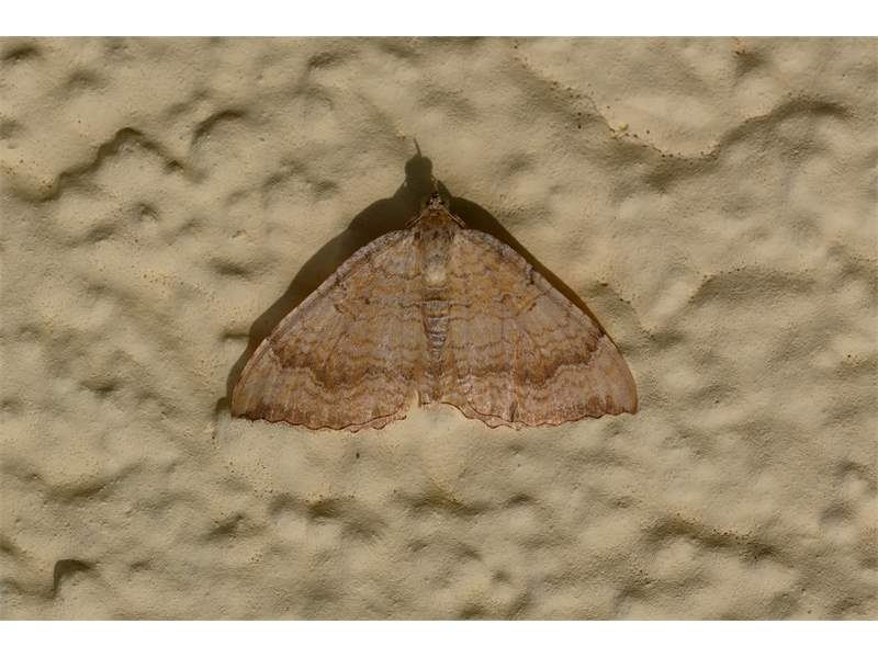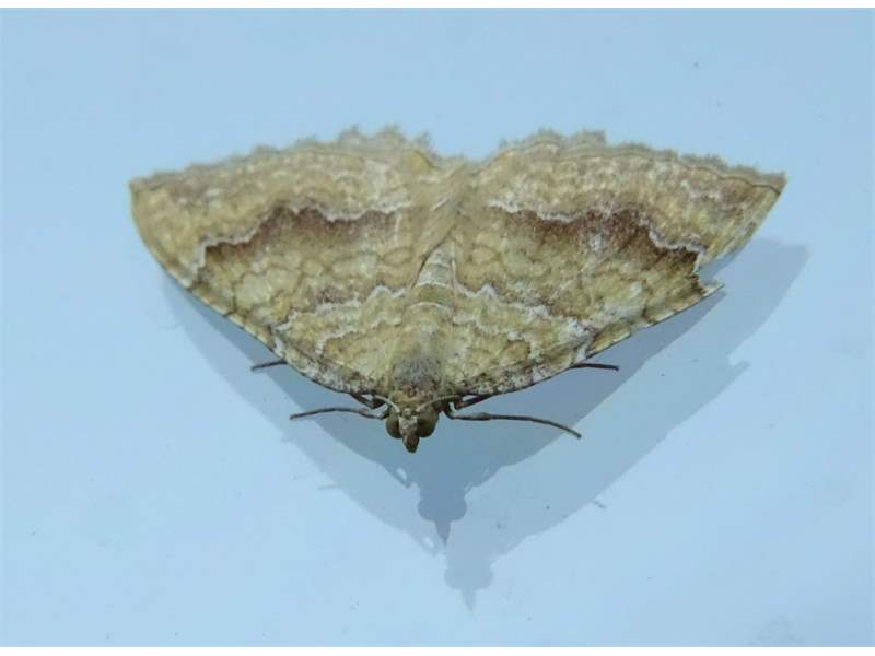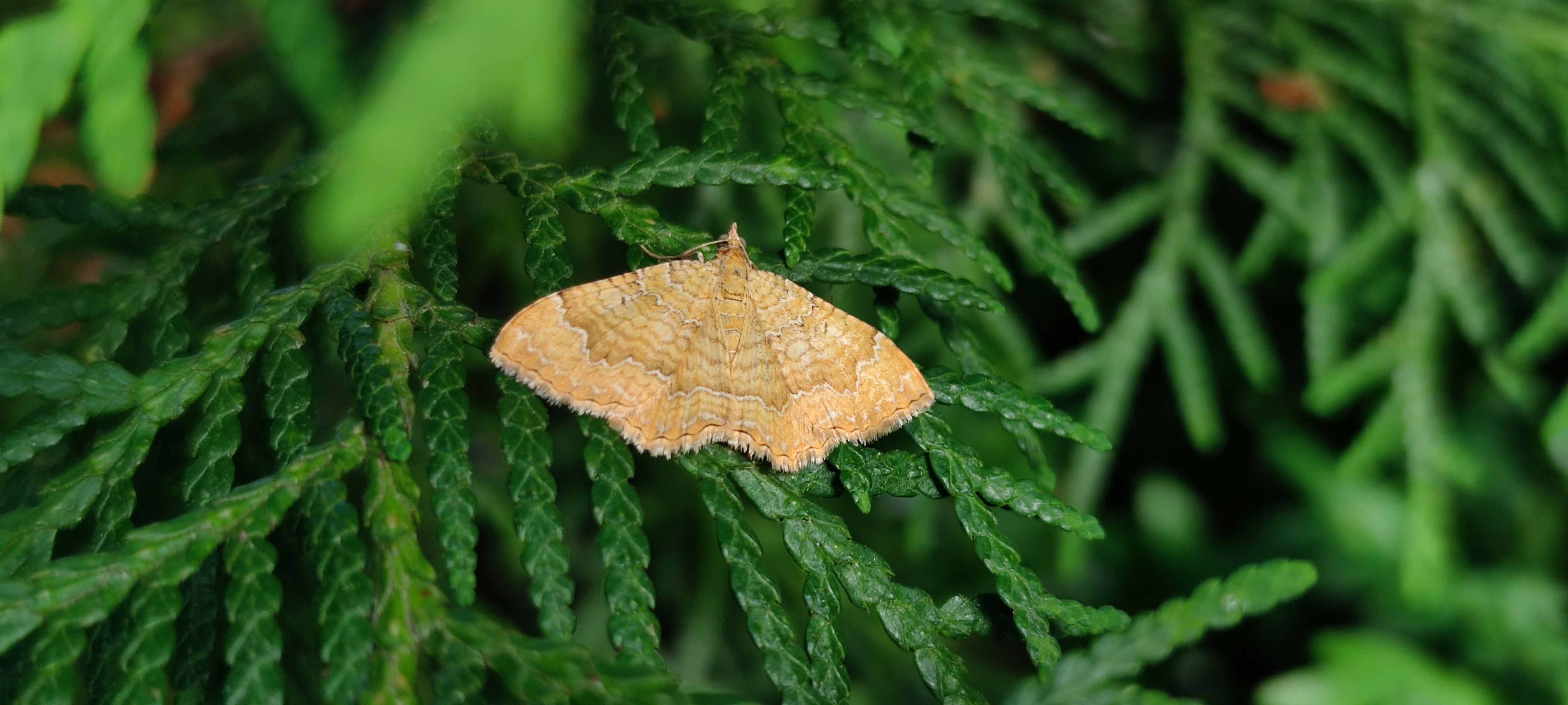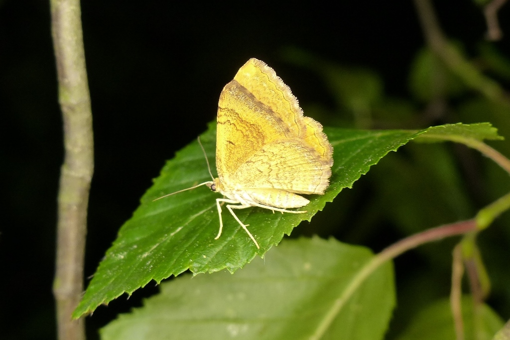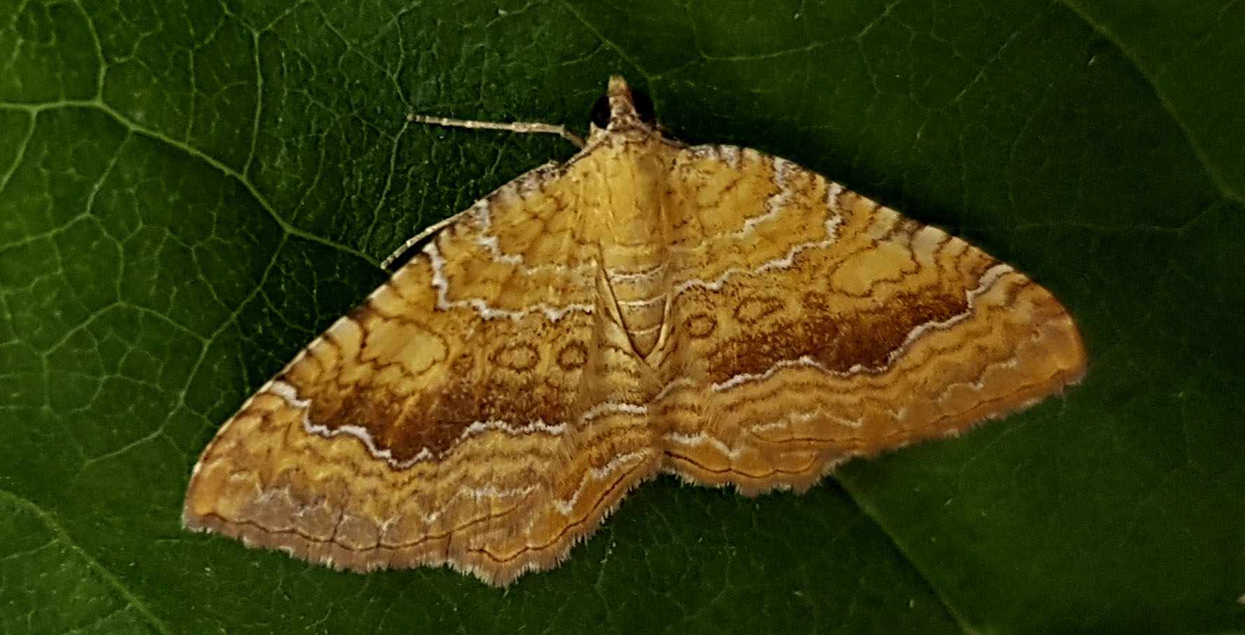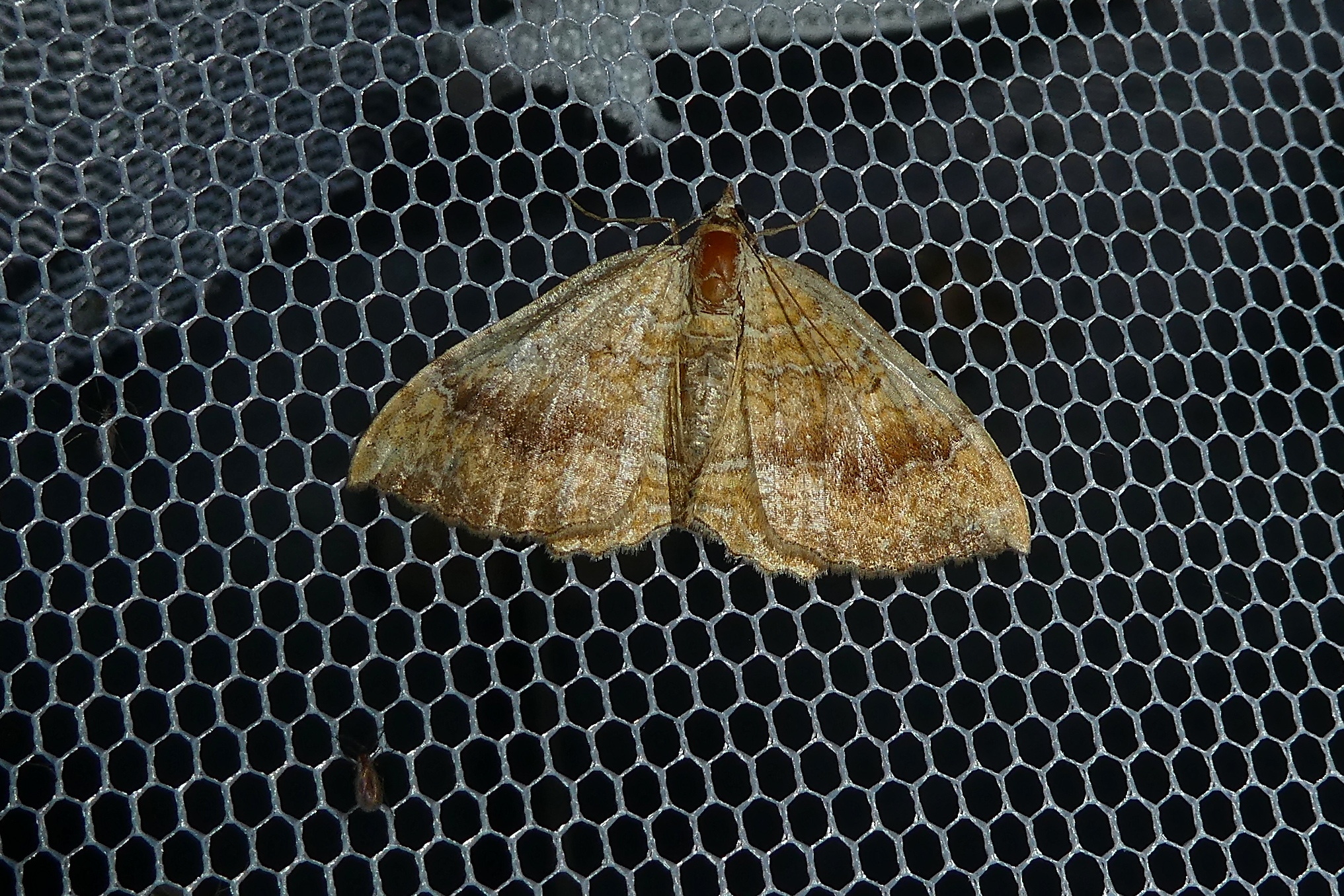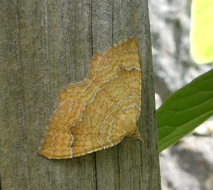 Ockergelbe Blattspanner, oder Löwenzahnspanner oder Brennnesselspanner (Camptogramma bilineata (Linnaeus, 1758)), am Licht, Radeberg, August 2013.