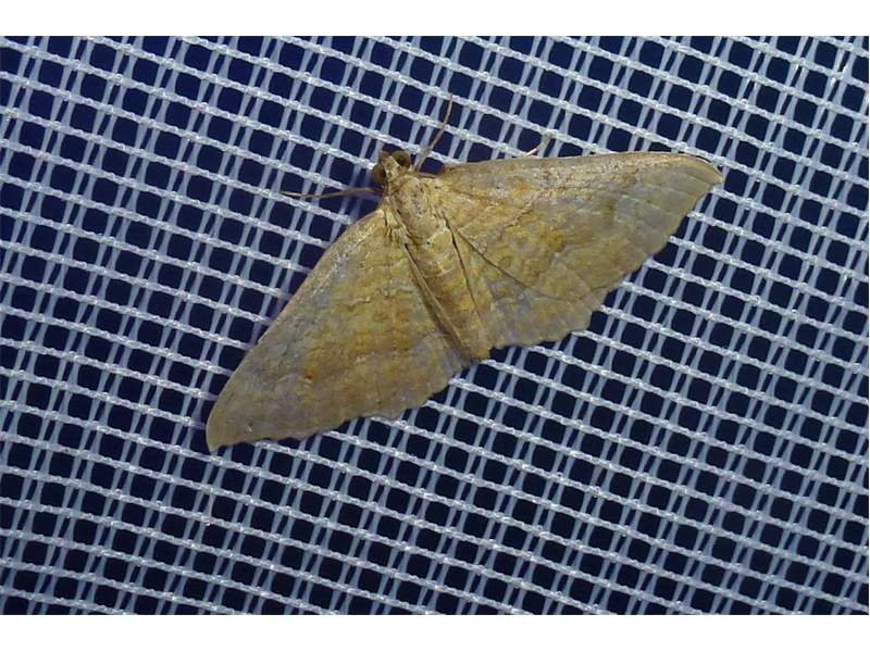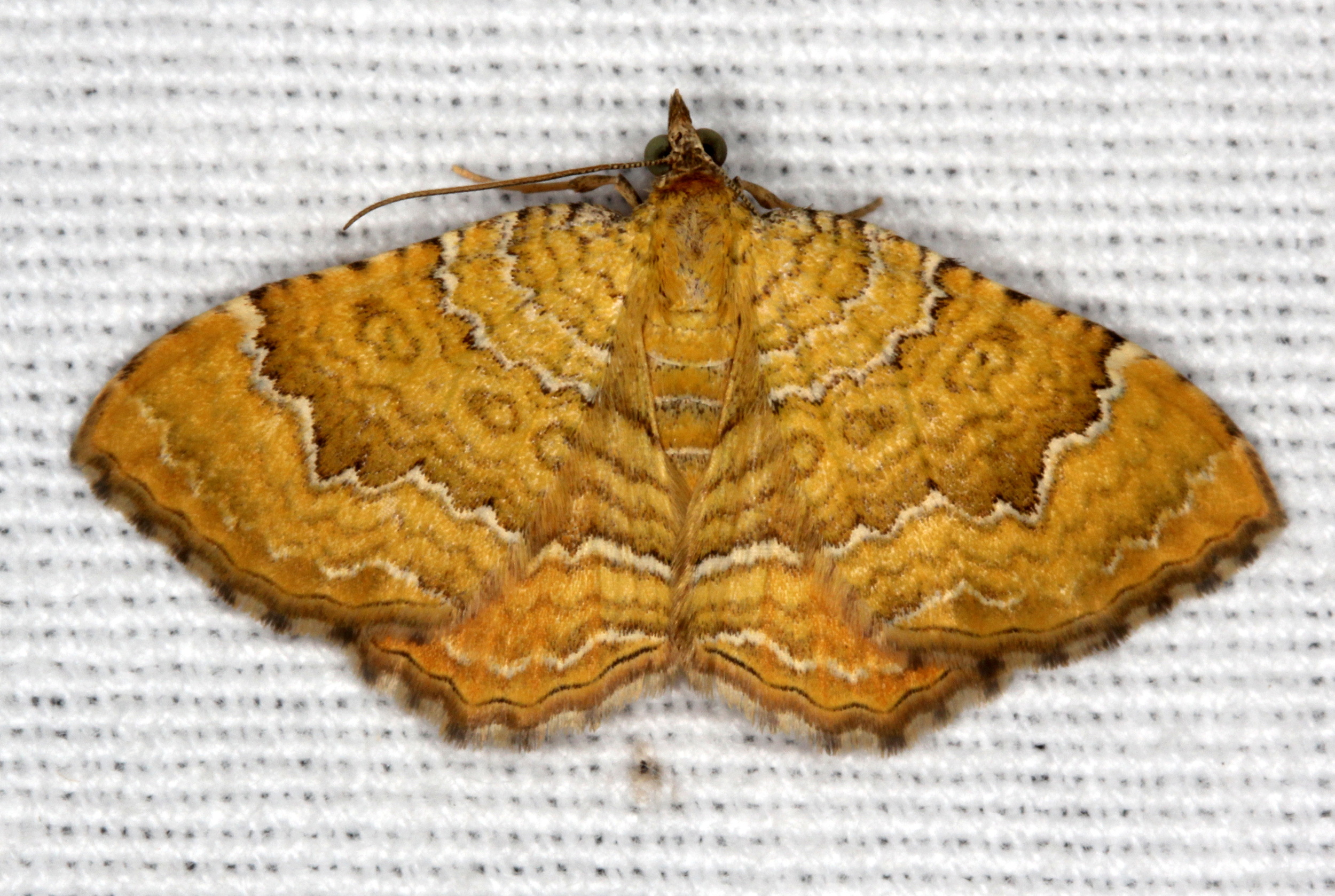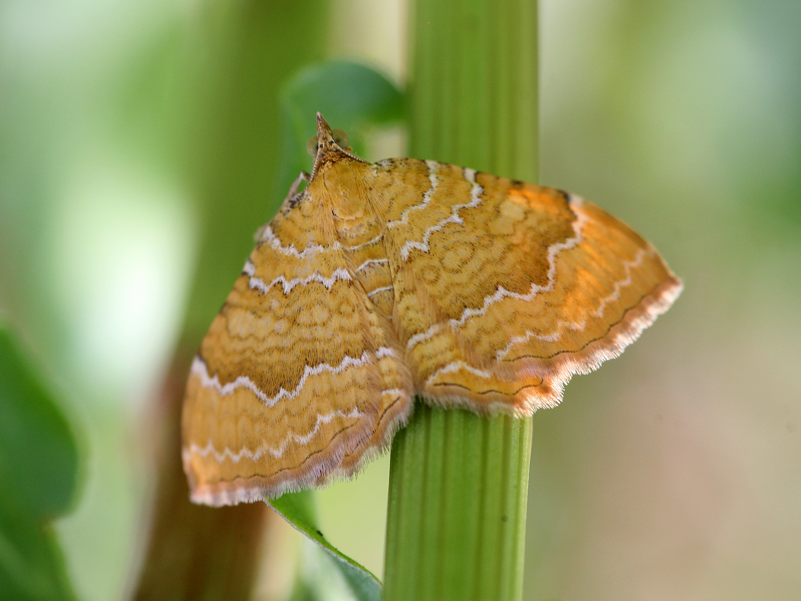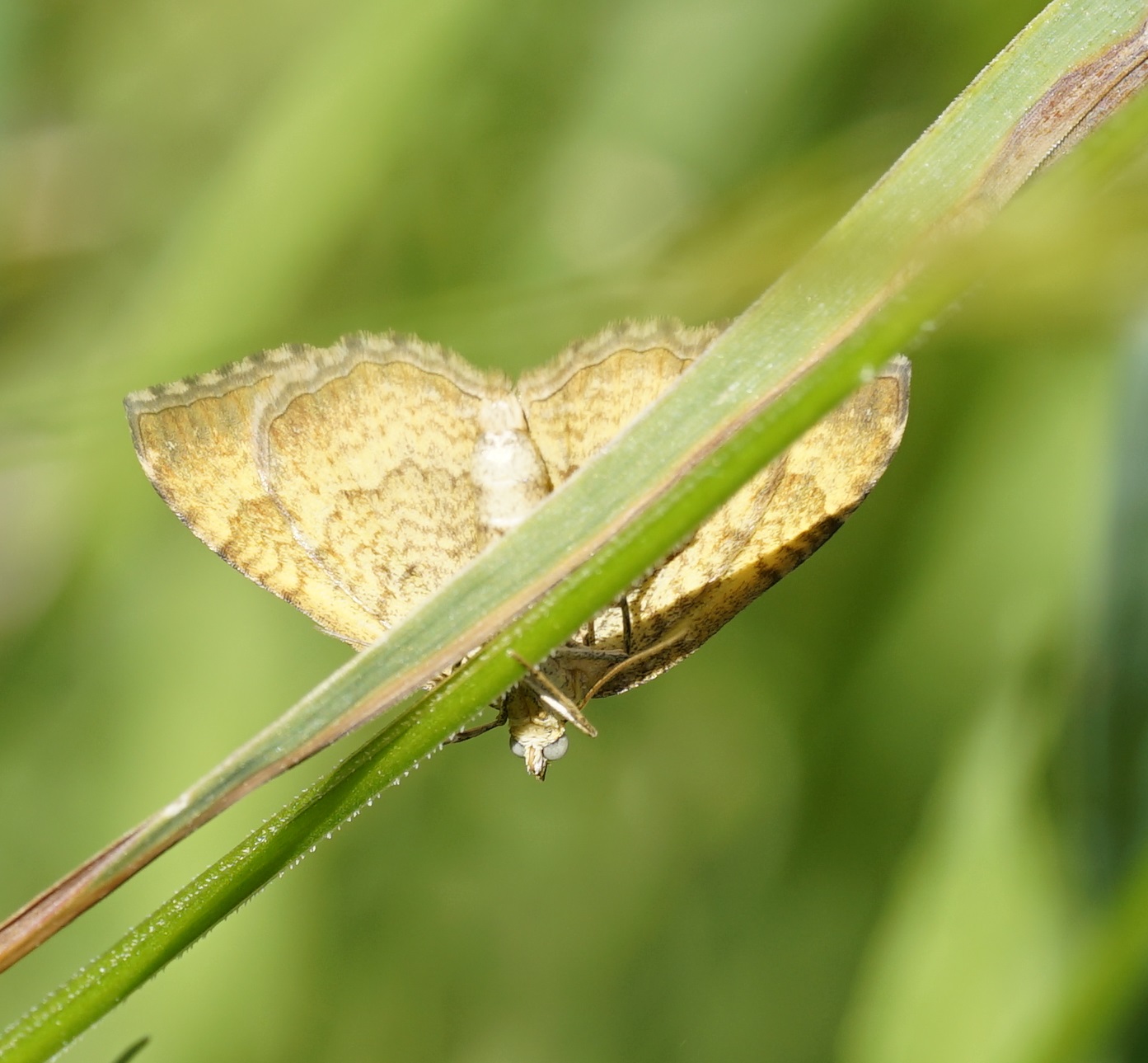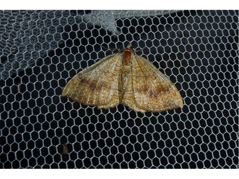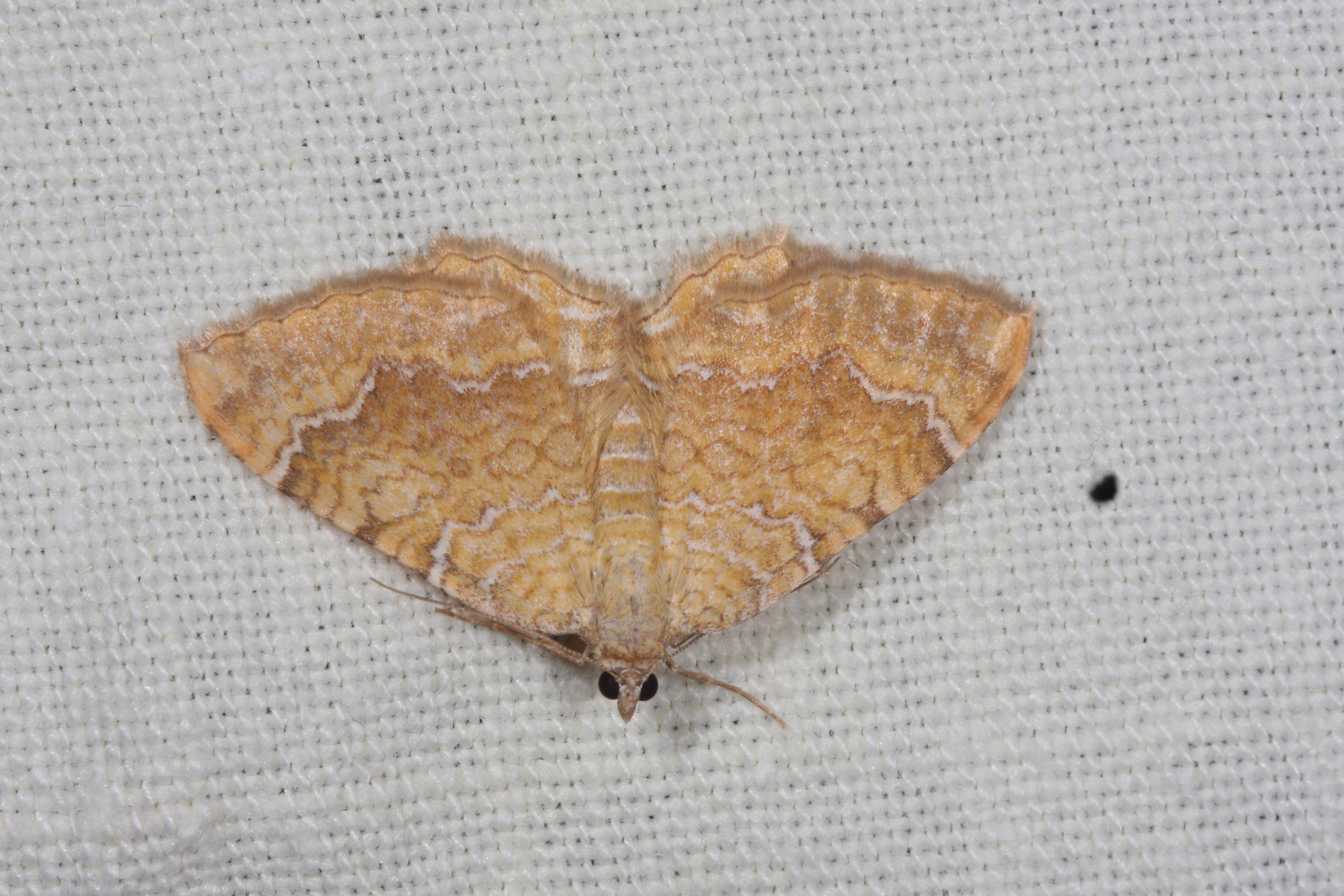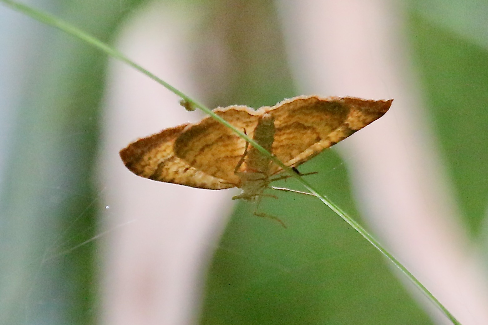Ockergelbe Blattspanner, oder Löwenzahnspanner oder Brennnesselspanner (Camptogramma bilineata (Linnaeus, 1758)), am Licht, Radeberg, August 2013.