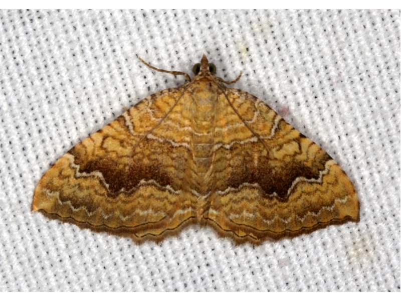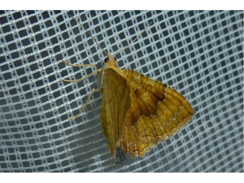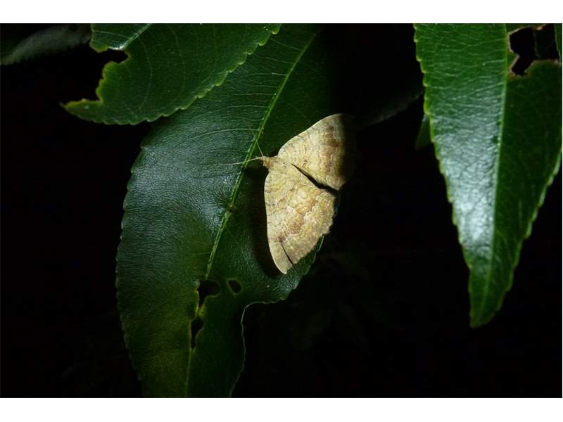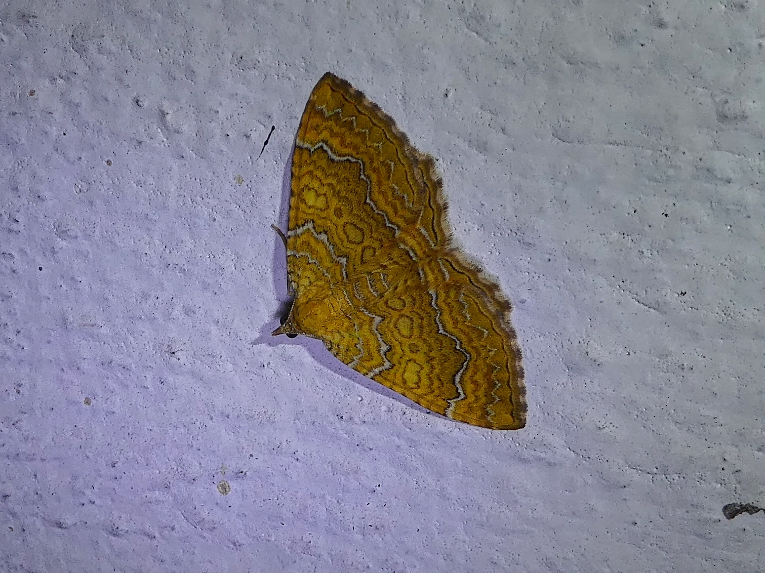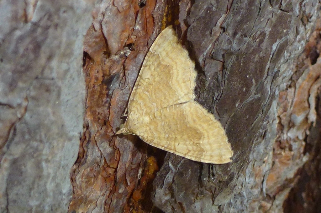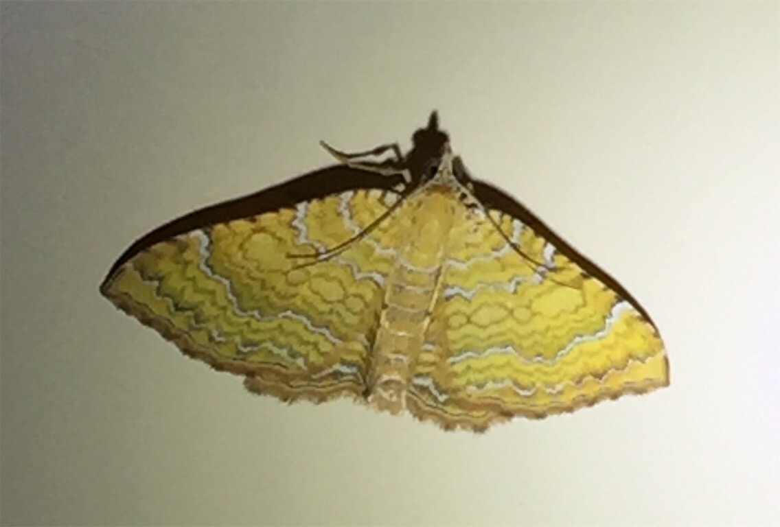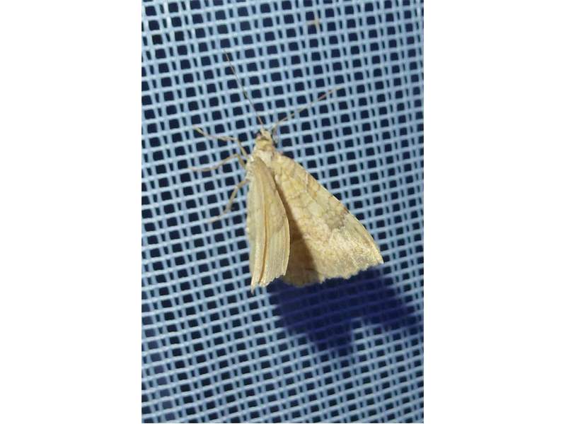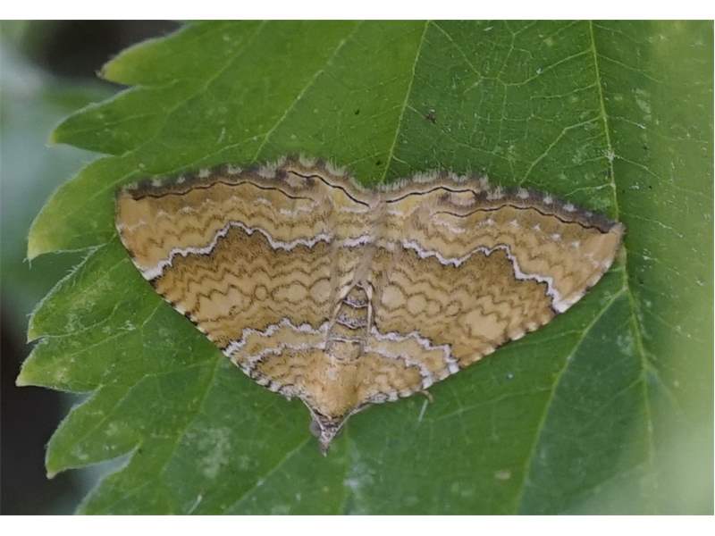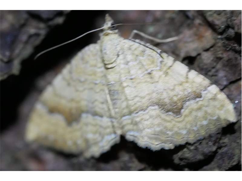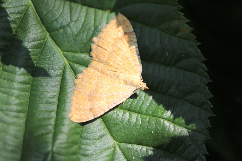 Ockergelbe Blattspanner, oder Löwenzahnspanner oder Brennnesselspanner (Camptogramma bilineata (Linnaeus, 1758)), am Licht, Radeberg, August 2013.