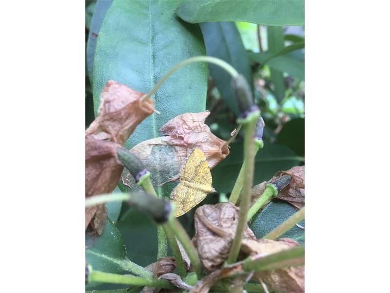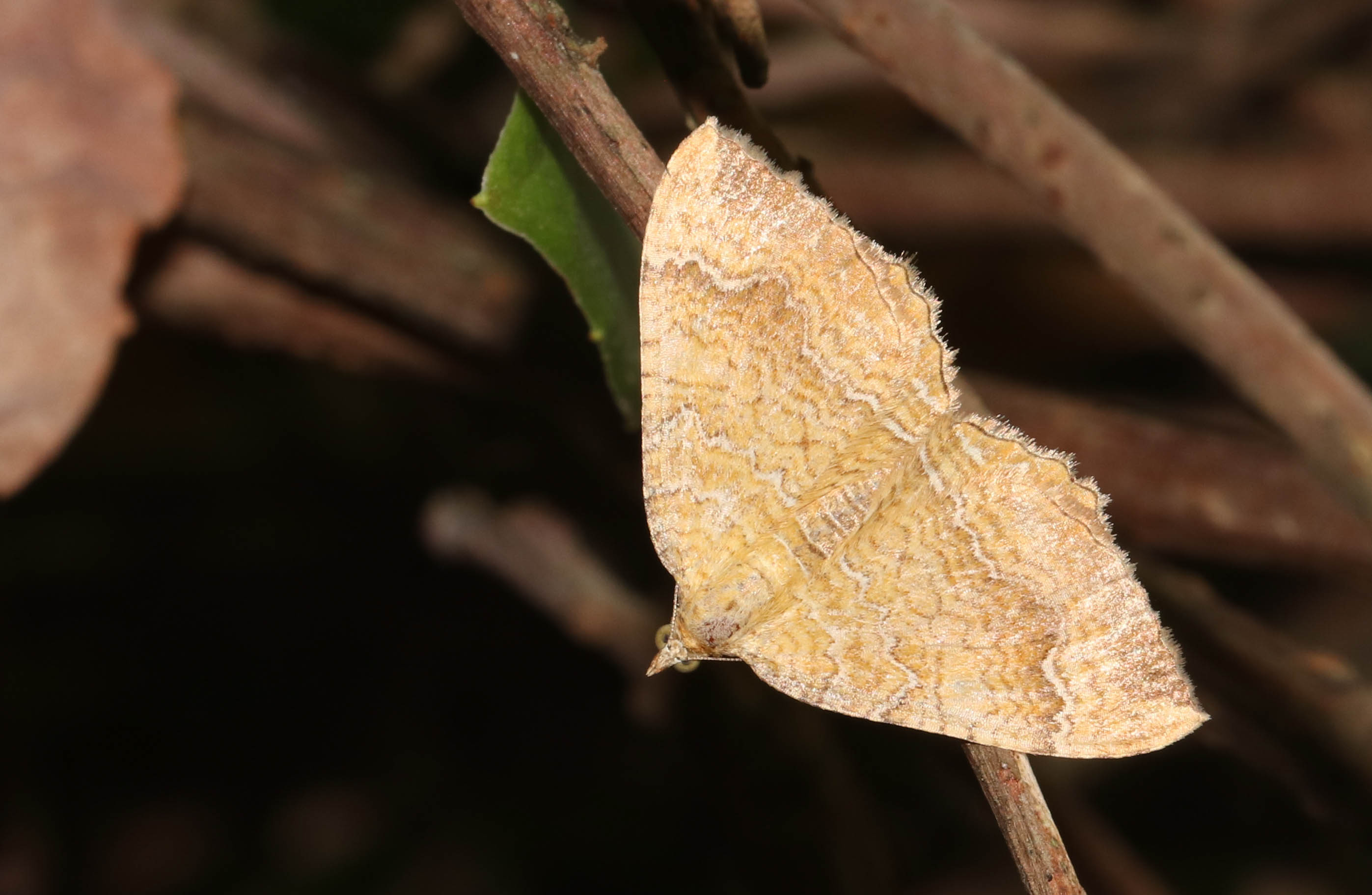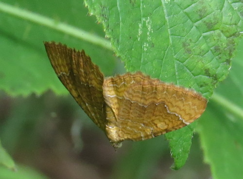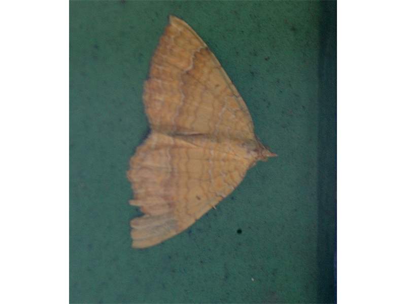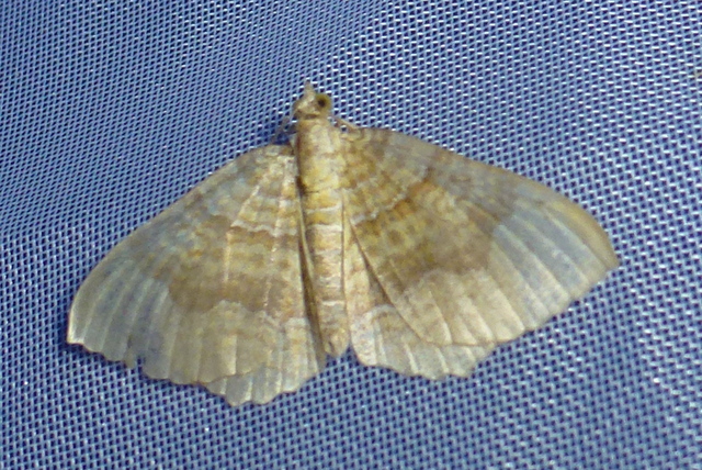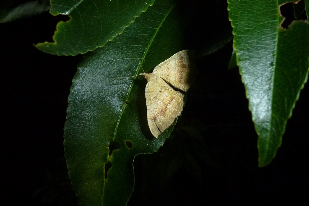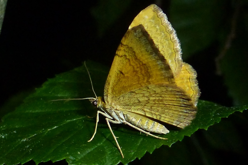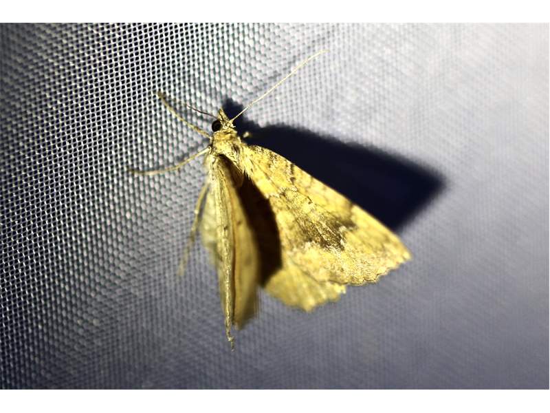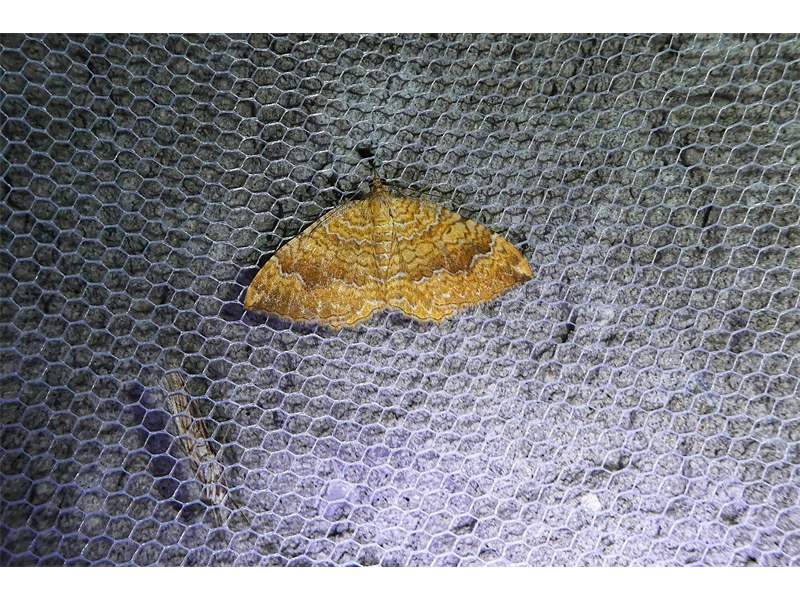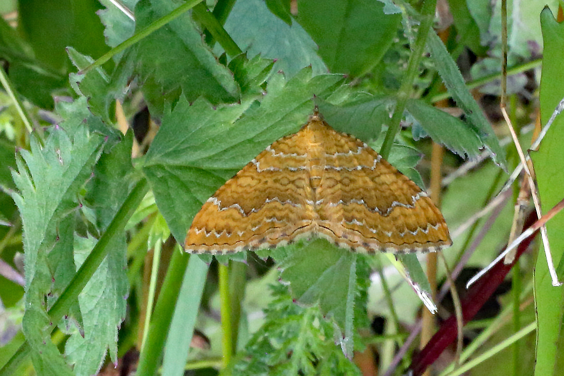 Ockergelbe Blattspanner, oder Löwenzahnspanner oder Brennnesselspanner (Camptogramma bilineata (Linnaeus, 1758)), am Licht, Radeberg, August 2013.