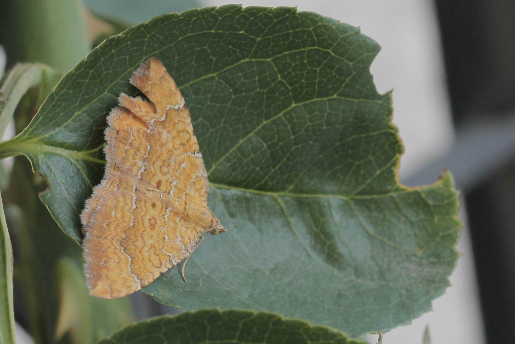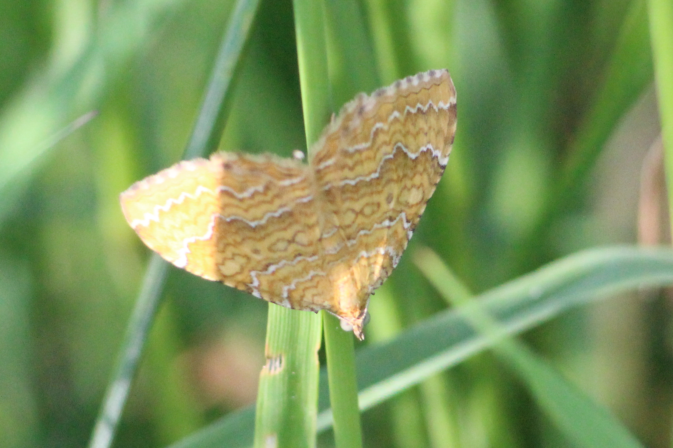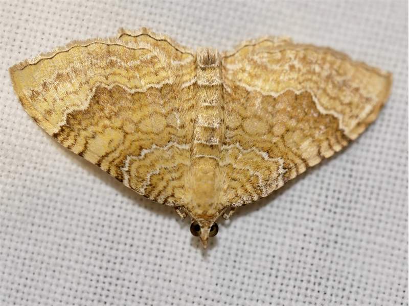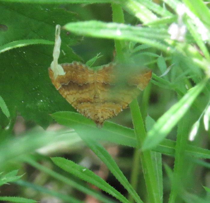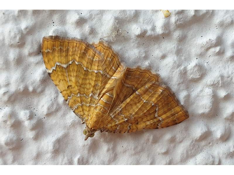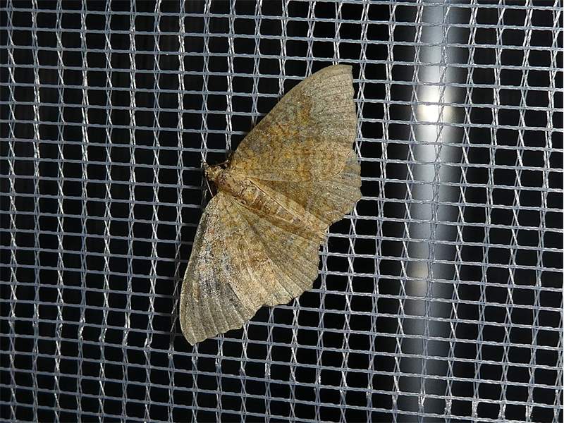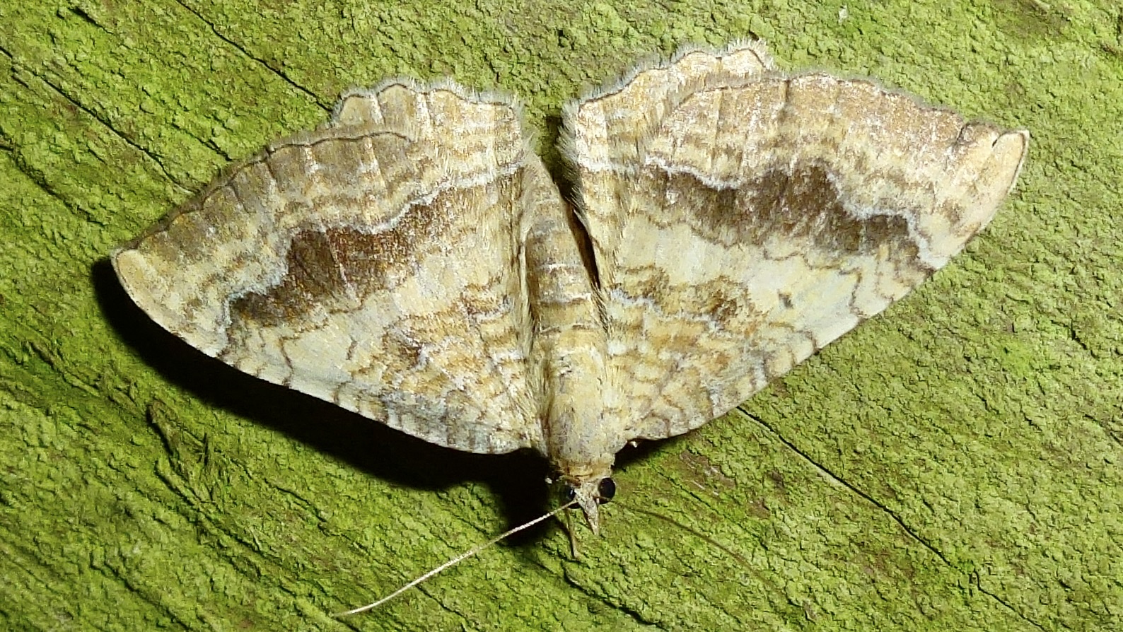 Ockergelbe Blattspanner, oder Löwenzahnspanner oder Brennnesselspanner (Camptogramma bilineata (Linnaeus, 1758)), am Licht, Radeberg, August 2013.