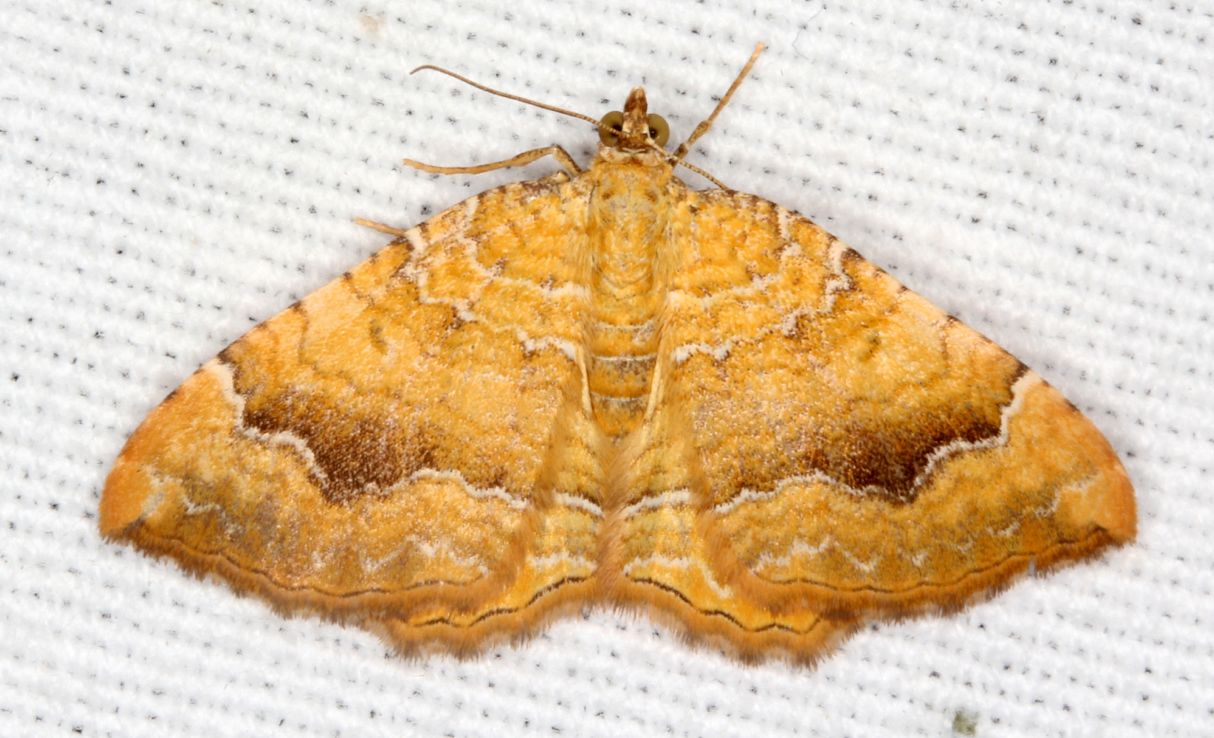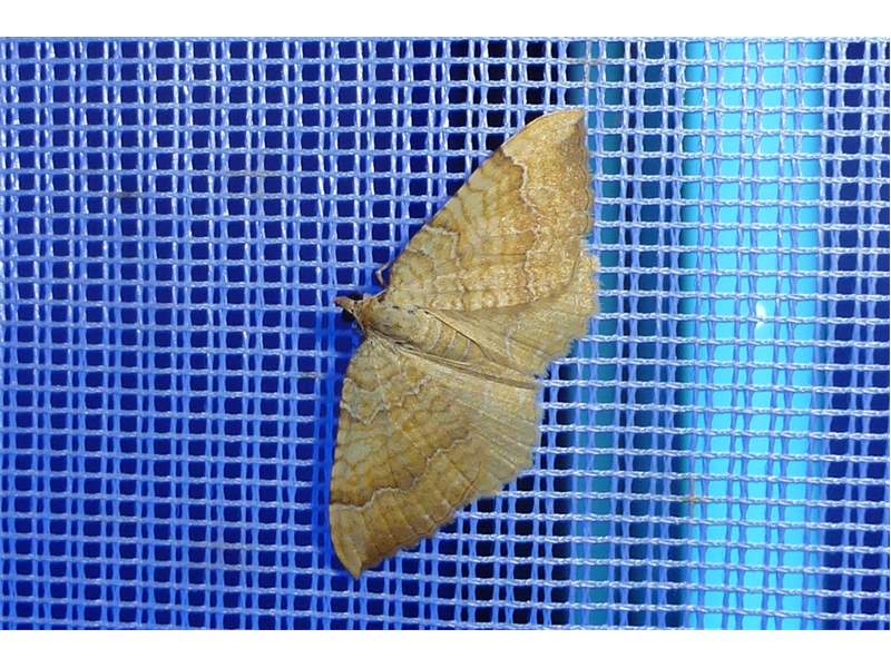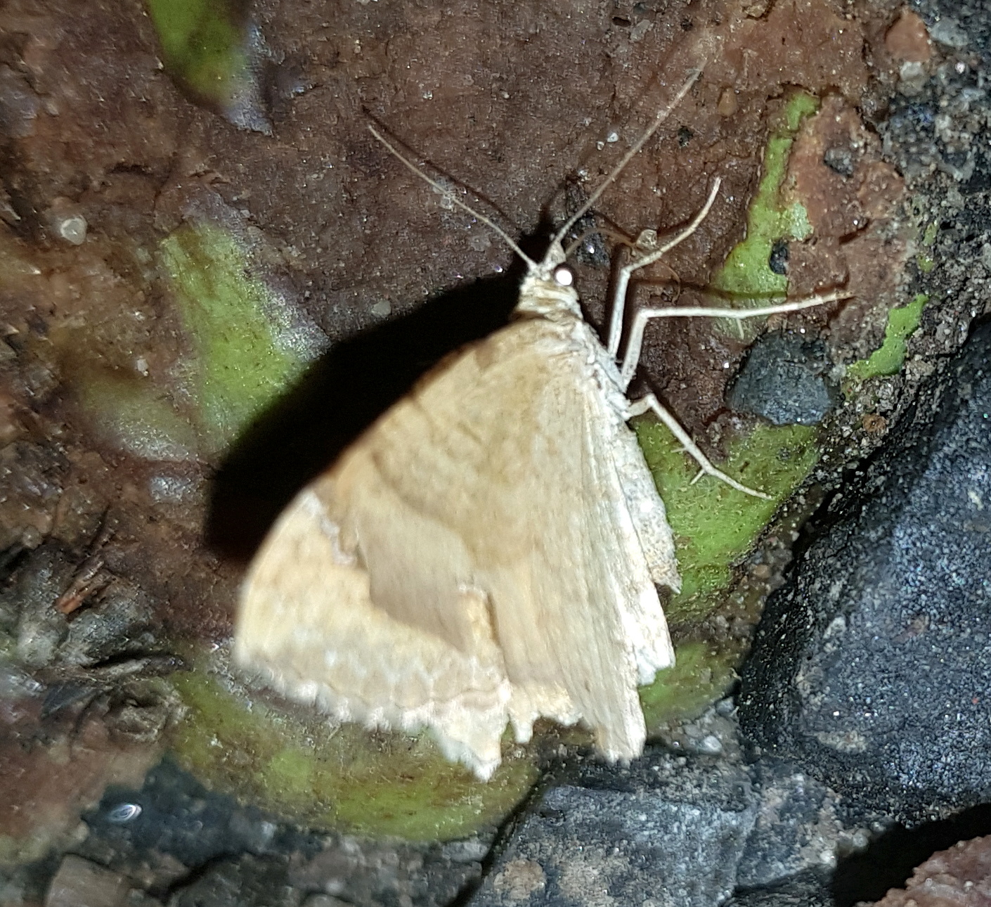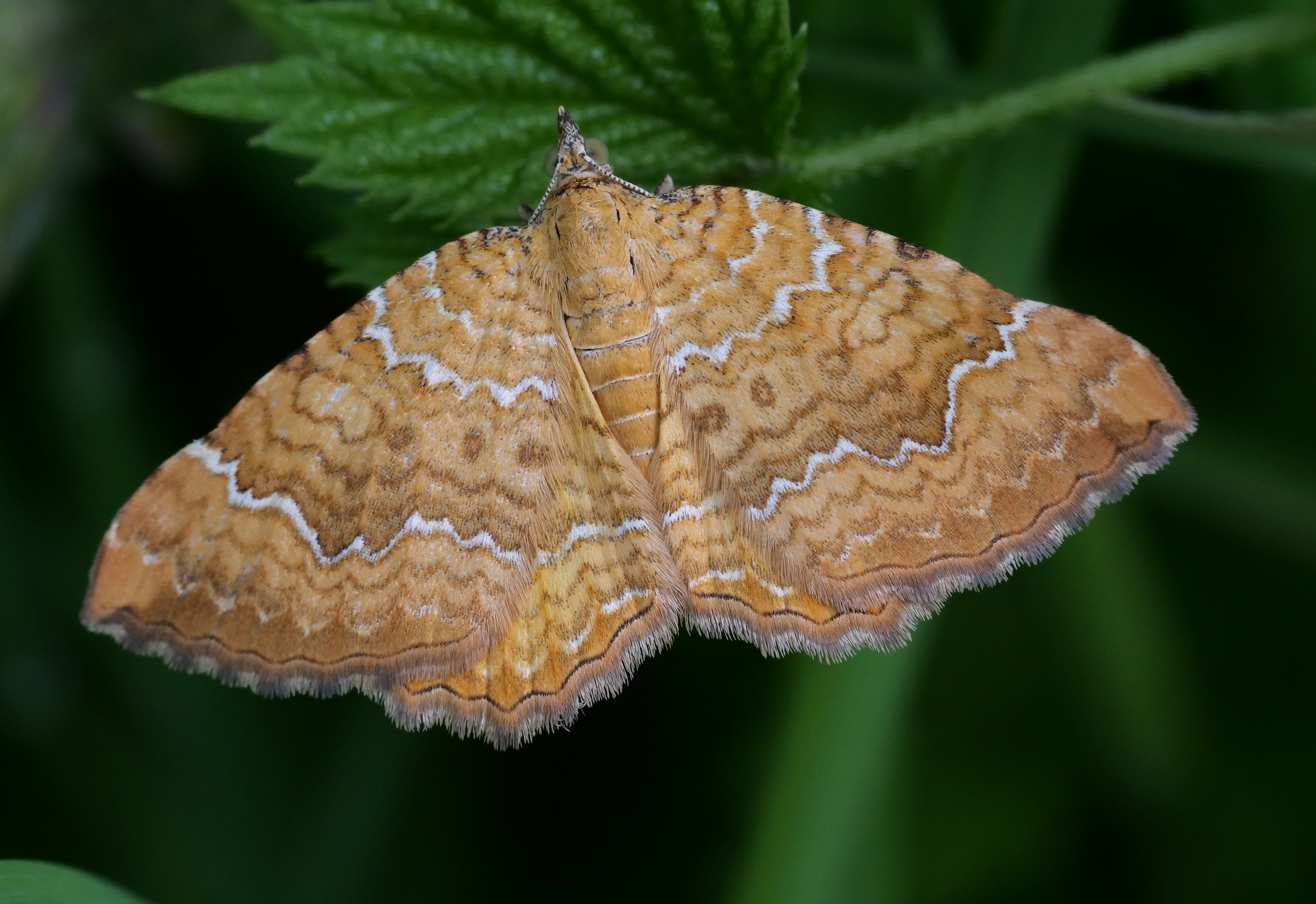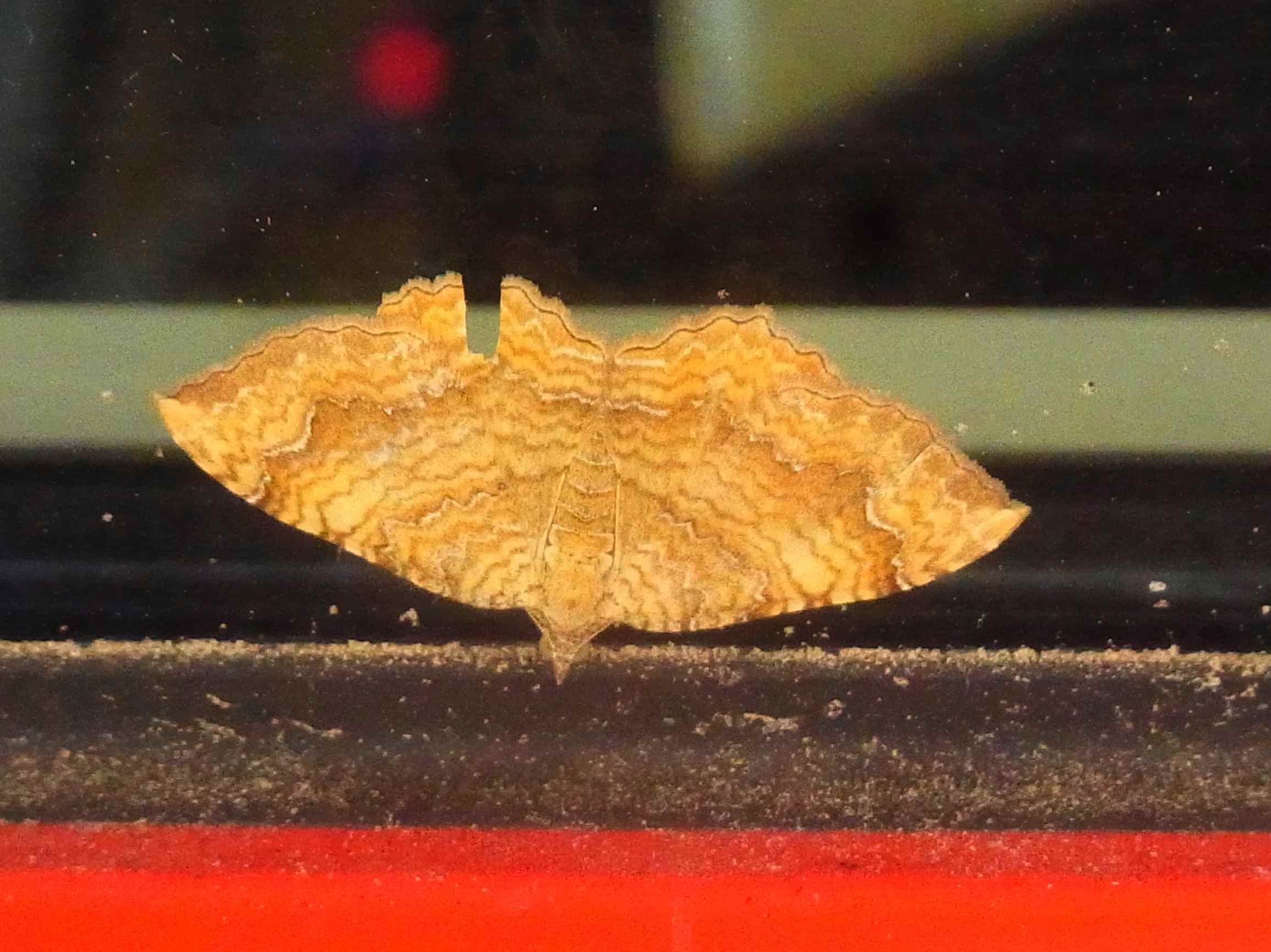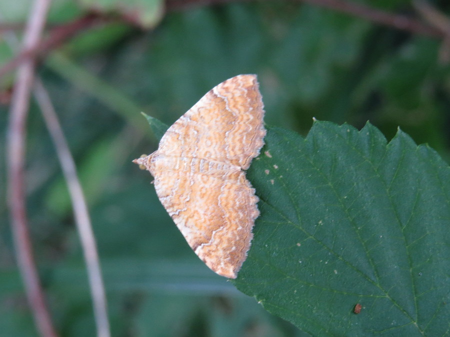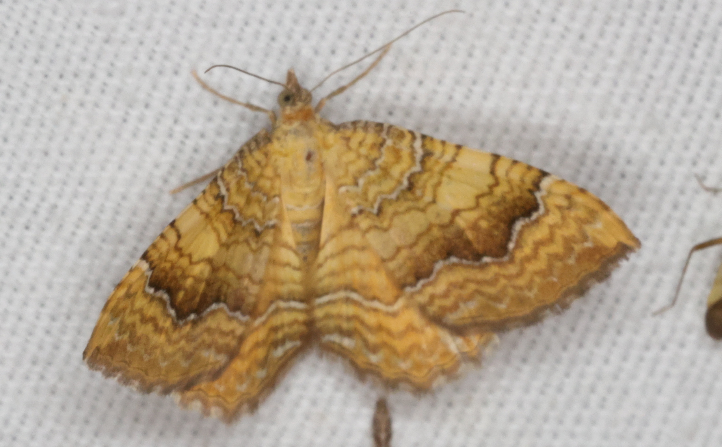Ockergelbe Blattspanner, oder Löwenzahnspanner oder Brennnesselspanner (Camptogramma bilineata (Linnaeus, 1758)), am Licht, Radeberg, August 2013.