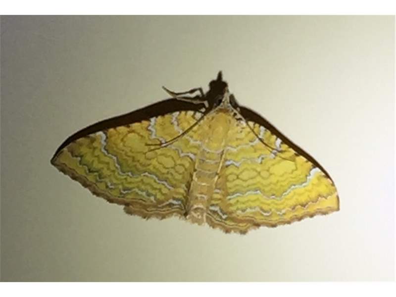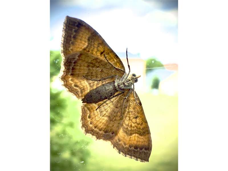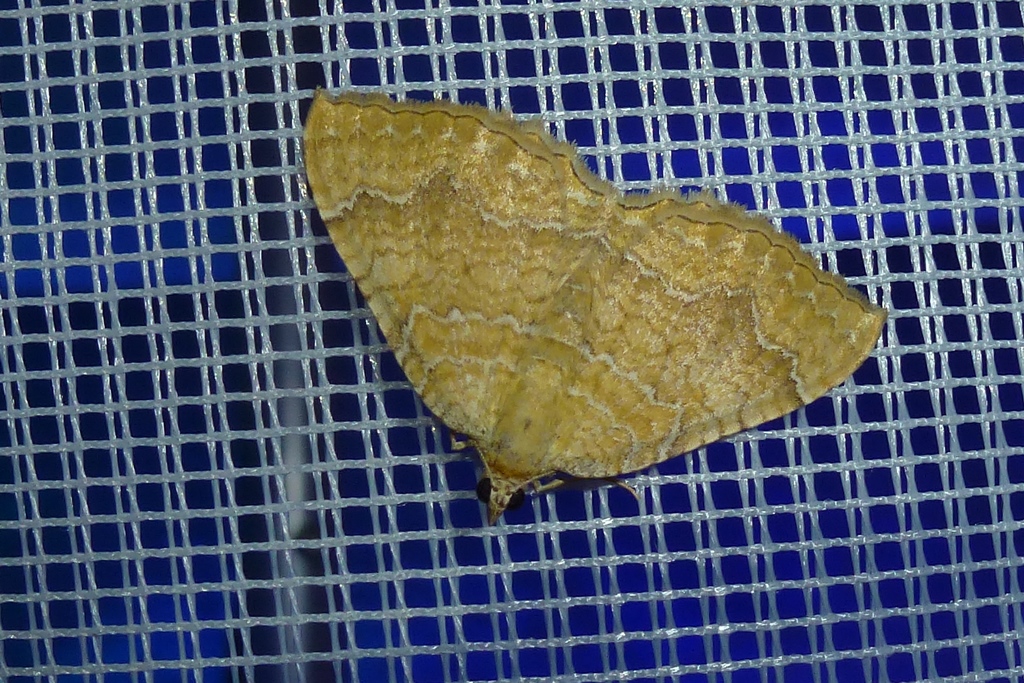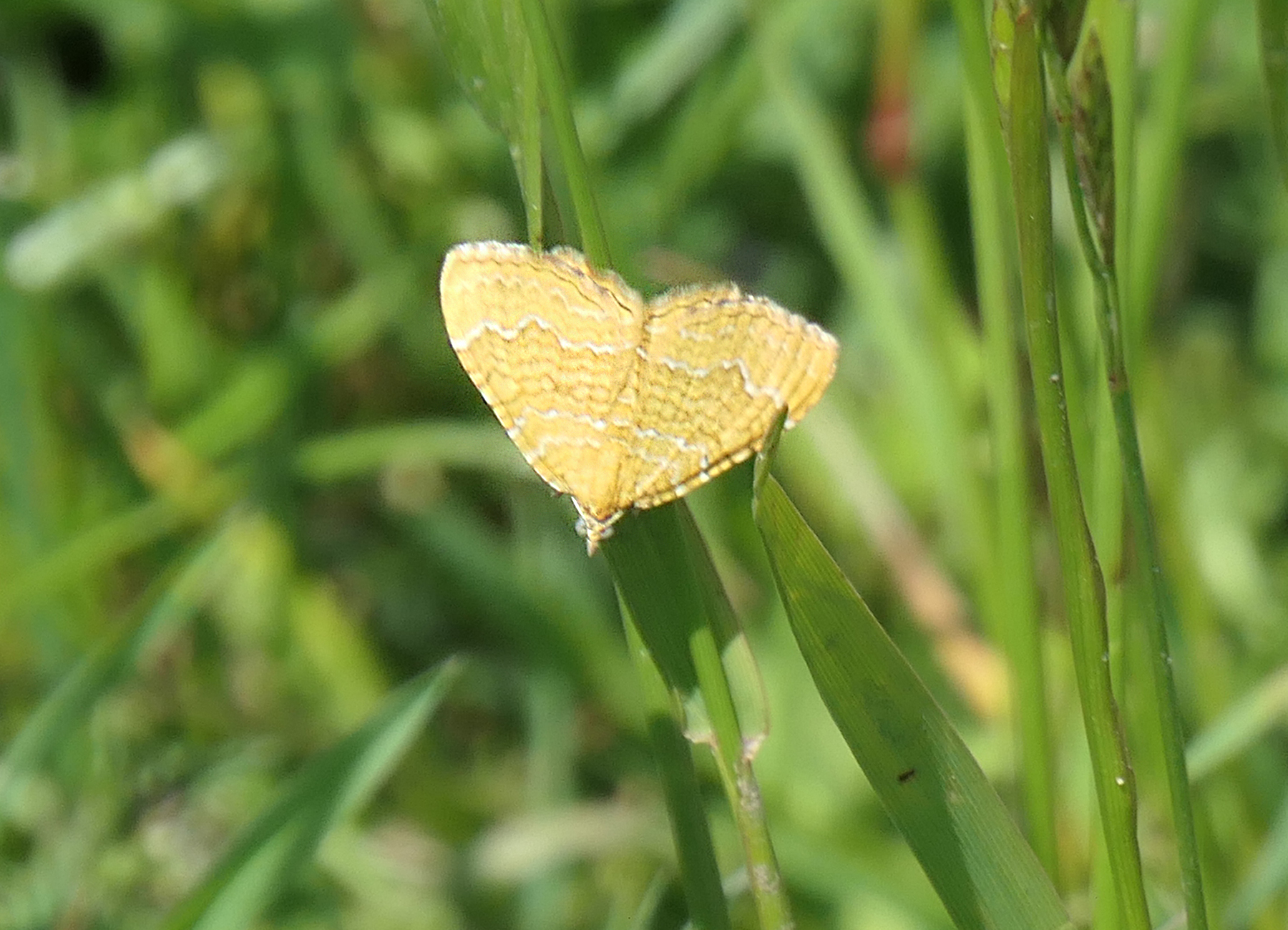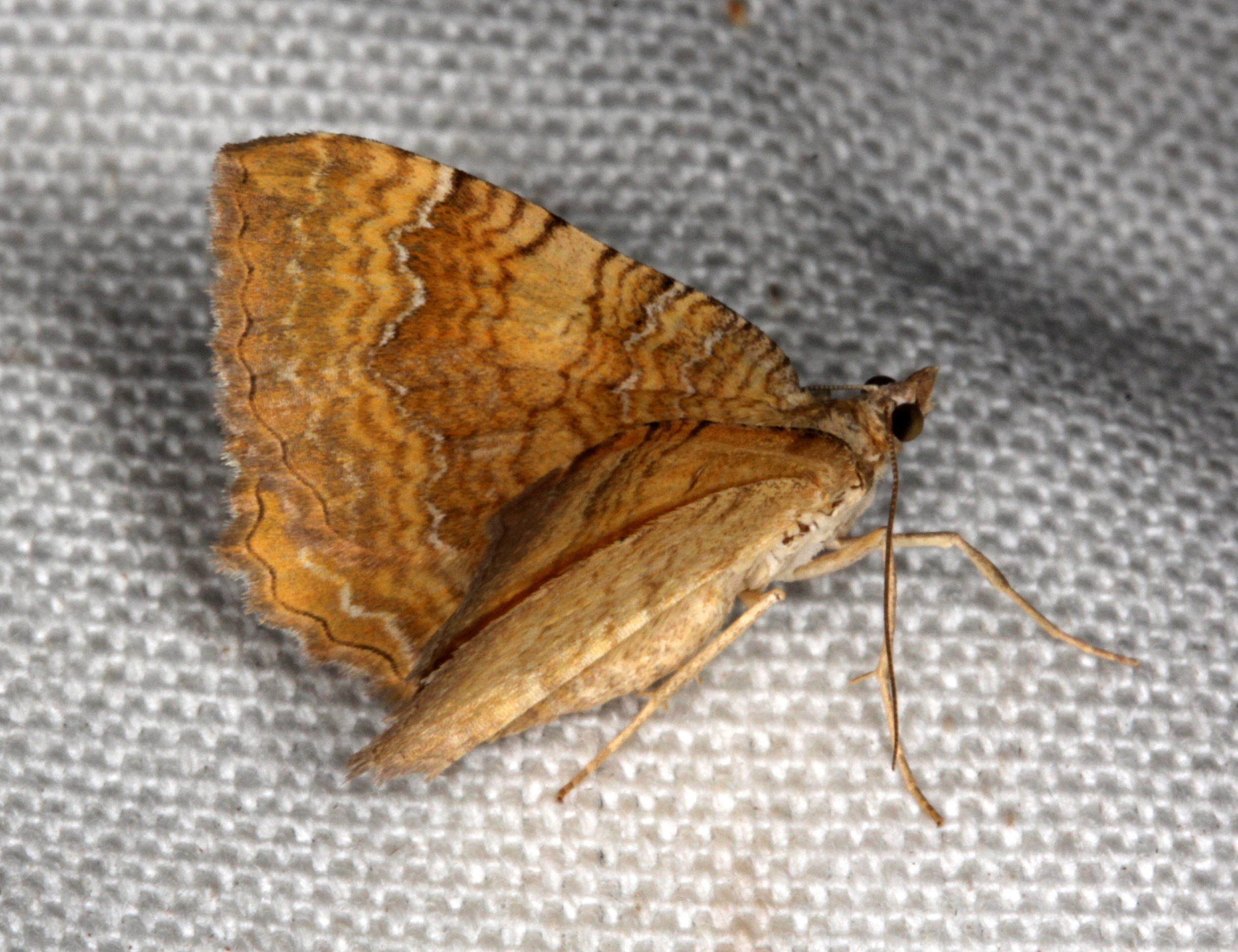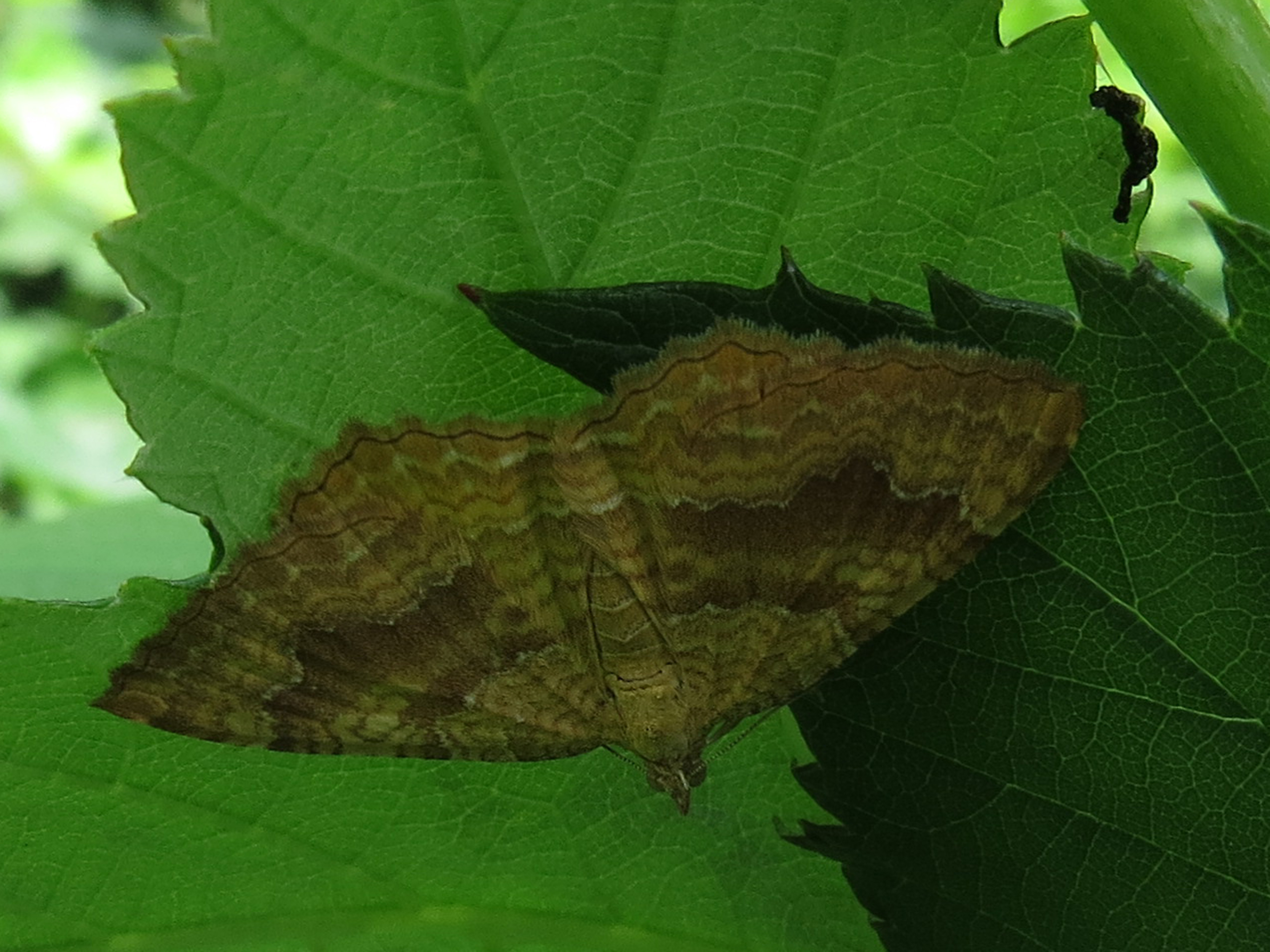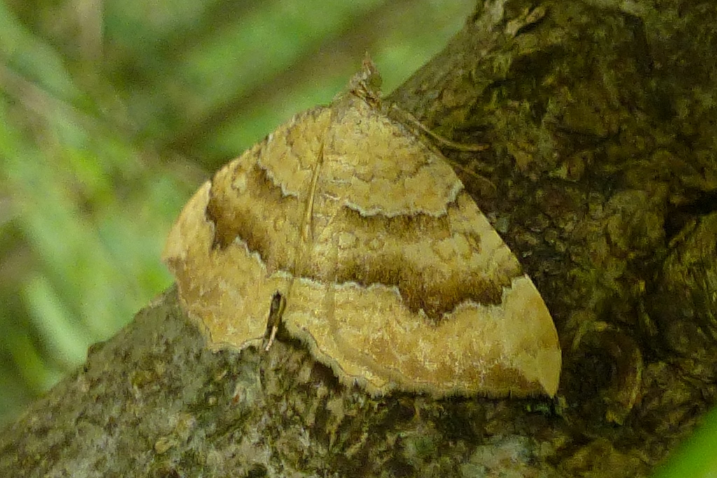 Ockergelbe Blattspanner, oder Löwenzahnspanner oder Brennnesselspanner (Camptogramma bilineata (Linnaeus, 1758)), am Licht, Radeberg, August 2013.