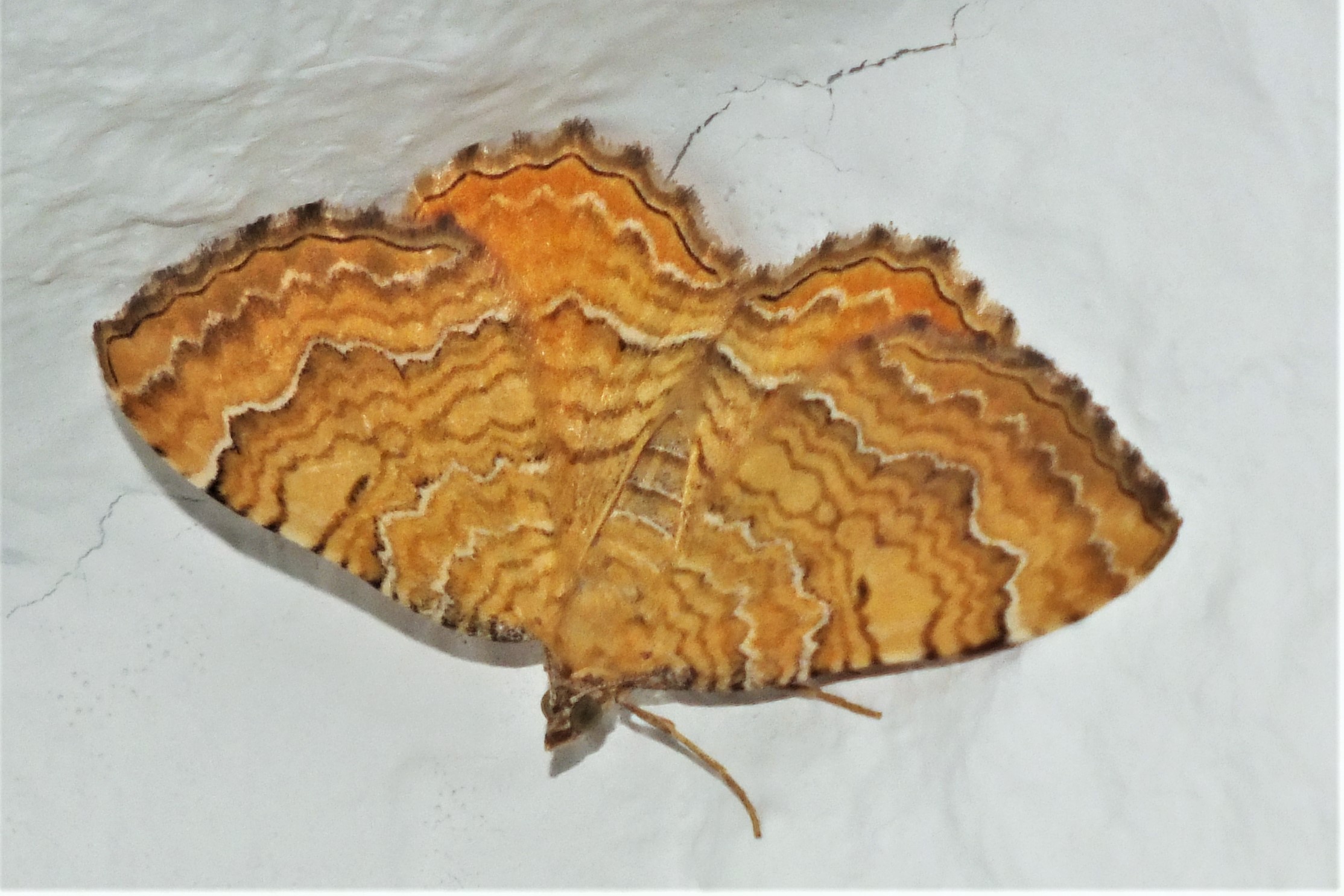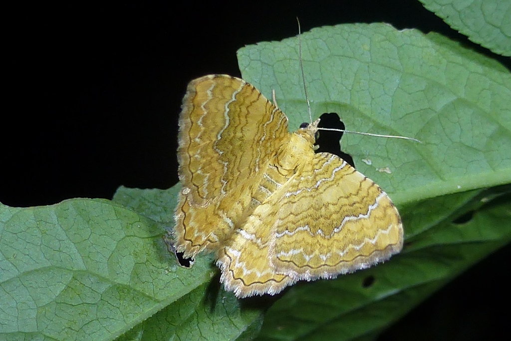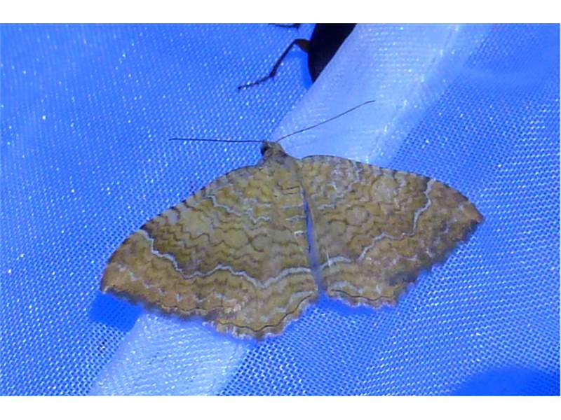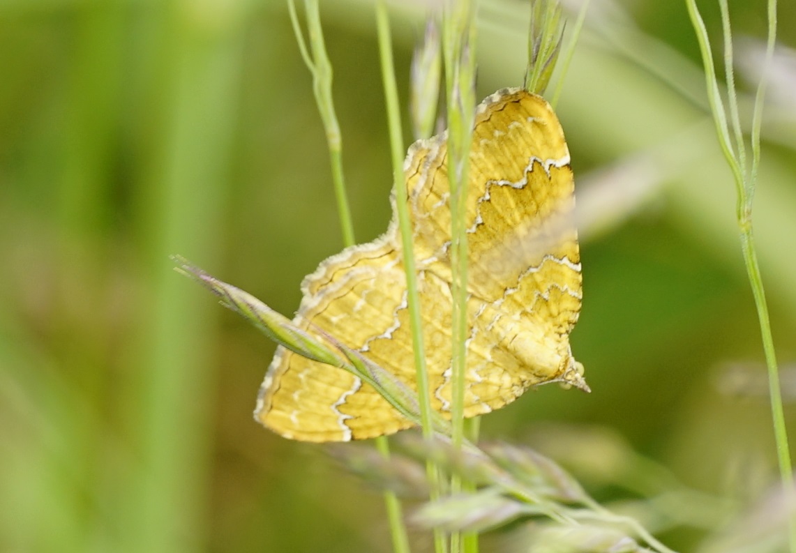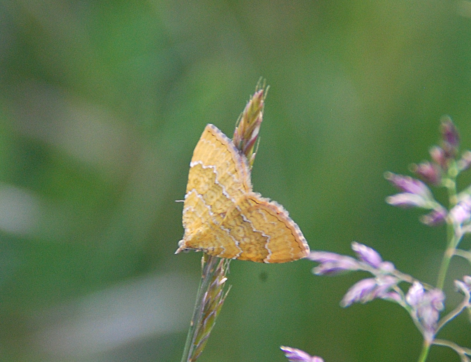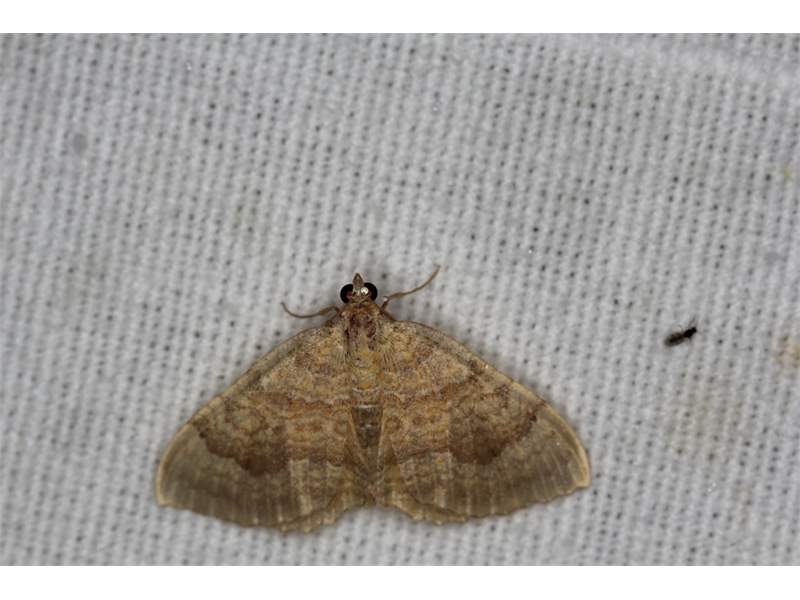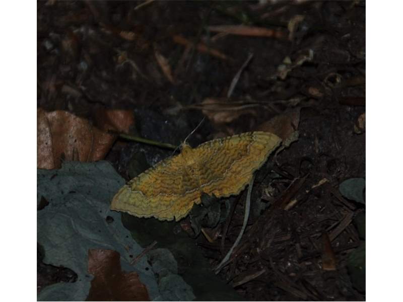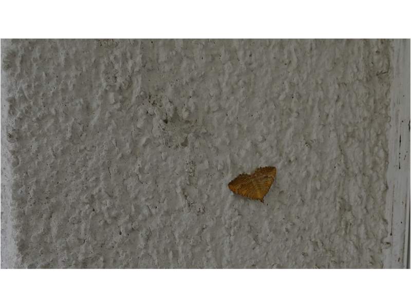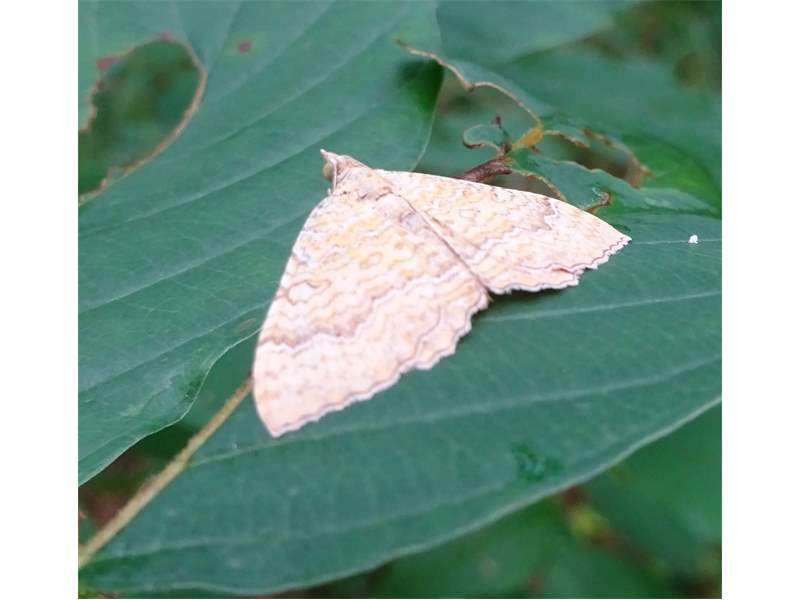 Ockergelbe Blattspanner, oder Löwenzahnspanner oder Brennnesselspanner (Camptogramma bilineata (Linnaeus, 1758)), am Licht, Radeberg, August 2013.