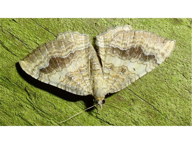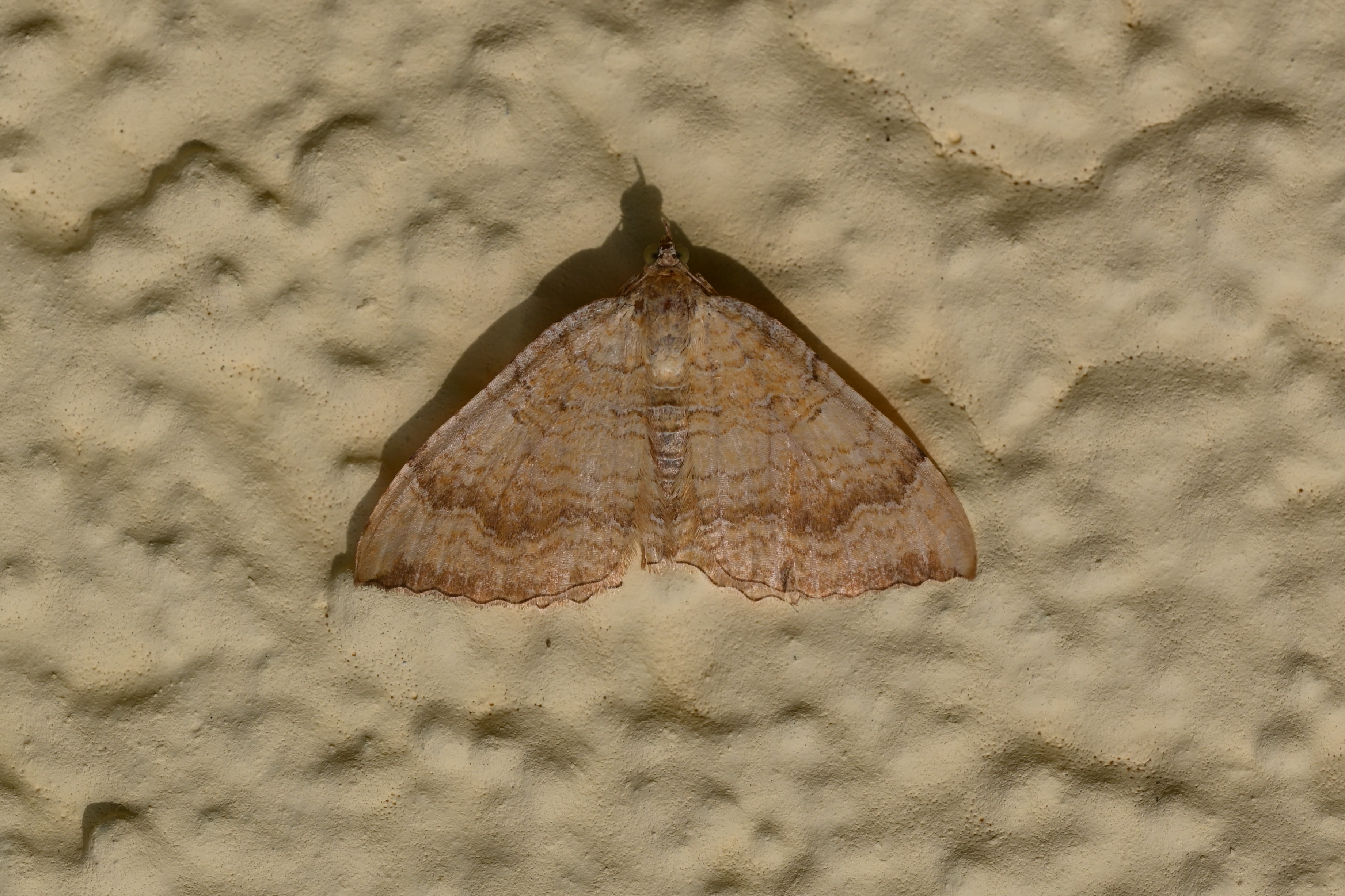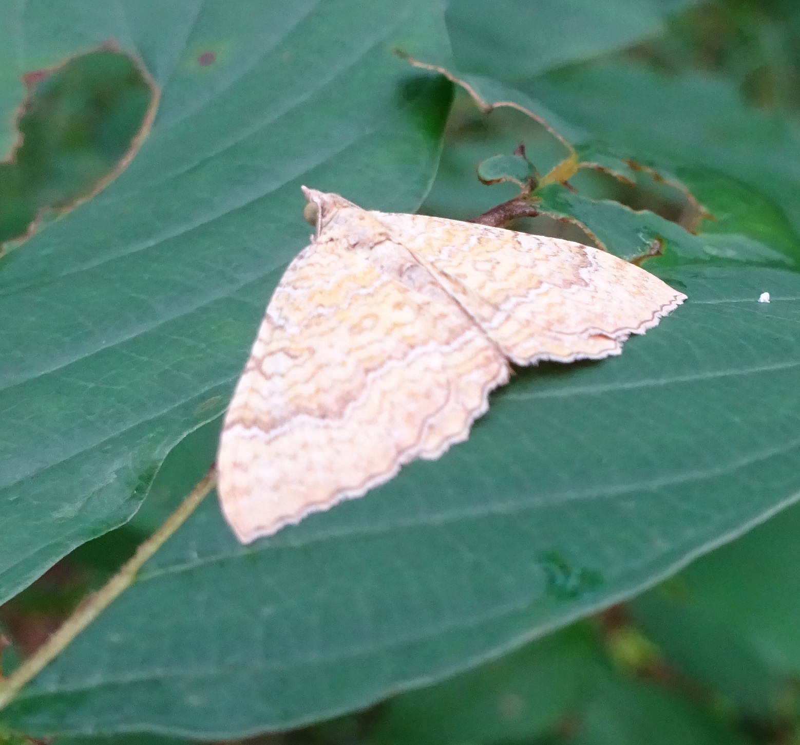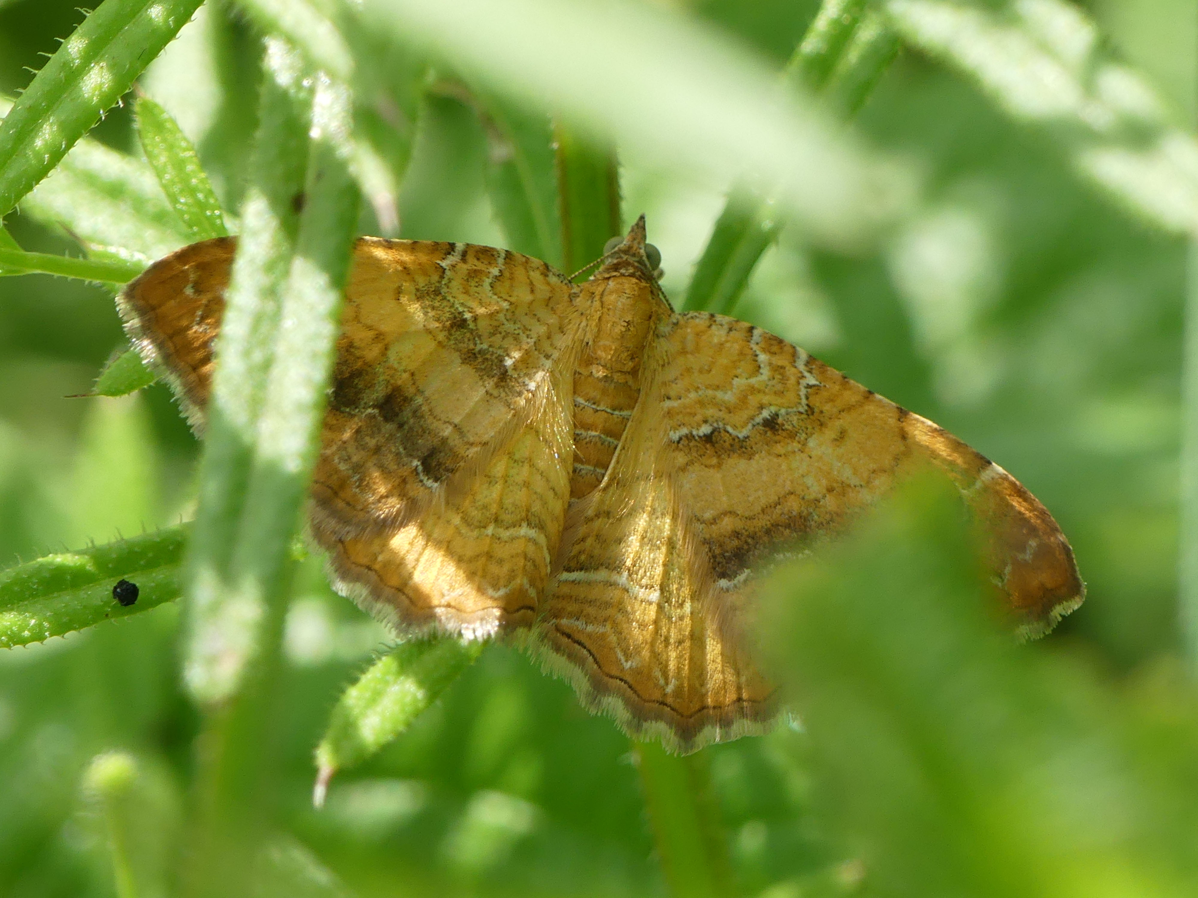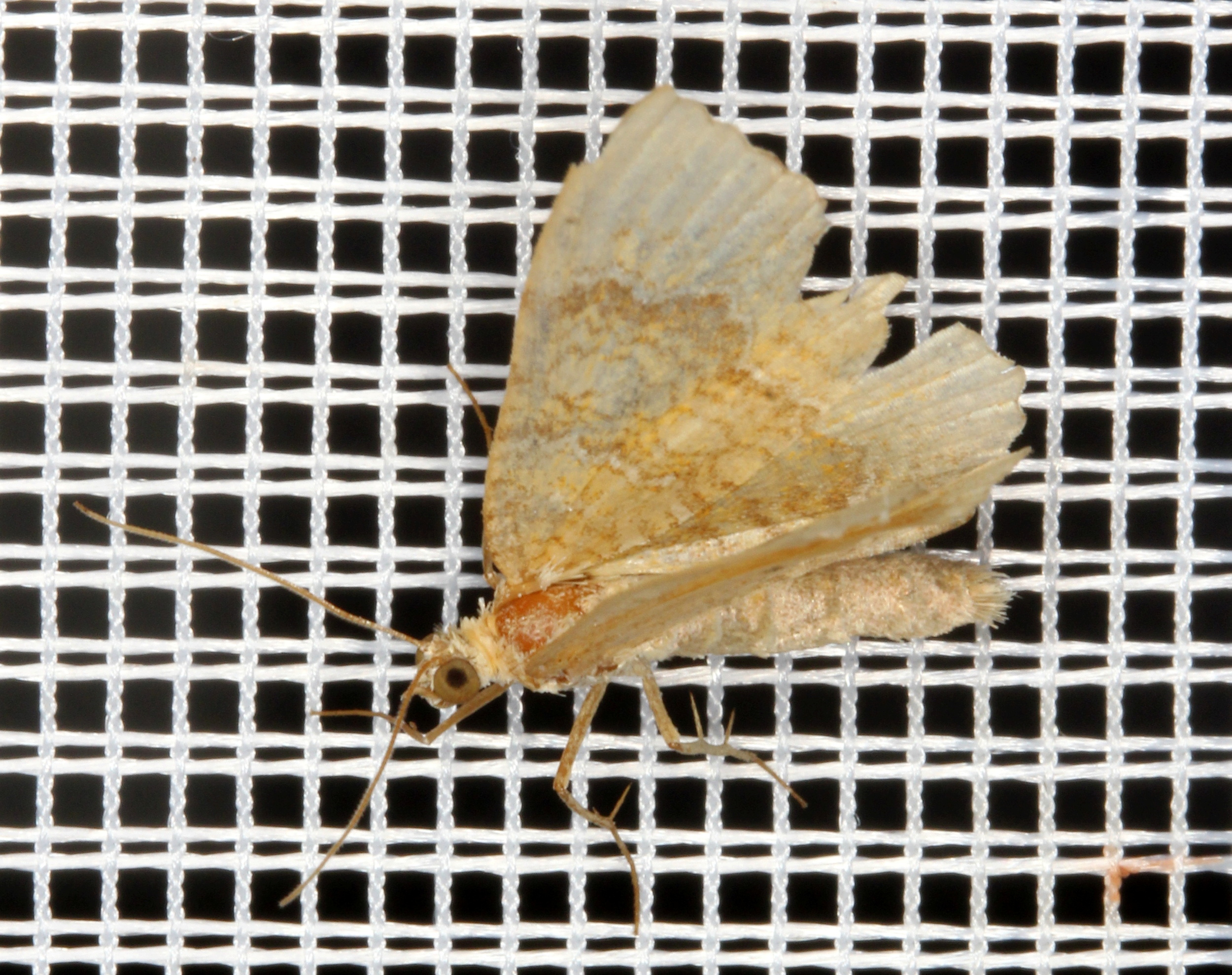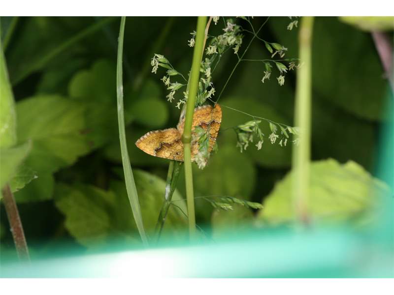 Ockergelbe Blattspanner, oder Löwenzahnspanner oder Brennnesselspanner (Camptogramma bilineata (Linnaeus, 1758)), am Licht, Radeberg, August 2013.