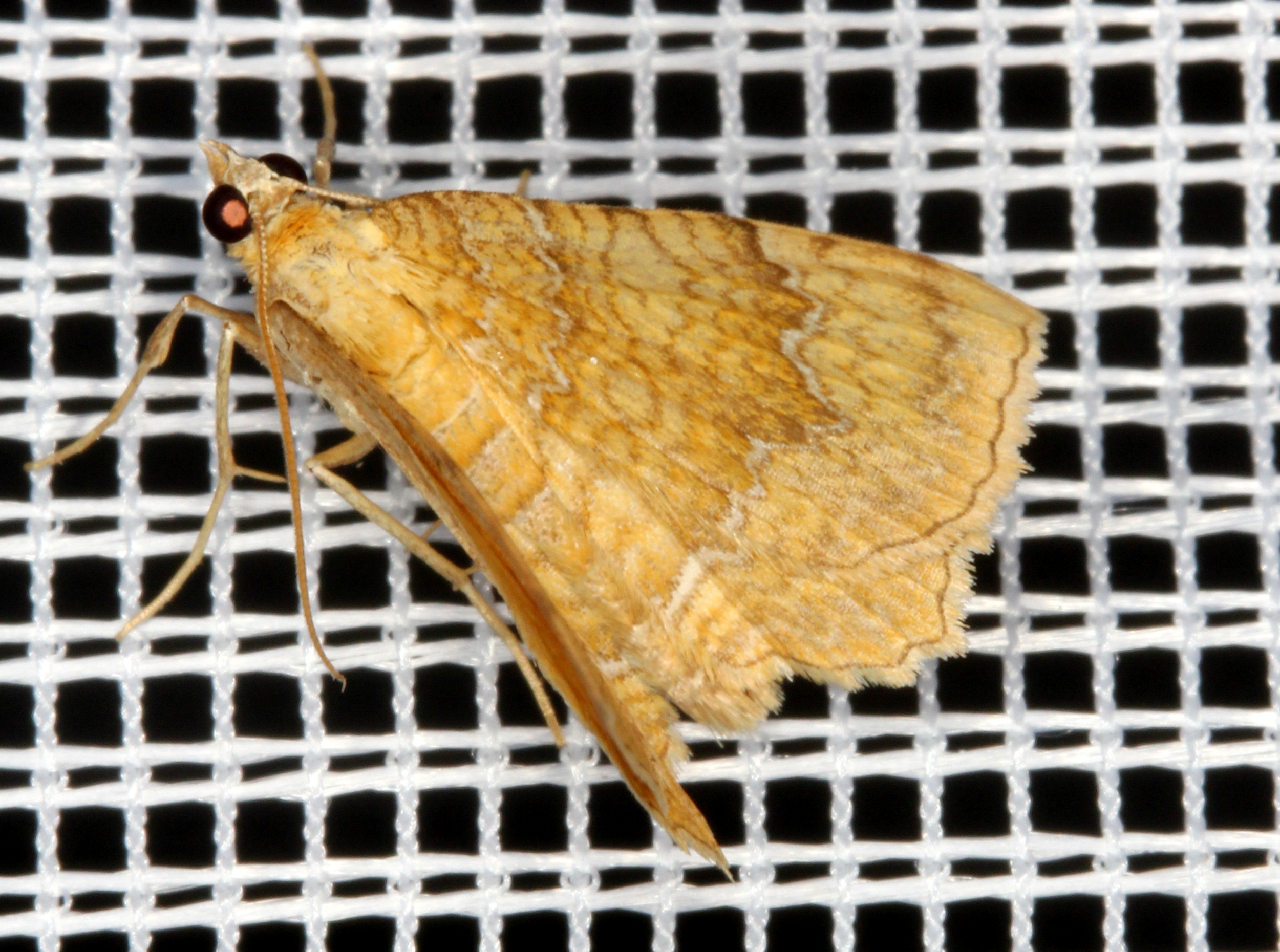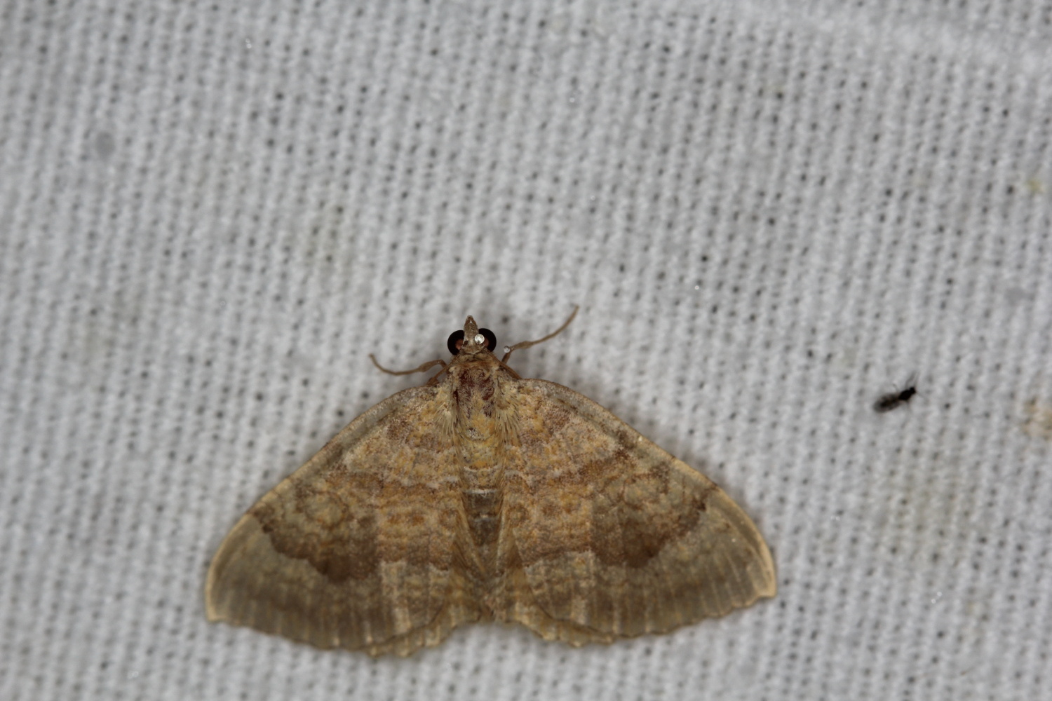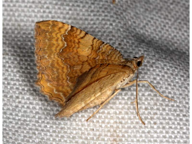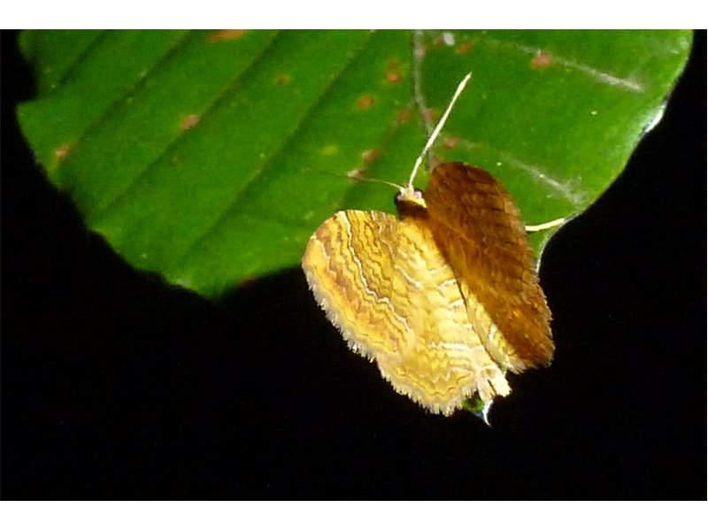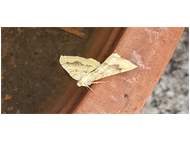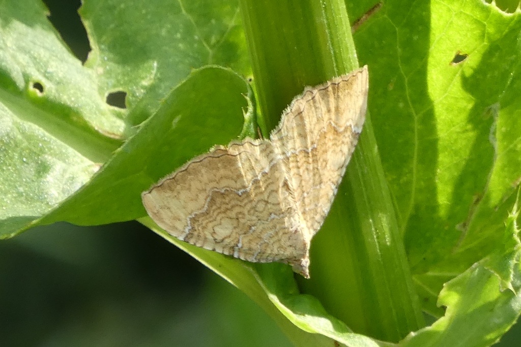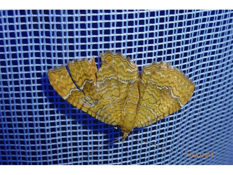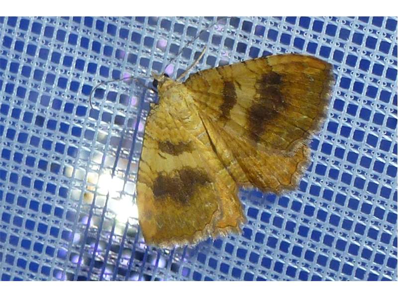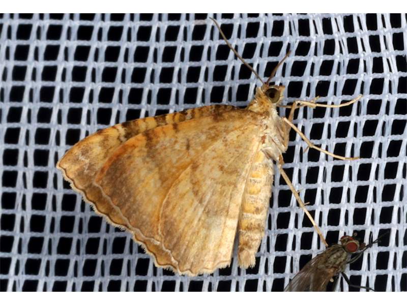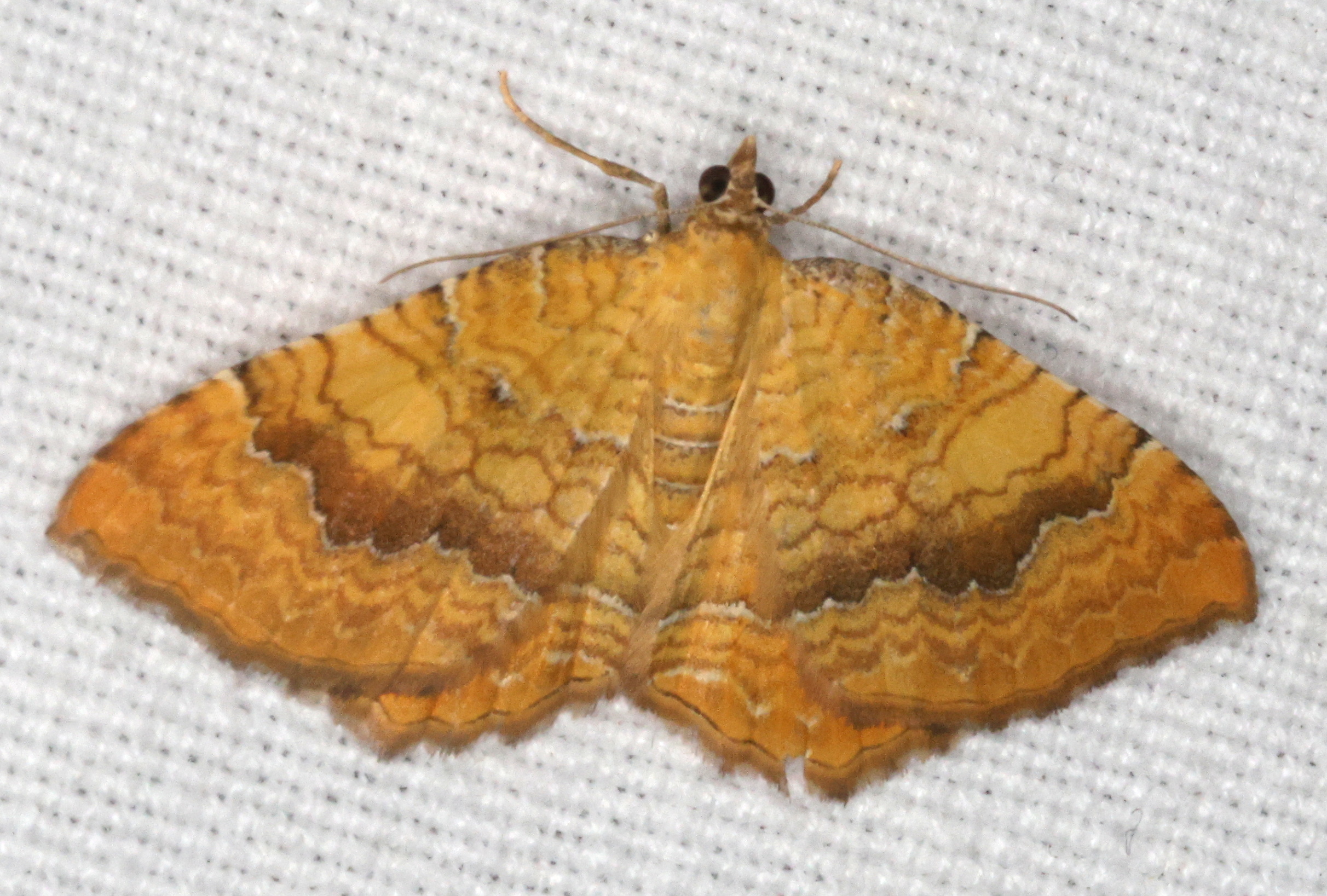 Ockergelbe Blattspanner, oder Löwenzahnspanner oder Brennnesselspanner (Camptogramma bilineata (Linnaeus, 1758)), am Licht, Radeberg, August 2013.