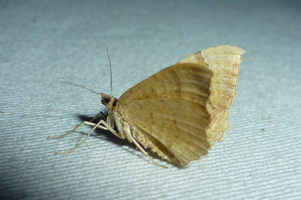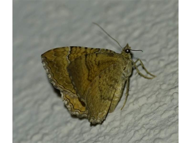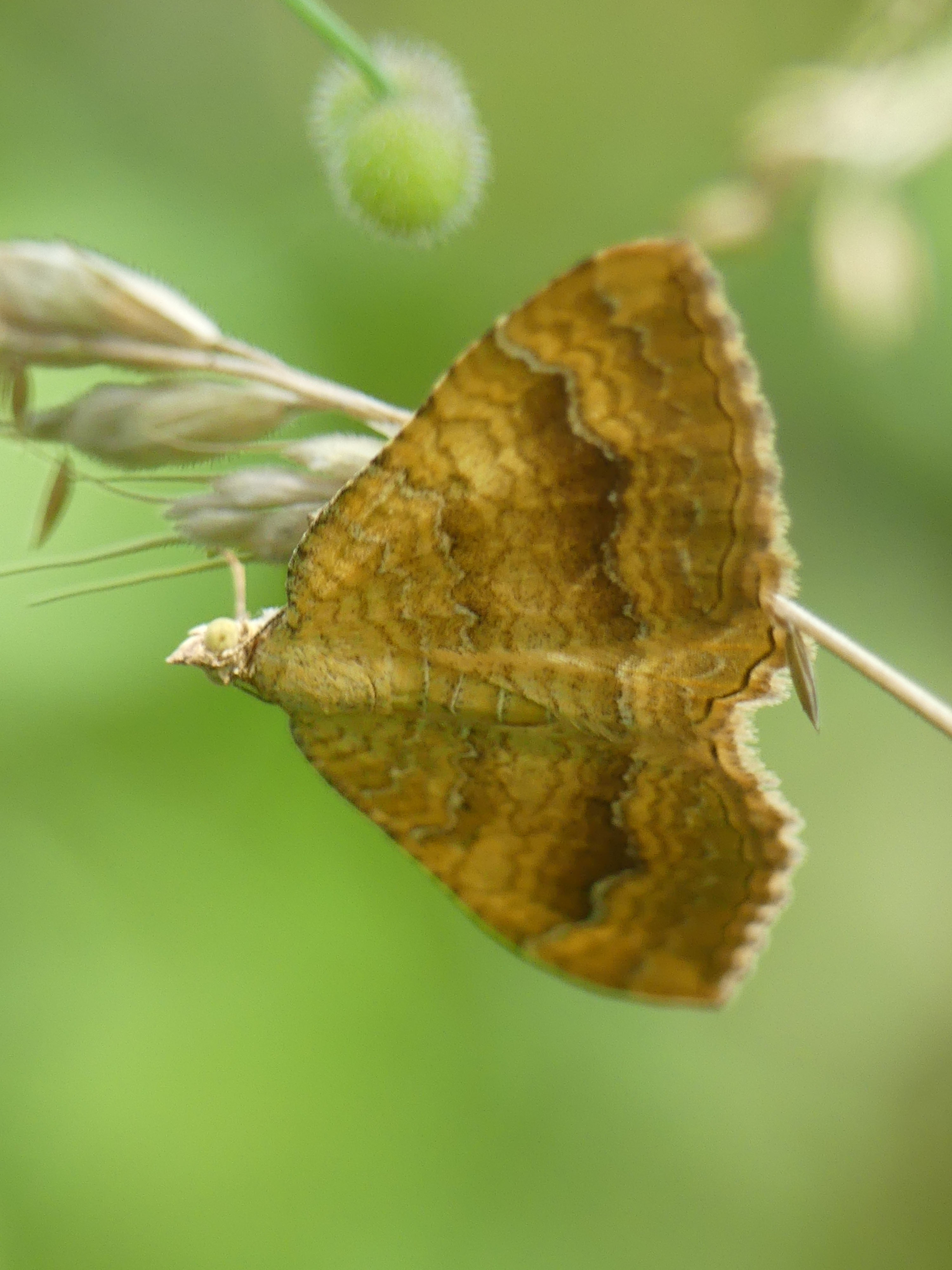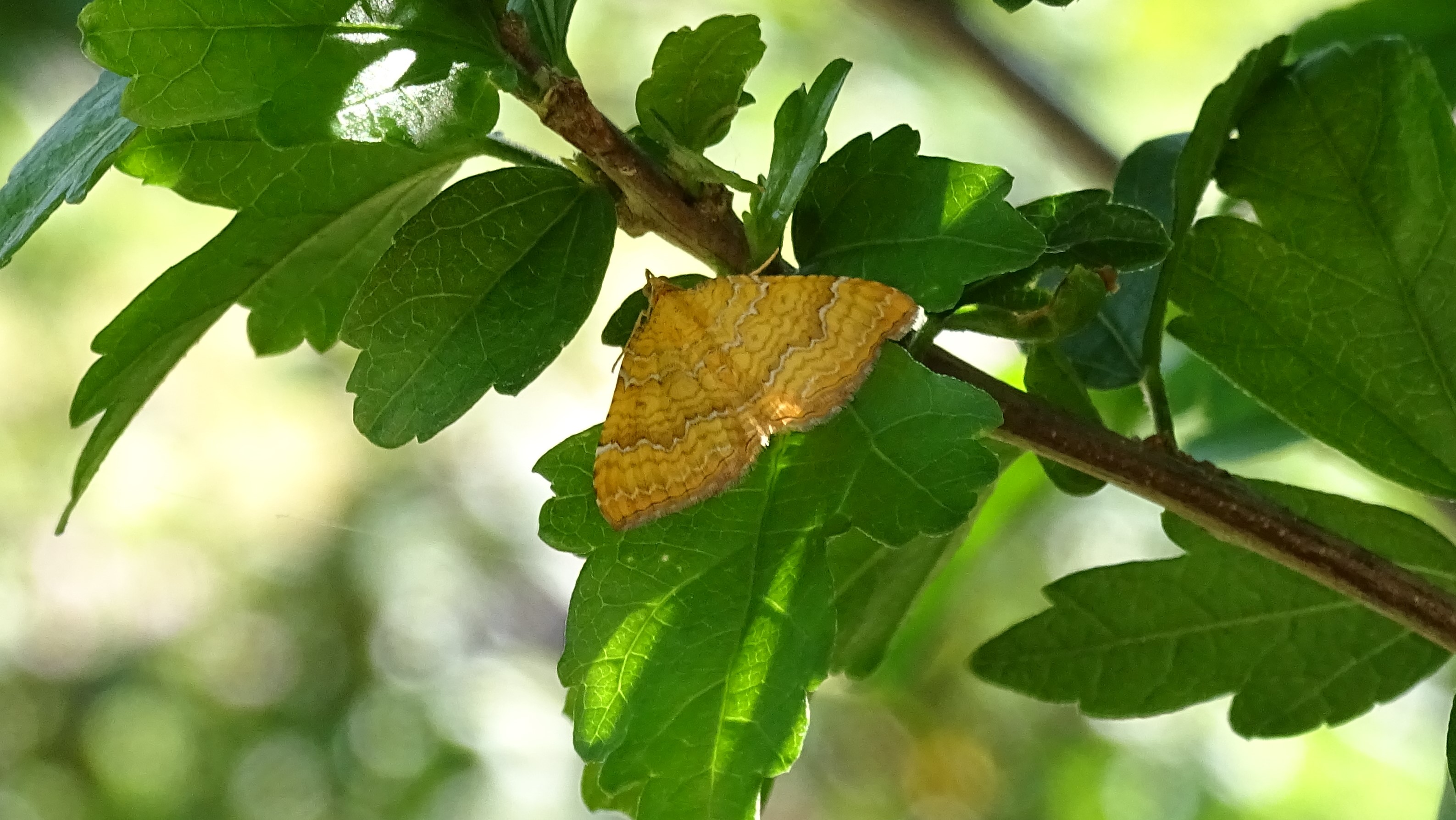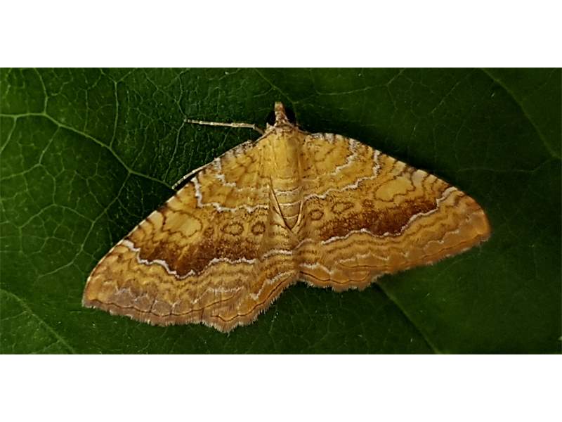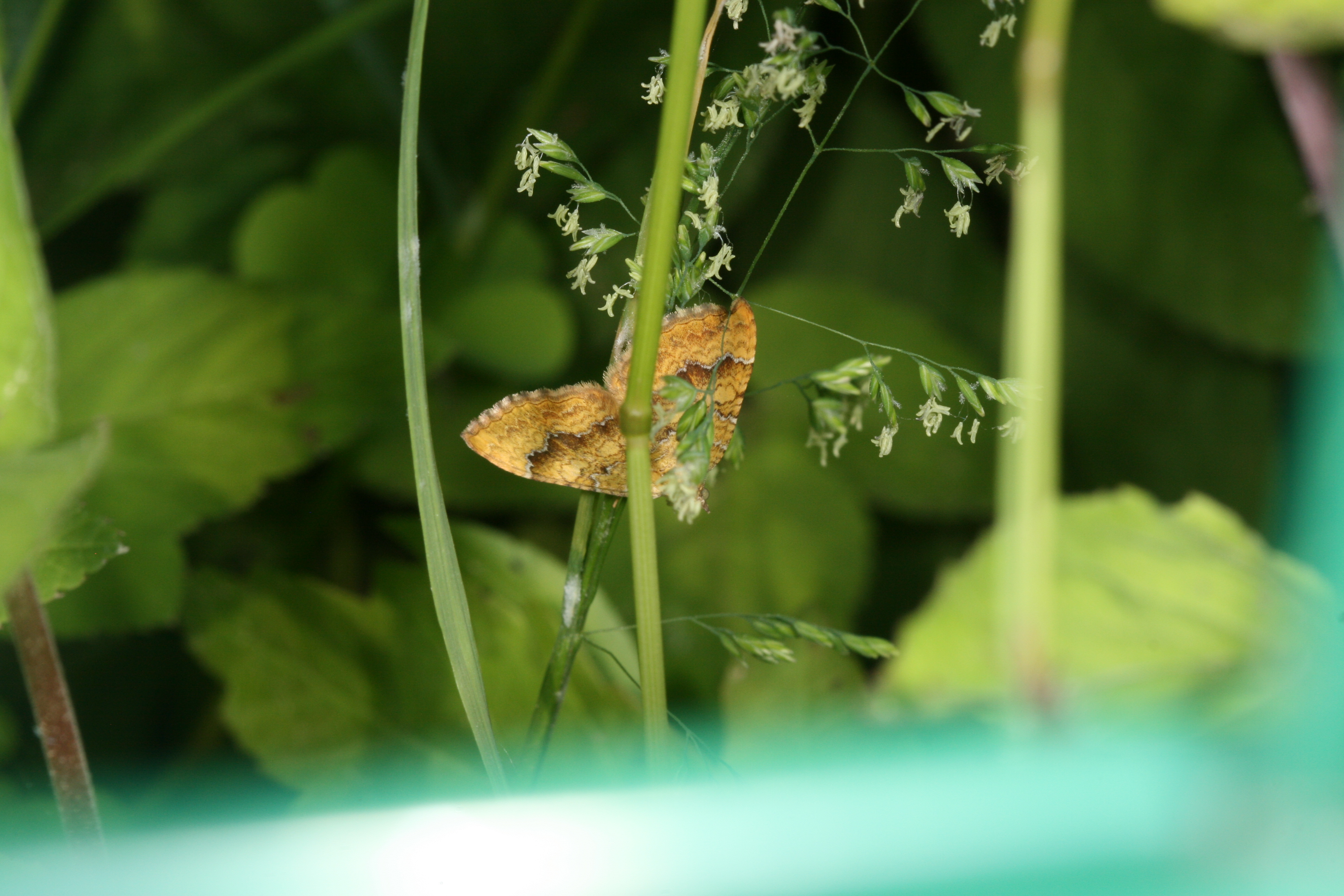 Ockergelbe Blattspanner, oder Löwenzahnspanner oder Brennnesselspanner (Camptogramma bilineata (Linnaeus, 1758)), am Licht, Radeberg, August 2013.
