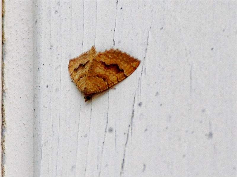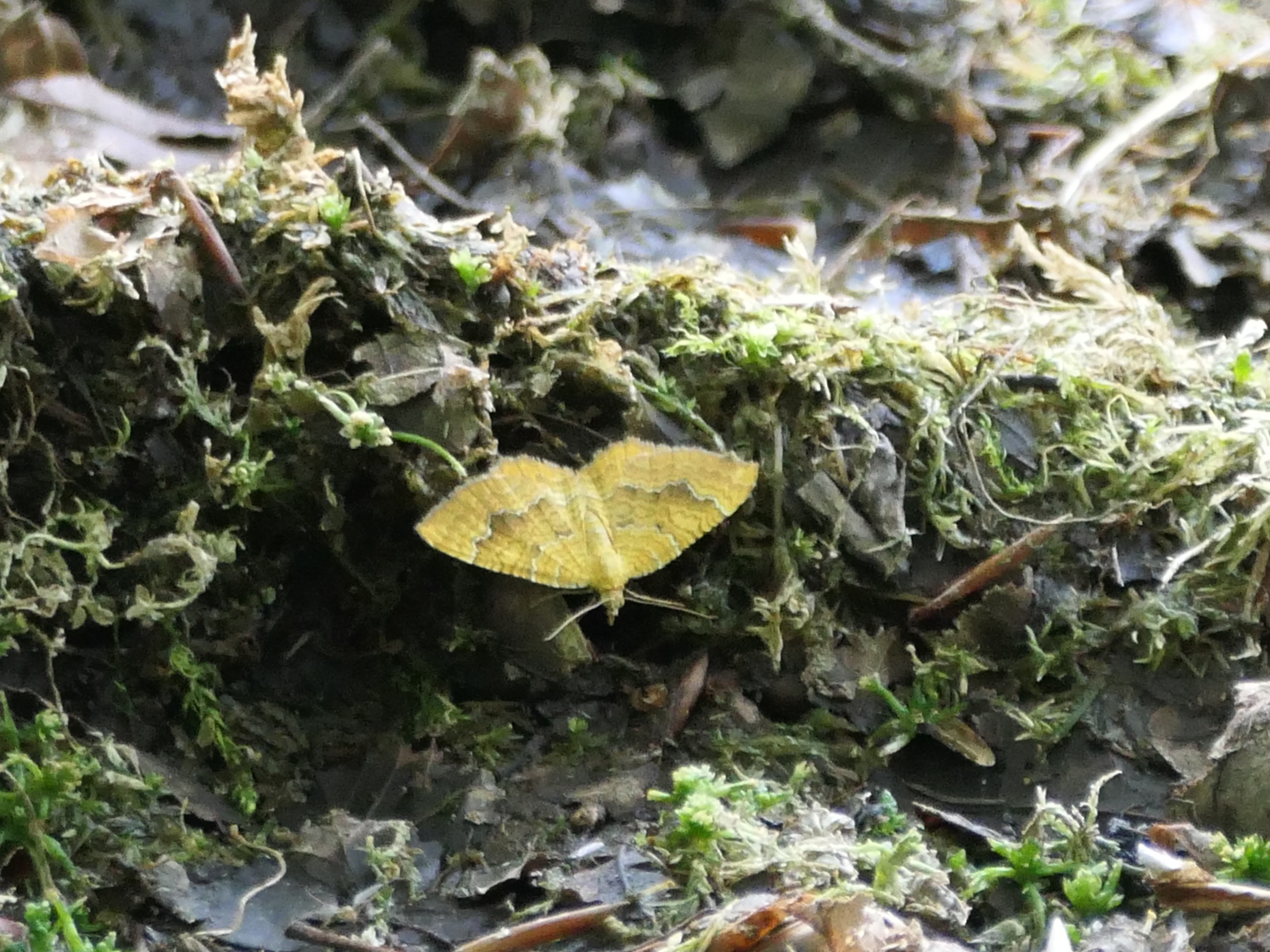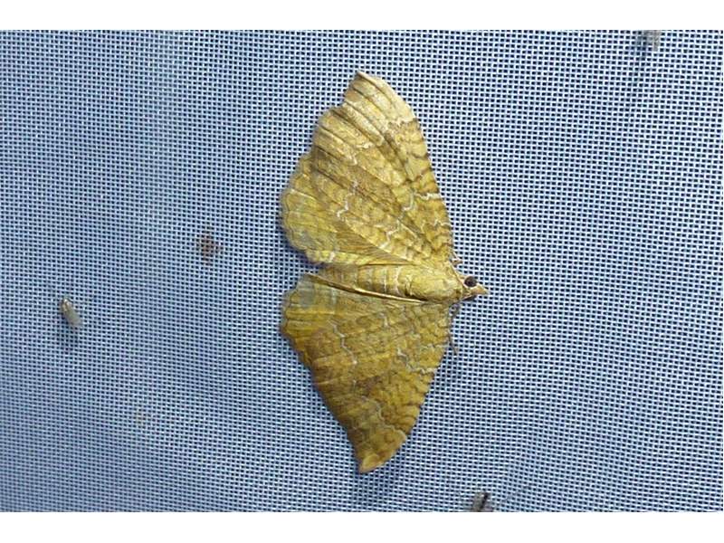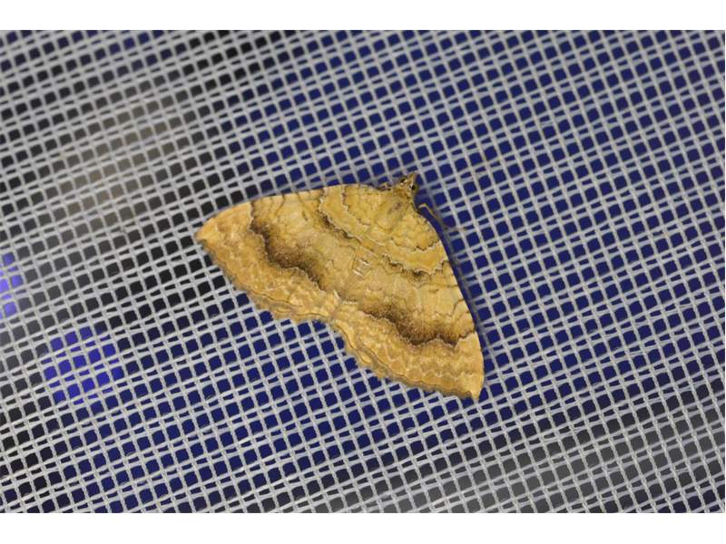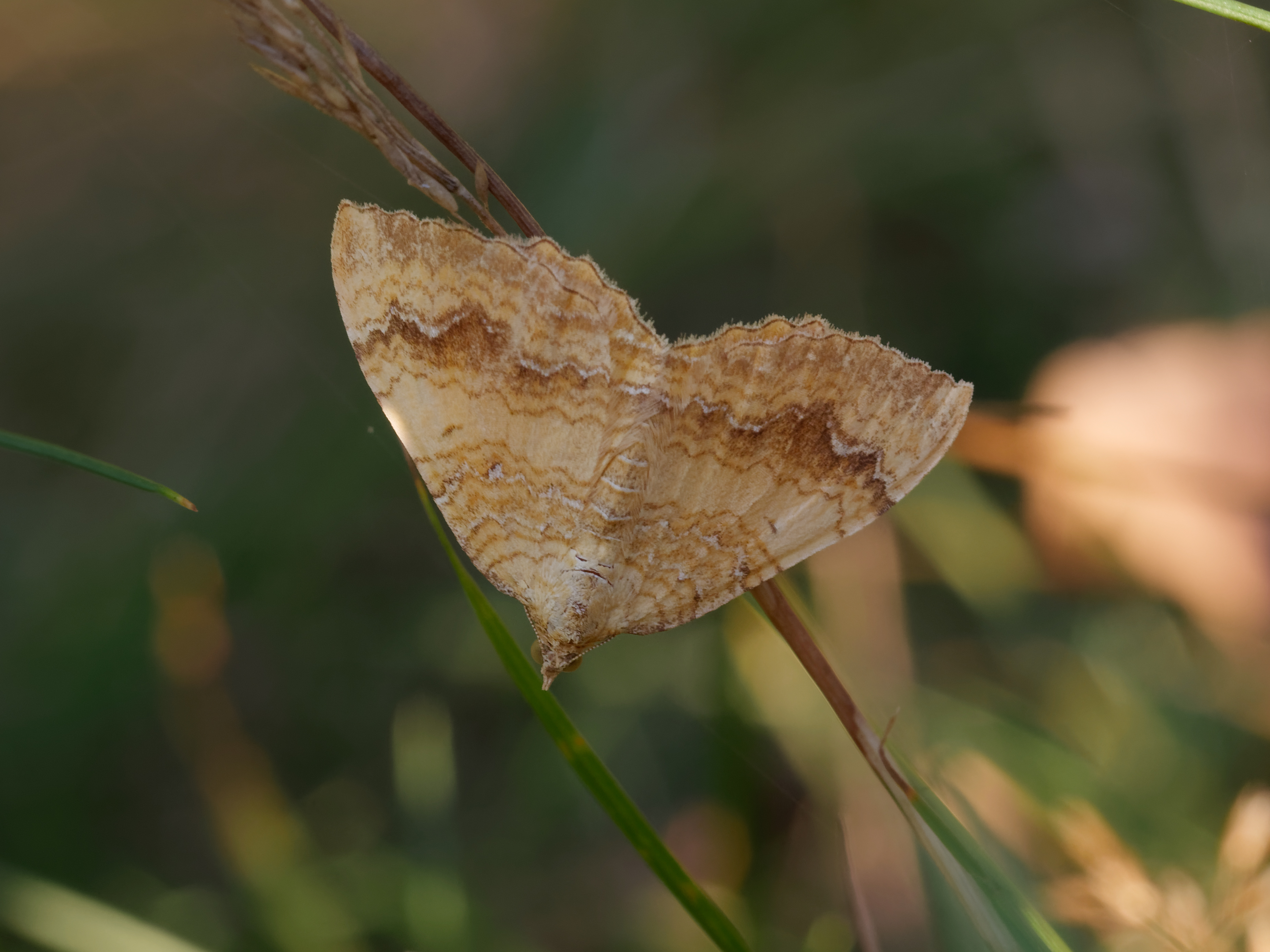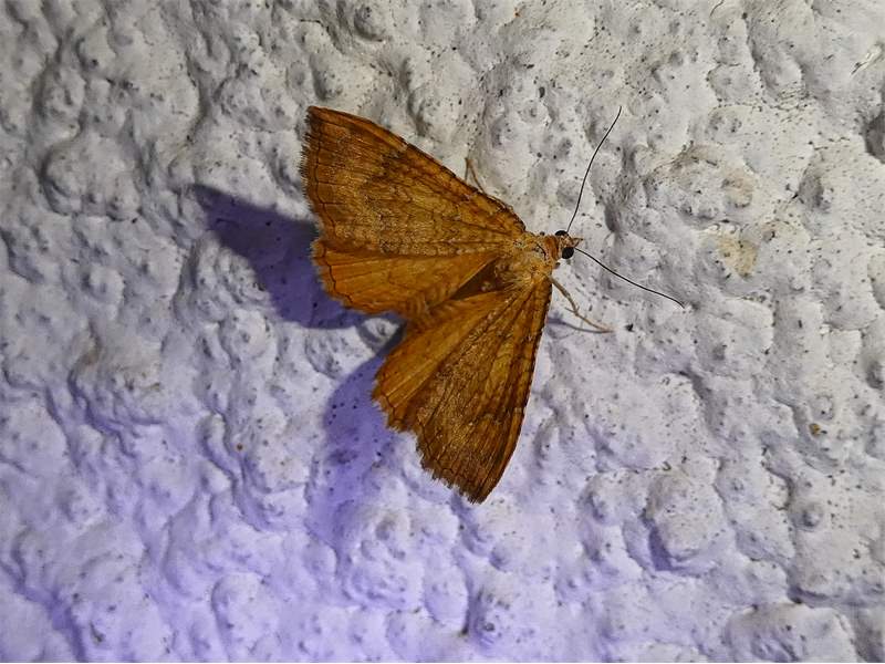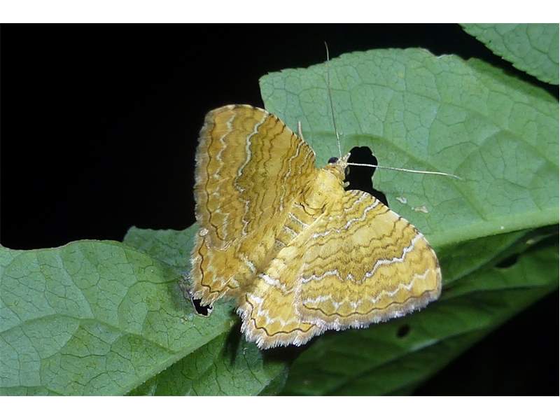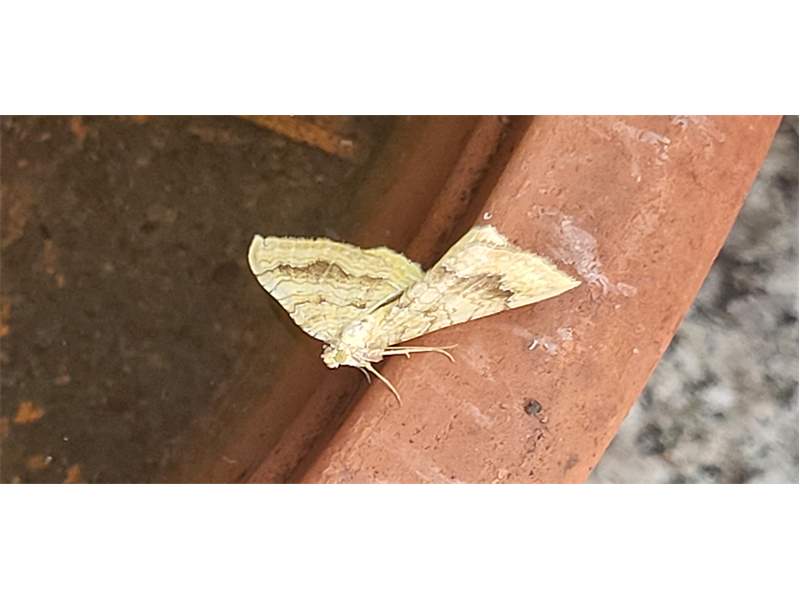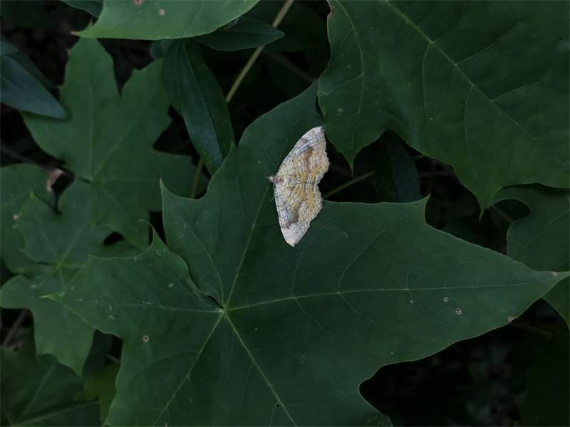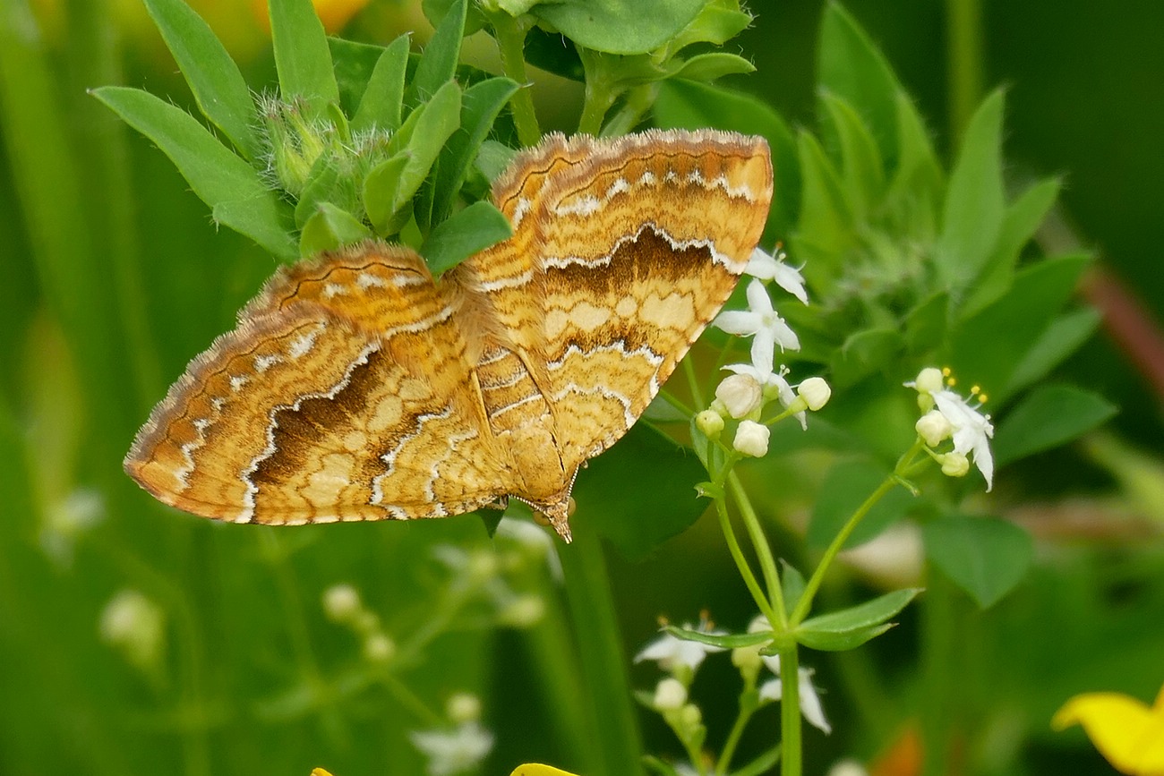 Ockergelbe Blattspanner, oder Löwenzahnspanner oder Brennnesselspanner (Camptogramma bilineata (Linnaeus, 1758)), am Licht, Radeberg, August 2013.