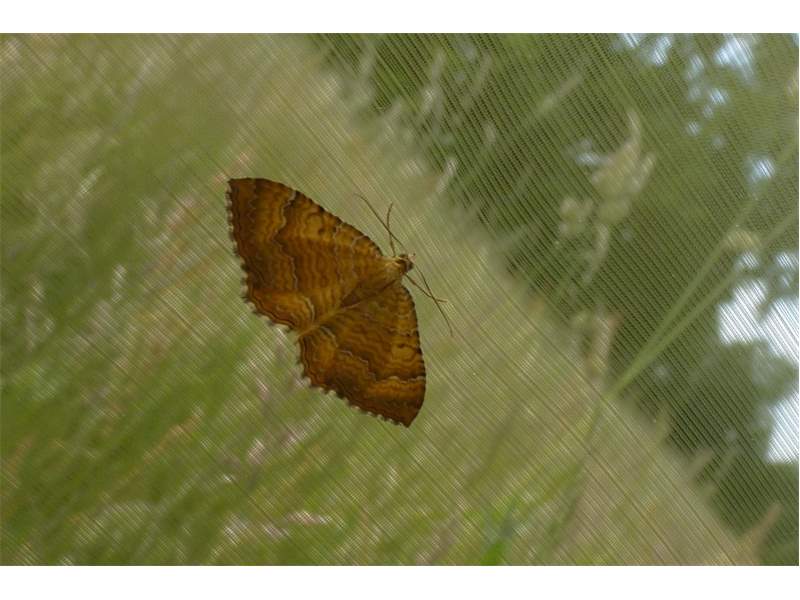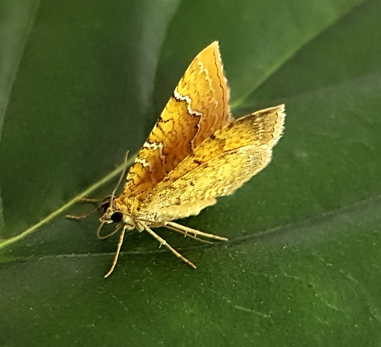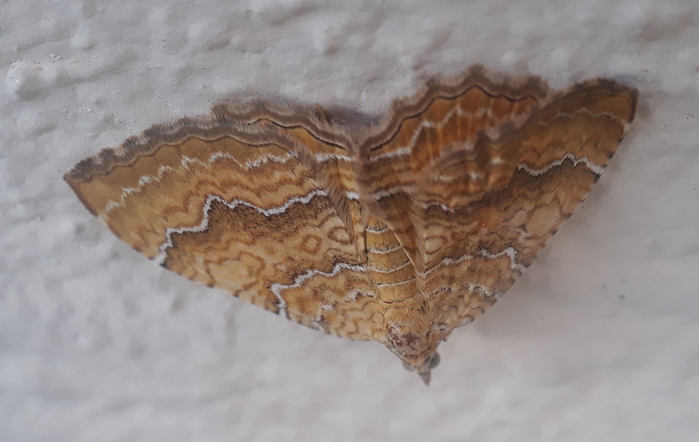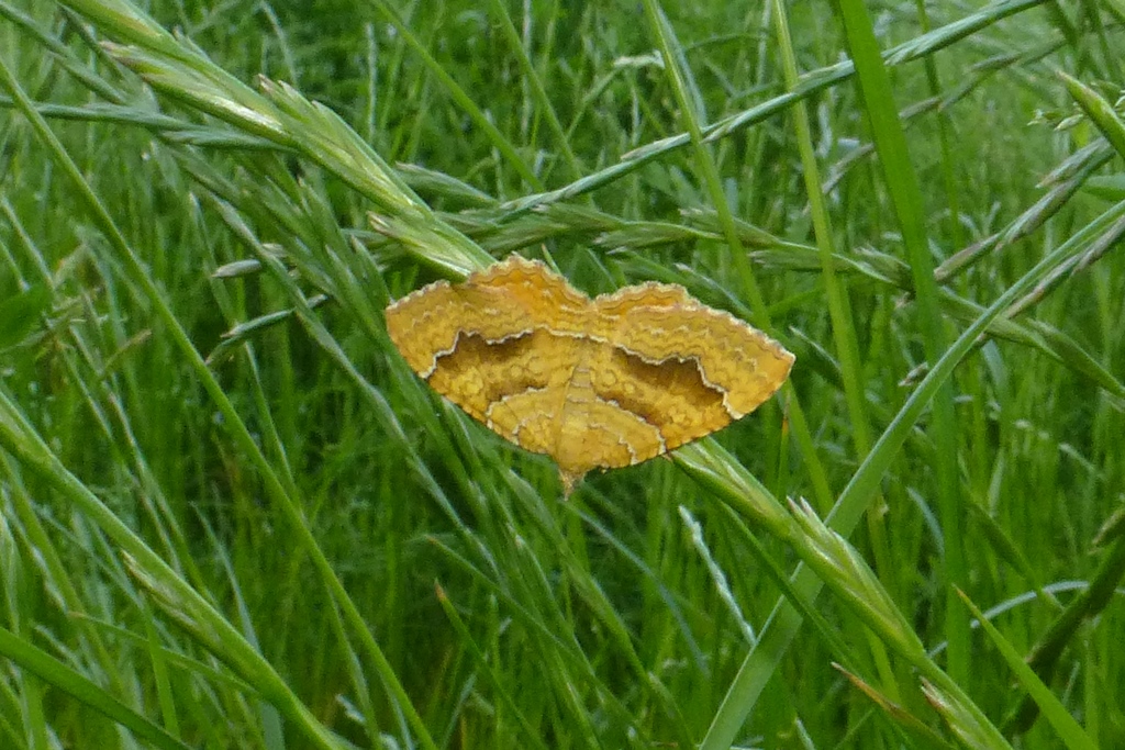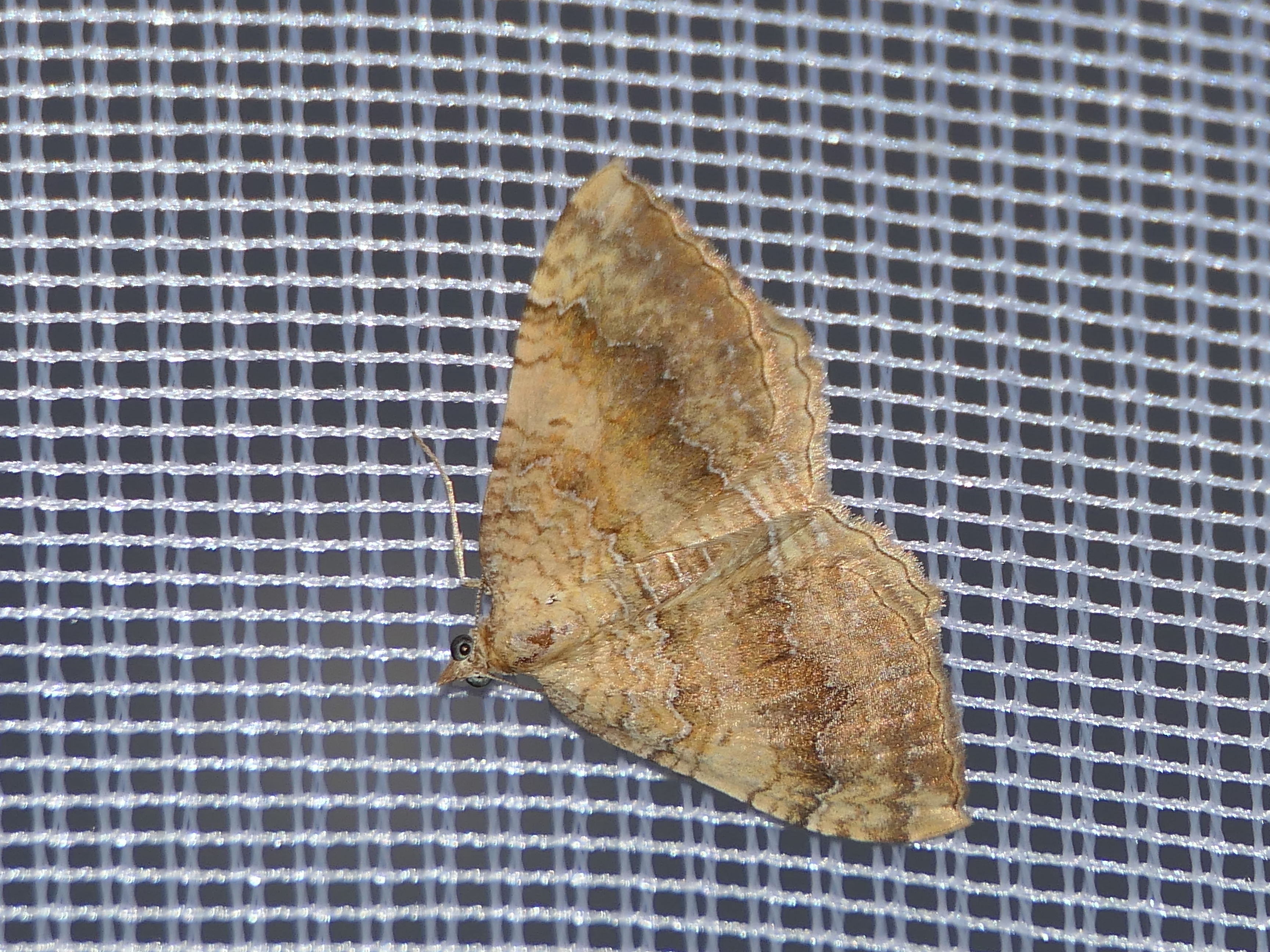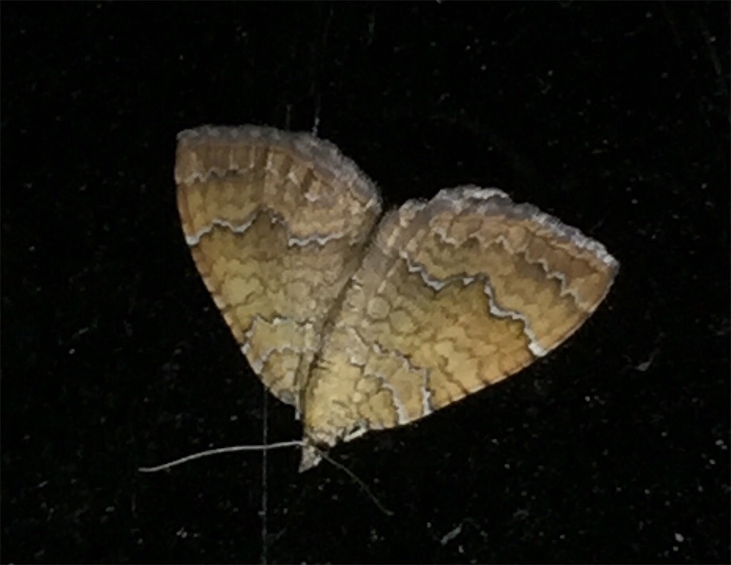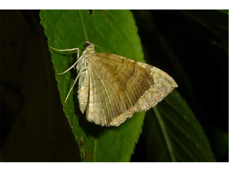 Ockergelbe Blattspanner, oder Löwenzahnspanner oder Brennnesselspanner (Camptogramma bilineata (Linnaeus, 1758)), am Licht, Radeberg, August 2013.