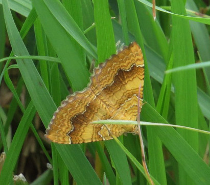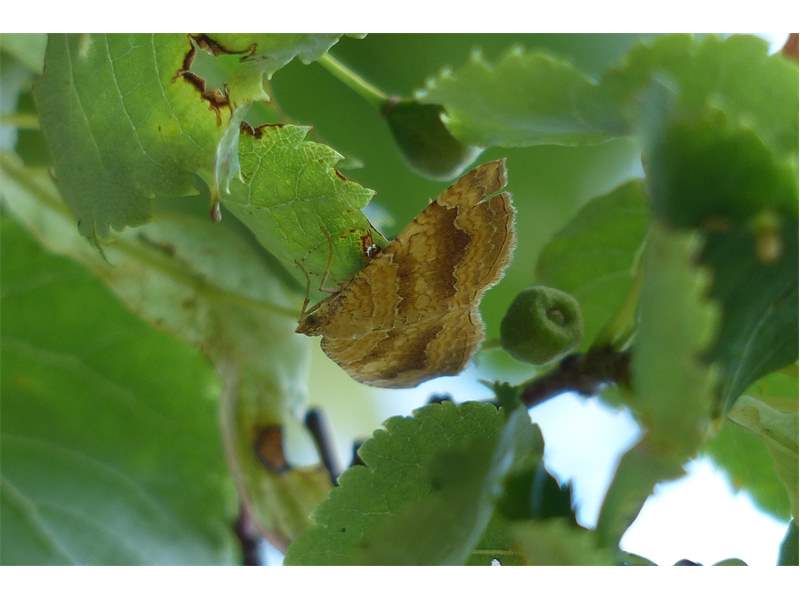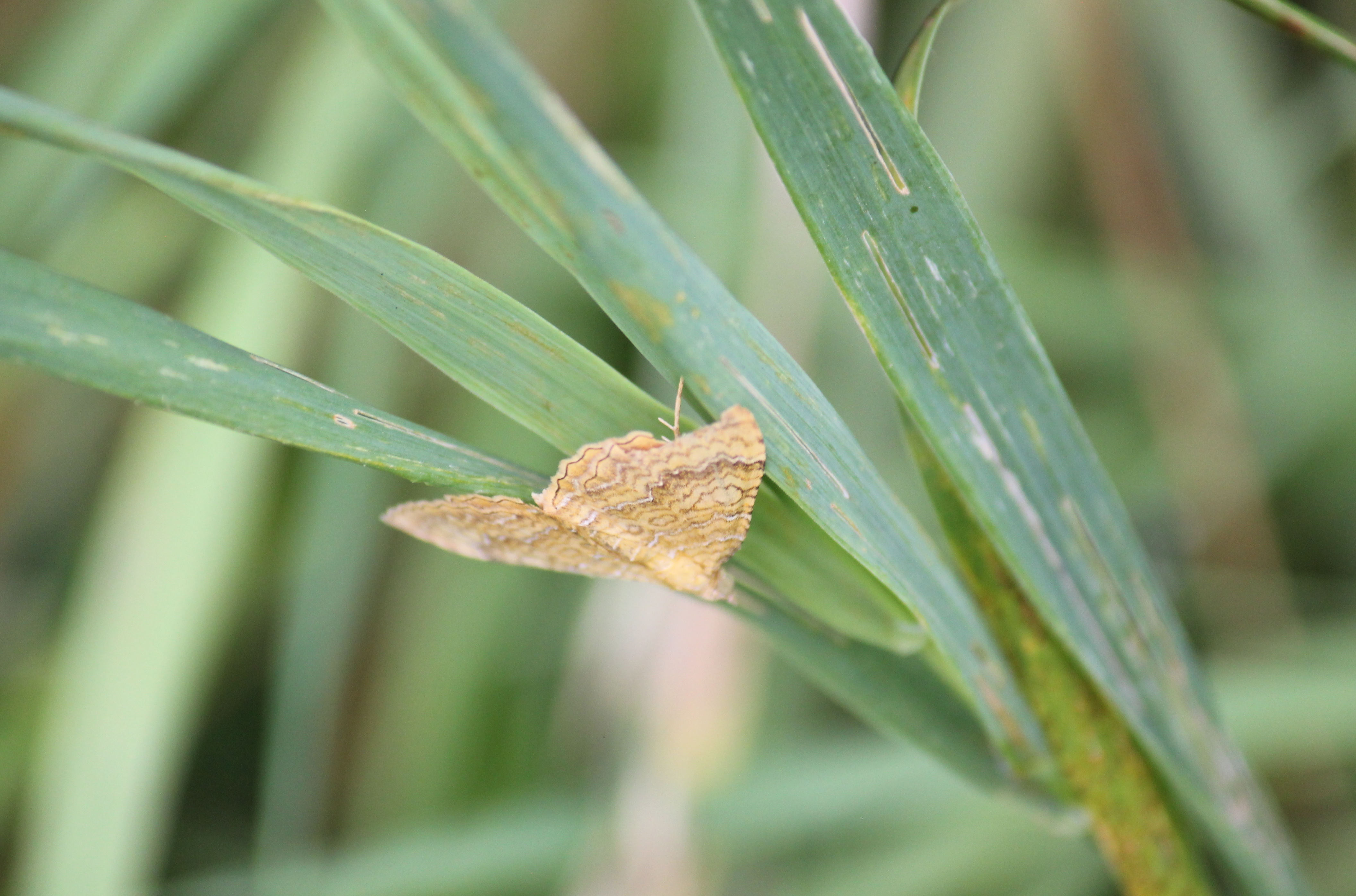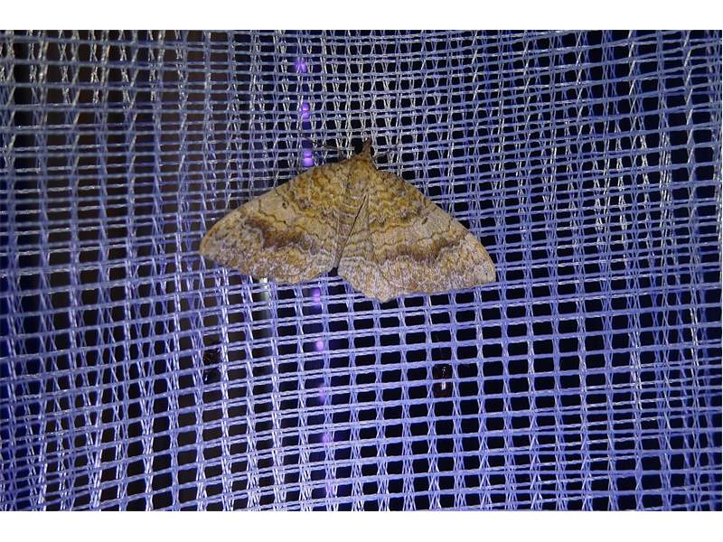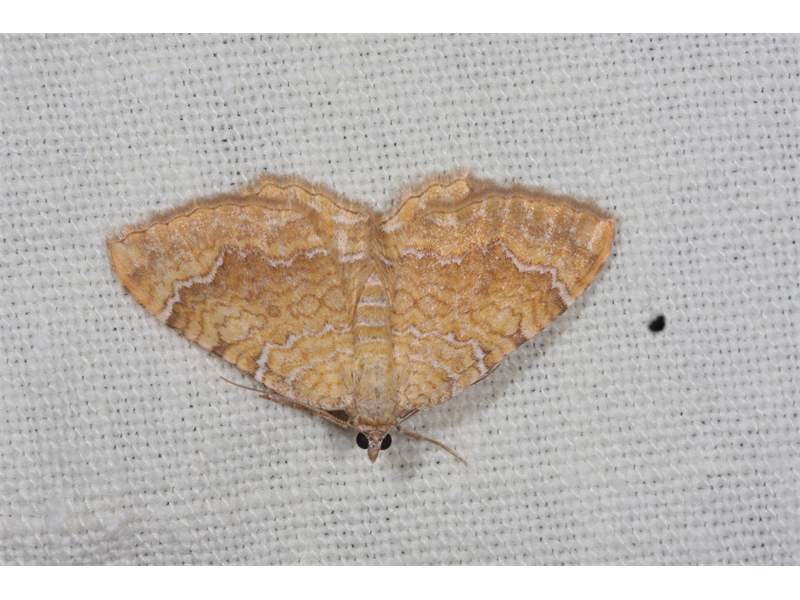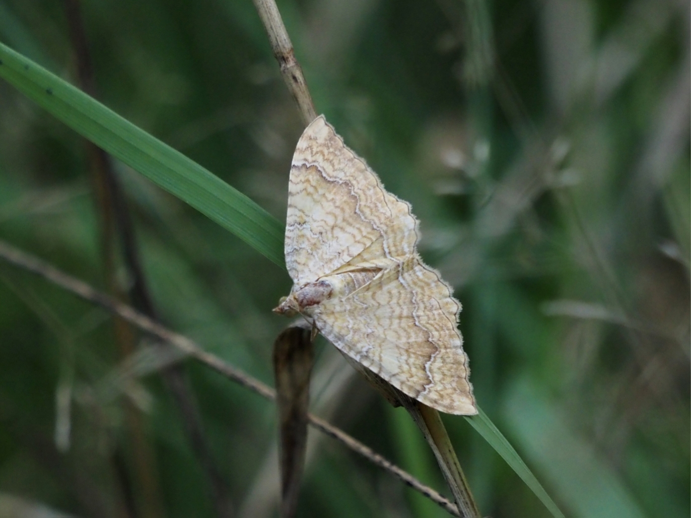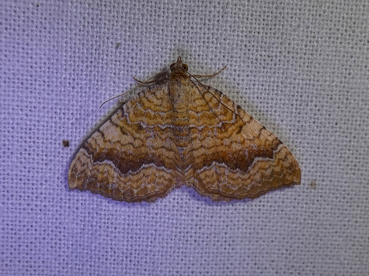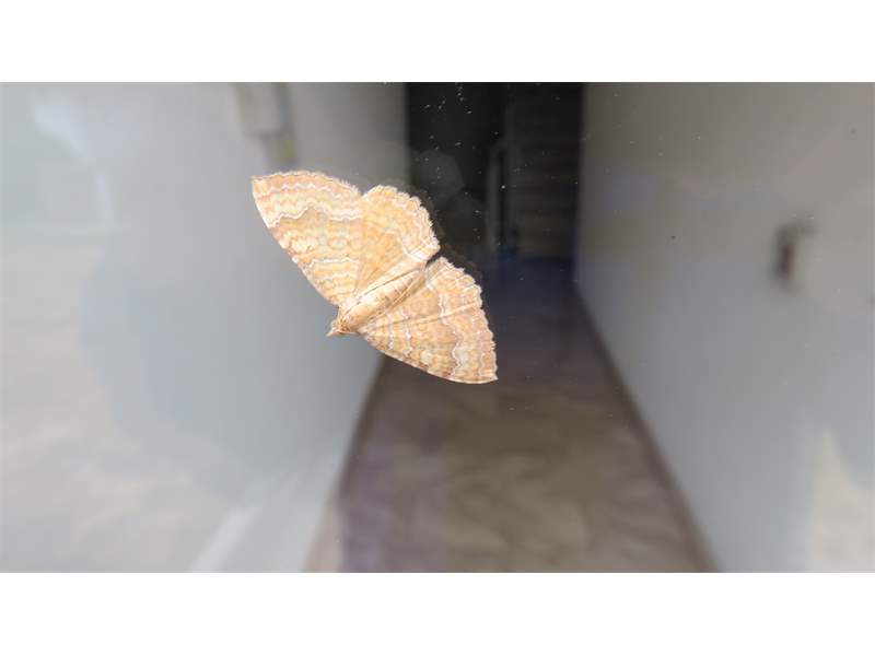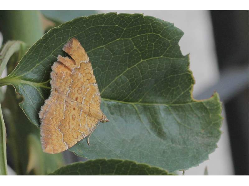 Ockergelbe Blattspanner, oder Löwenzahnspanner oder Brennnesselspanner (Camptogramma bilineata (Linnaeus, 1758)), am Licht, Radeberg, August 2013.
