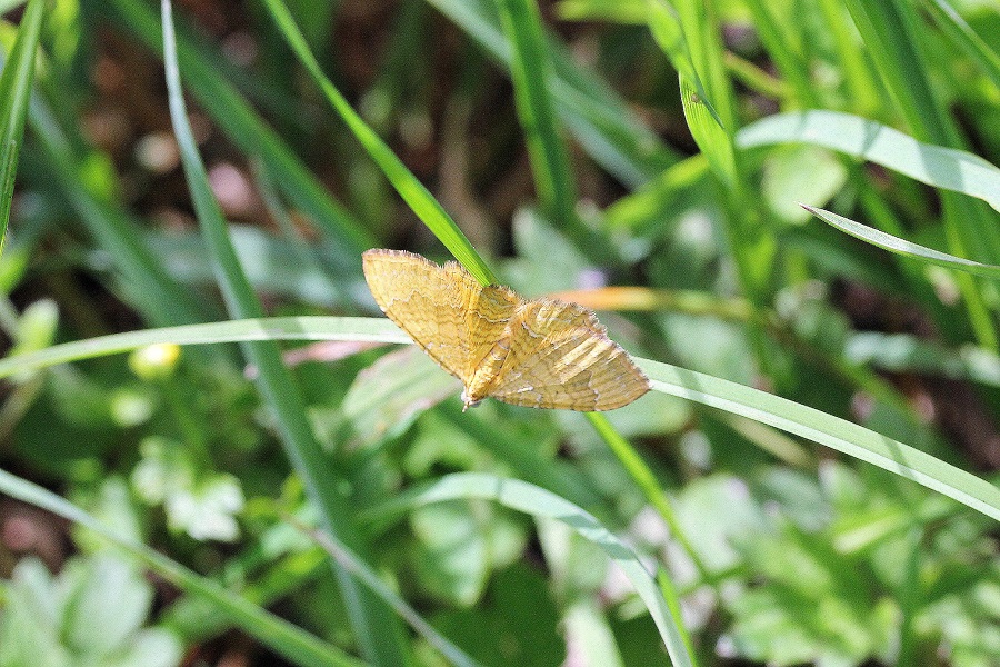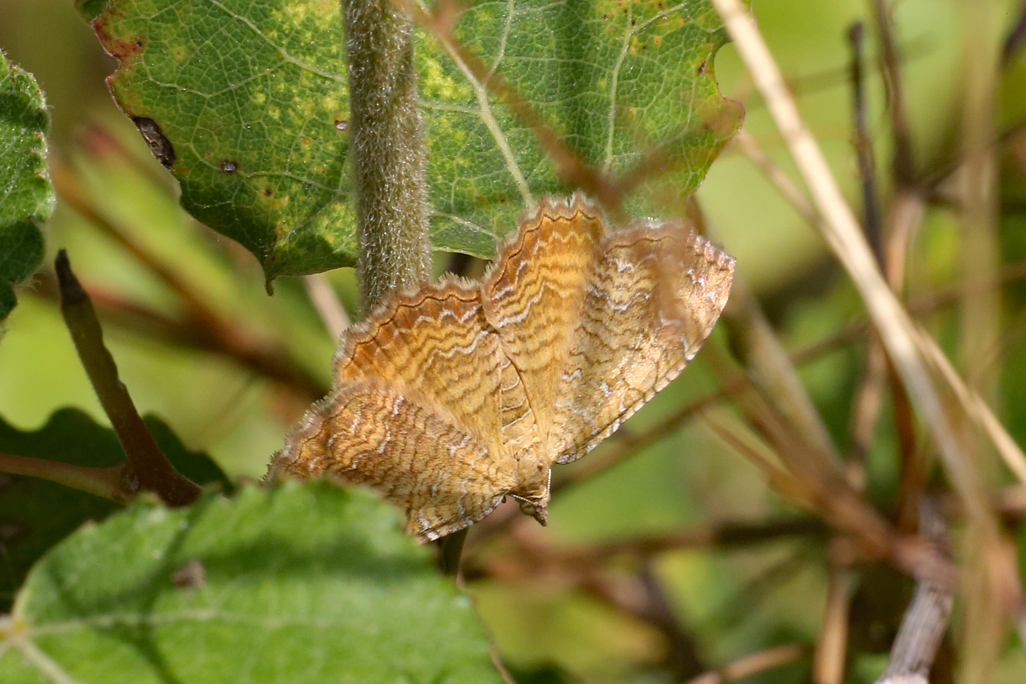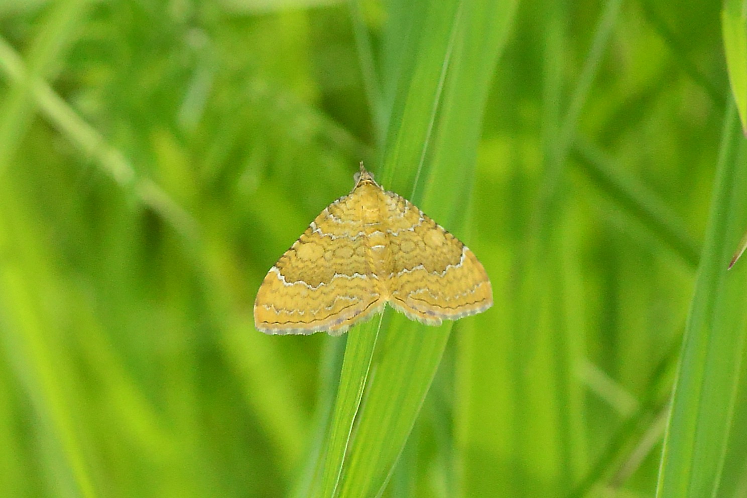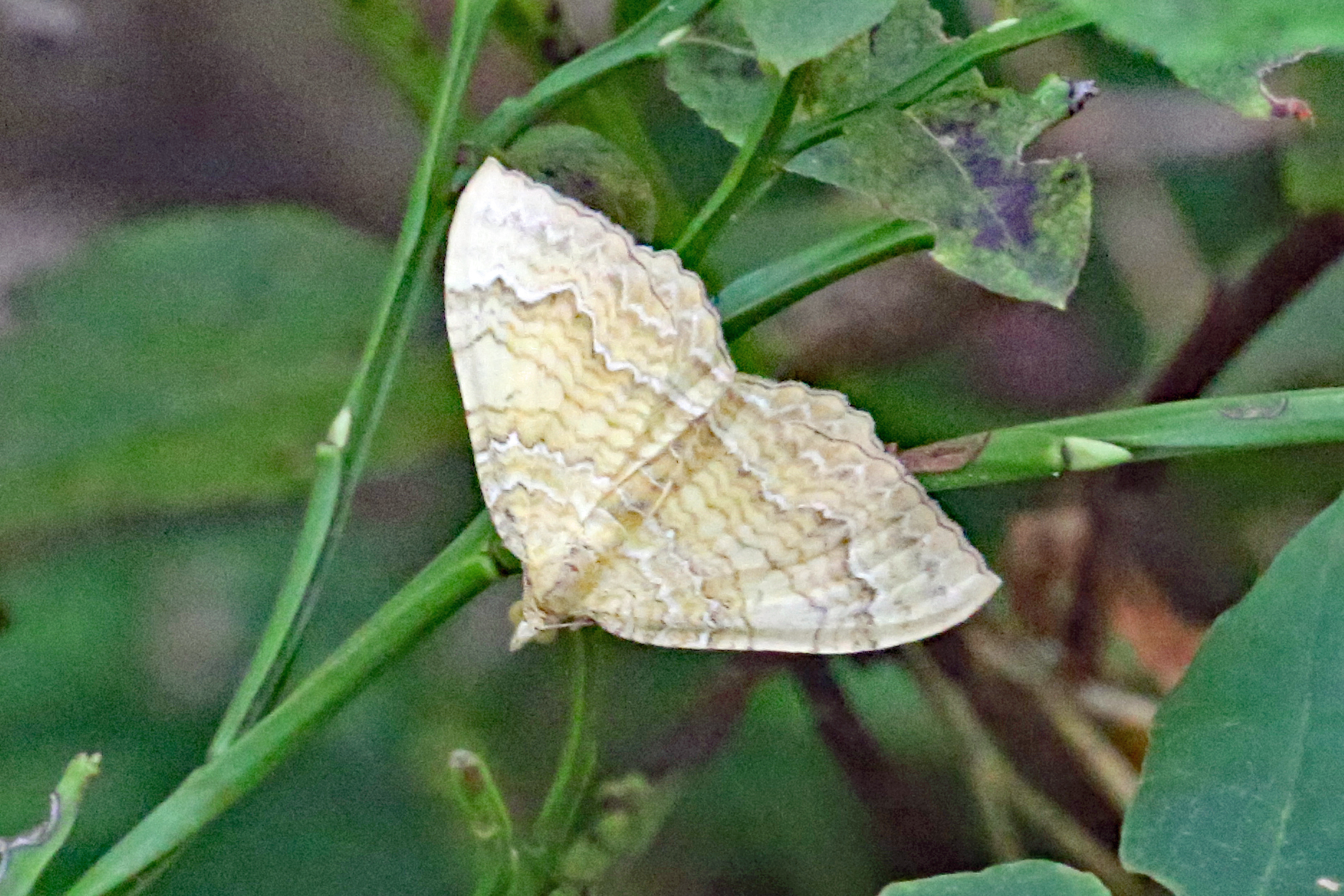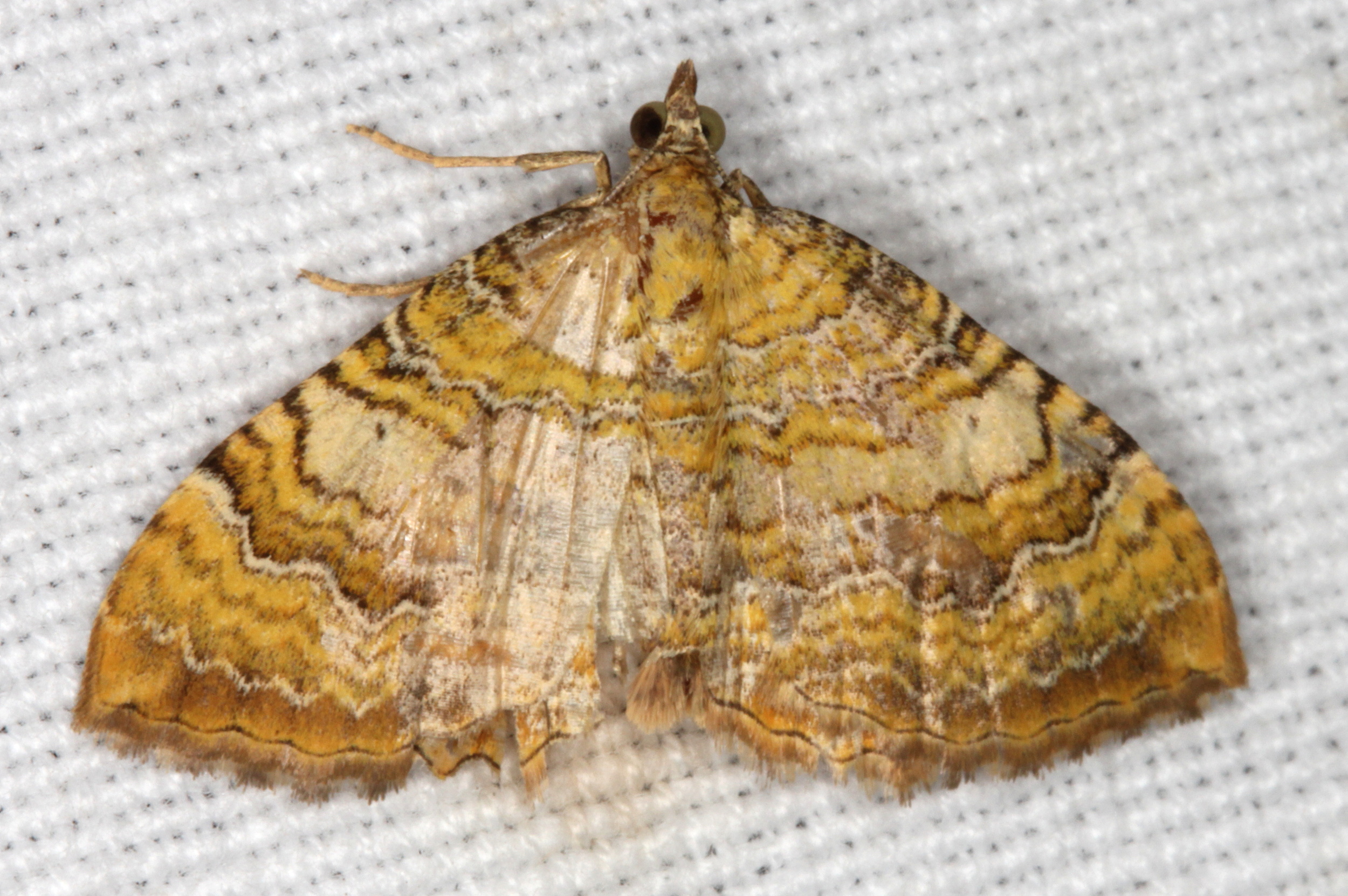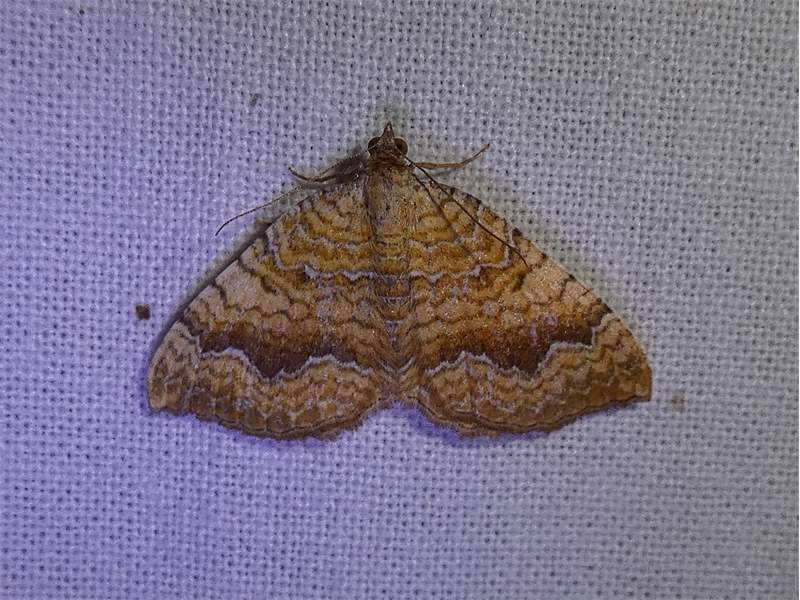 Ockergelbe Blattspanner, oder Löwenzahnspanner oder Brennnesselspanner (Camptogramma bilineata (Linnaeus, 1758)), am Licht, Radeberg, August 2013.