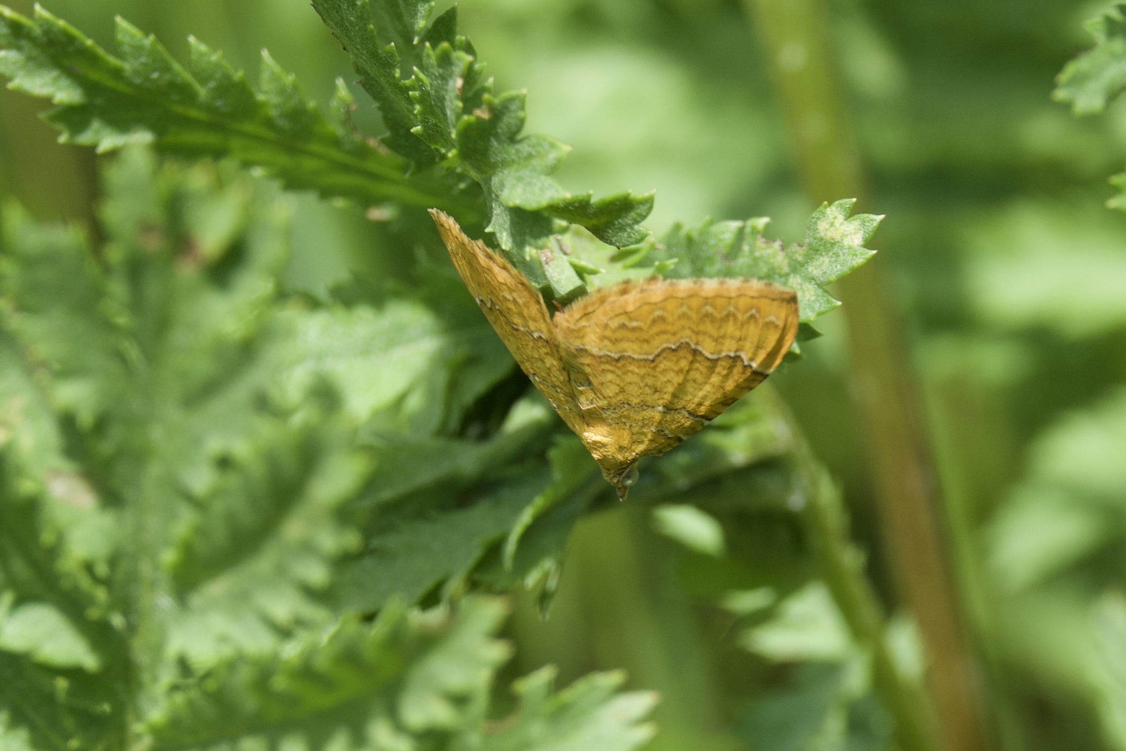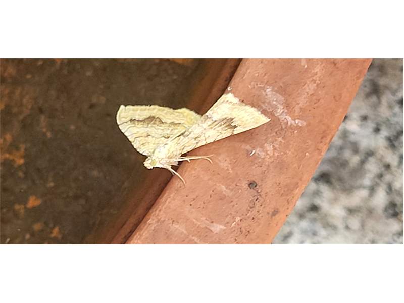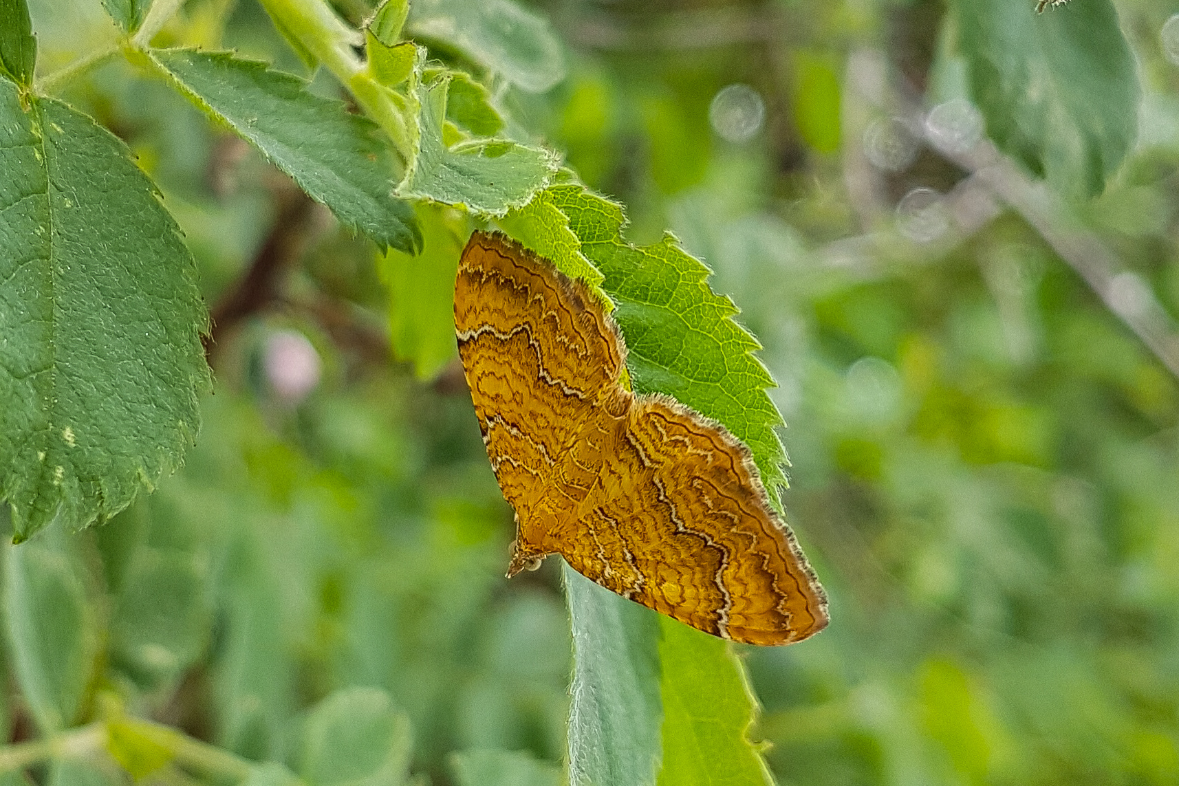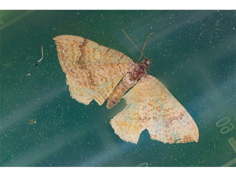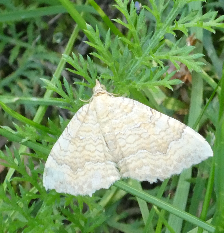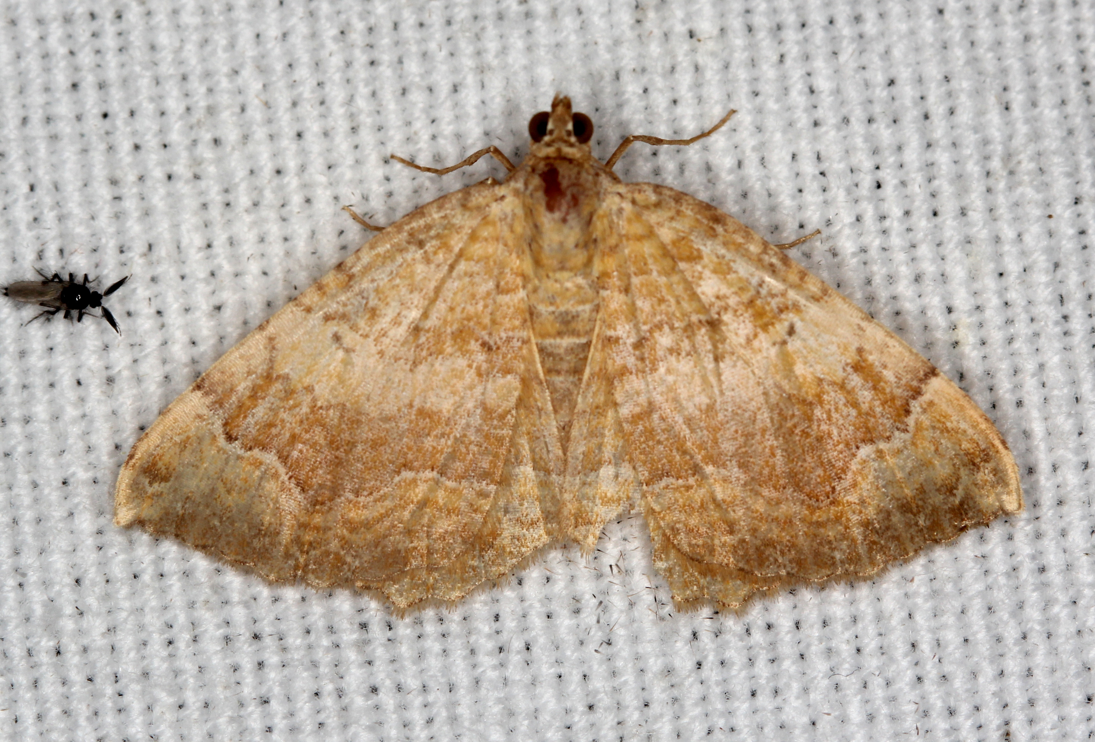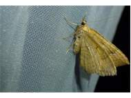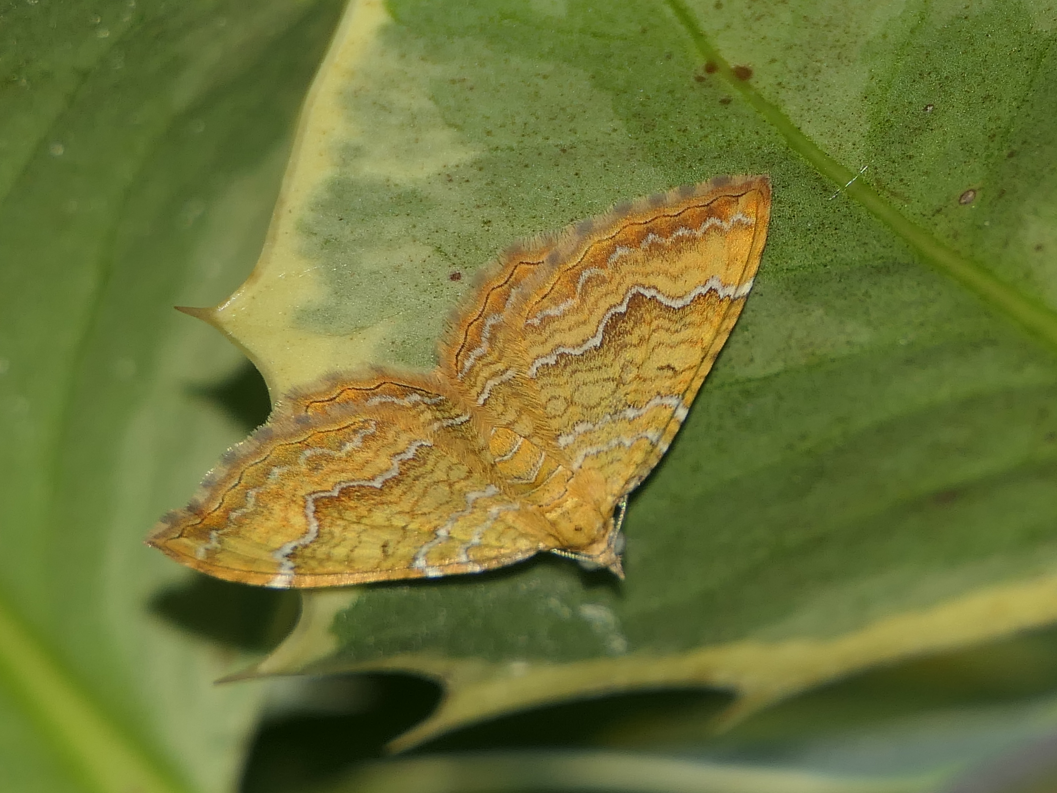 Ockergelbe Blattspanner, oder Löwenzahnspanner oder Brennnesselspanner (Camptogramma bilineata (Linnaeus, 1758)), am Licht, Radeberg, August 2013.