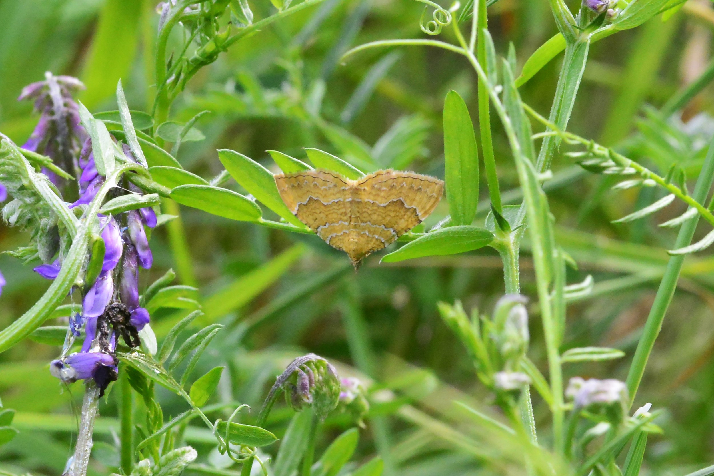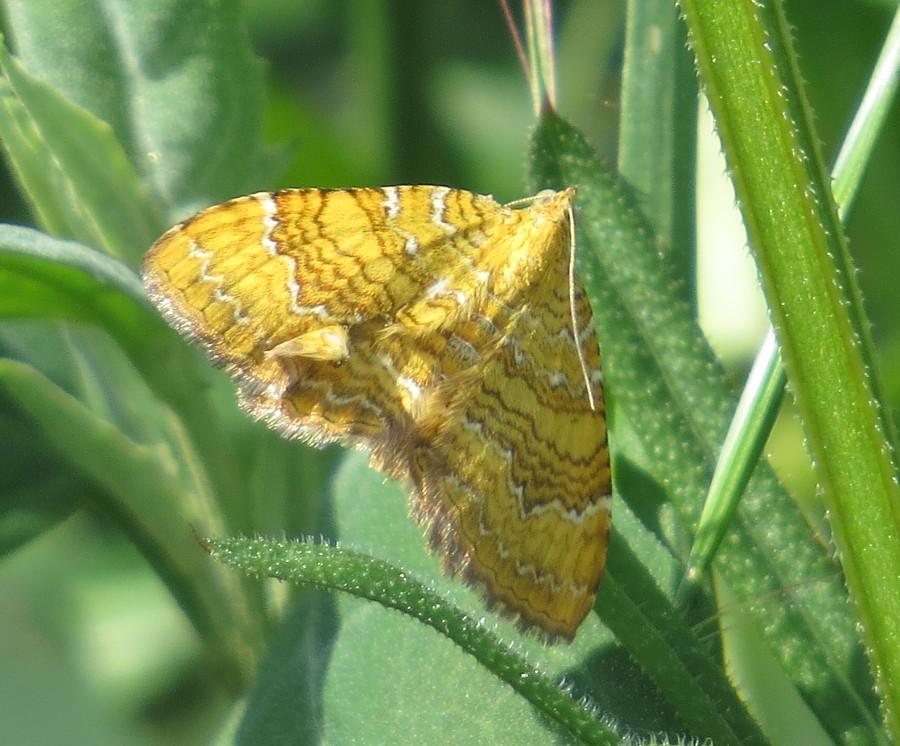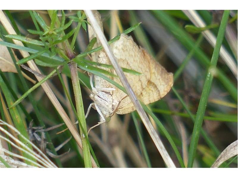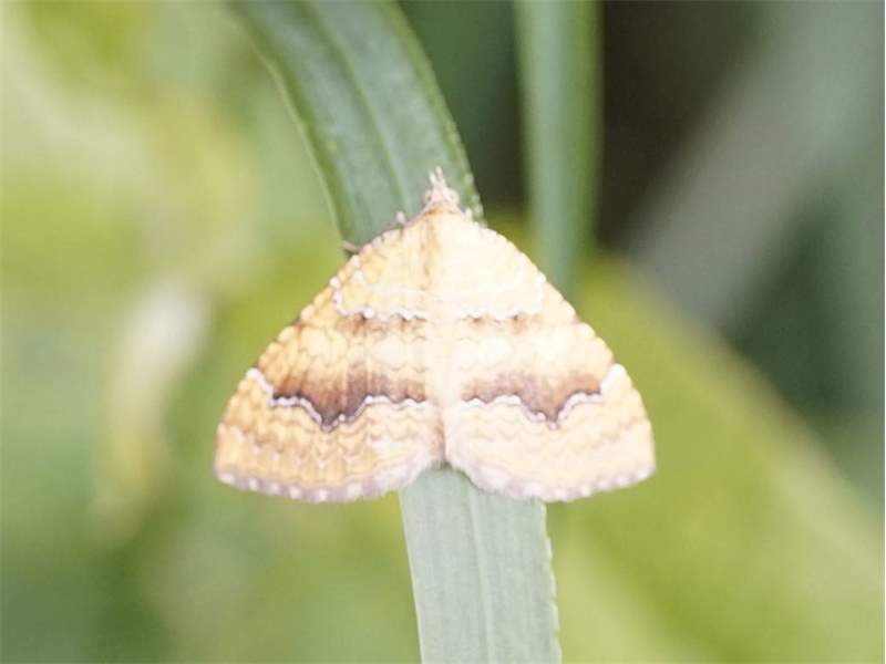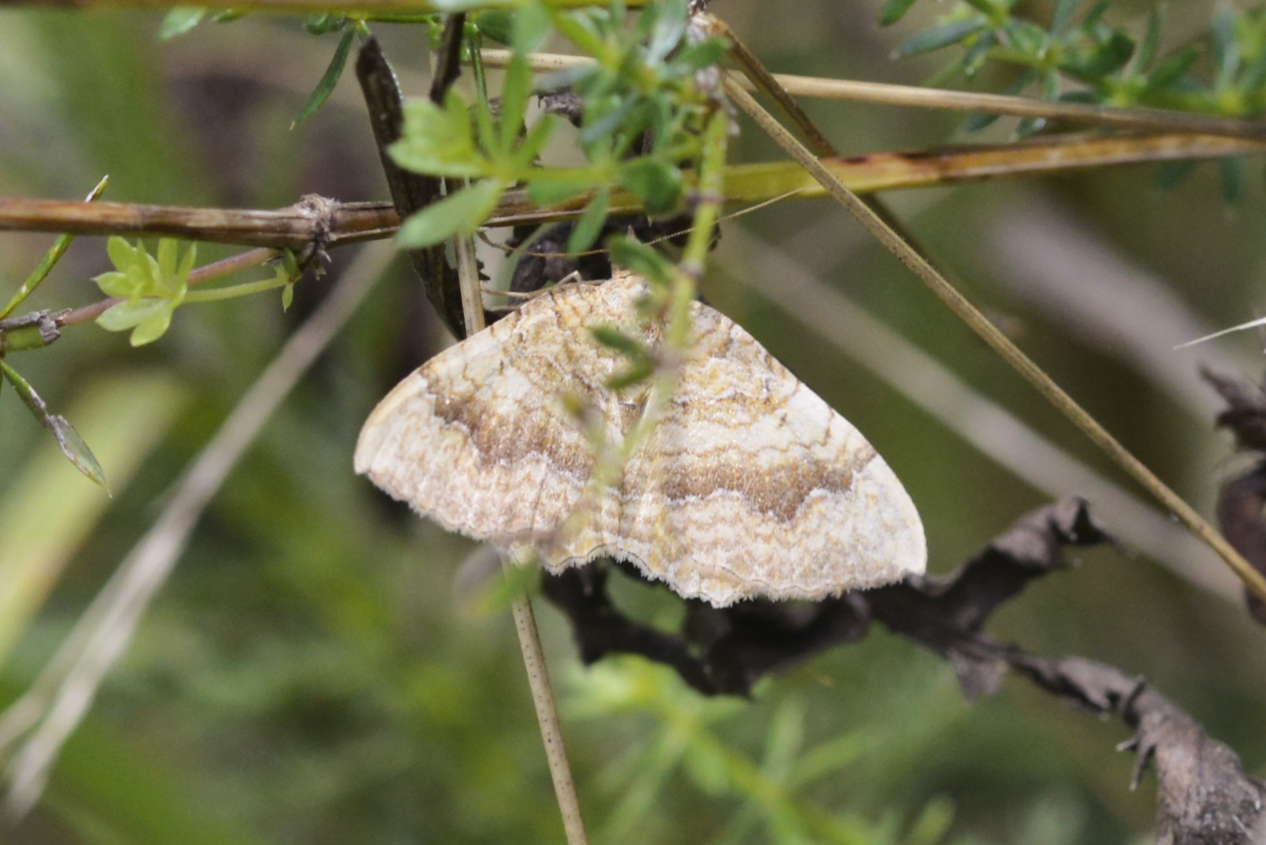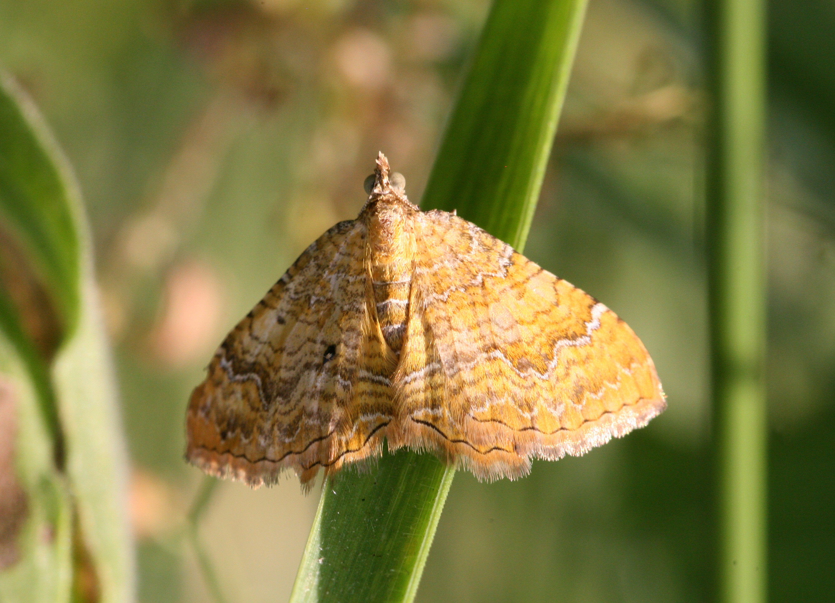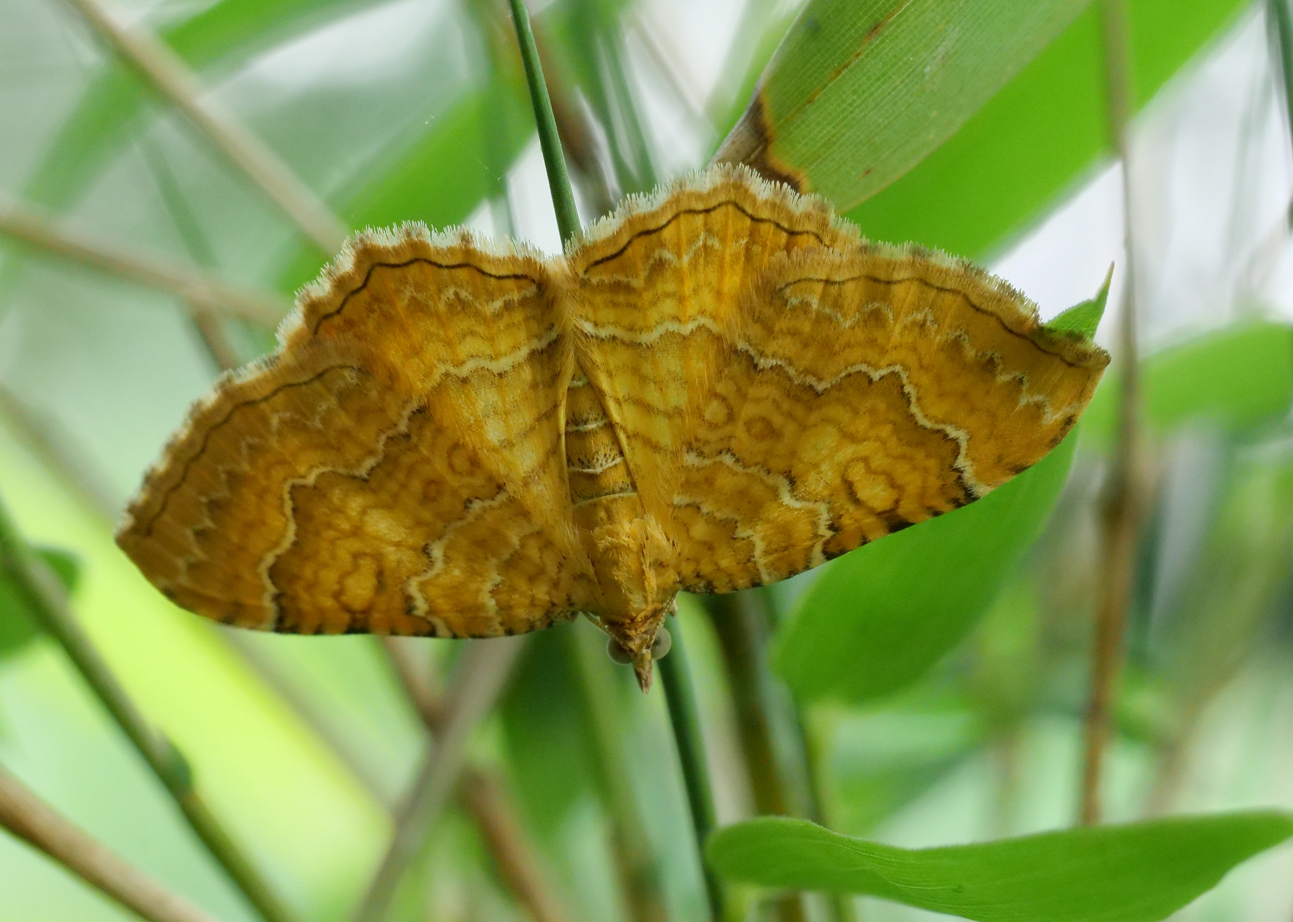 Ockergelbe Blattspanner, oder Löwenzahnspanner oder Brennnesselspanner (Camptogramma bilineata (Linnaeus, 1758)), am Licht, Radeberg, August 2013.