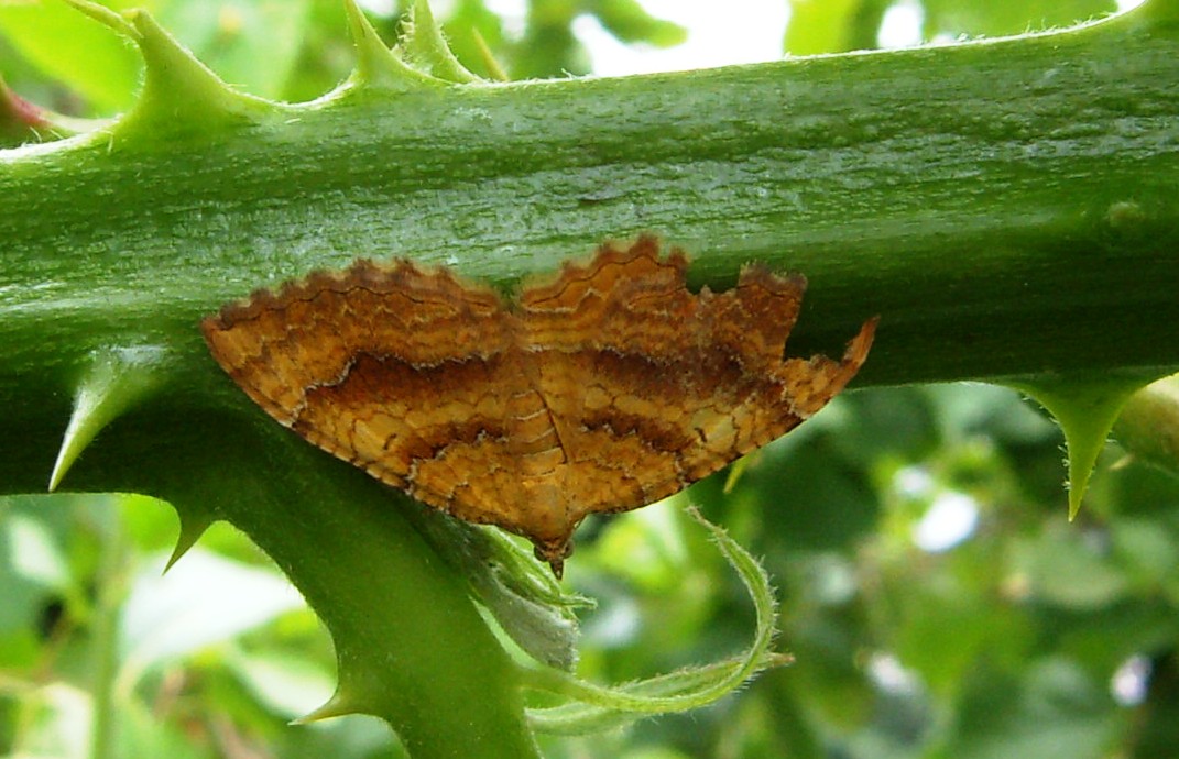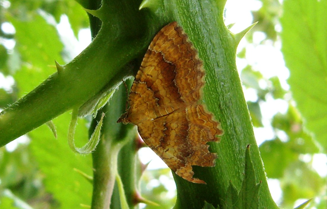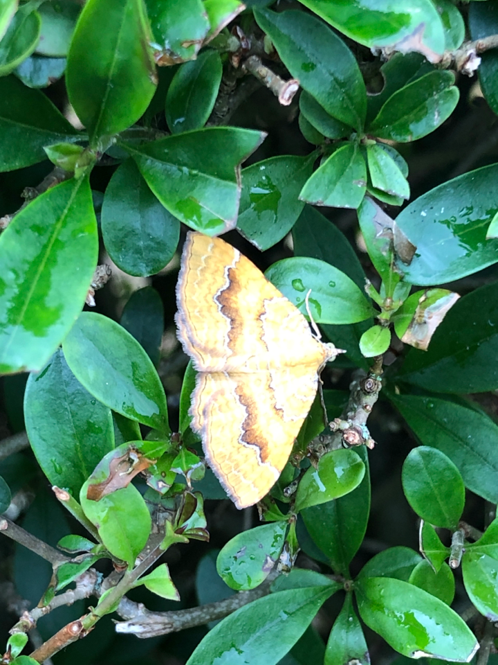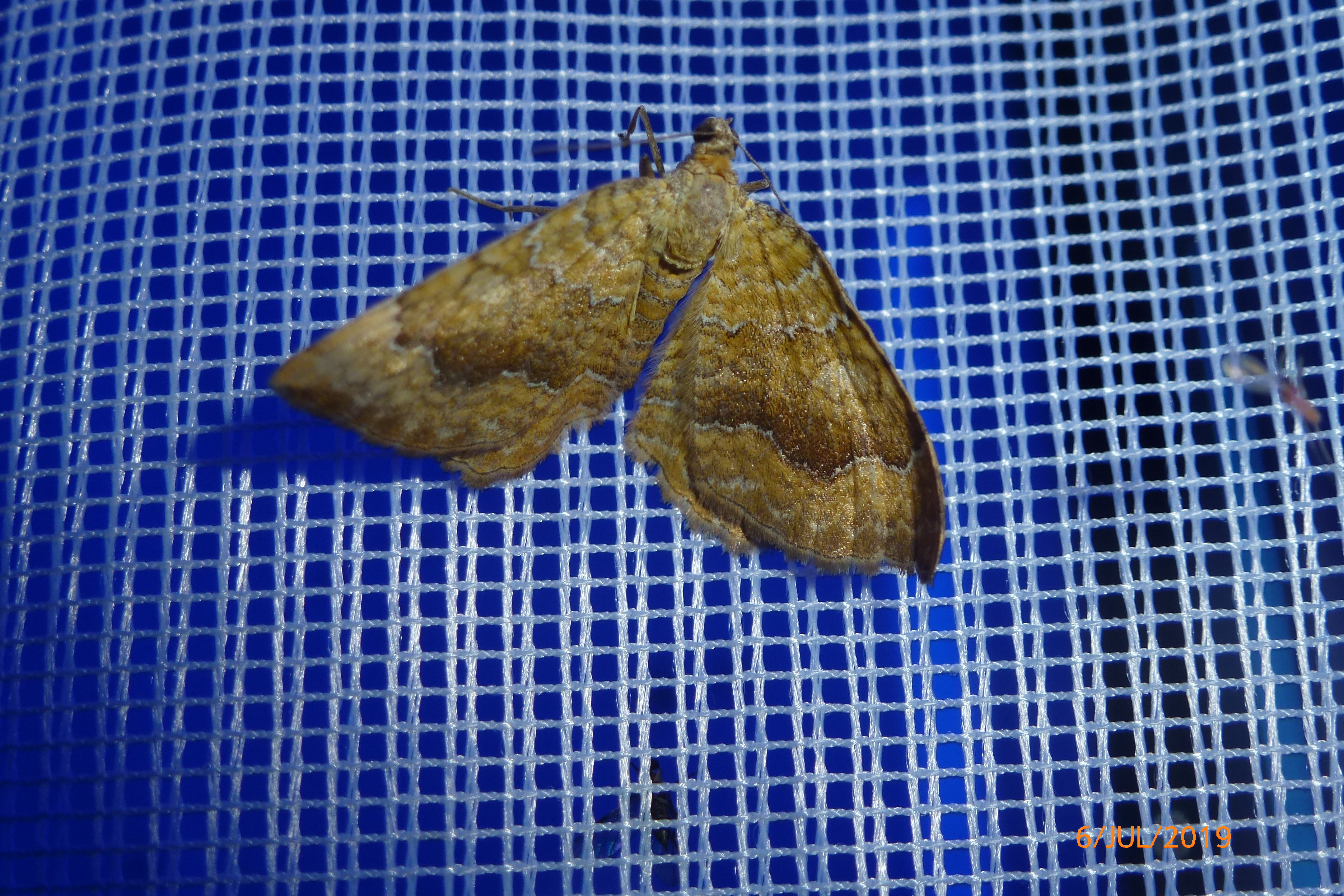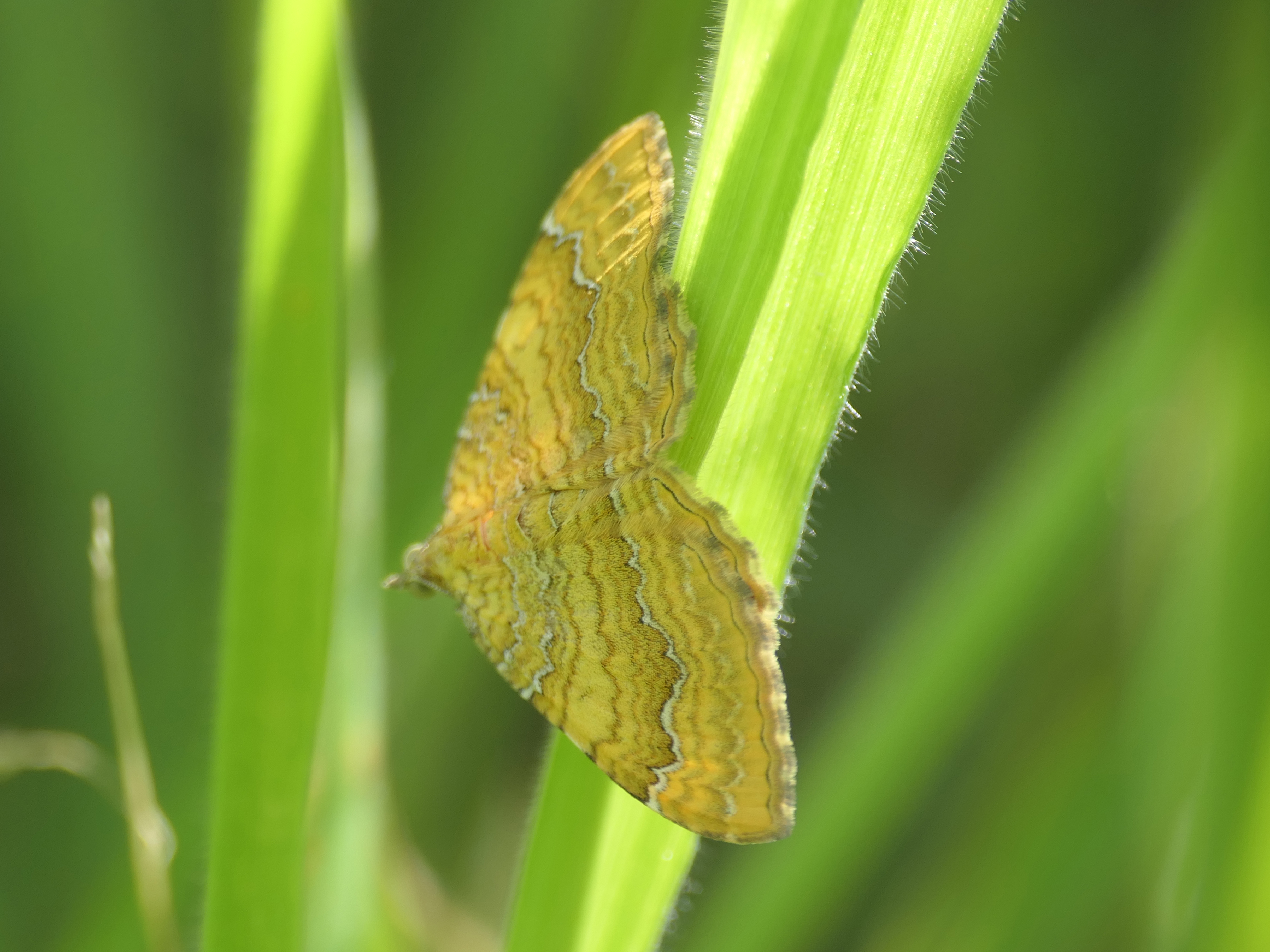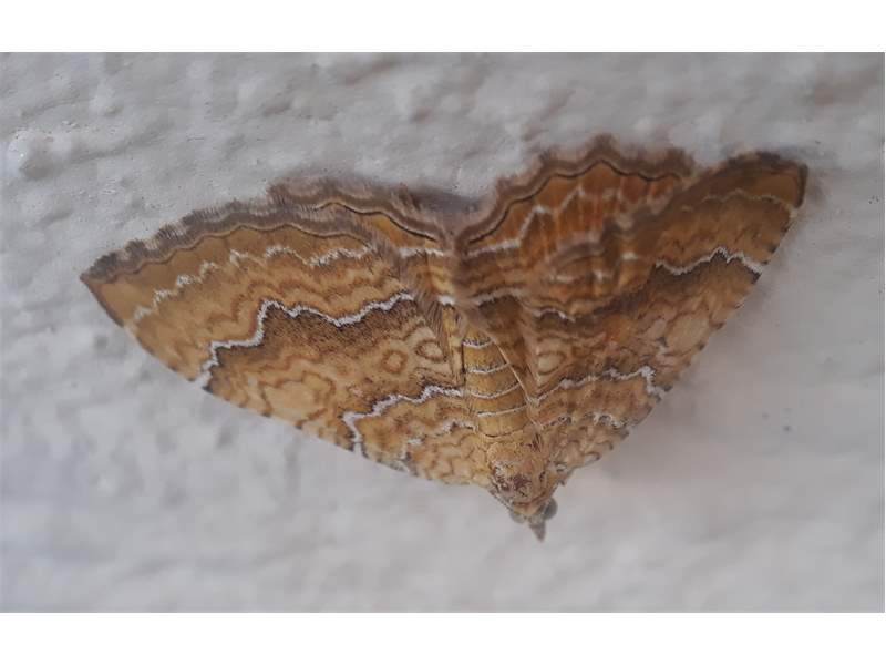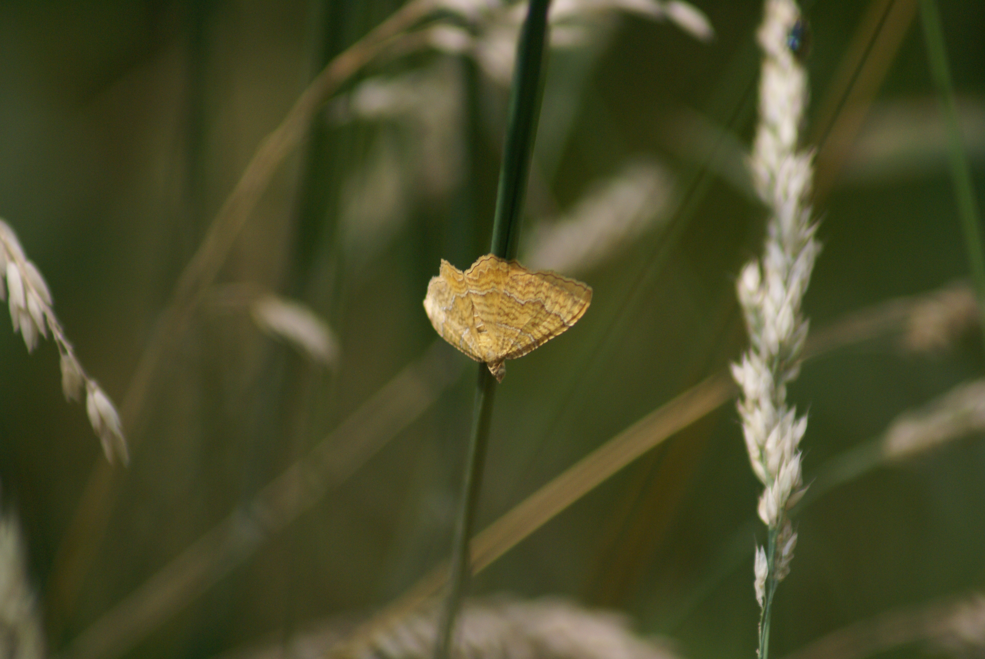 Ockergelbe Blattspanner, oder Löwenzahnspanner oder Brennnesselspanner (Camptogramma bilineata (Linnaeus, 1758)), am Licht, Radeberg, August 2013.